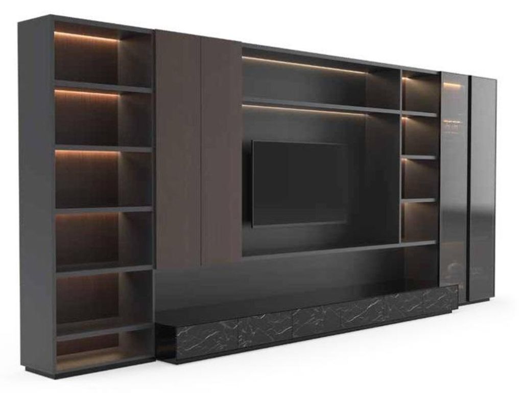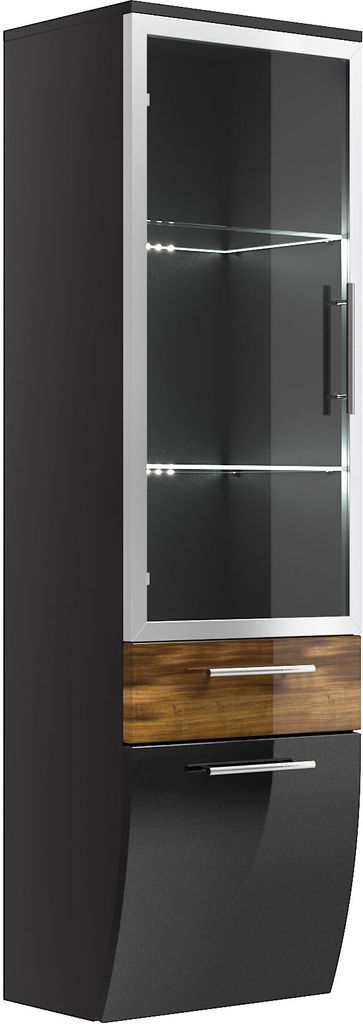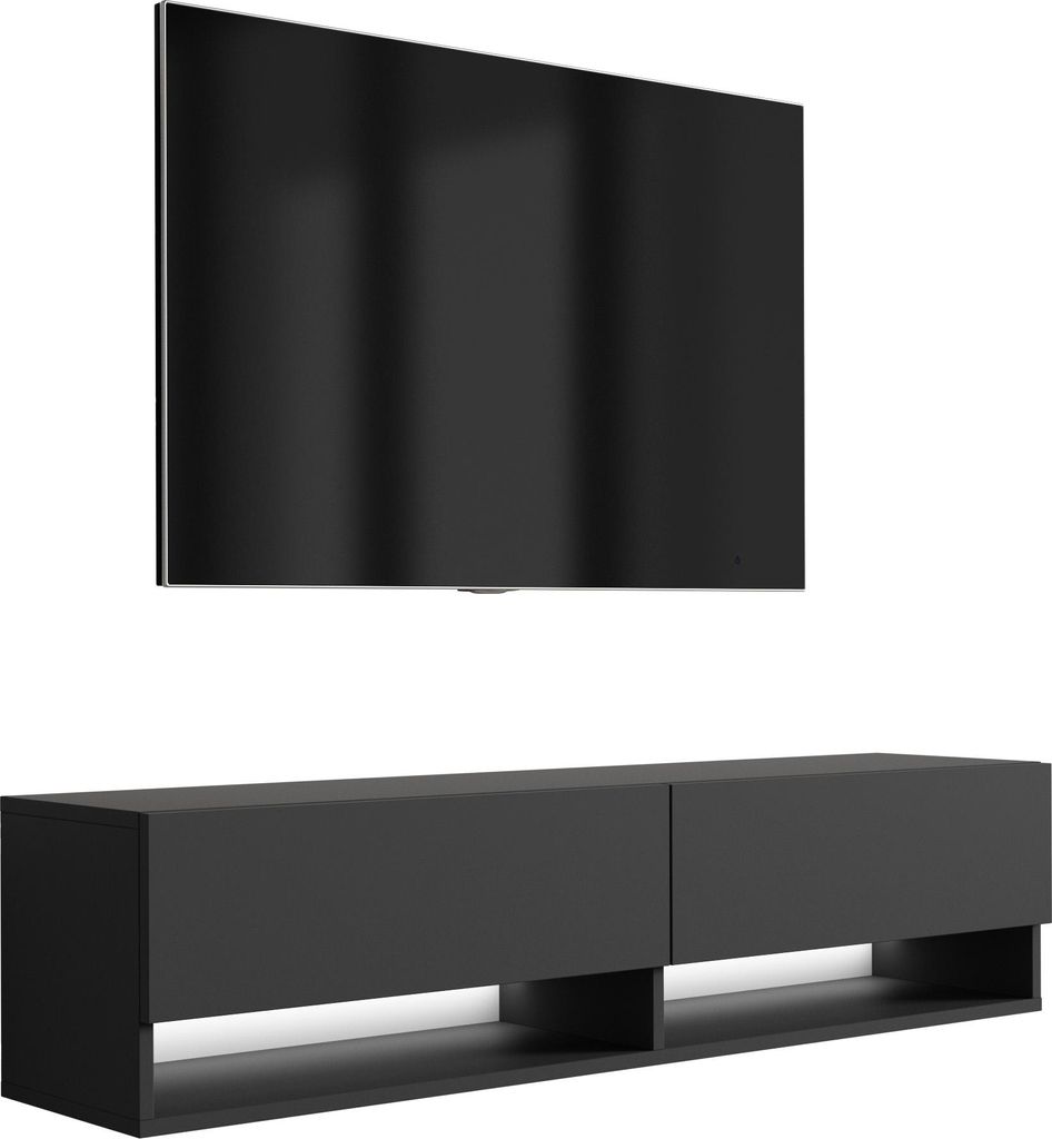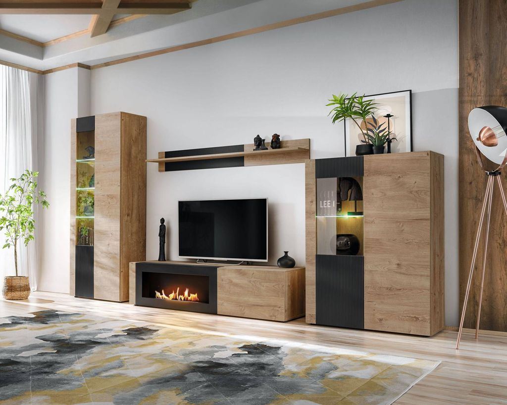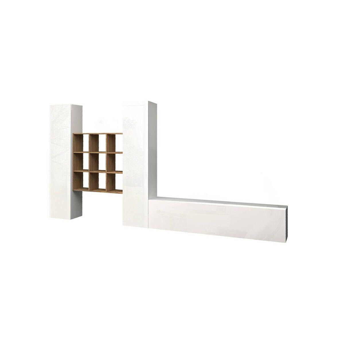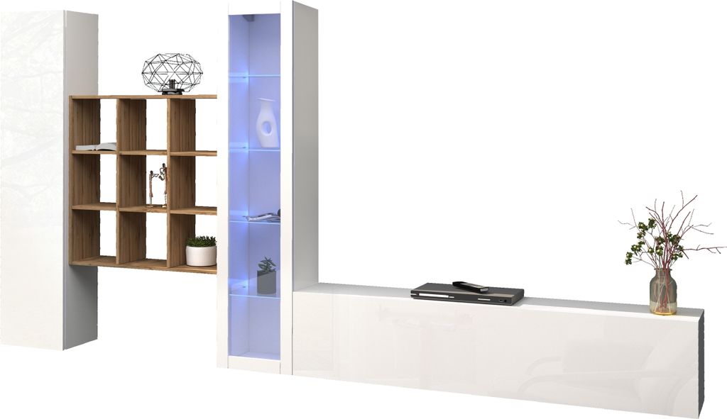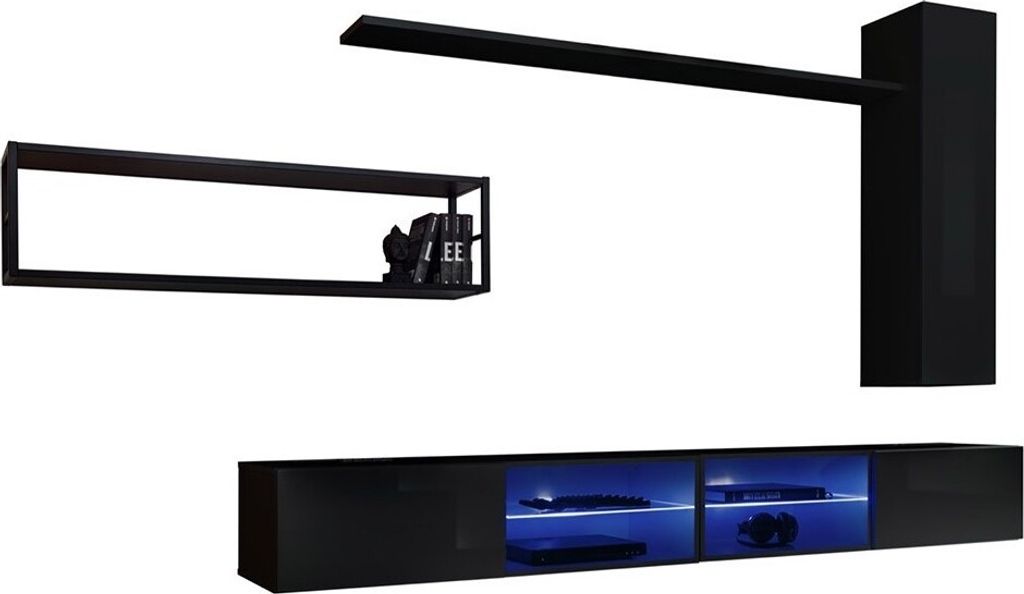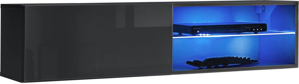 Furnitech Wohnwand Wohnzimmer - Wohnzimmer Möbel mit LED Blau - Hängend Wohnwand Modern - Wohnzimmer Schrankwand(Future C1/HG/WB/3 1A)