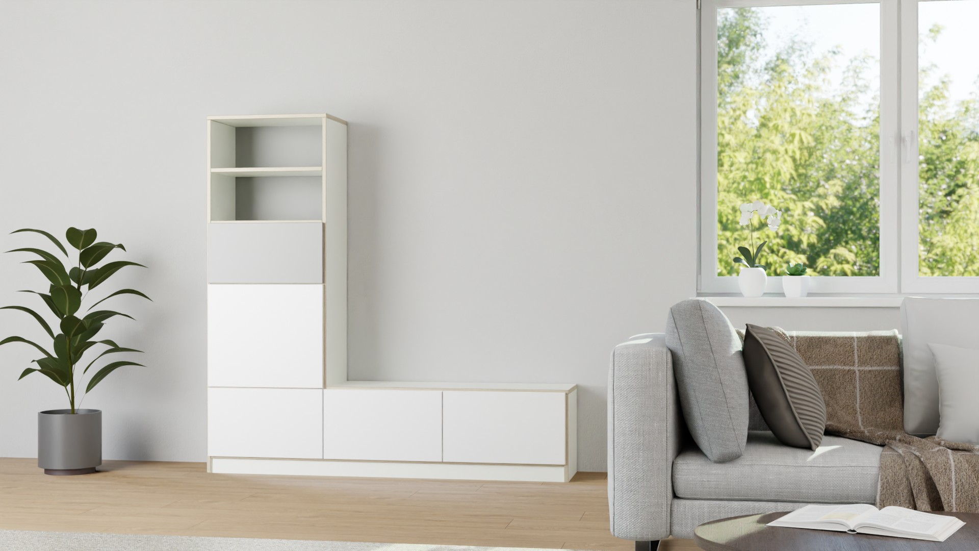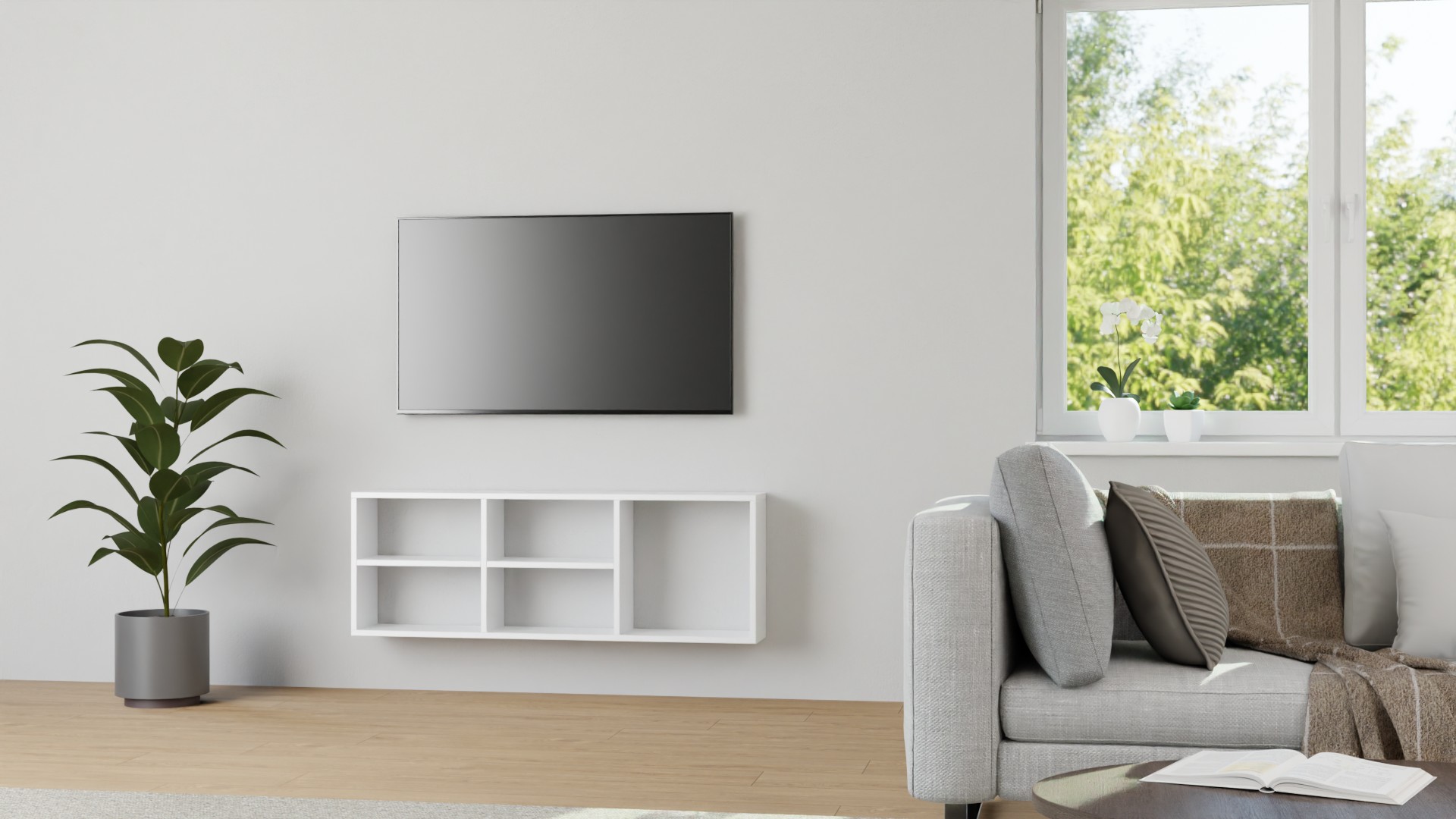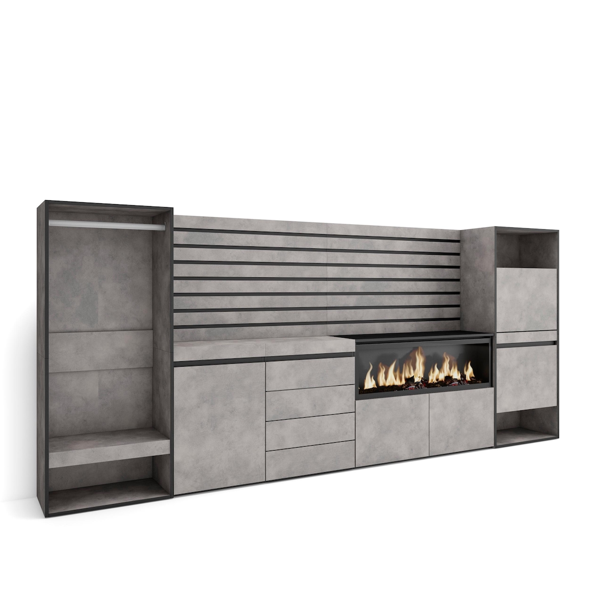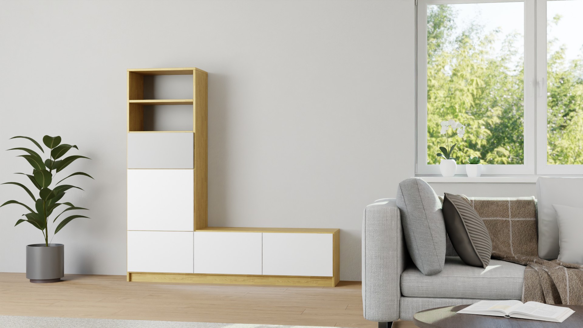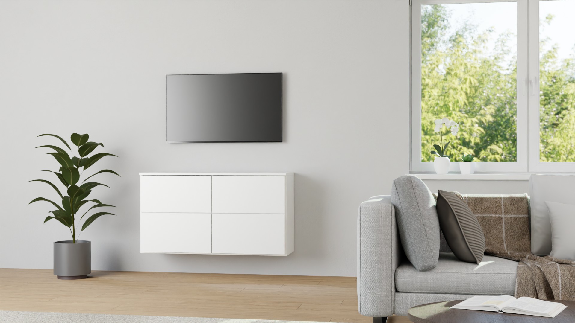 Furnitech Wohnwand Wohnzimmer - Wohnzimmer Möbel mit LED Blau - Hängend Wohnwand Modern - Wohnzimmer Schrankwand(Future C1/HG/WB/3 1A)