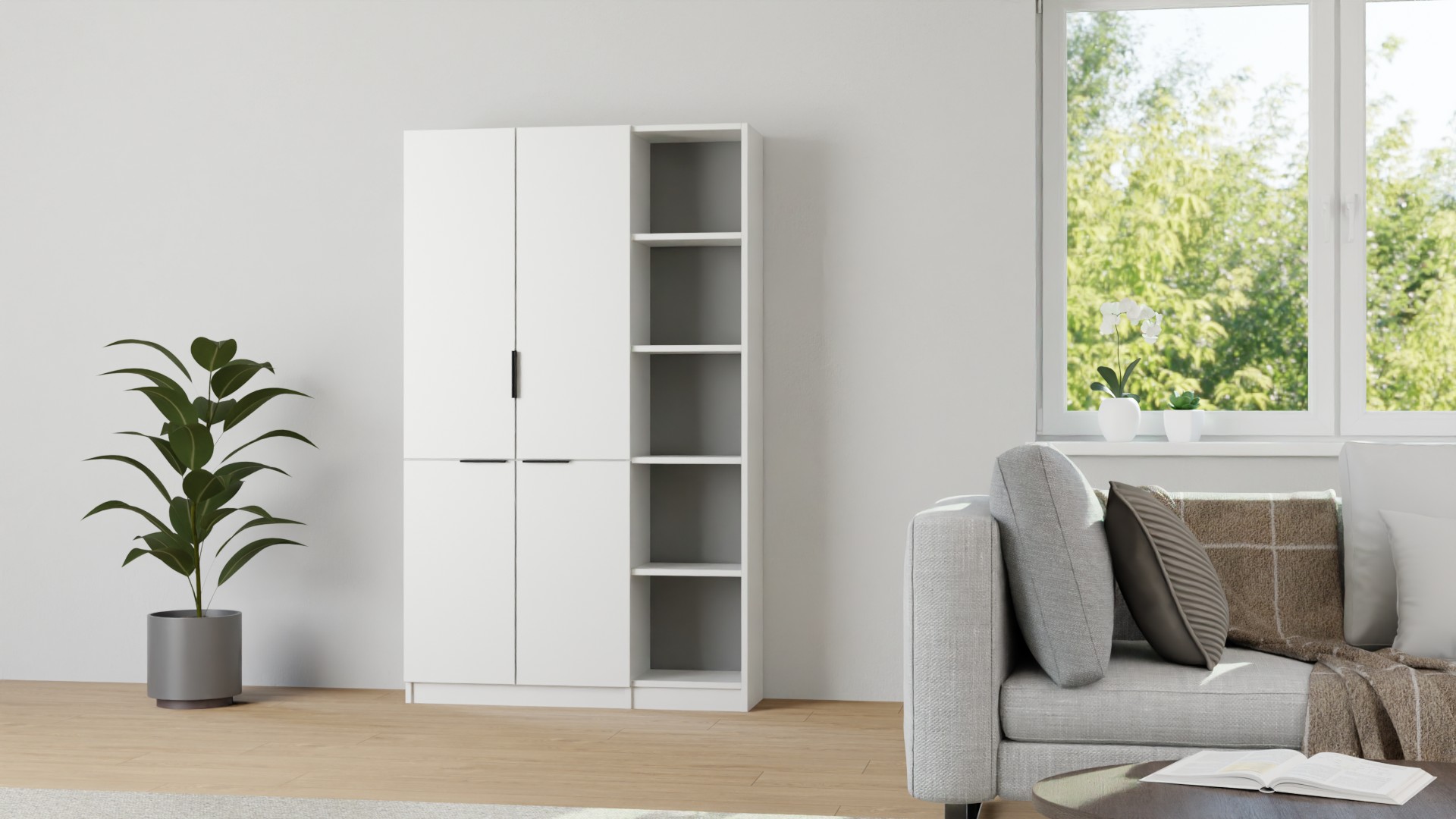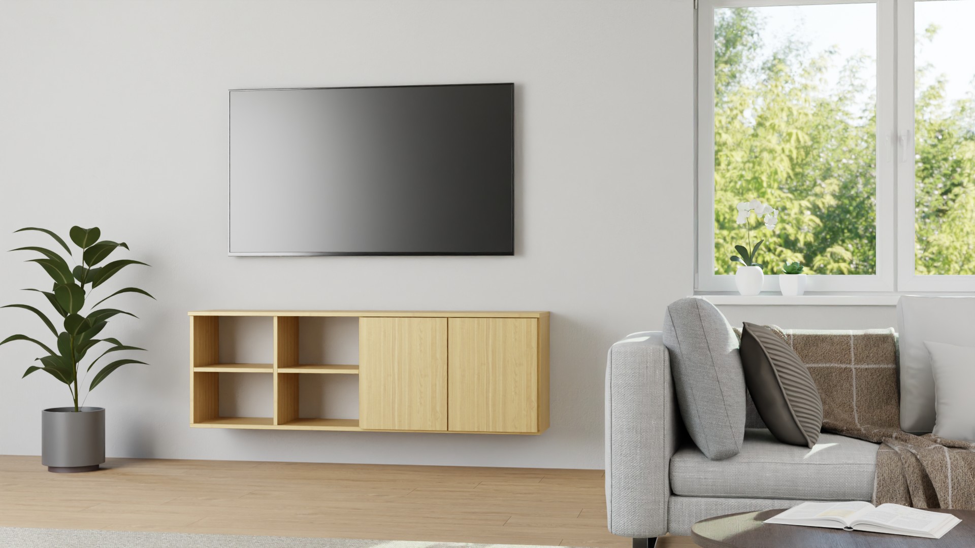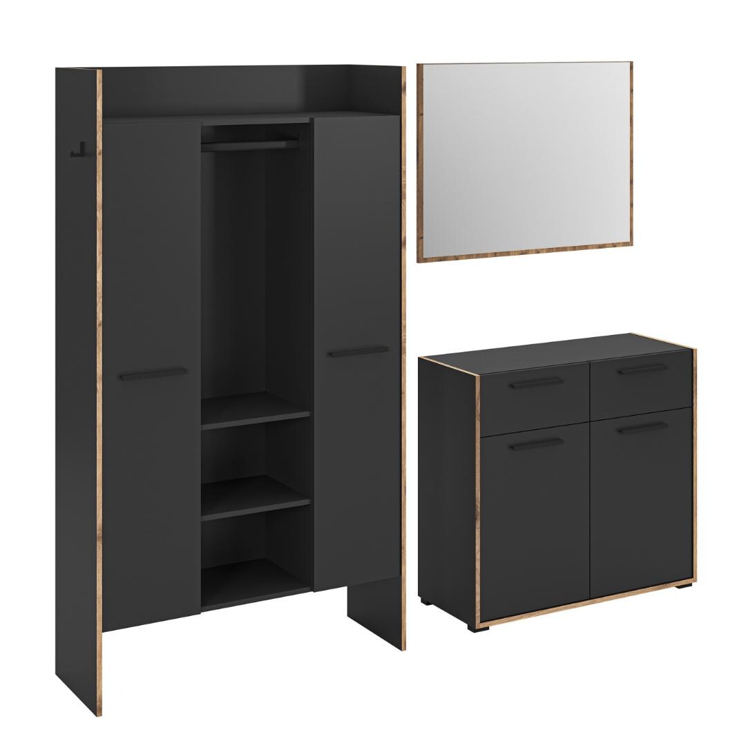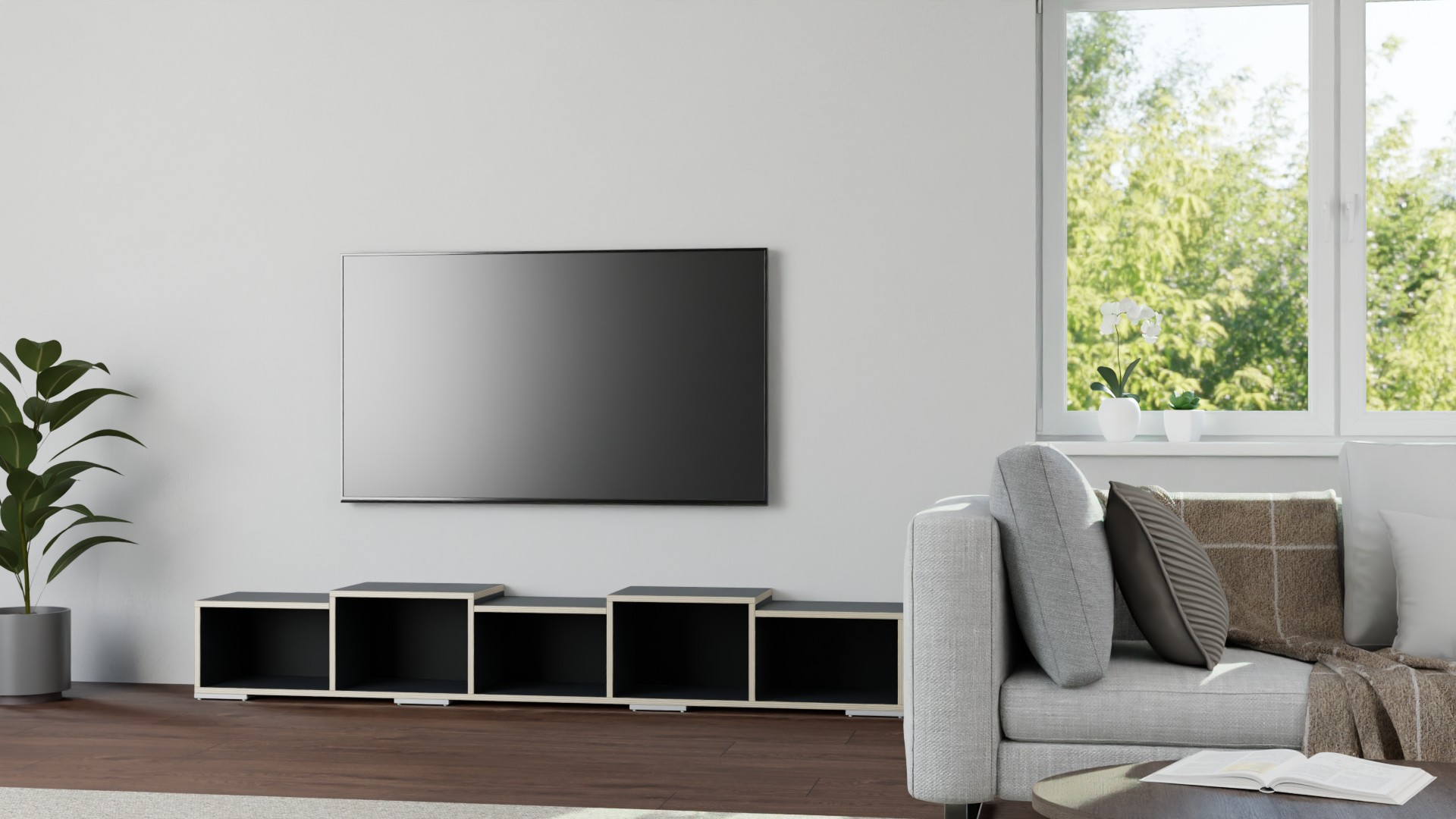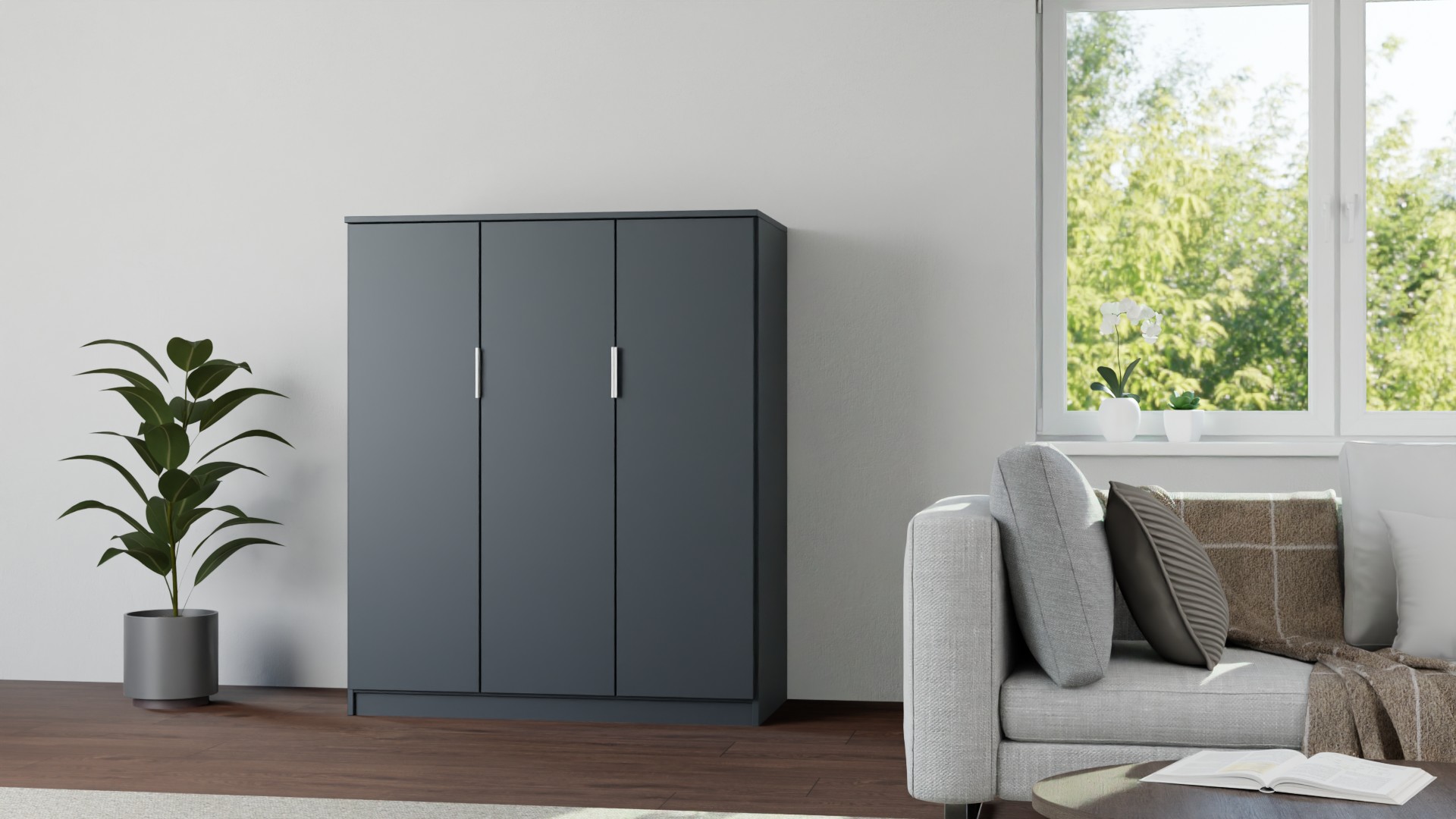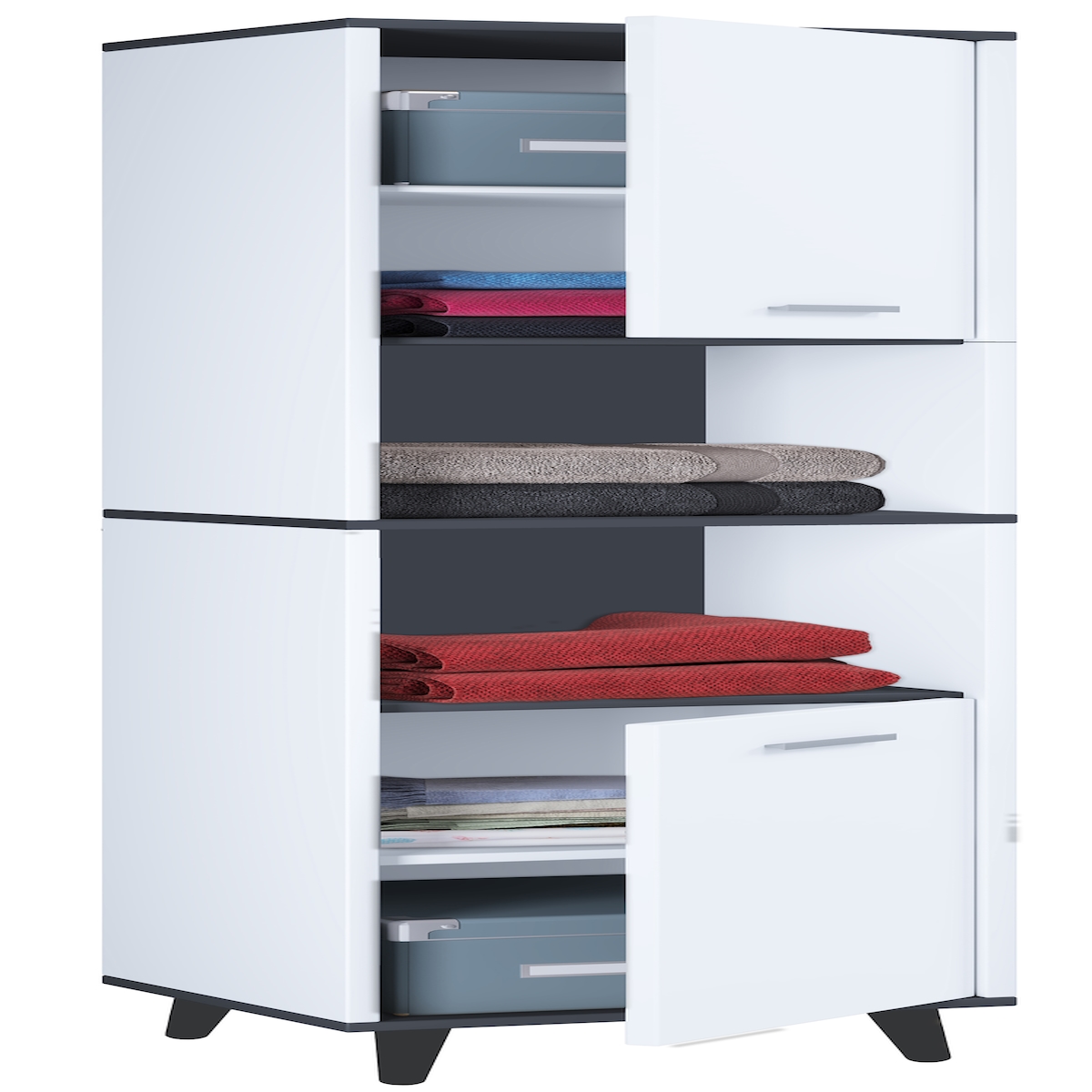 Furnitech Wohnwand Wohnzimmer - Wohnzimmer Möbel mit LED Blau - Hängend Wohnwand Modern - Wohnzimmer Schrankwand(Future C1/HG/WB/3 1A)