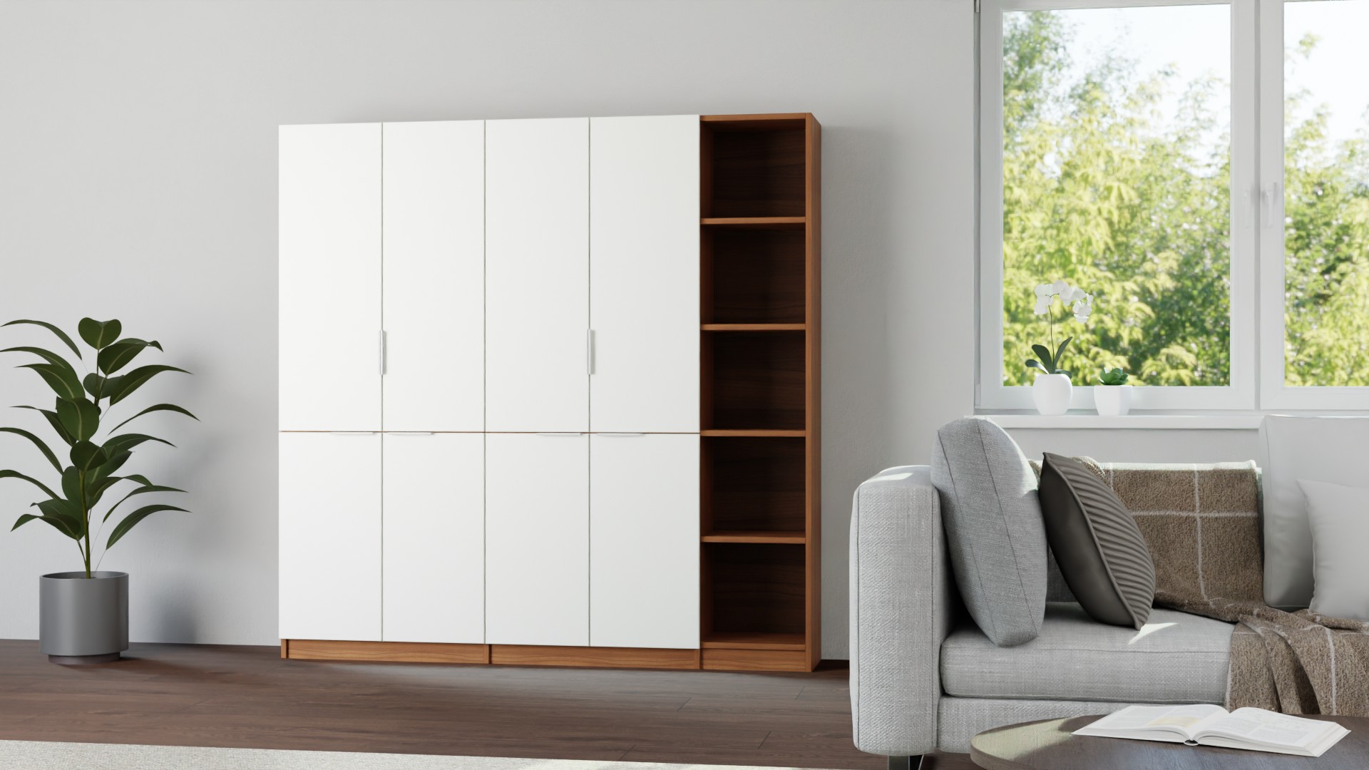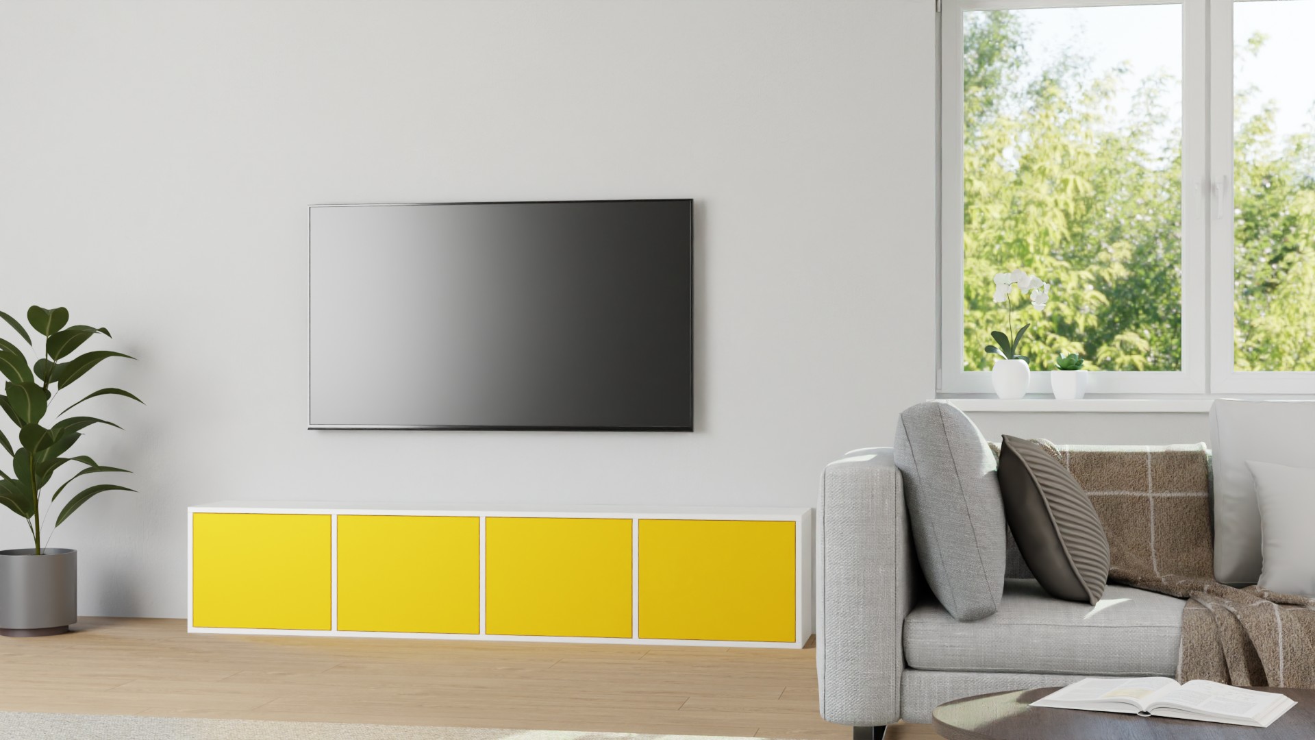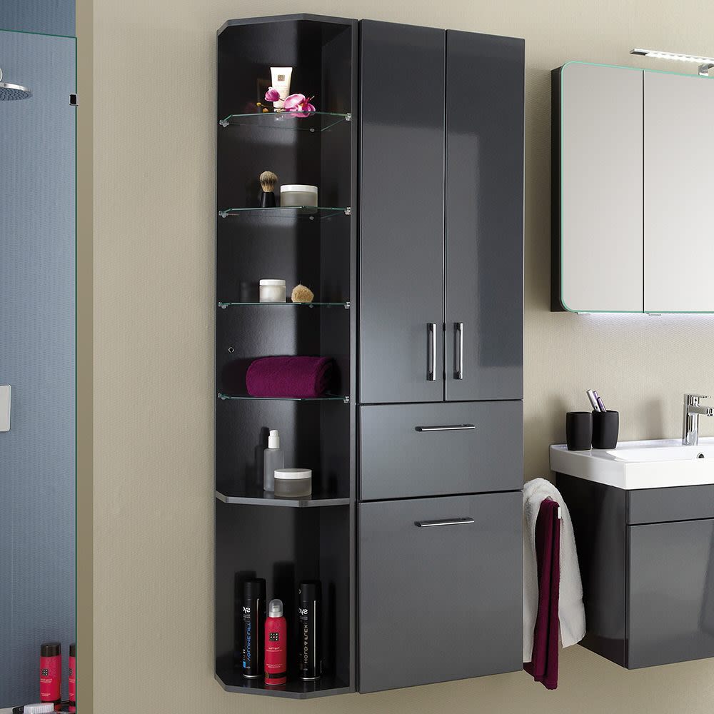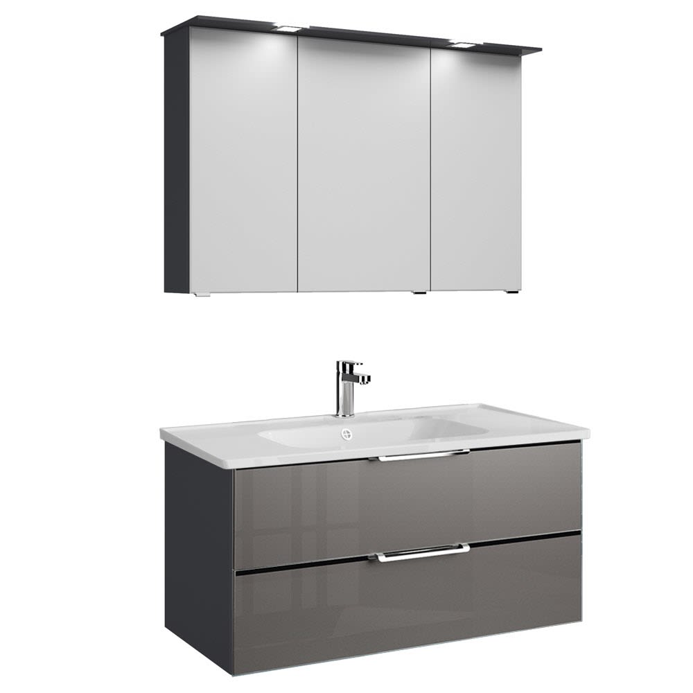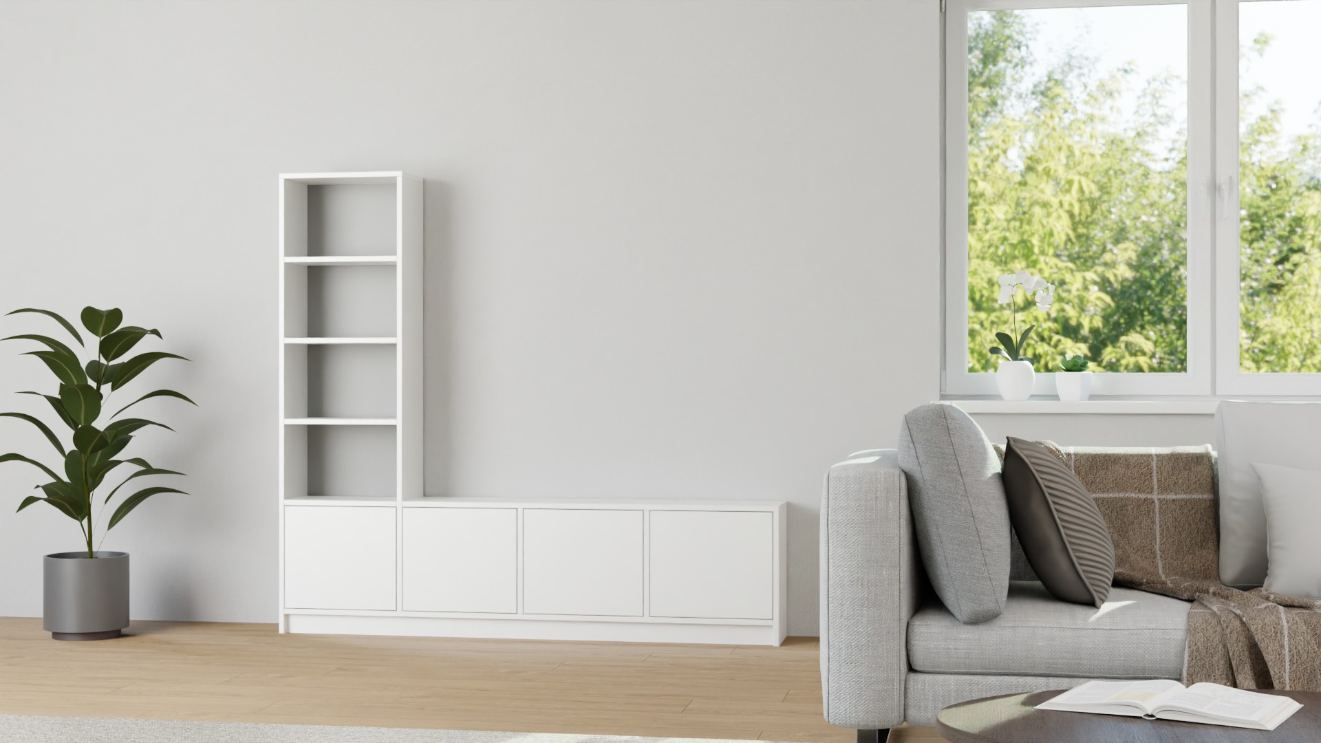 Furnitech Wohnwand Wohnzimmer - Wohnzimmer Möbel mit LED Blau - Hängend Wohnwand Modern - Wohnzimmer Schrankwand(Future C1/HG/WB/3 1A)