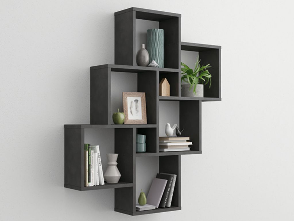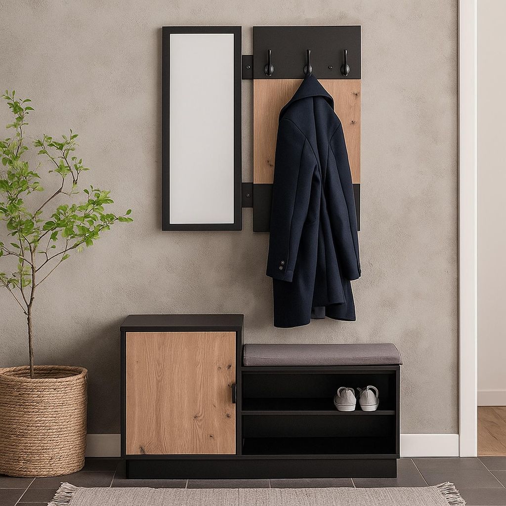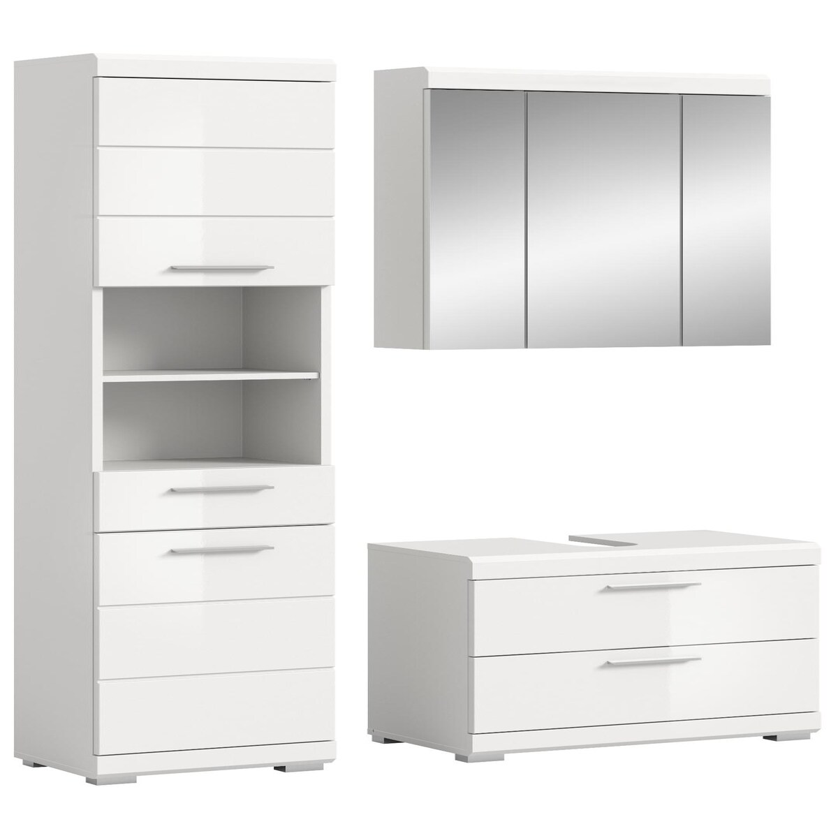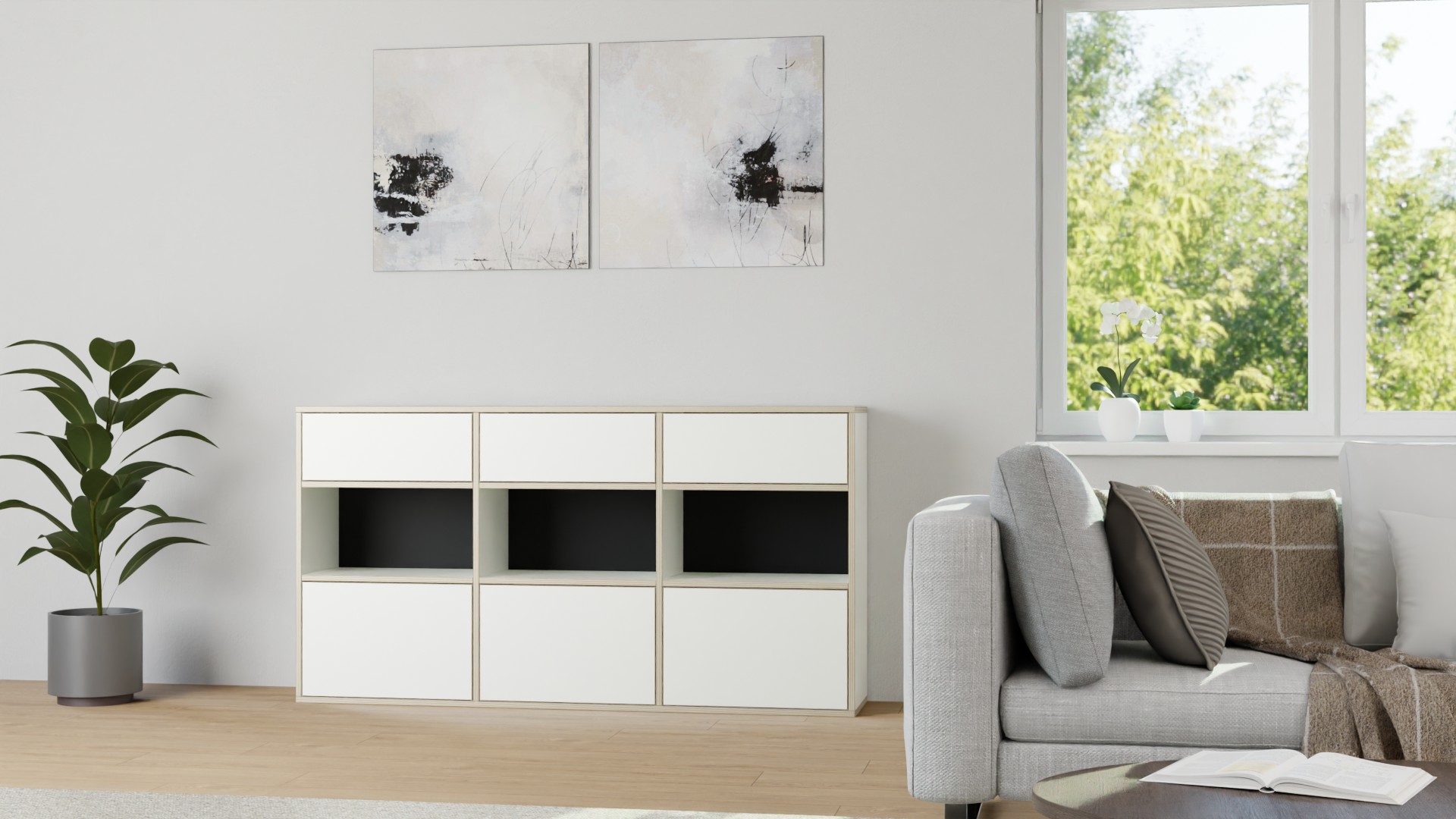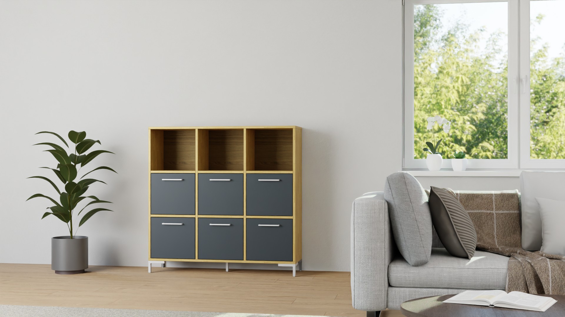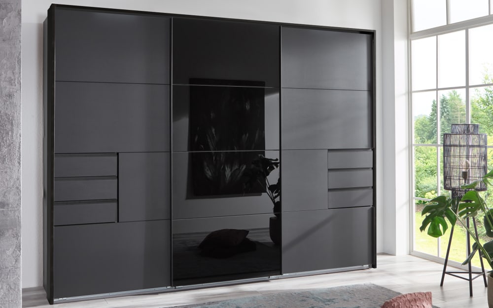 Furnitech Wohnwand Wohnzimmer - Wohnzimmer Möbel mit LED Blau - Hängend Wohnwand Modern - Wohnzimmer Schrankwand(Future C1/HG/WB/3 1A)