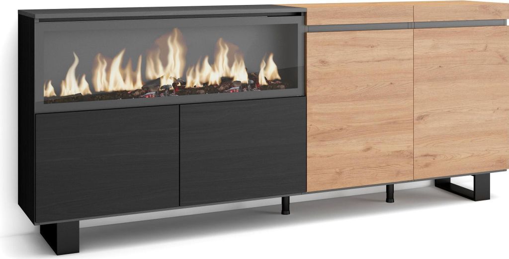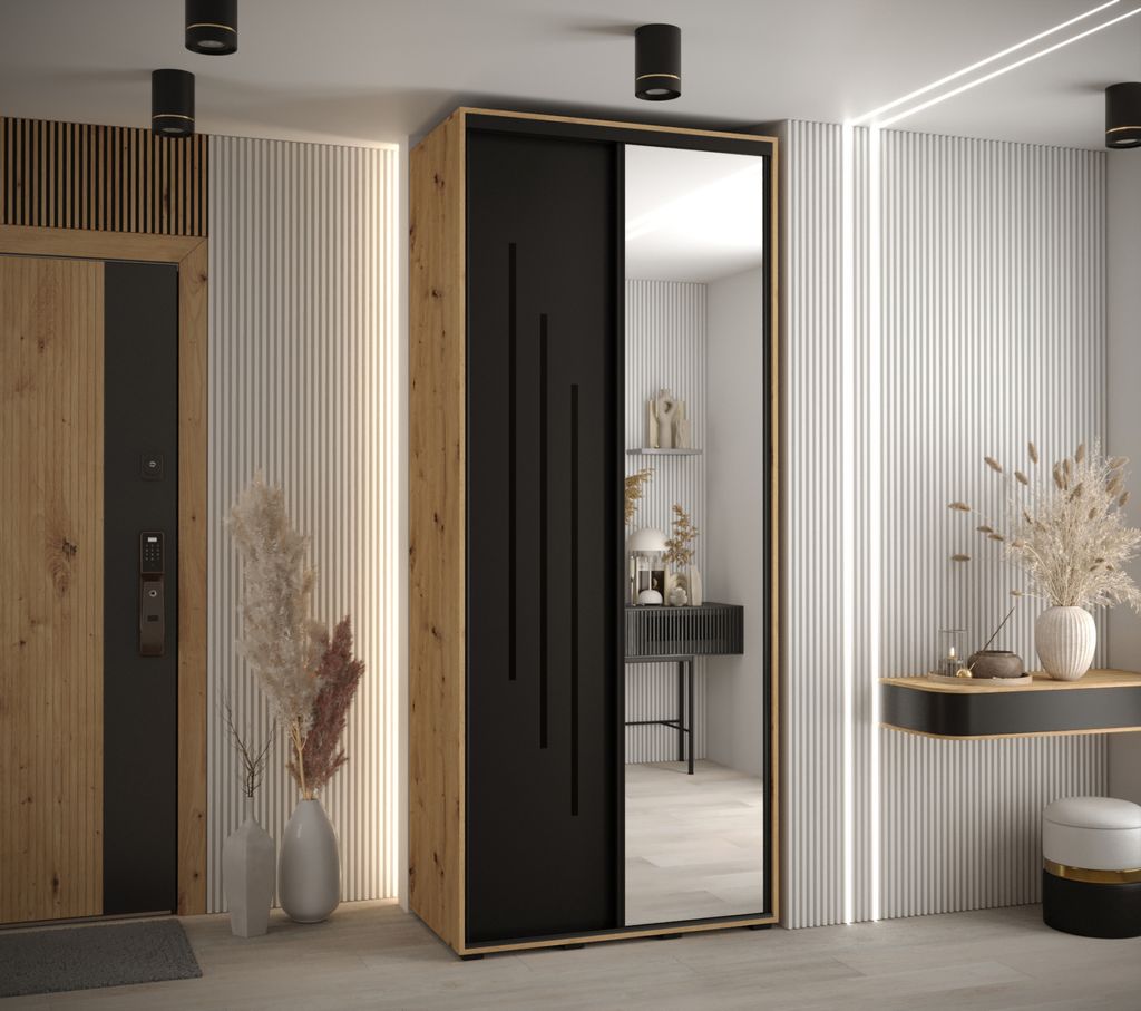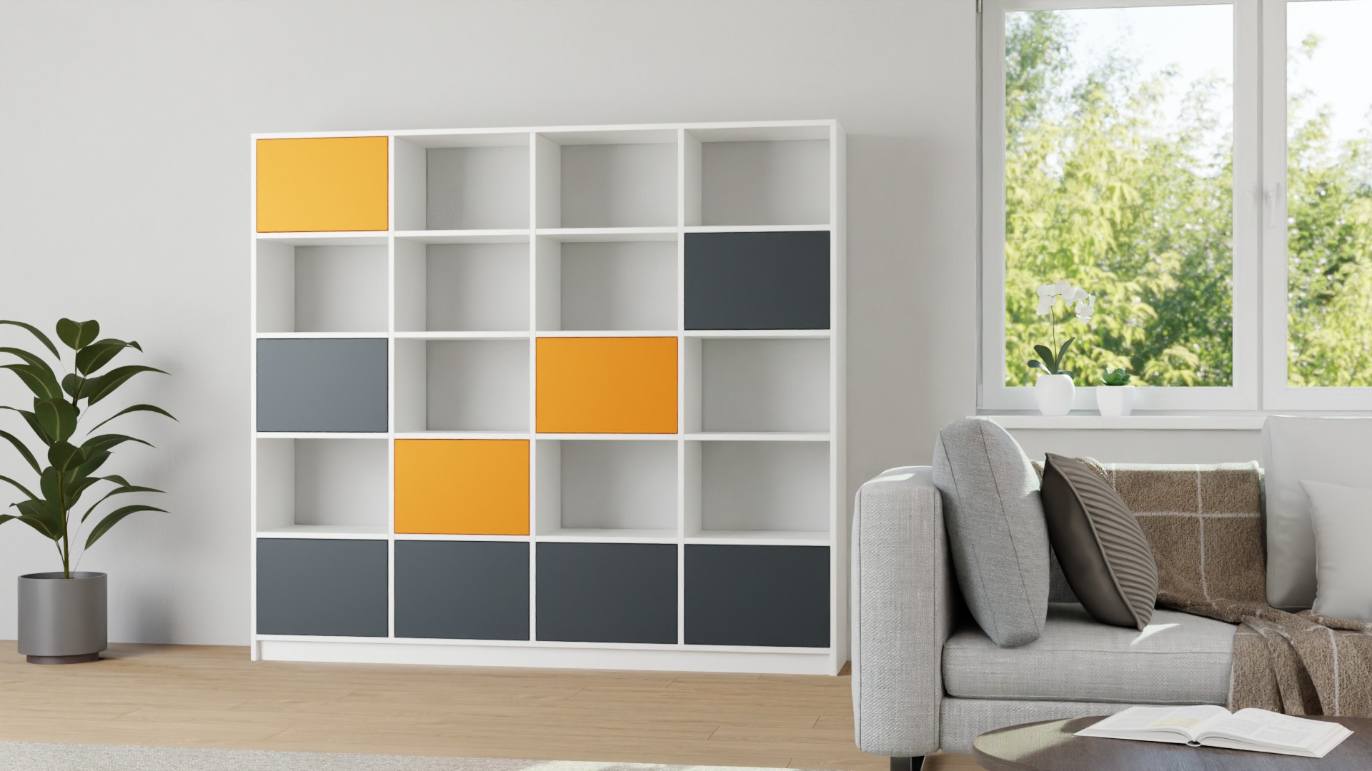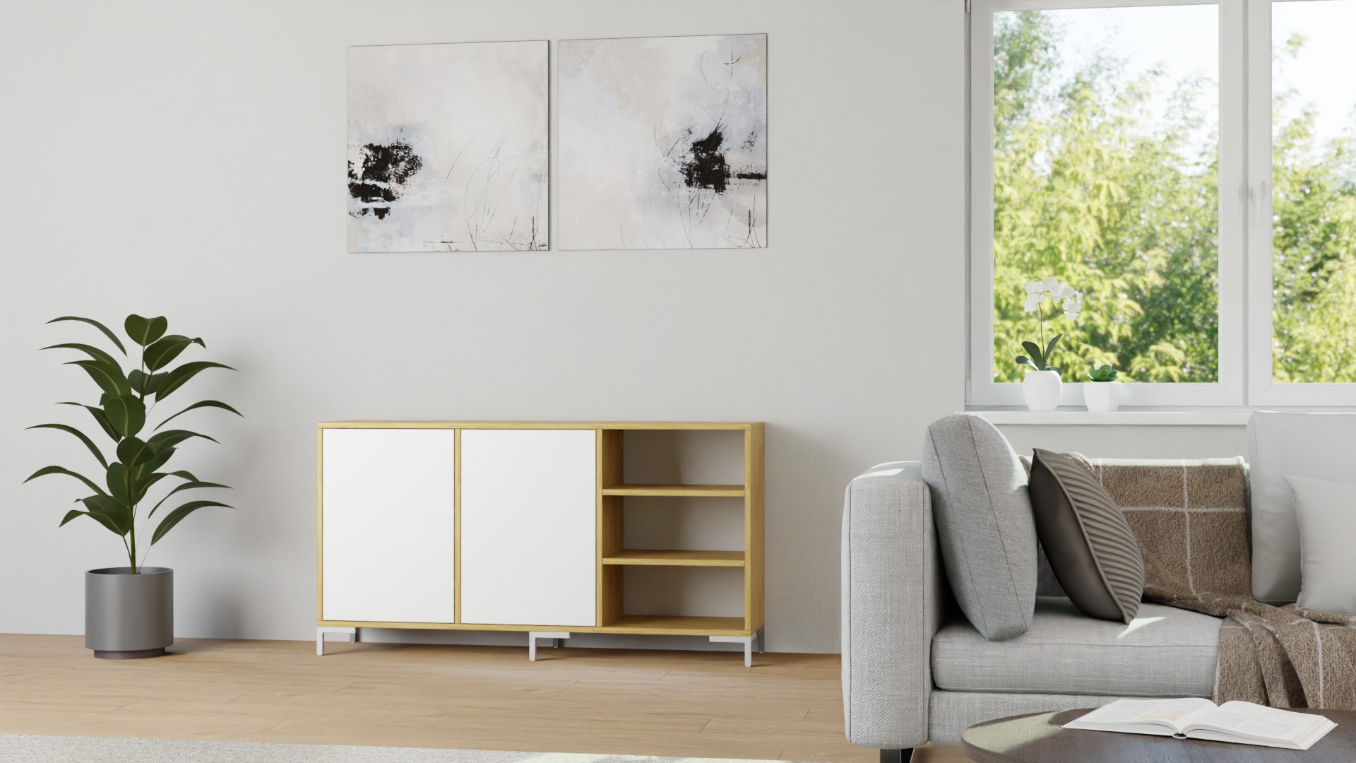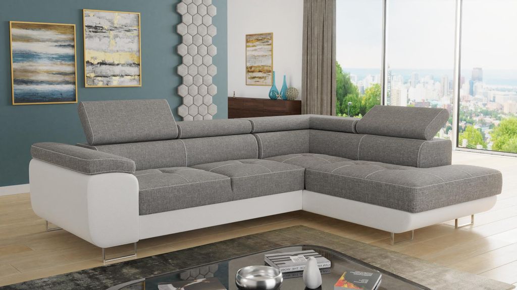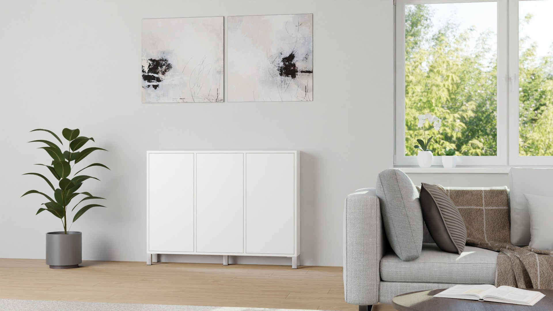 Furnitech Wohnwand Wohnzimmer - Wohnzimmer Möbel mit LED Blau - Hängend Wohnwand Modern - Wohnzimmer Schrankwand(Future C1/HG/WB/3 1A)