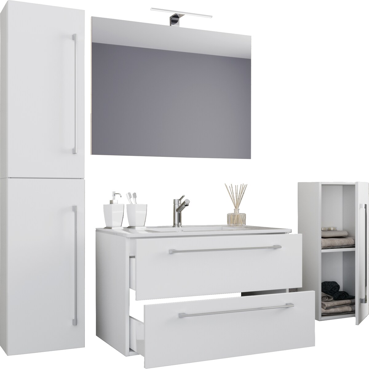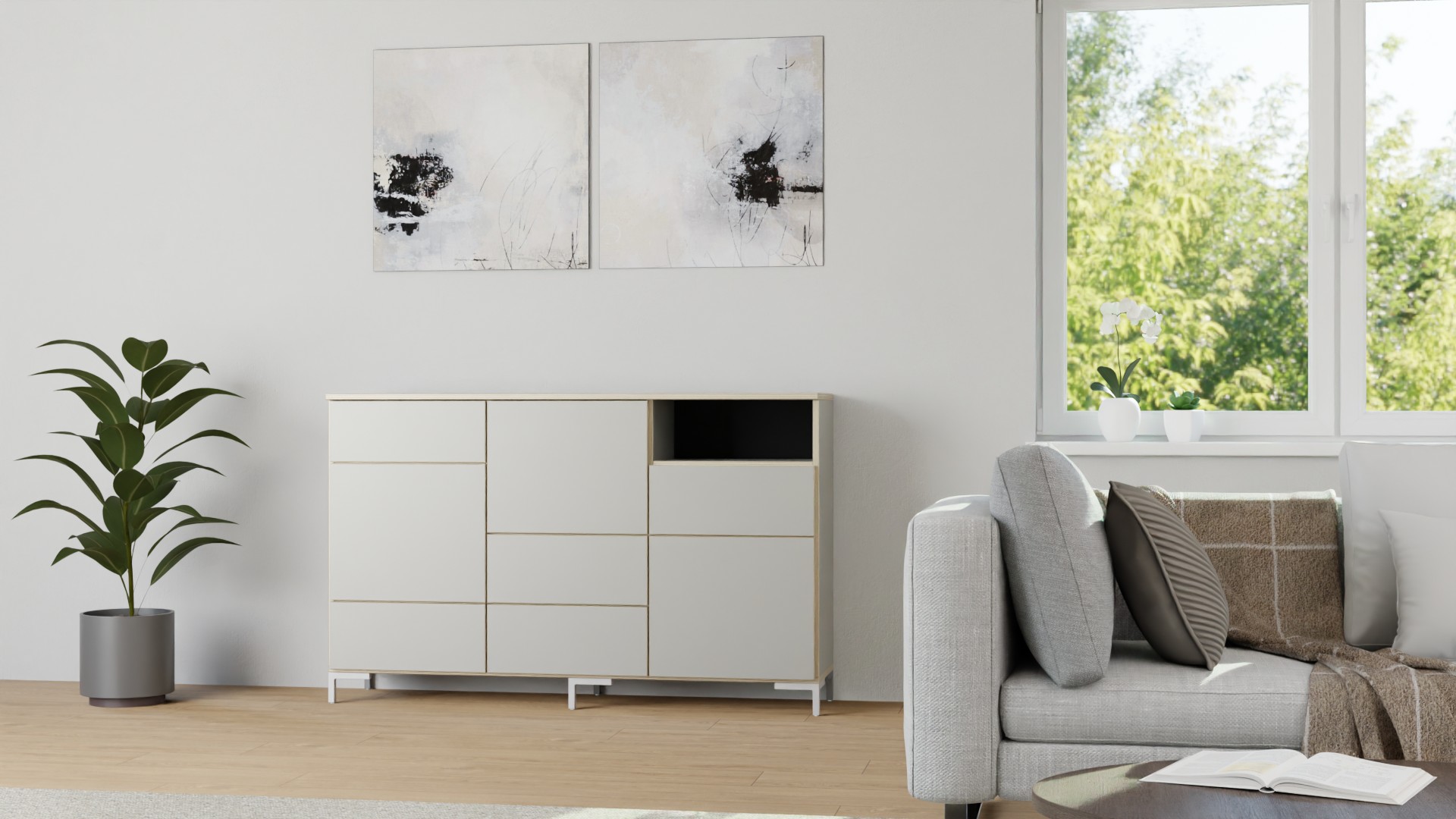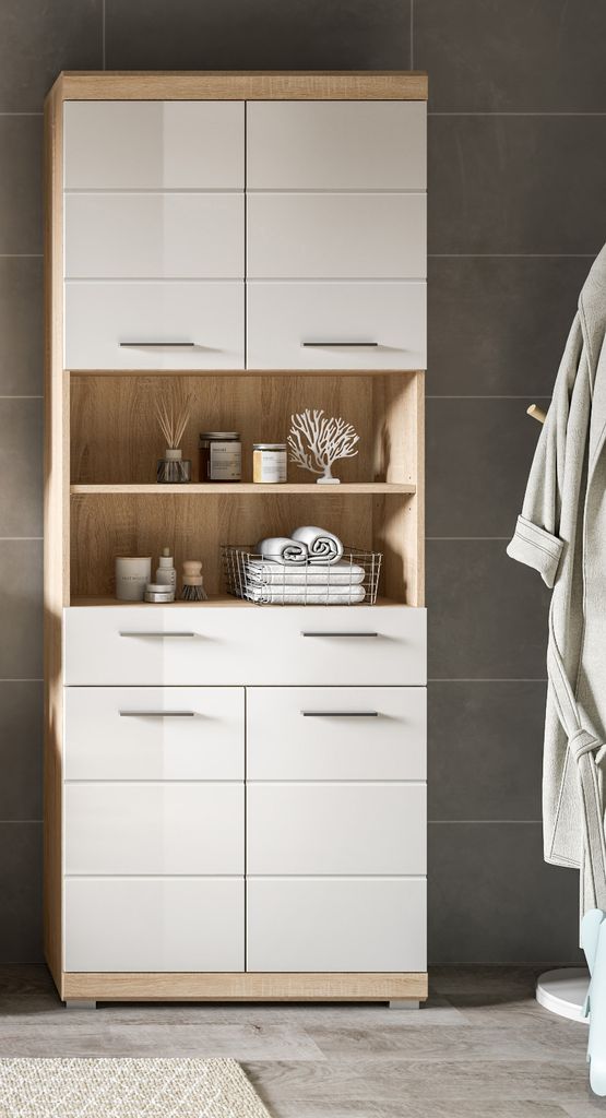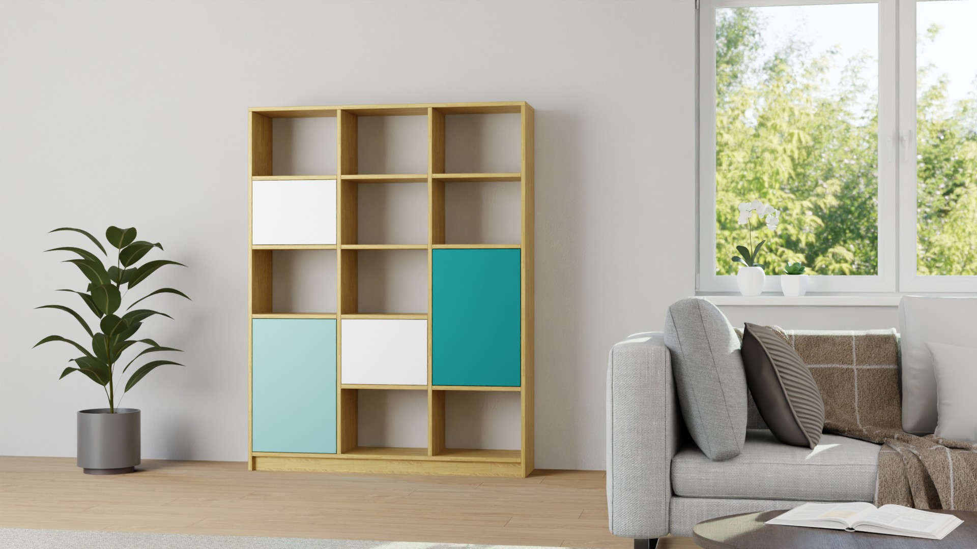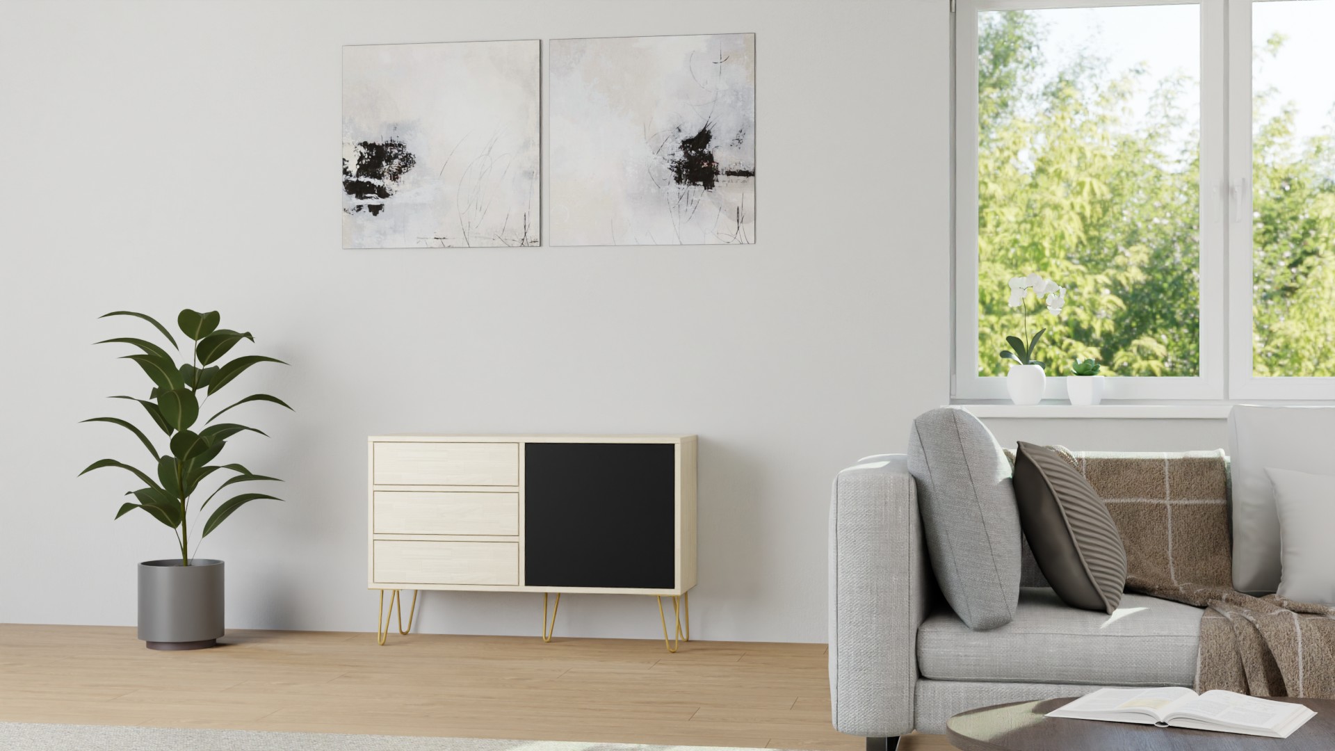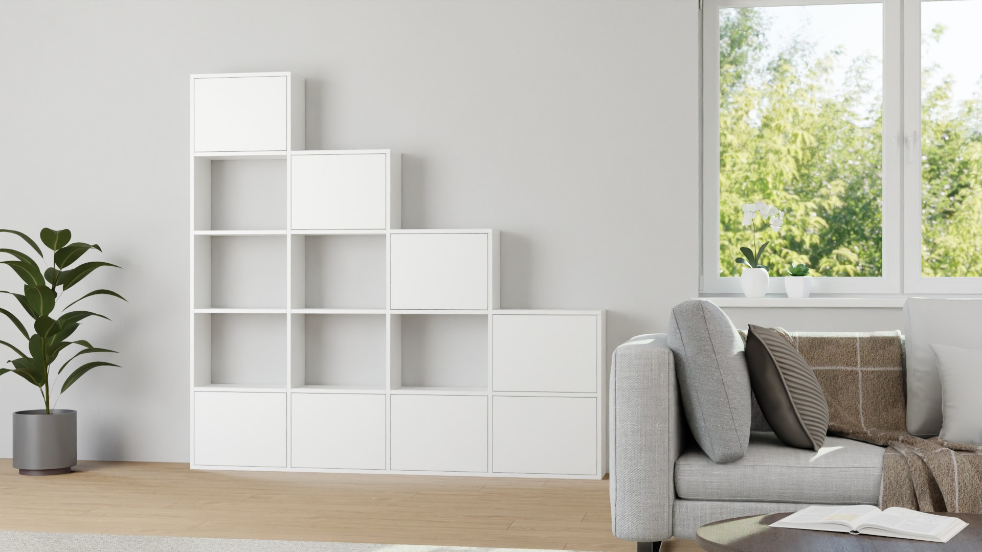 Furnitech Wohnwand Wohnzimmer - Wohnzimmer Möbel mit LED Blau - Hängend Wohnwand Modern - Wohnzimmer Schrankwand(Future C1/HG/WB/3 1A)