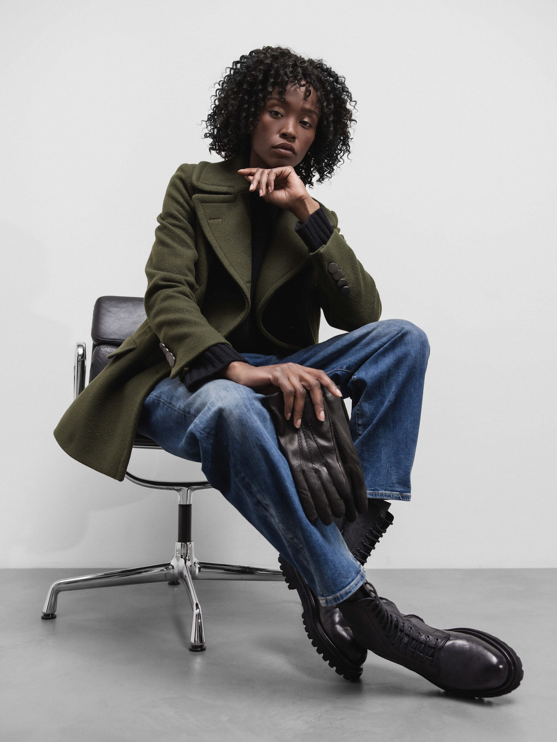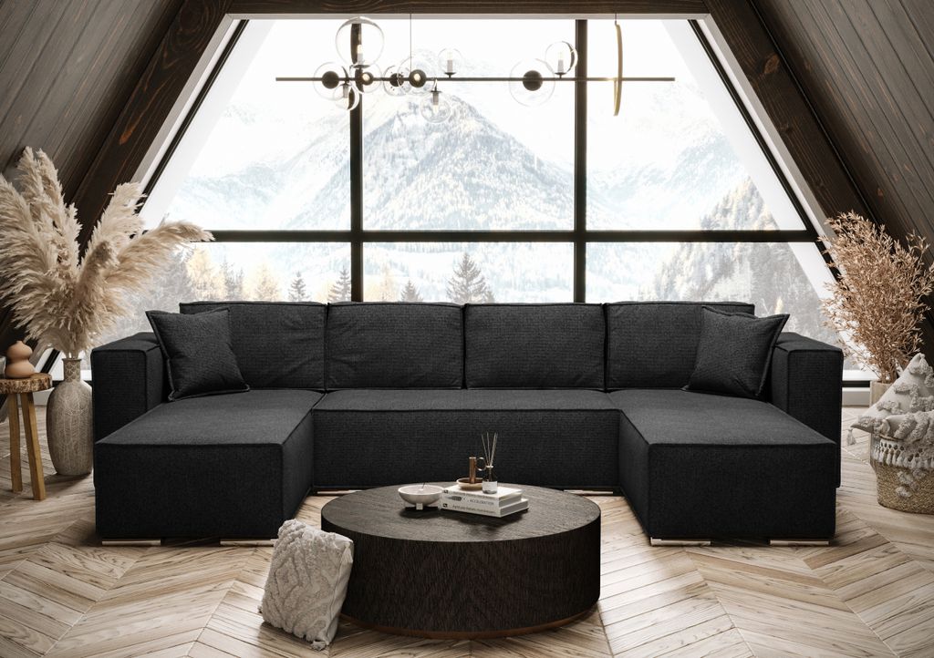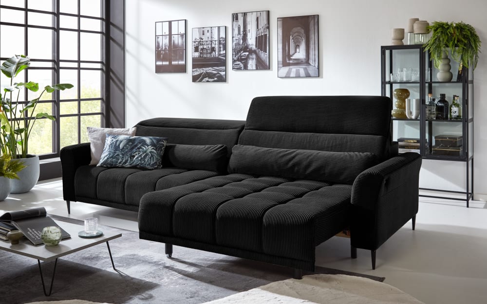 Rechtsseitiges Chaiselongue Covex Wood-Velluto 10-wax black