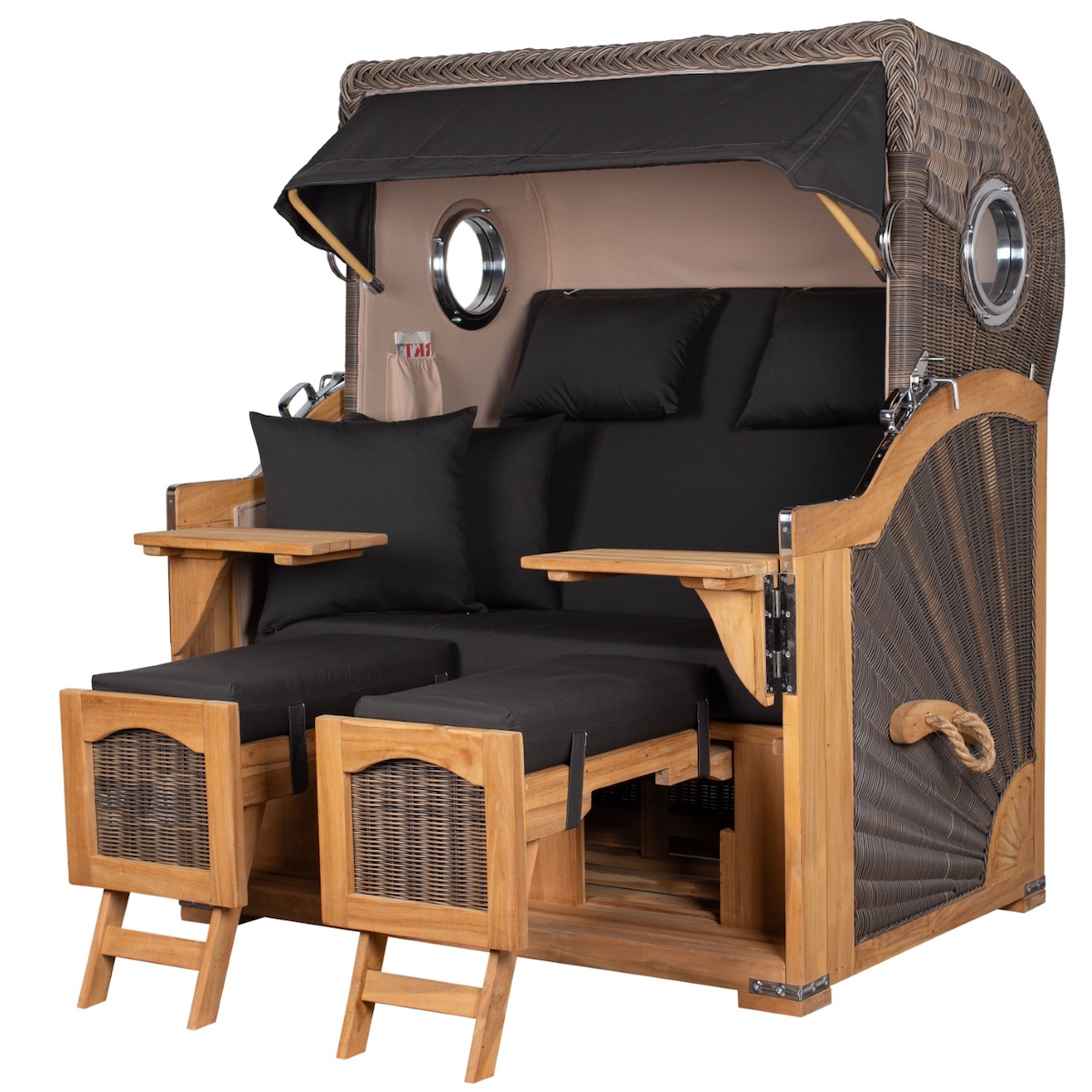 Mr. Deko Strandkorb - bene living - Ammersee Grande XL Teak Bullauge - PE grau - Modell 548 - 2,5-Sitzer inkl. Liftersystem