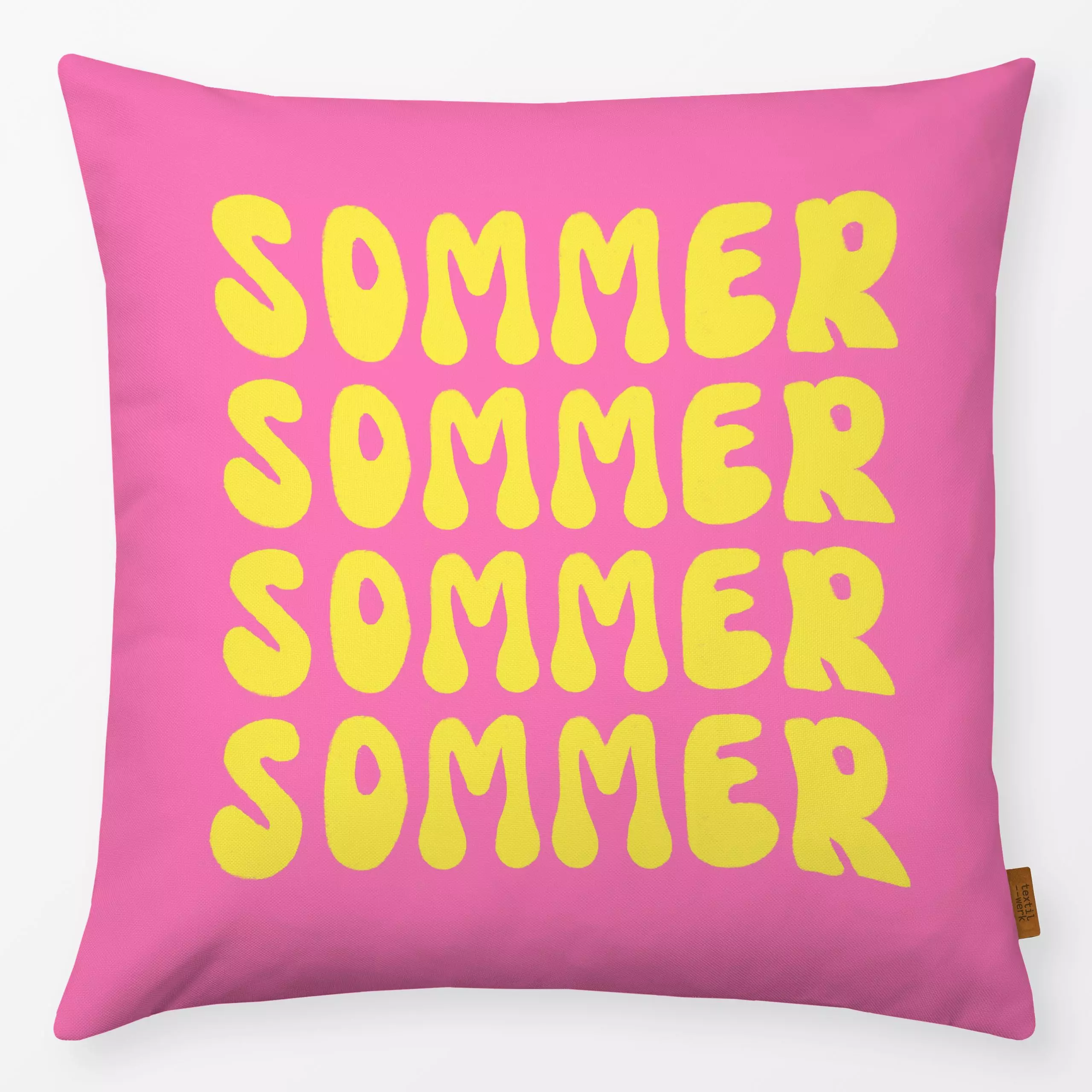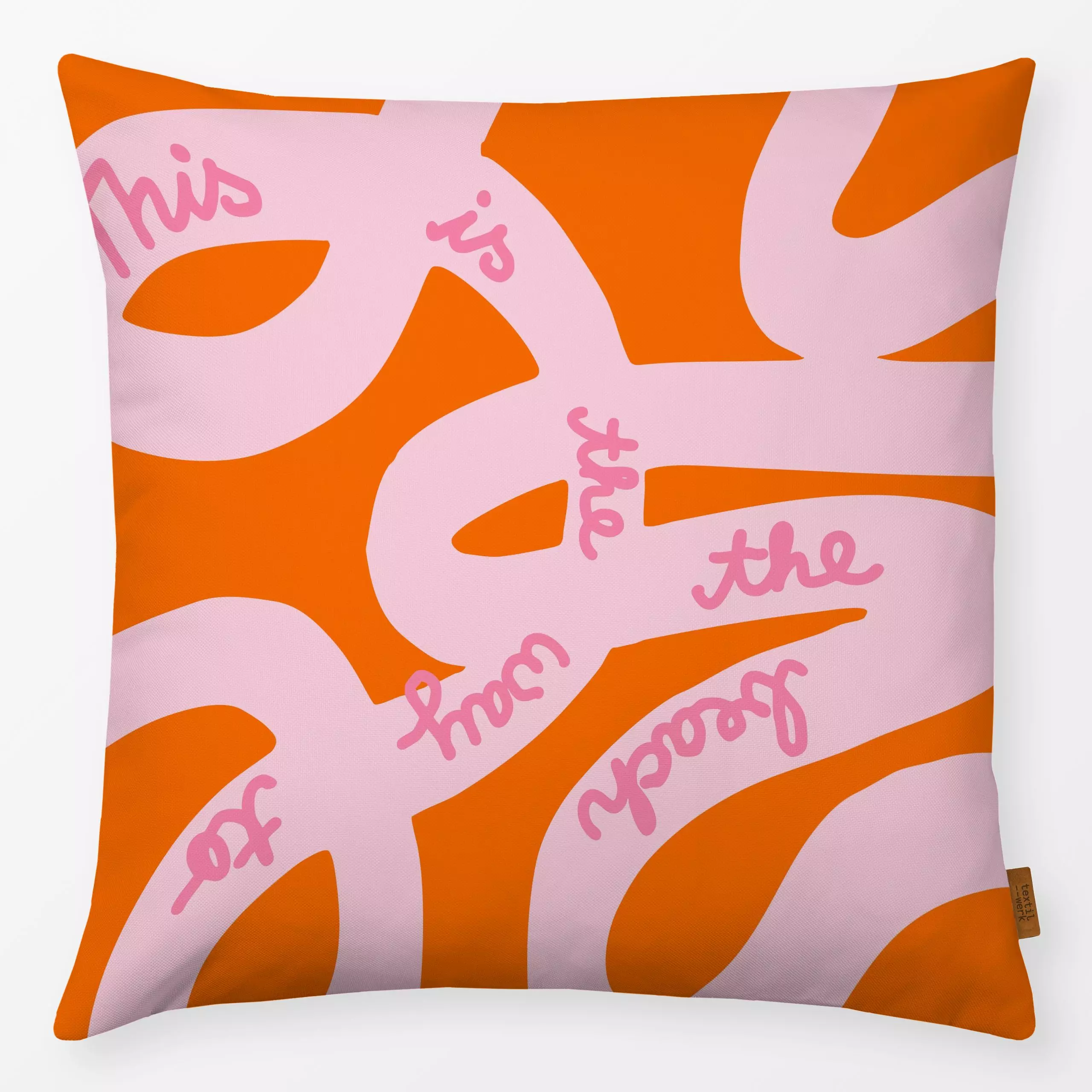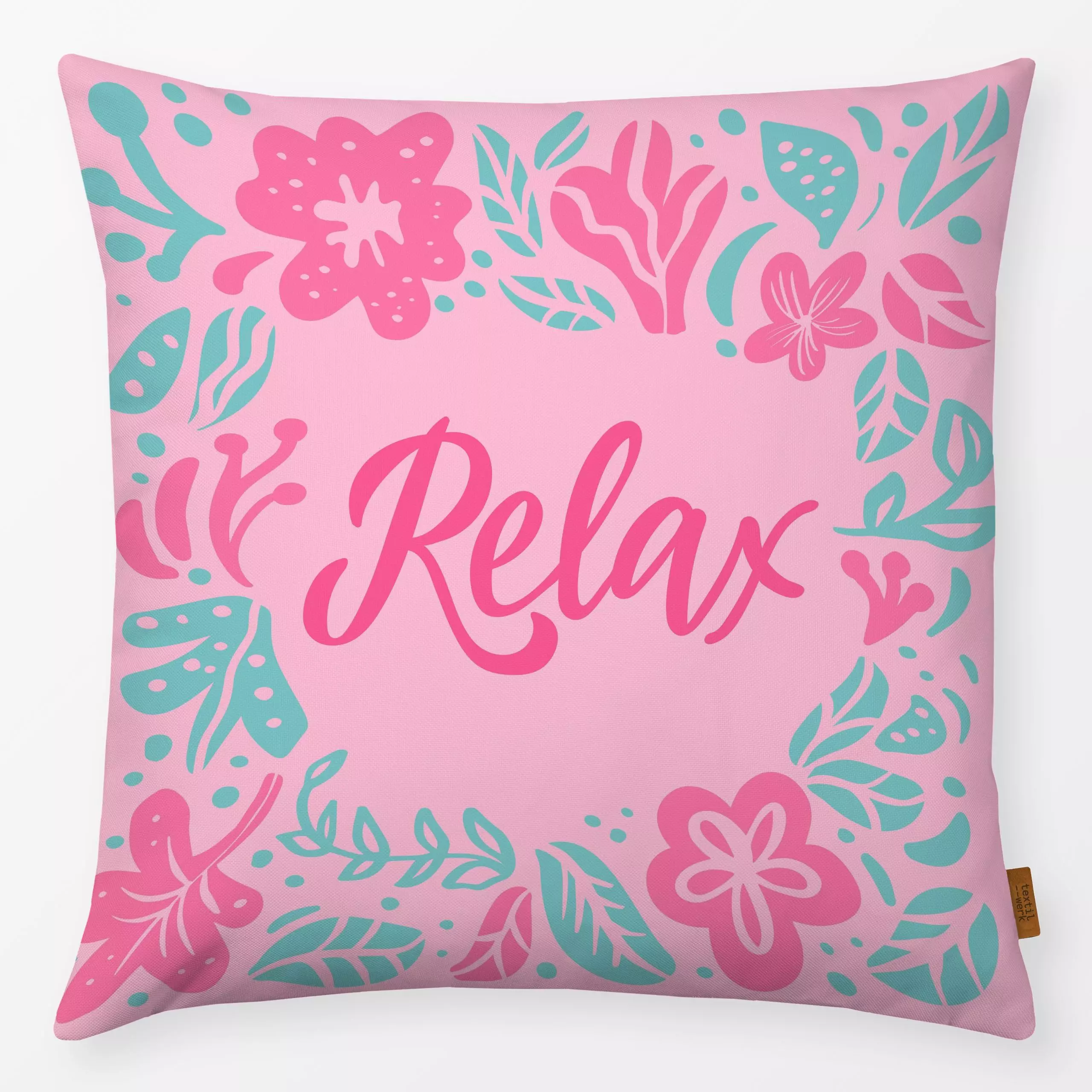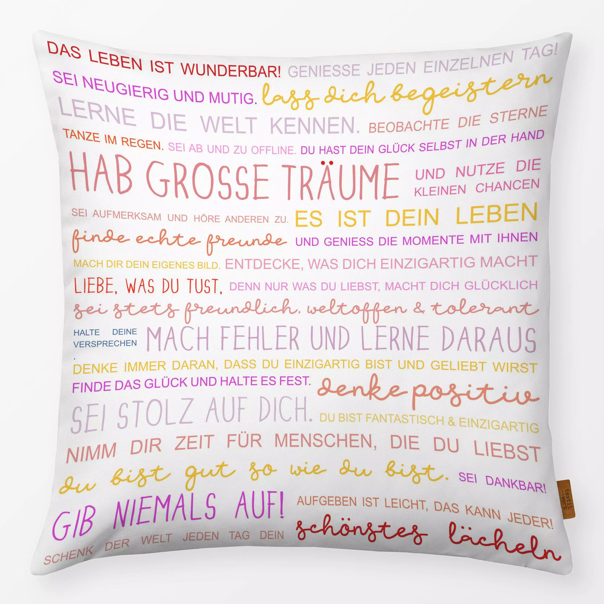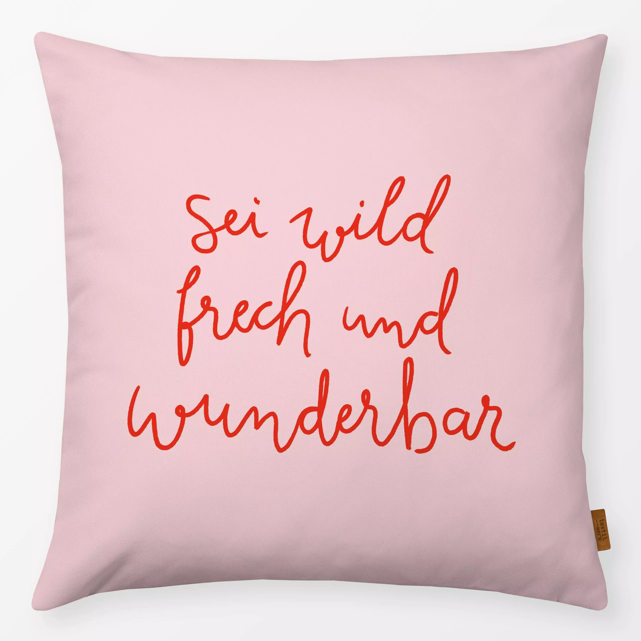 Dekokissen Sprüche drinnen / Indoor Zierkissen Canvas waschbar Design rosa Pop Art Sofakissen mit Füllung