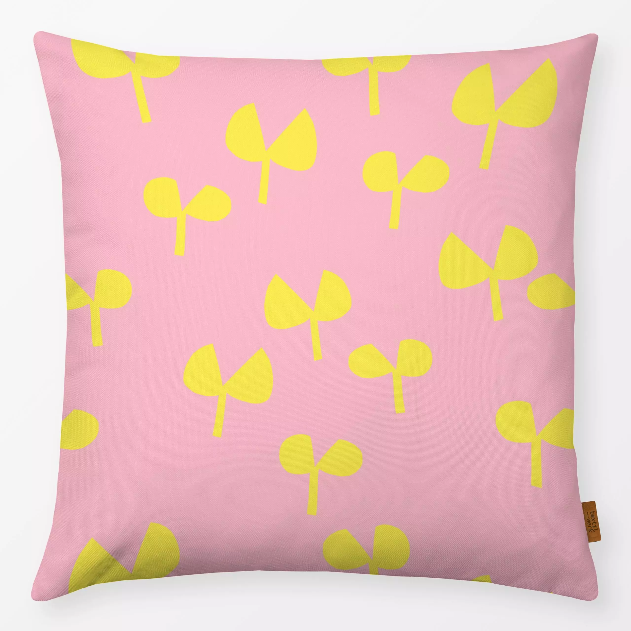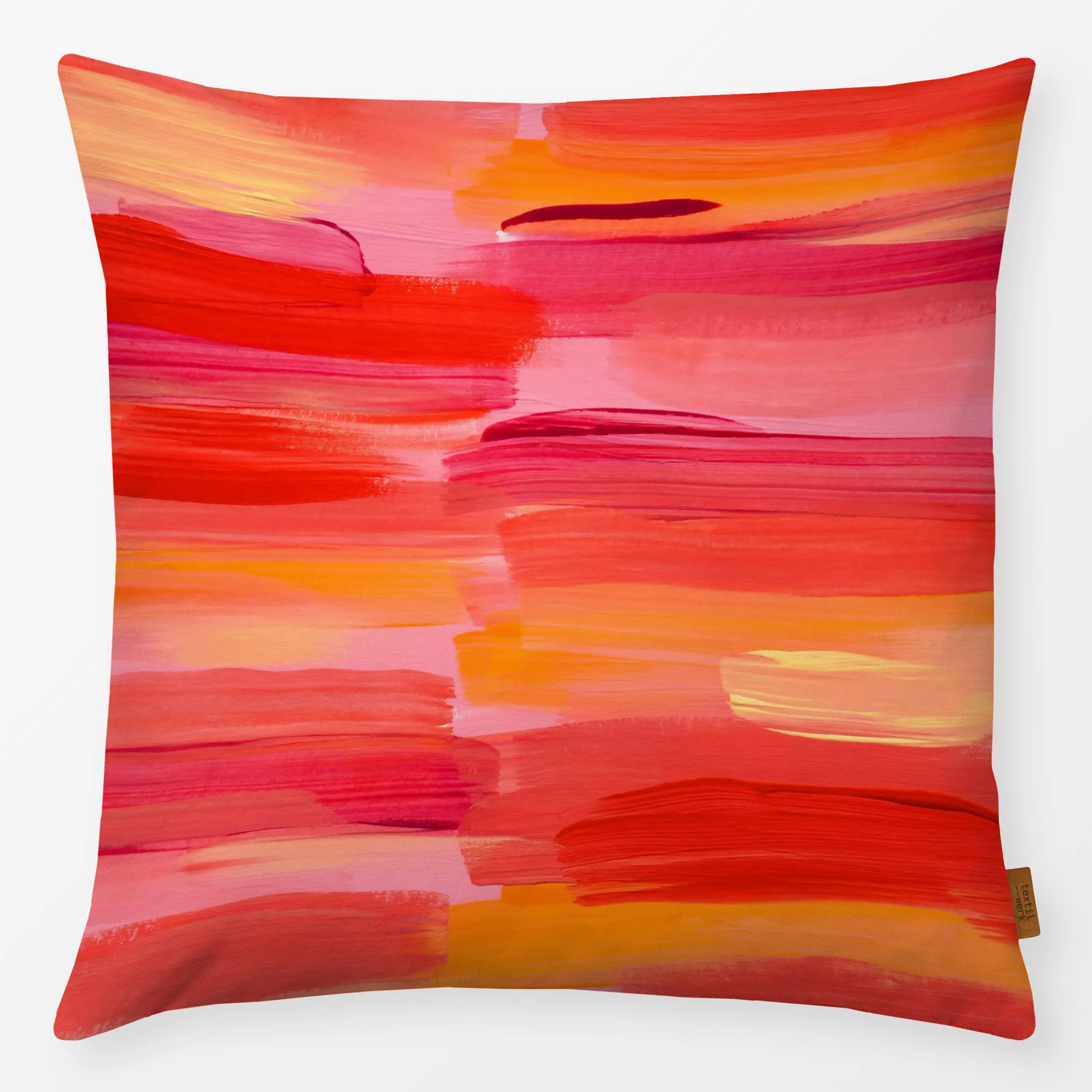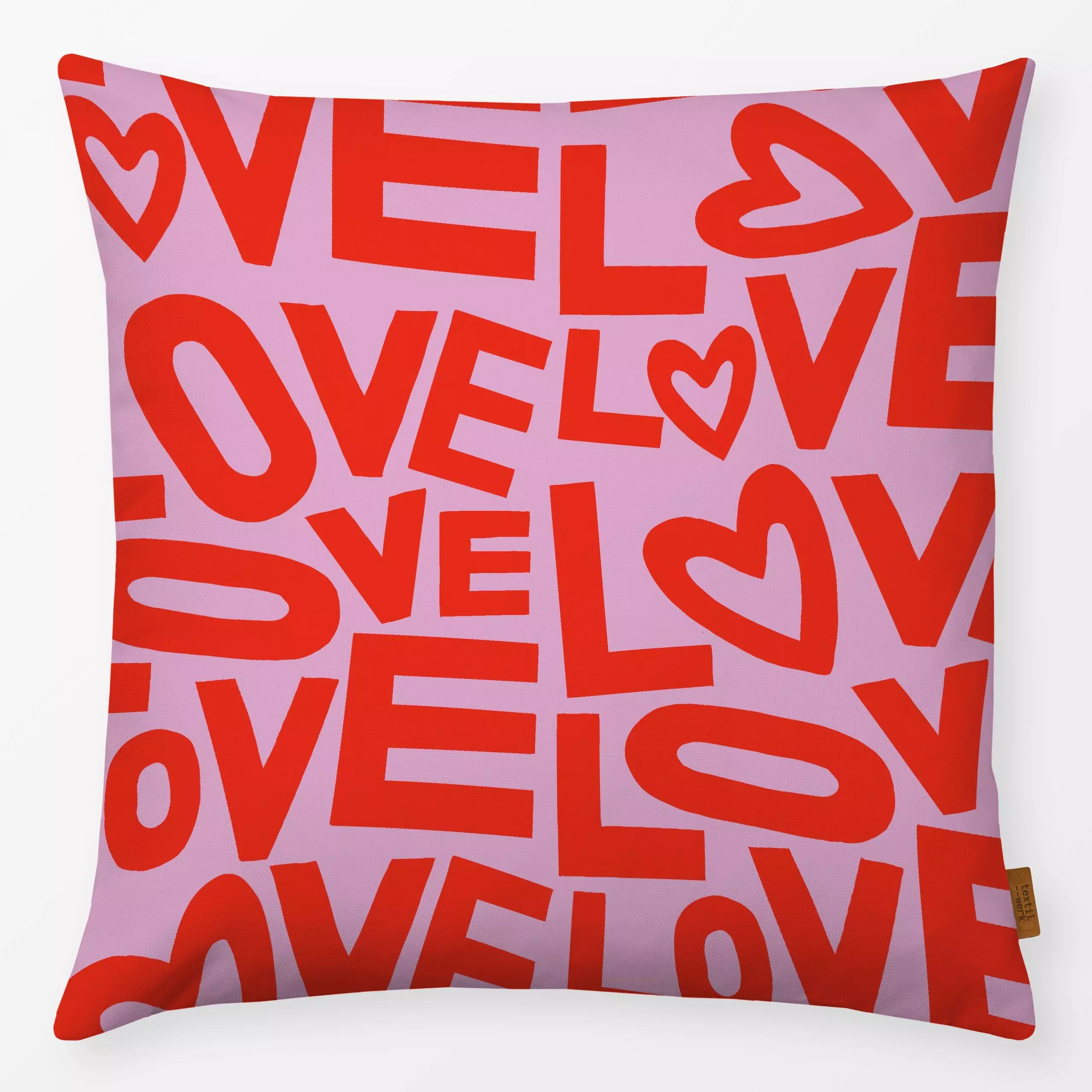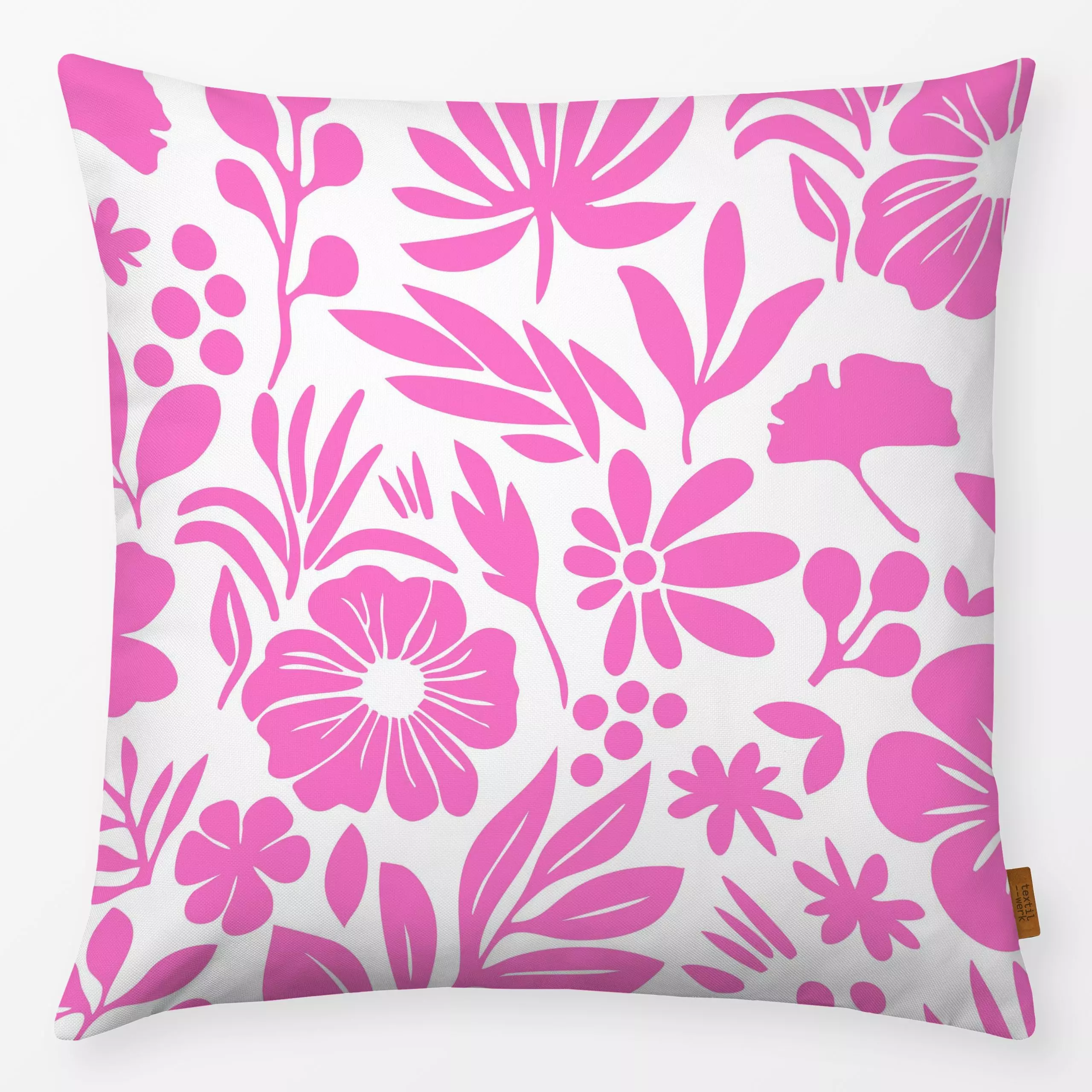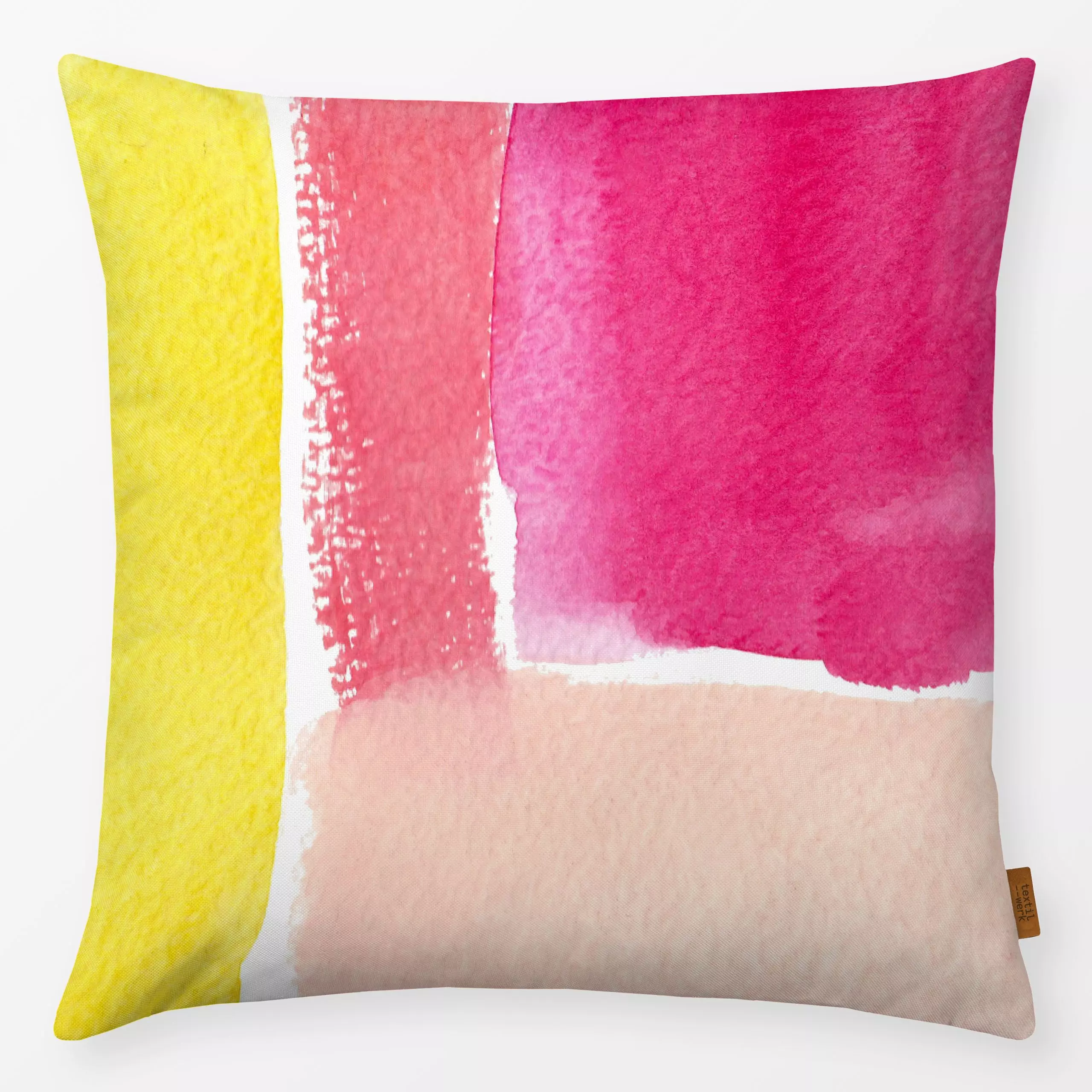 Dekokissen Sprüche drinnen / Indoor Zierkissen Canvas waschbar Design rosa Pop Art Sofakissen mit Füllung