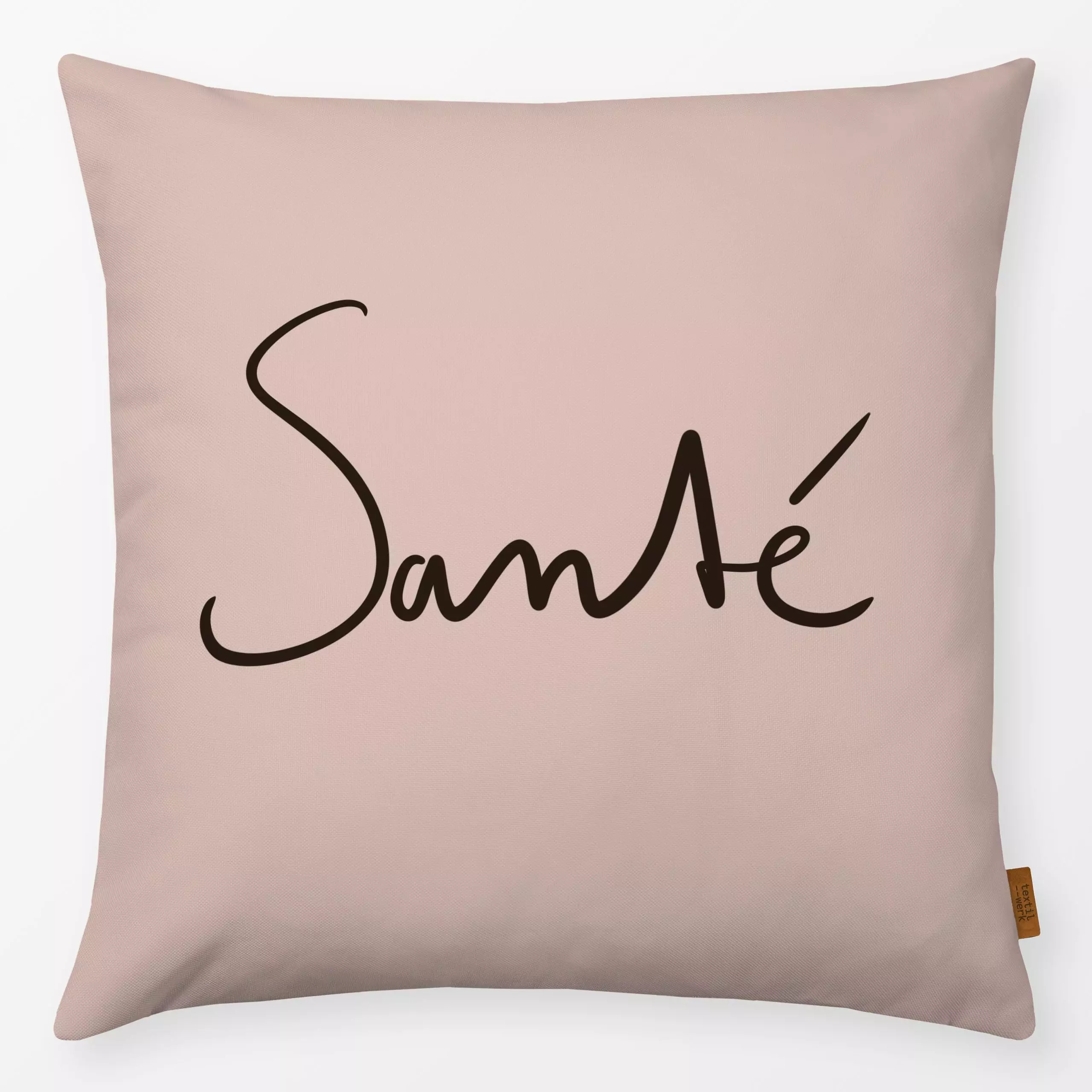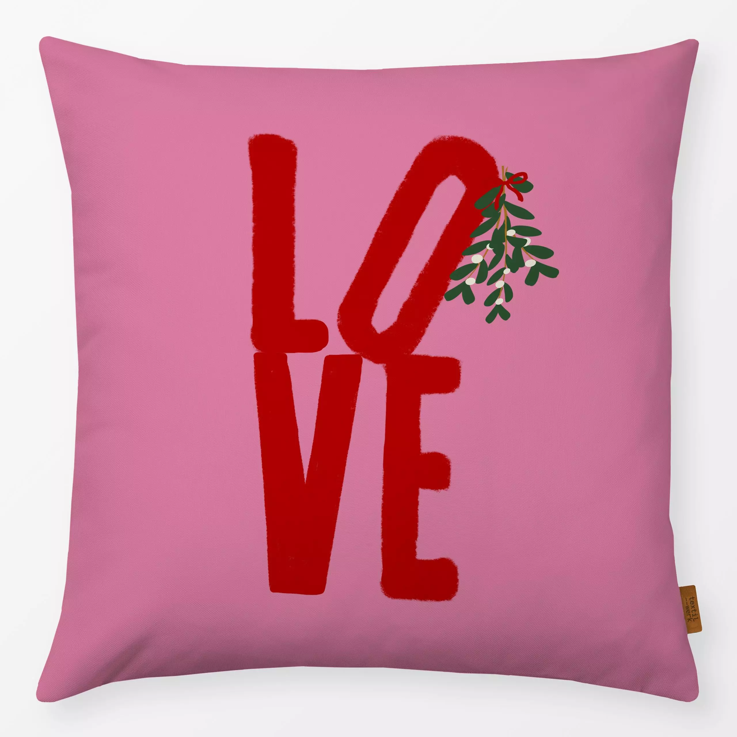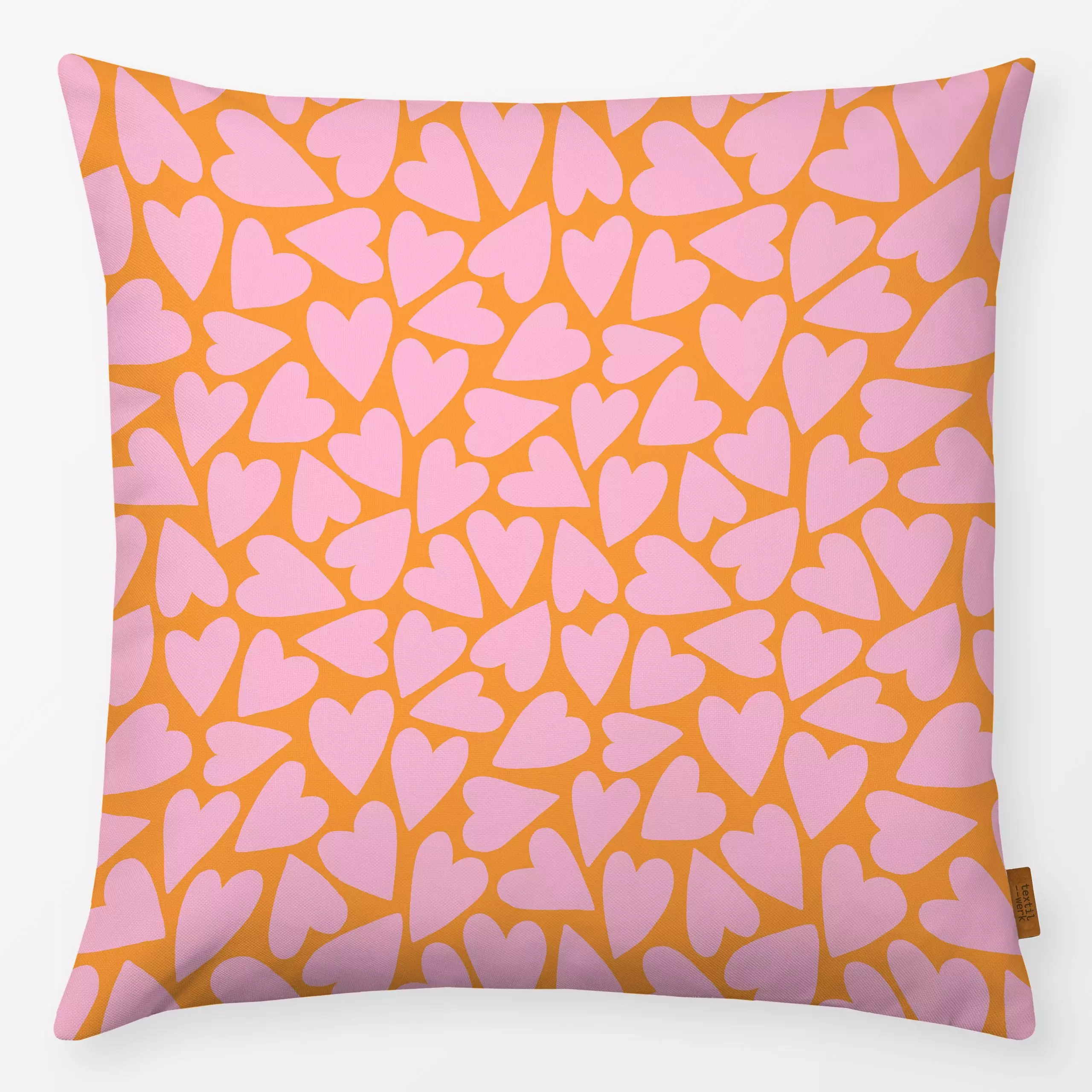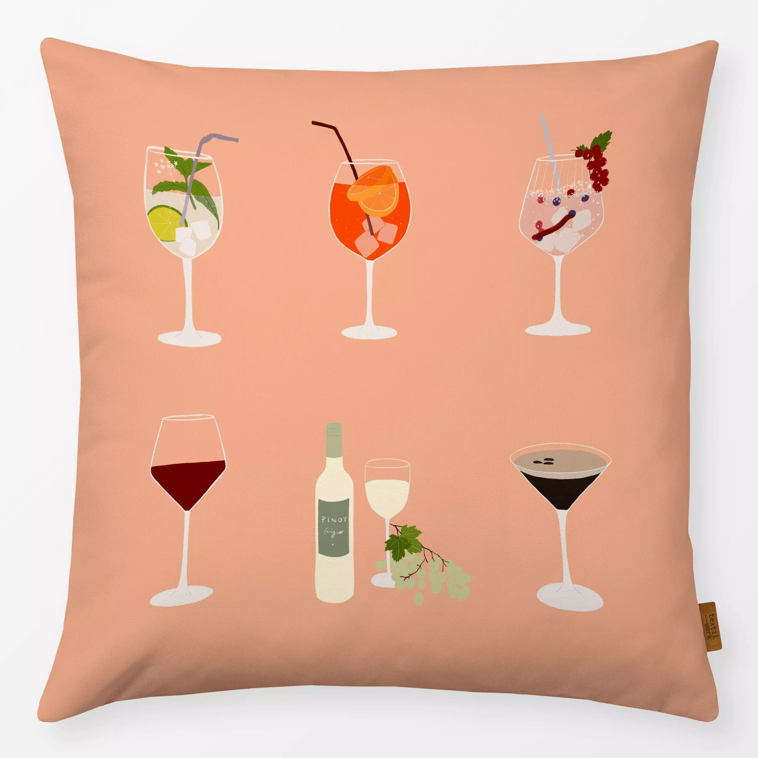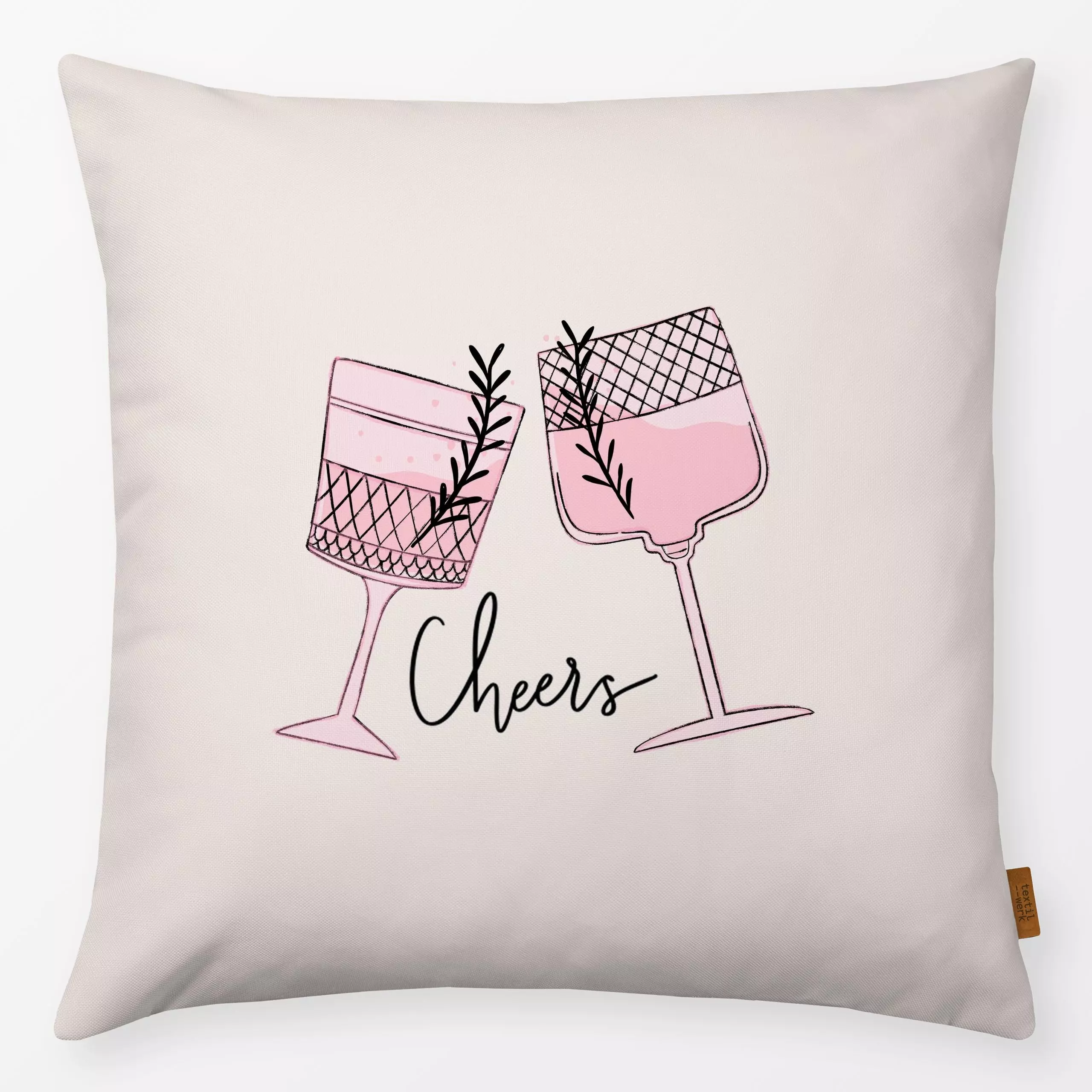 Dekokissen Sprüche drinnen / Indoor Zierkissen Canvas waschbar Design rosa Pop Art Sofakissen mit Füllung