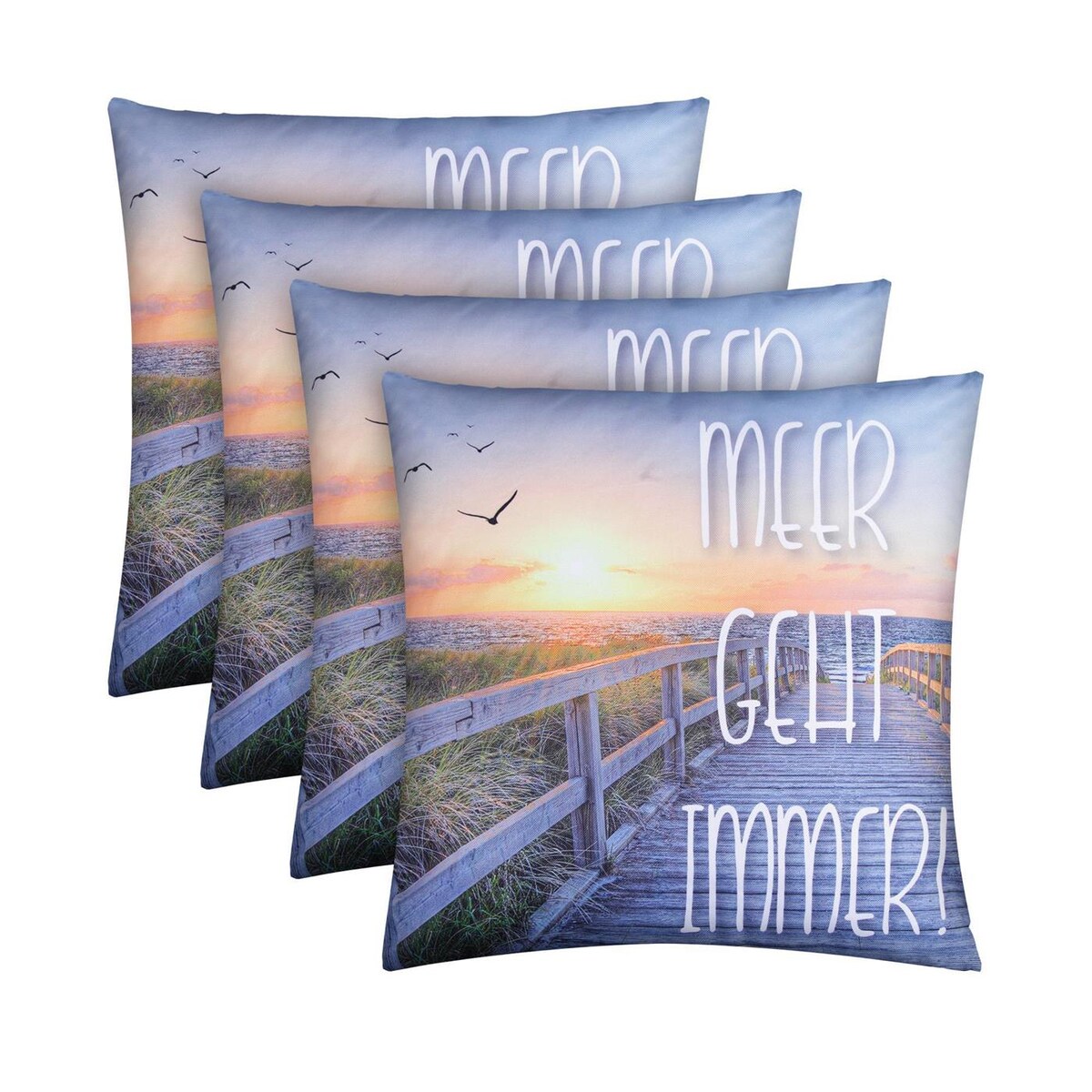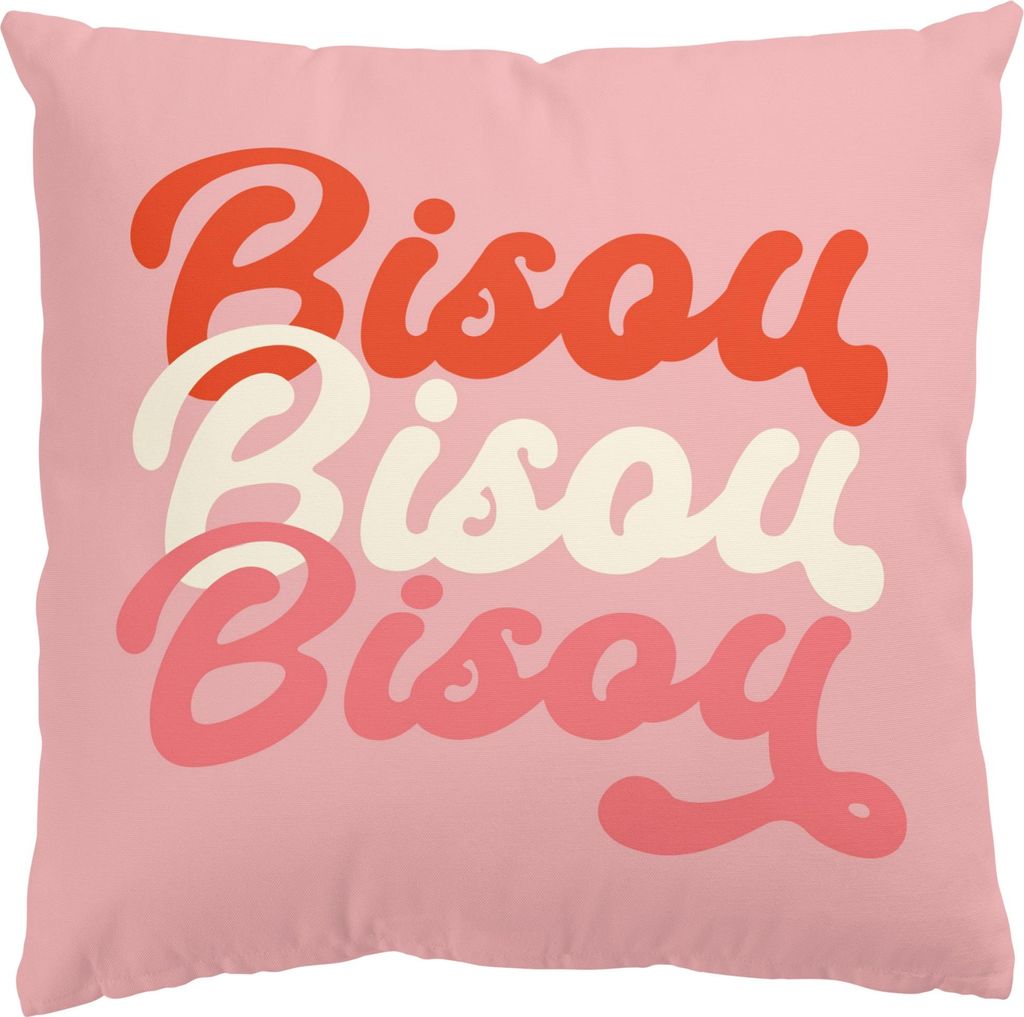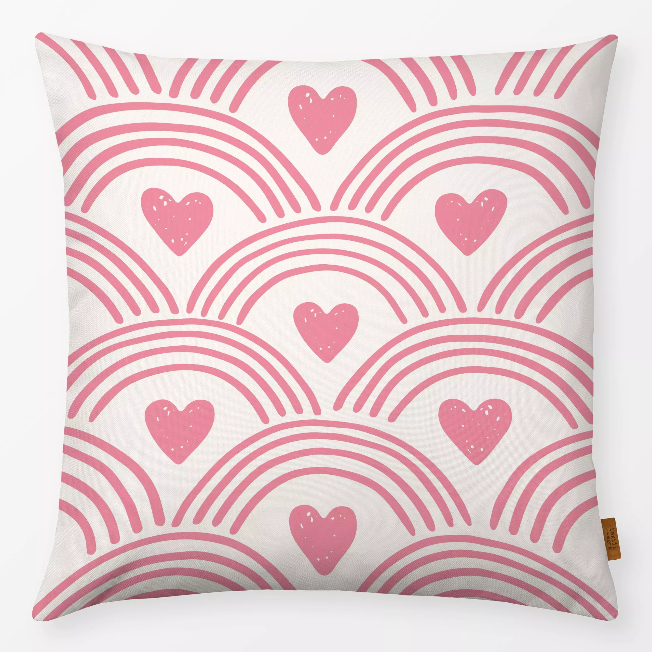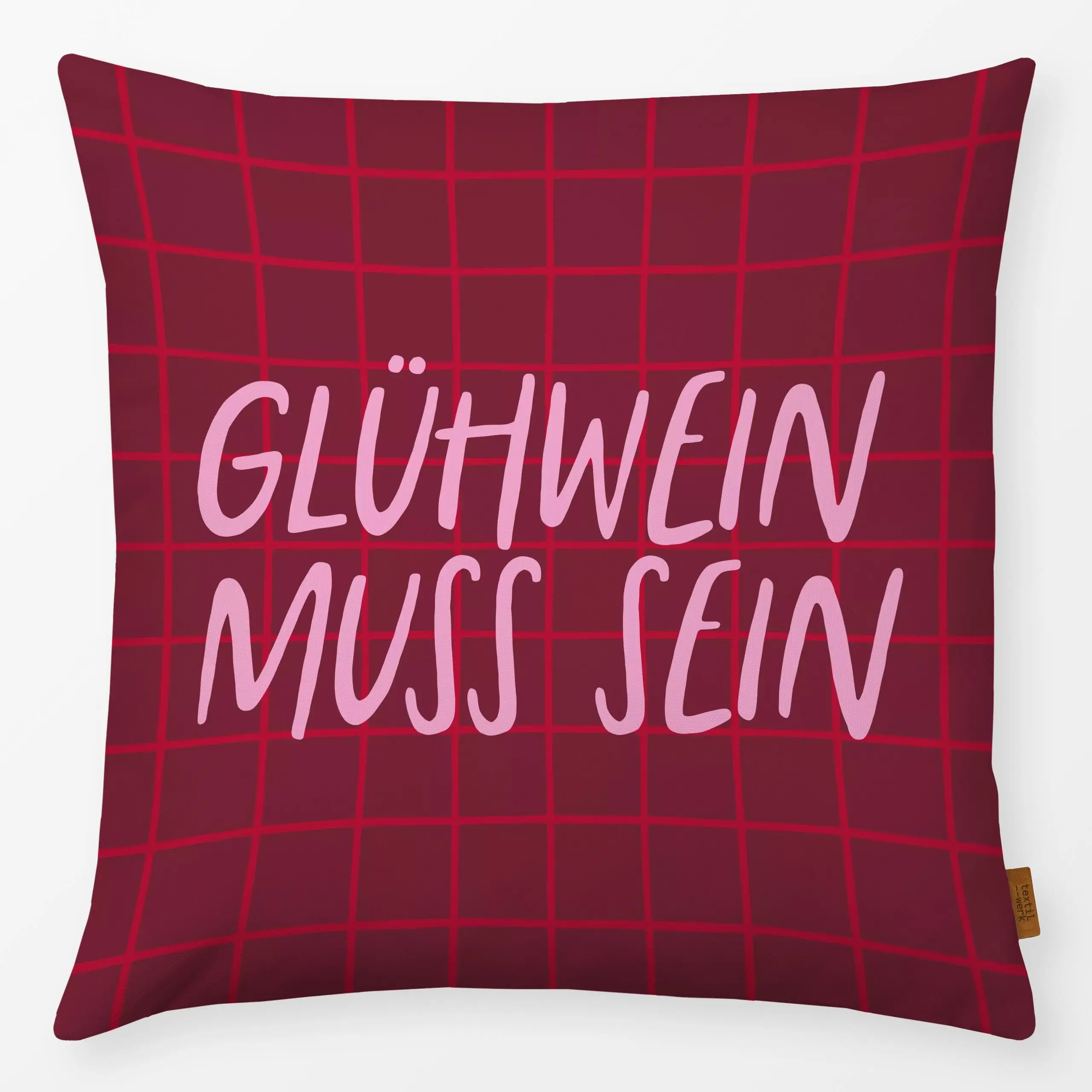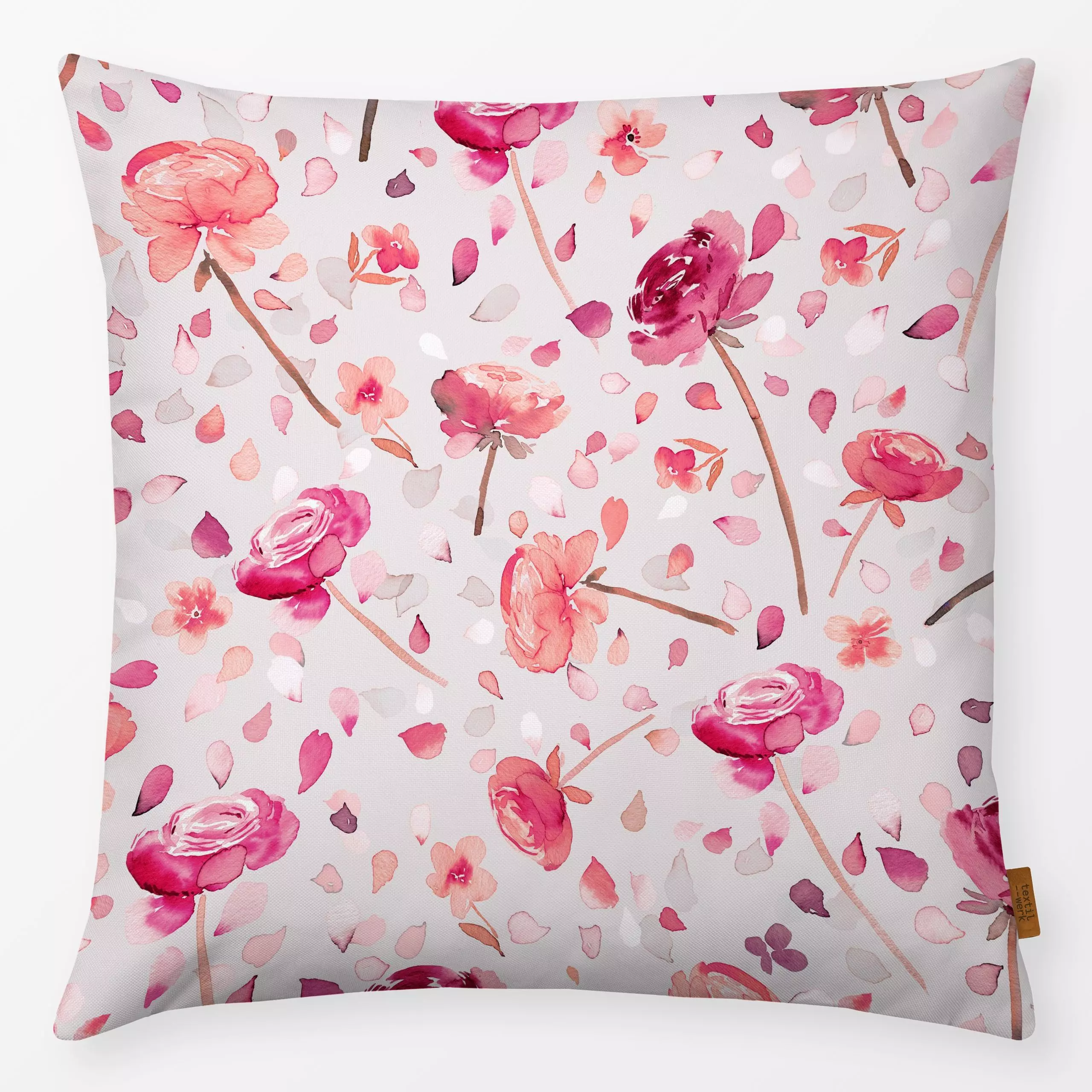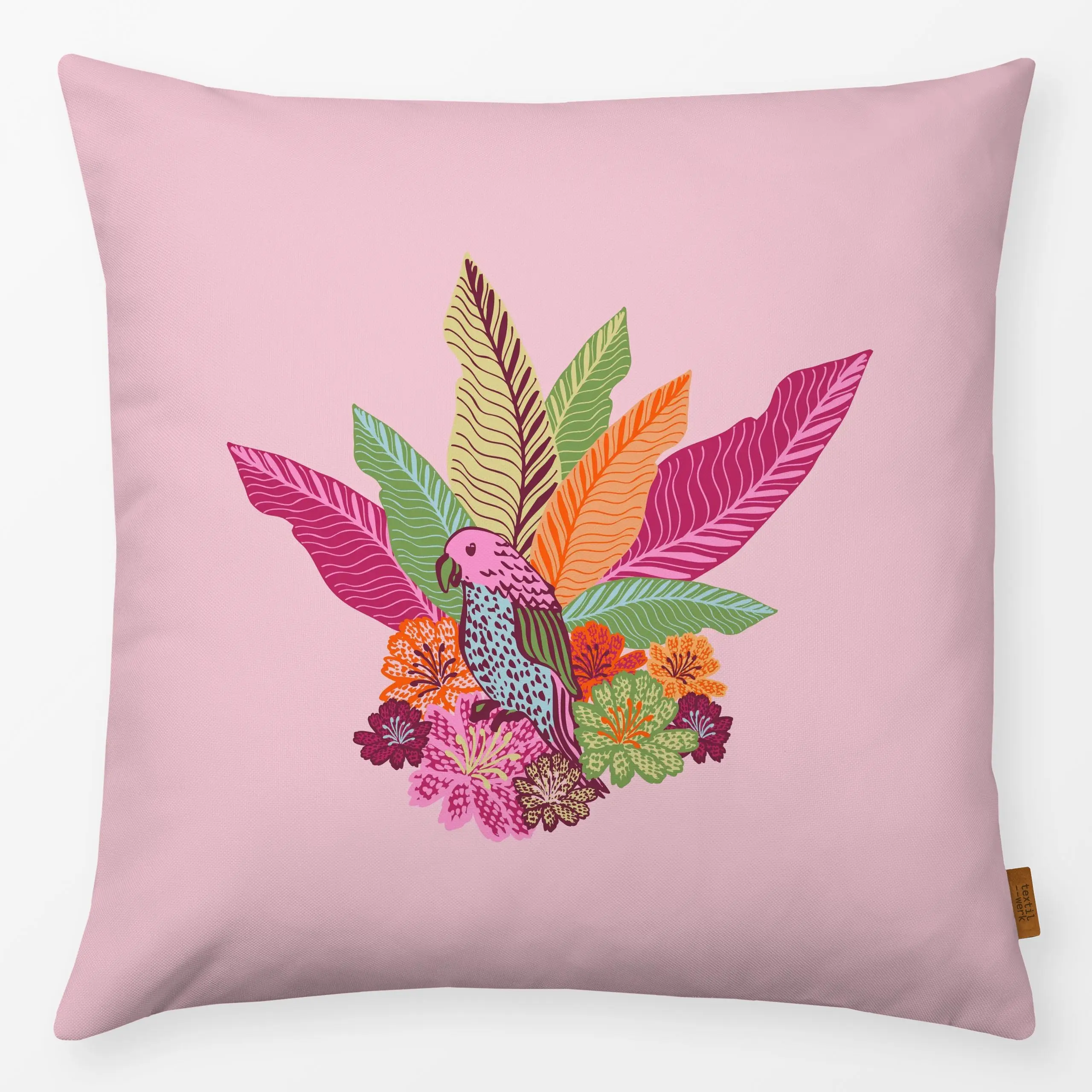 Dekokissen Sprüche drinnen / Indoor Zierkissen Canvas waschbar Design rosa Pop Art Sofakissen mit Füllung