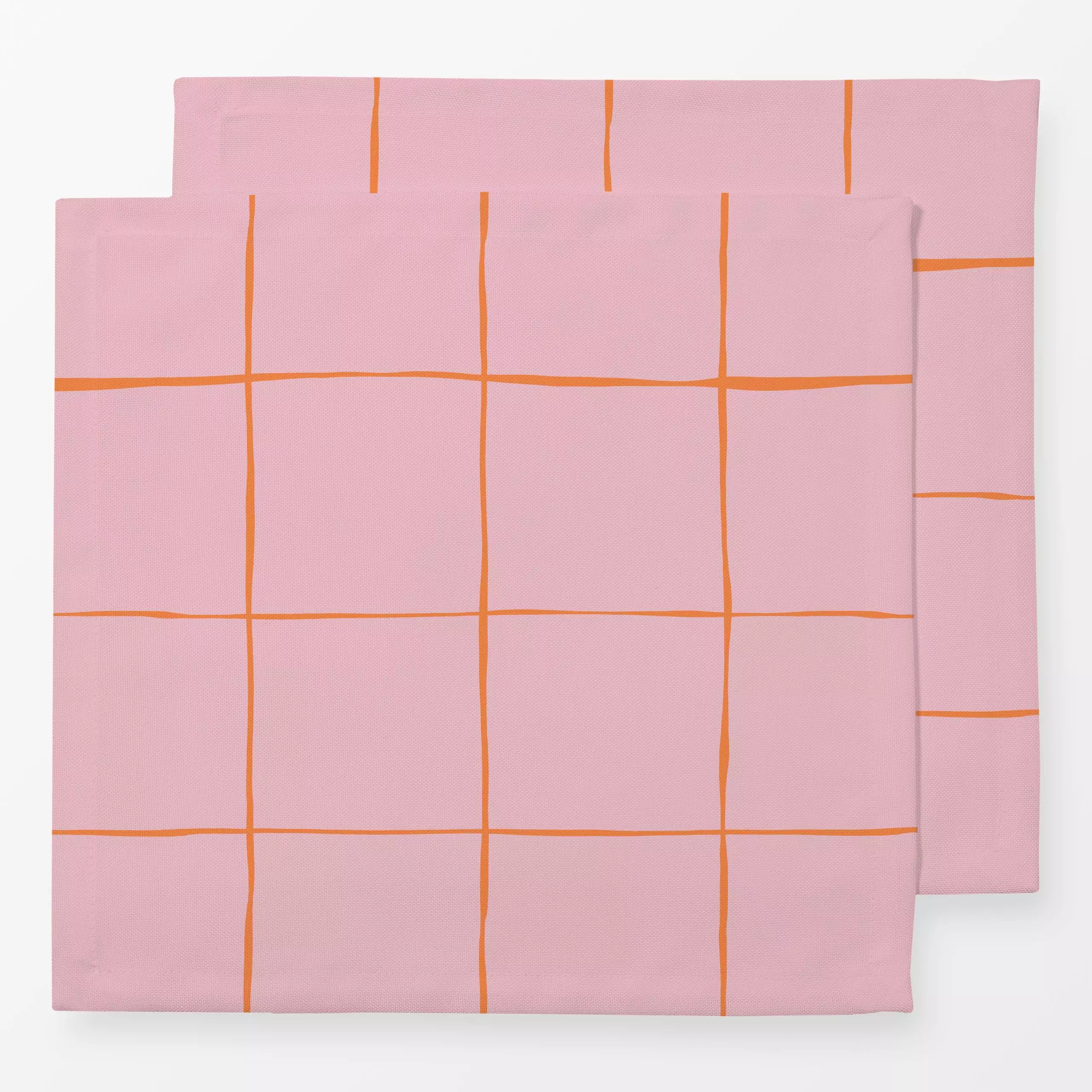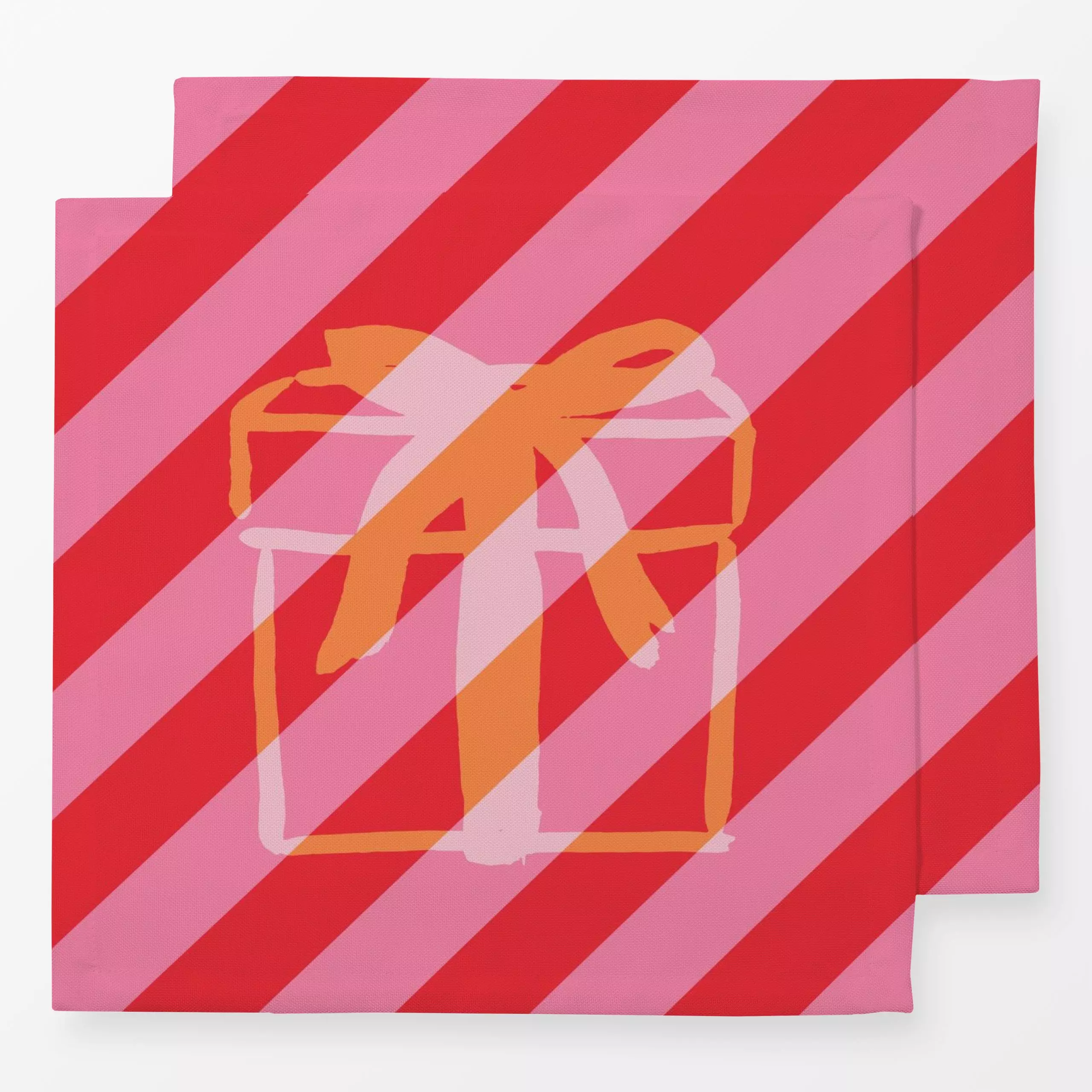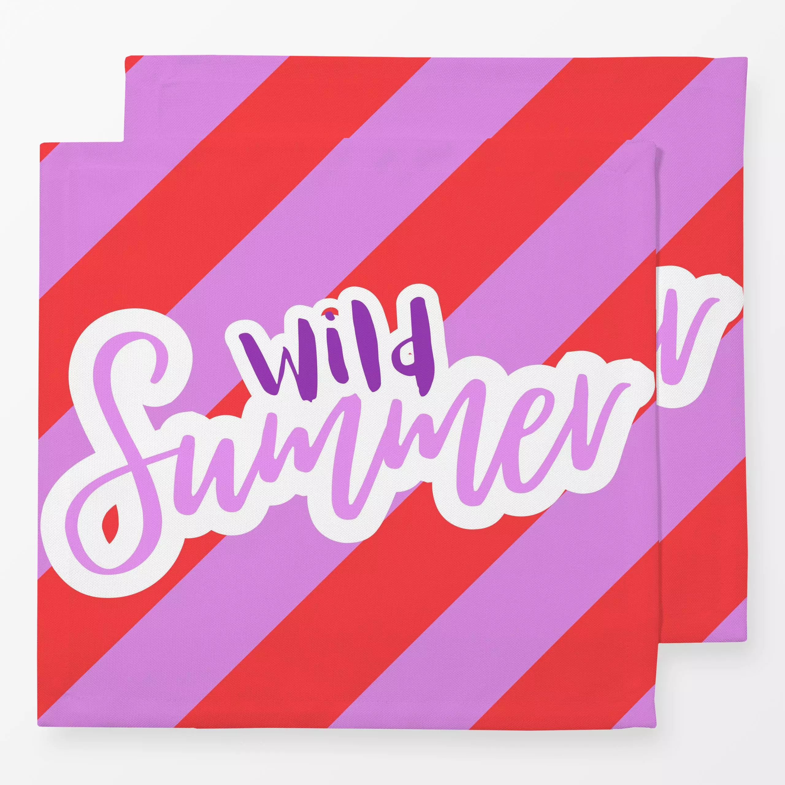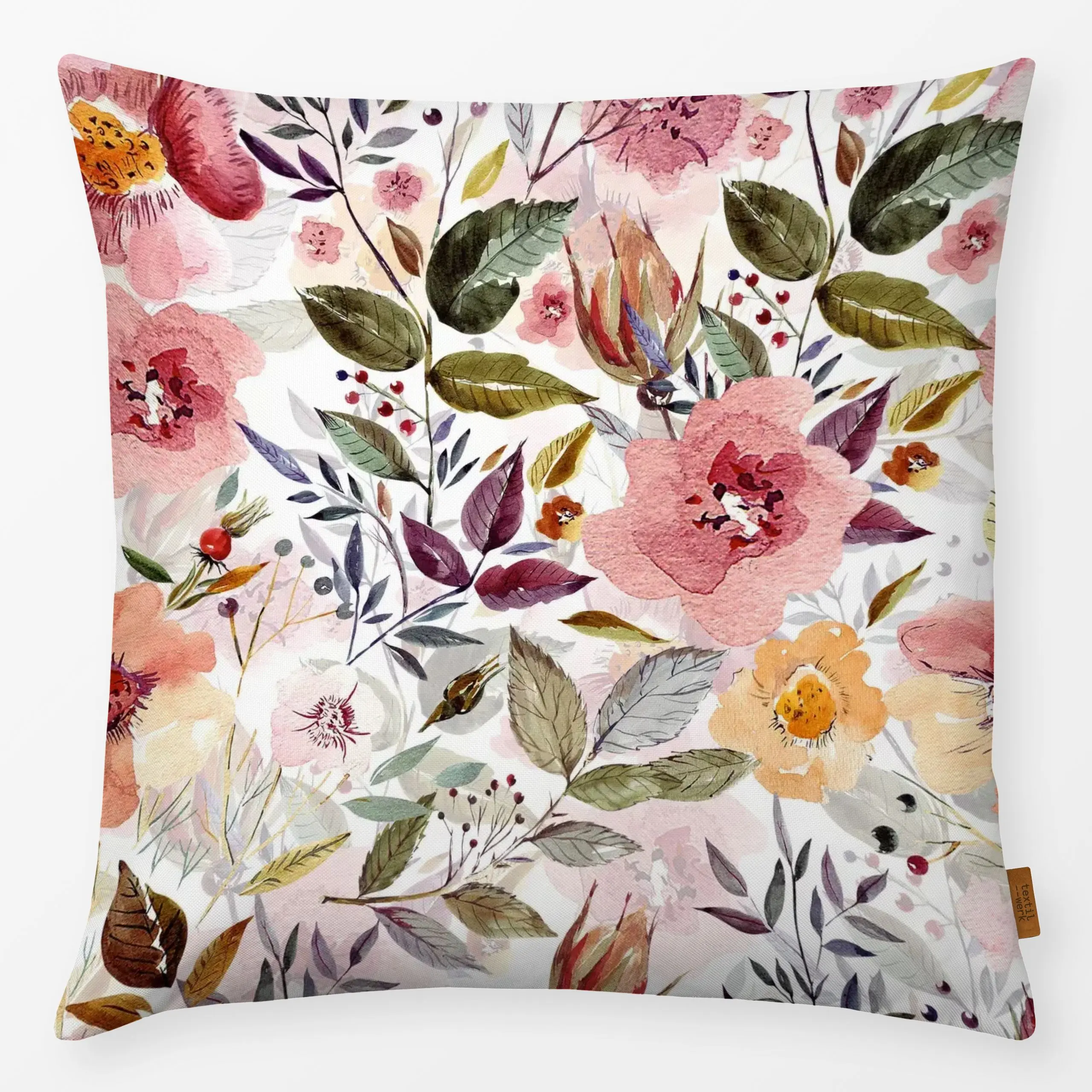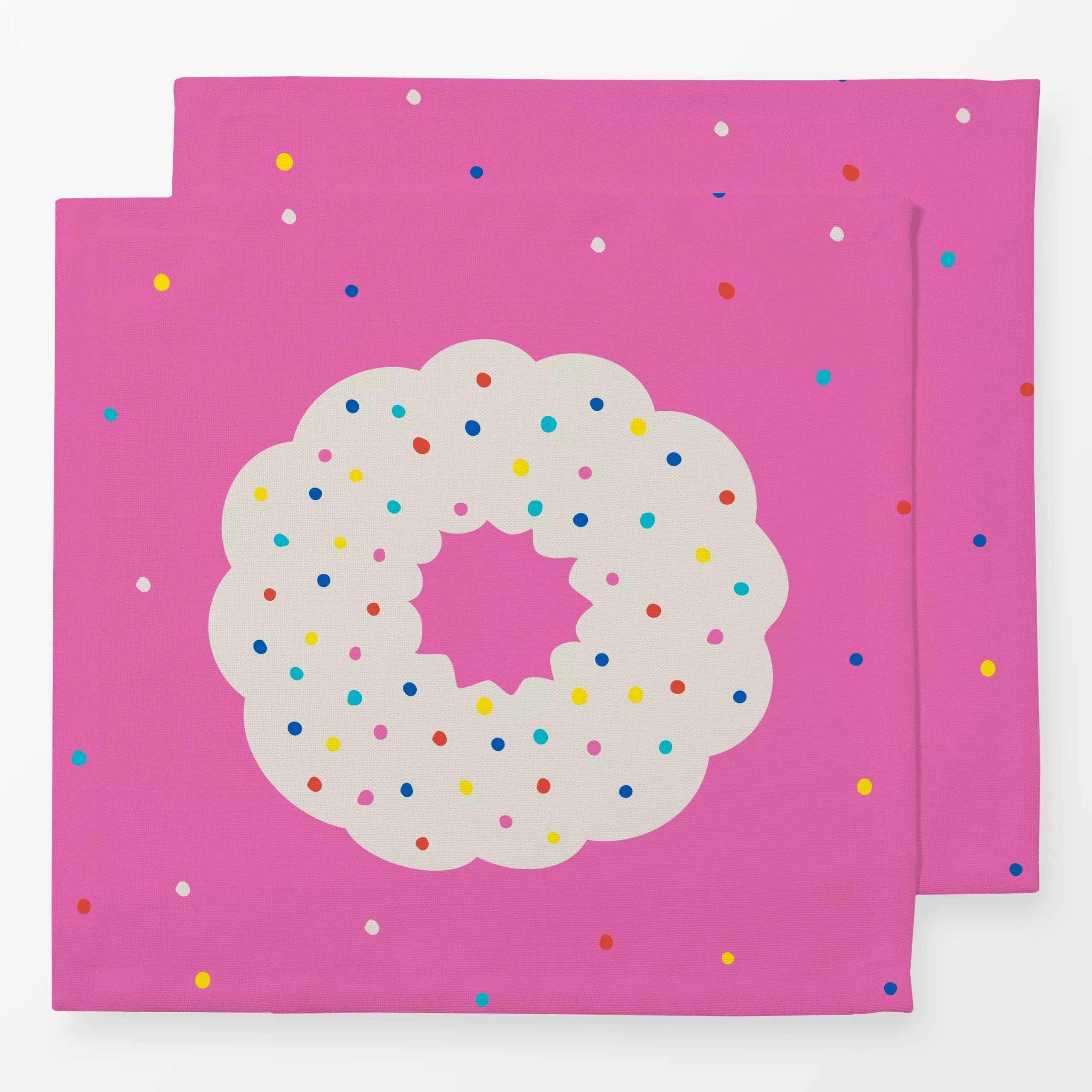 Dekokissen Sprüche drinnen / Indoor Zierkissen Canvas waschbar Design rosa Pop Art Sofakissen mit Füllung