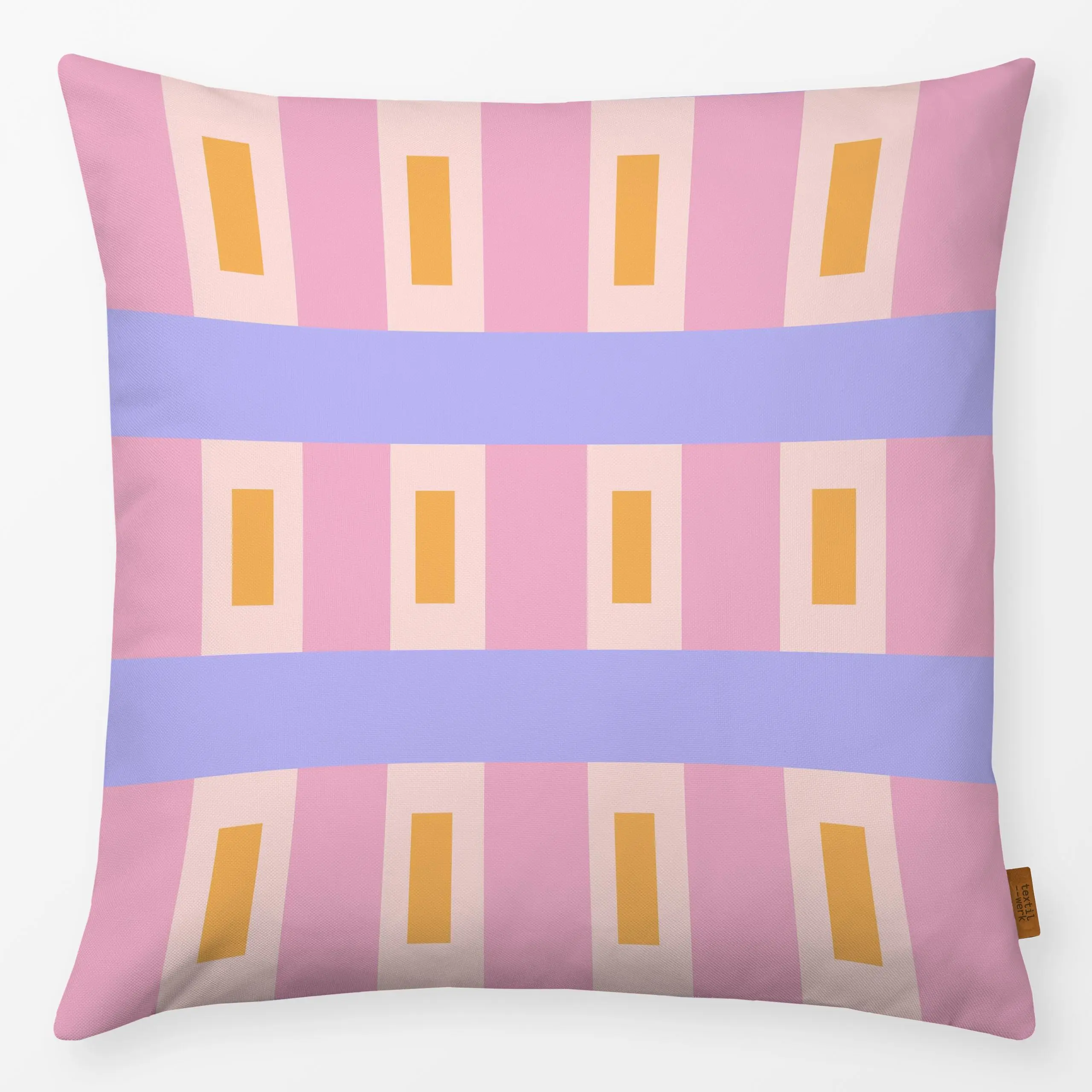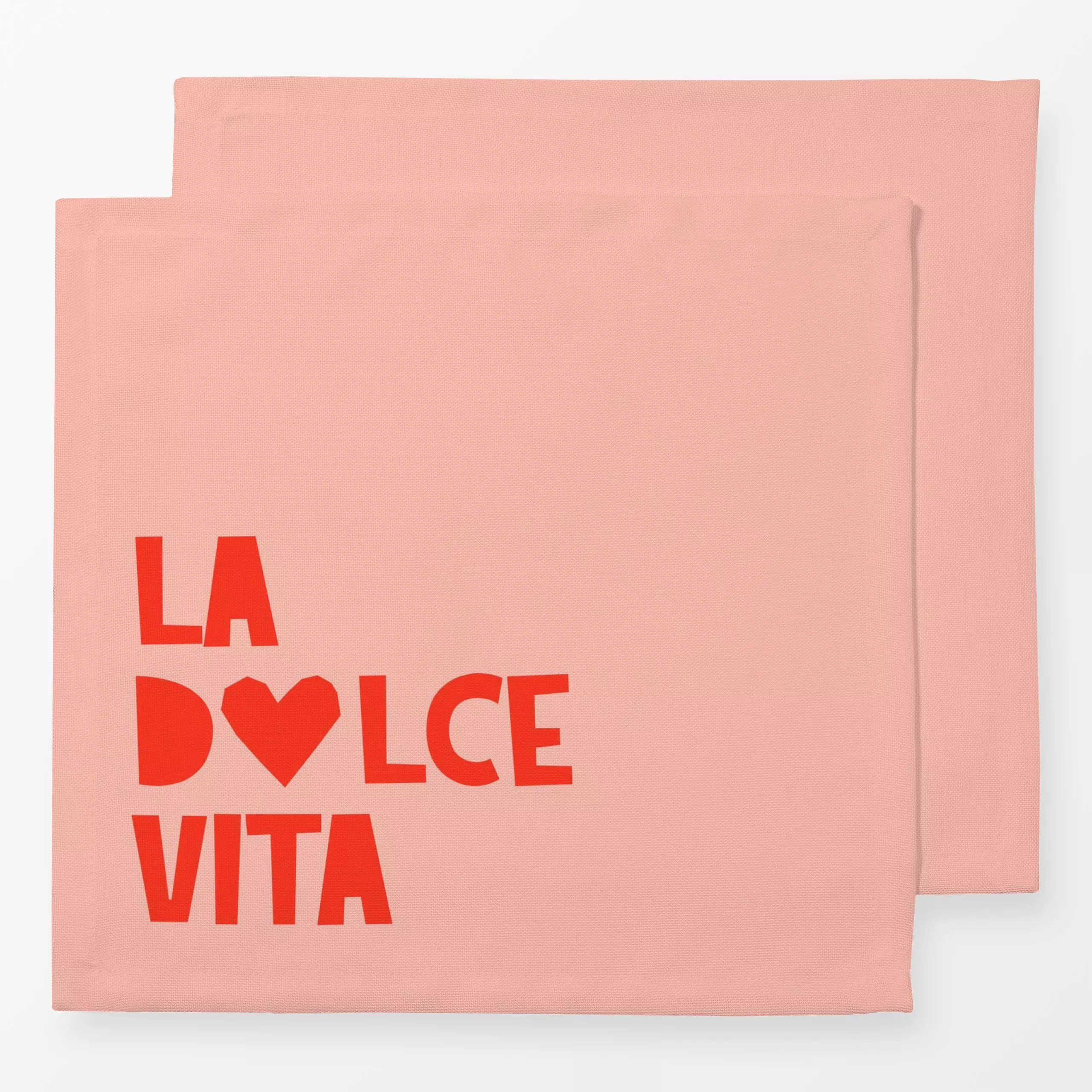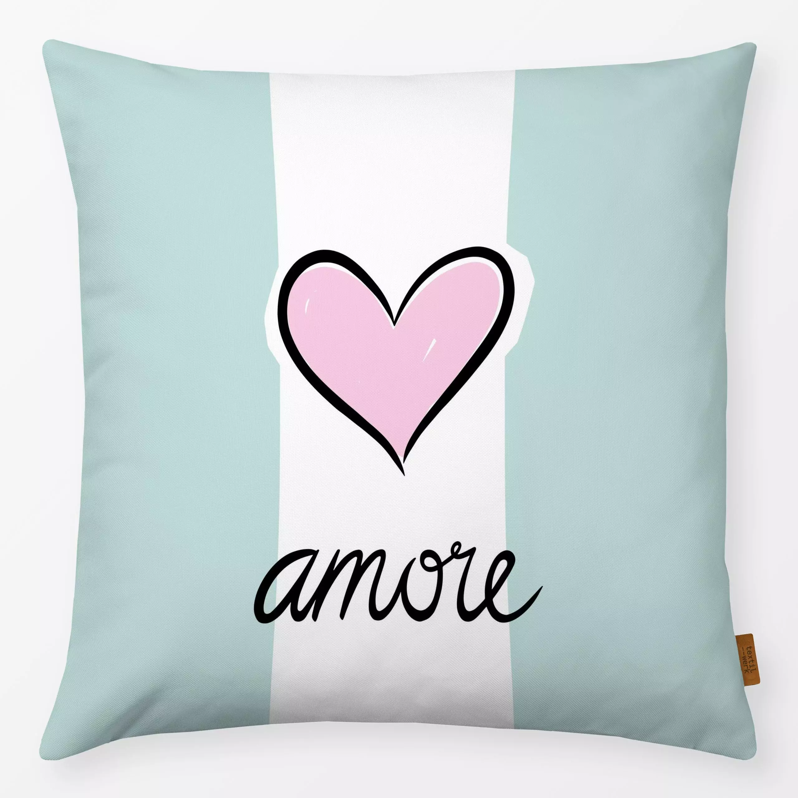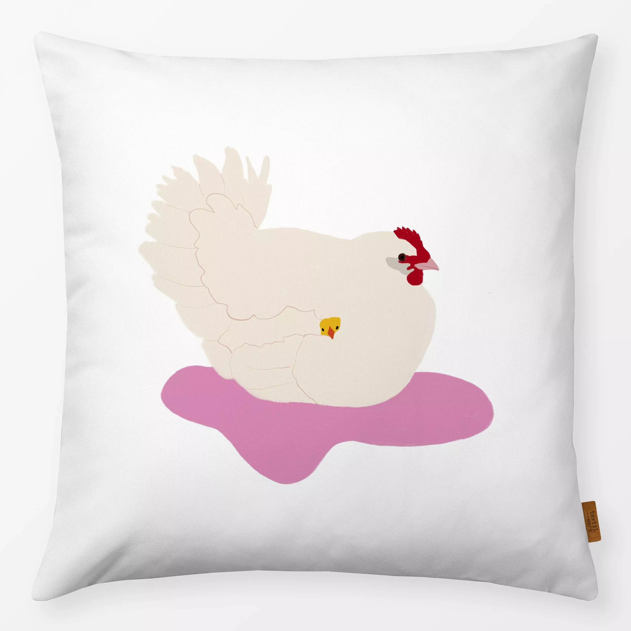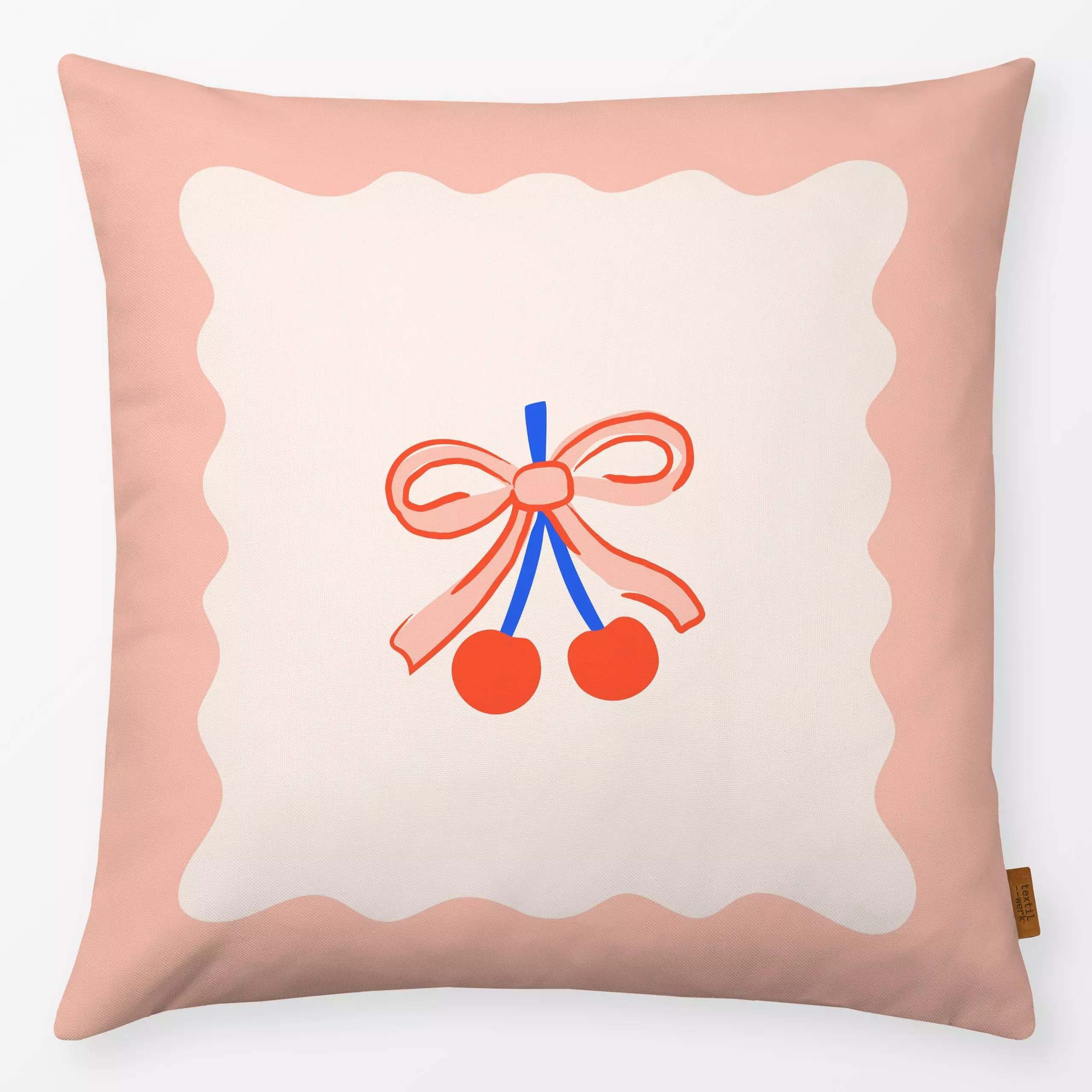 Dekokissen Sprüche drinnen / Indoor Zierkissen Canvas waschbar Design rosa Pop Art Sofakissen mit Füllung