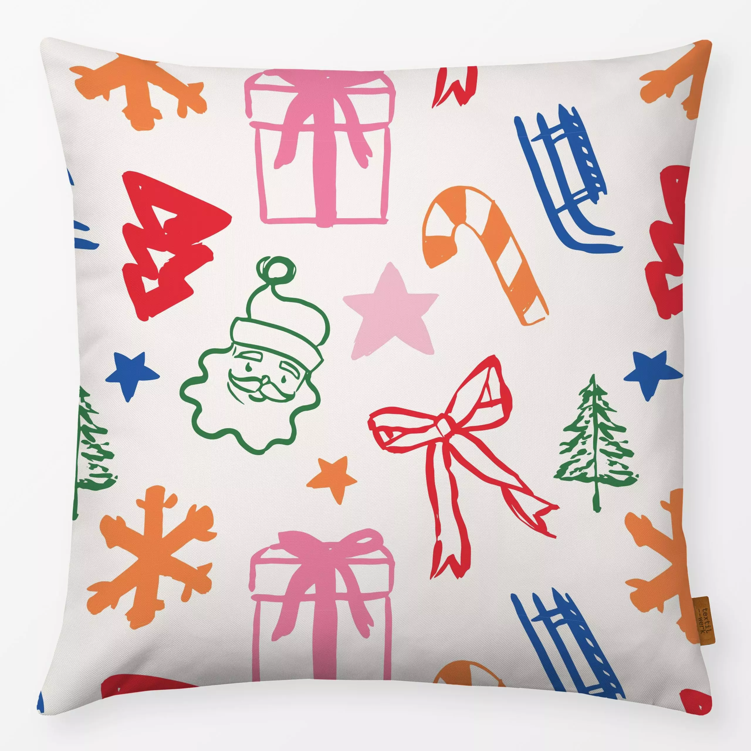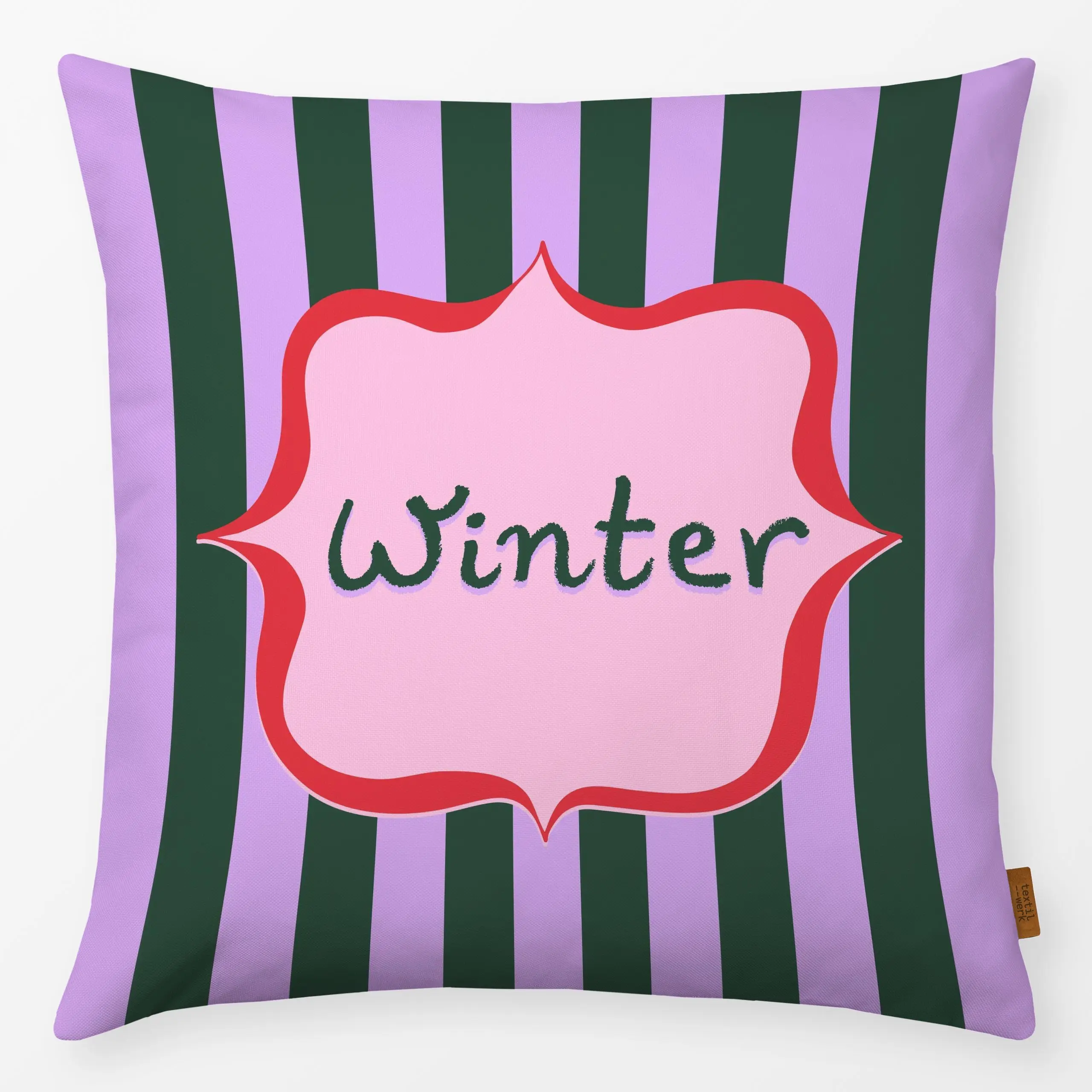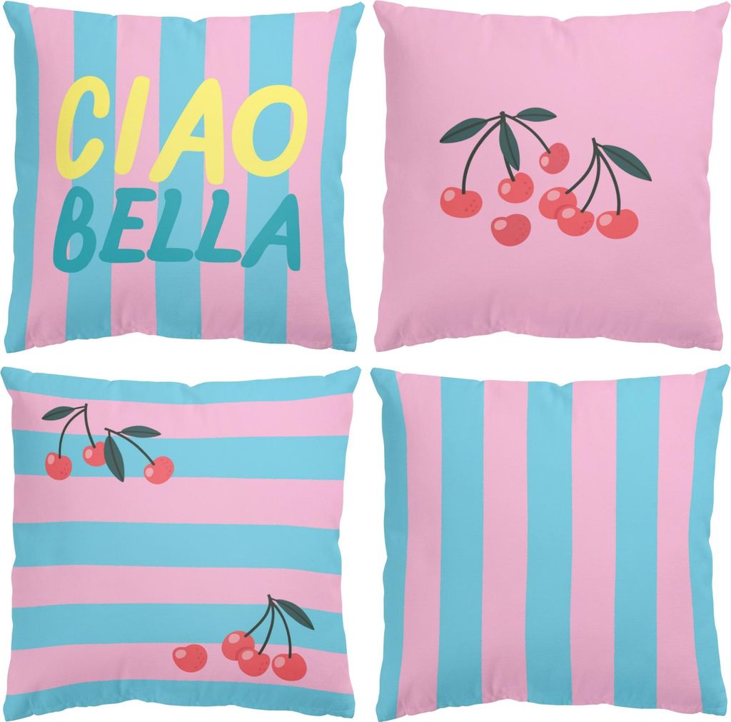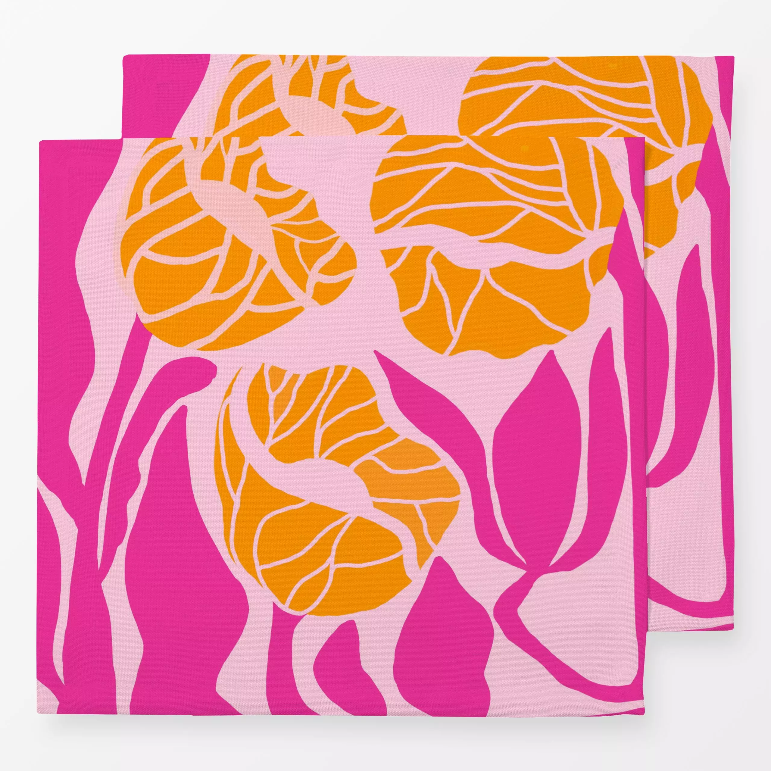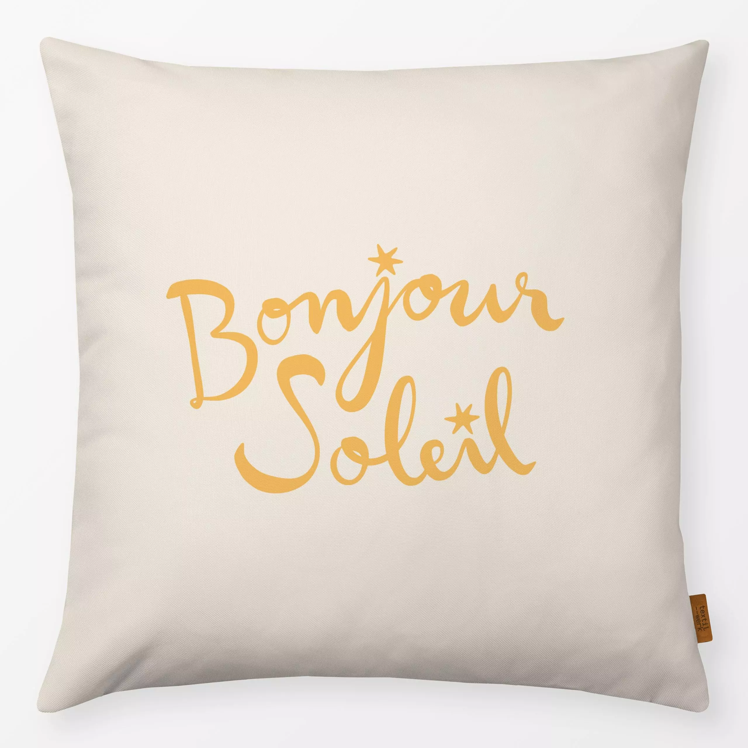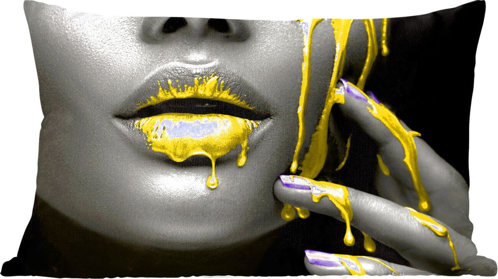 Dekokissen Sprüche drinnen / Indoor Zierkissen Canvas waschbar Design rosa Pop Art Sofakissen mit Füllung