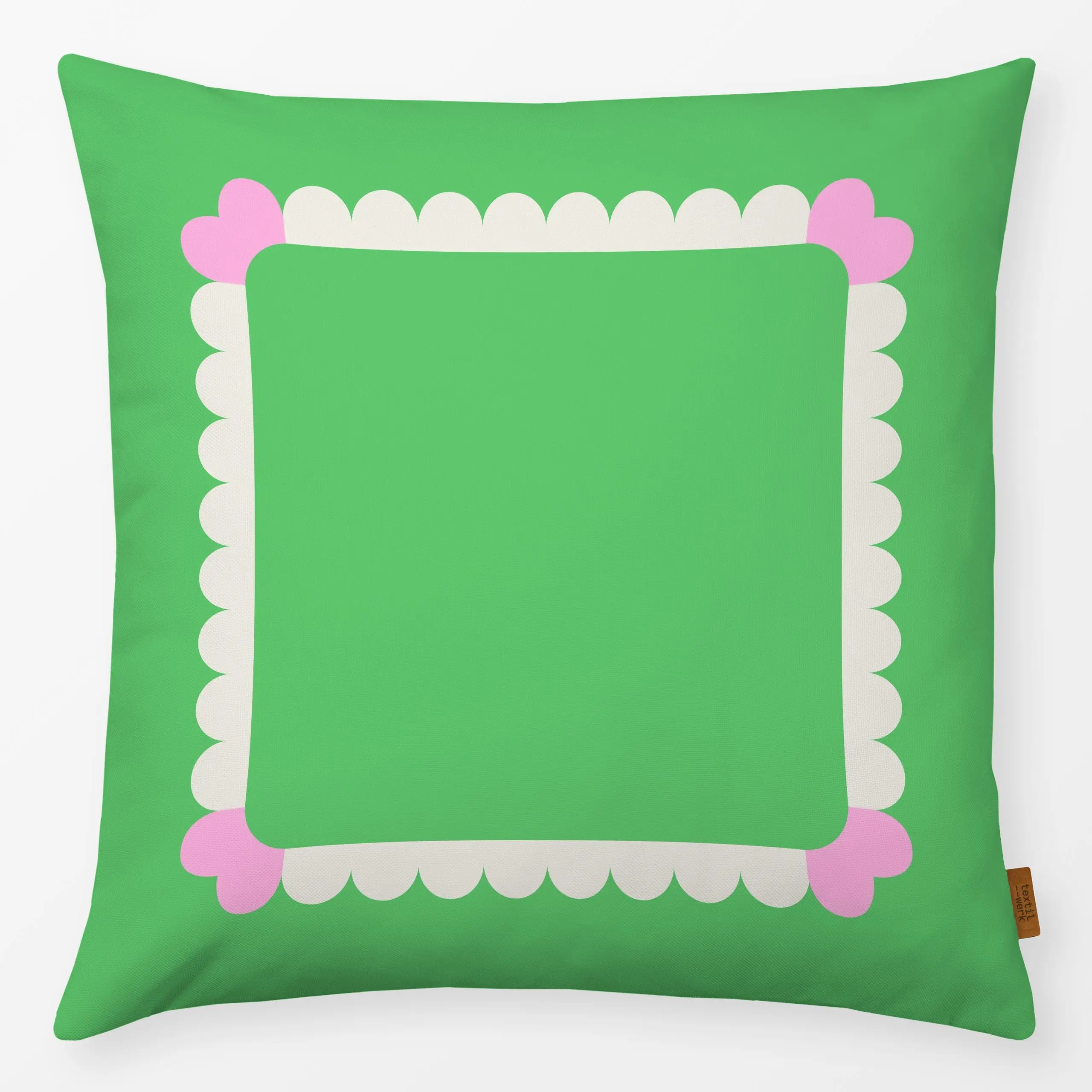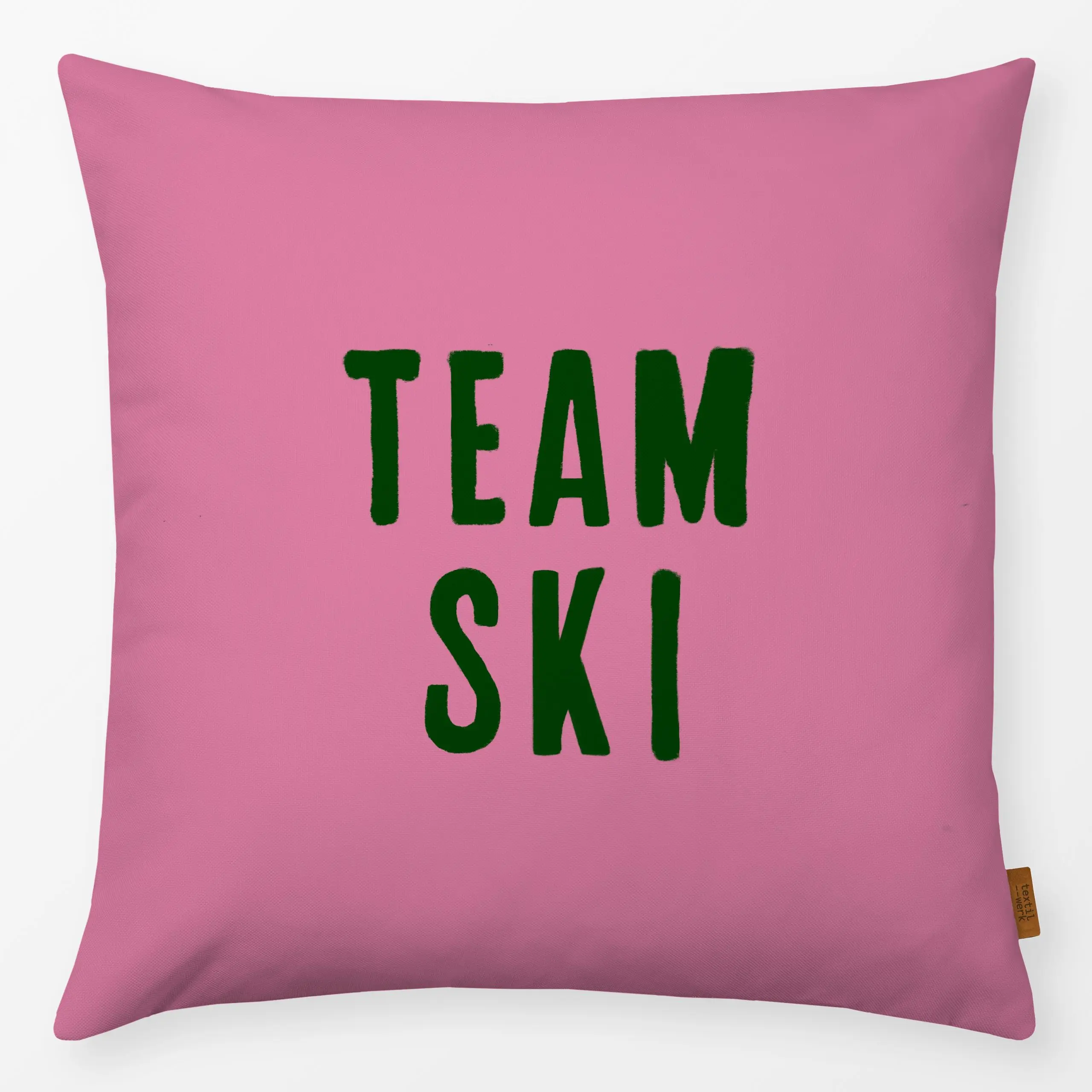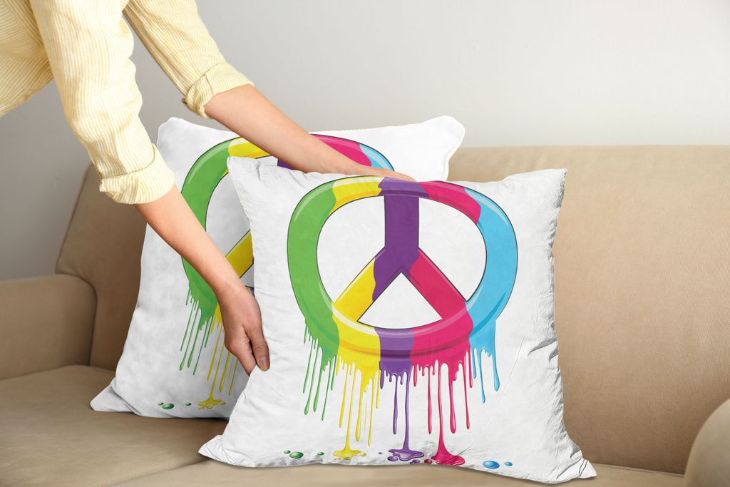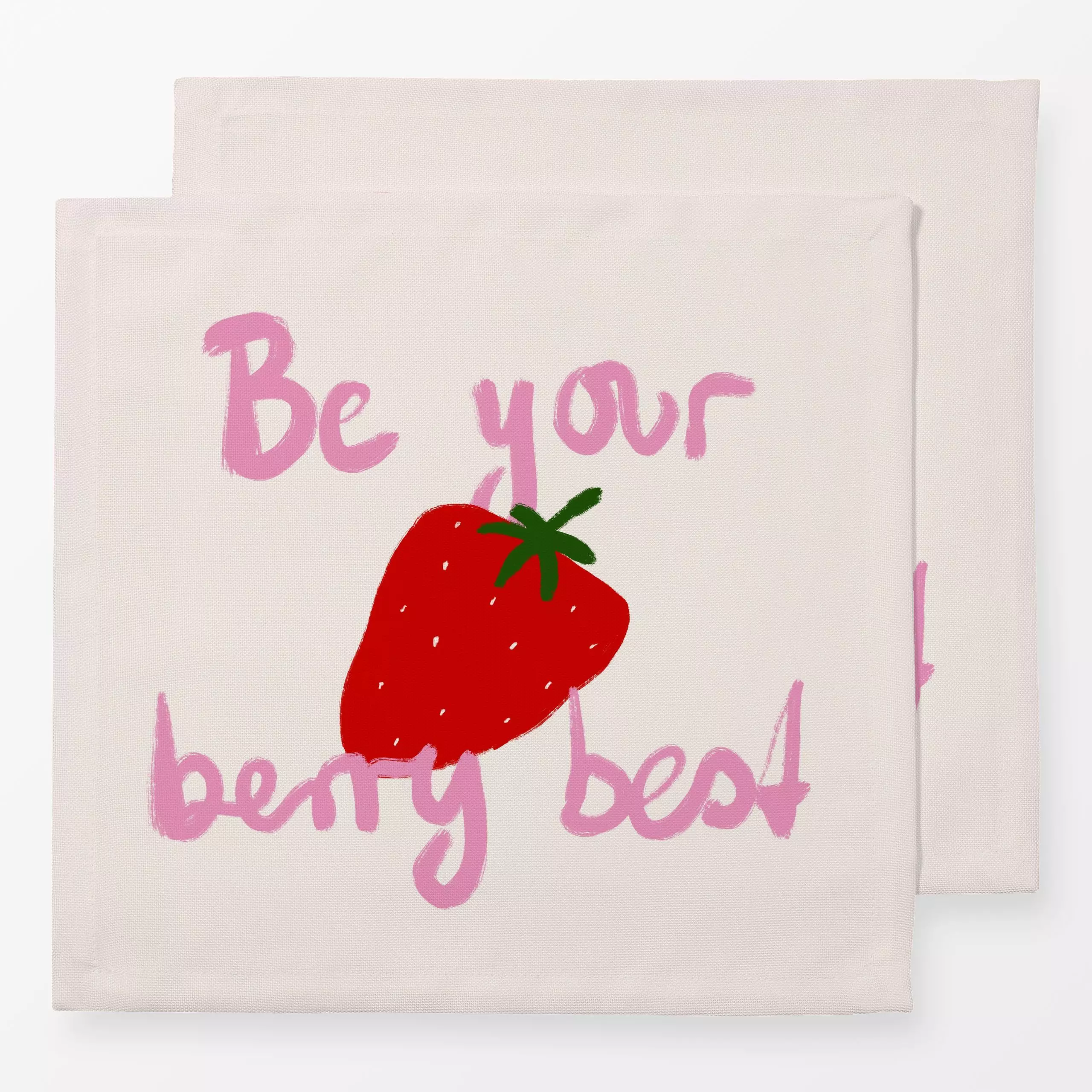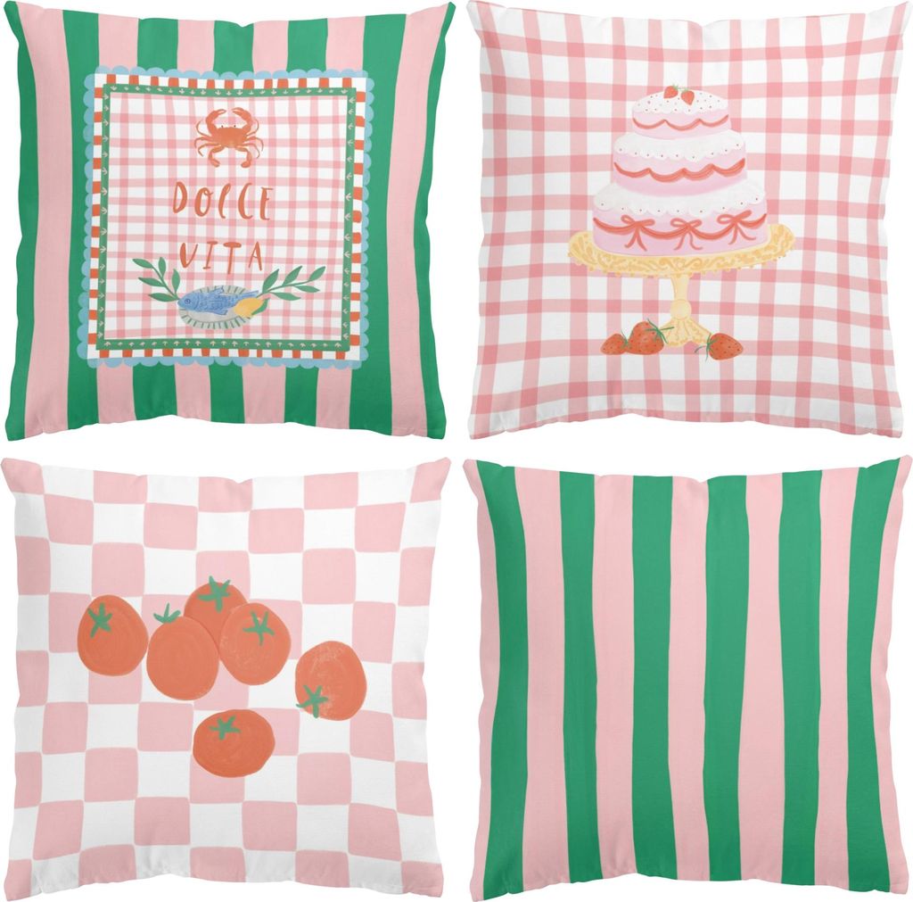 Dekokissen Sprüche drinnen / Indoor Zierkissen Canvas waschbar Design rosa Pop Art Sofakissen mit Füllung