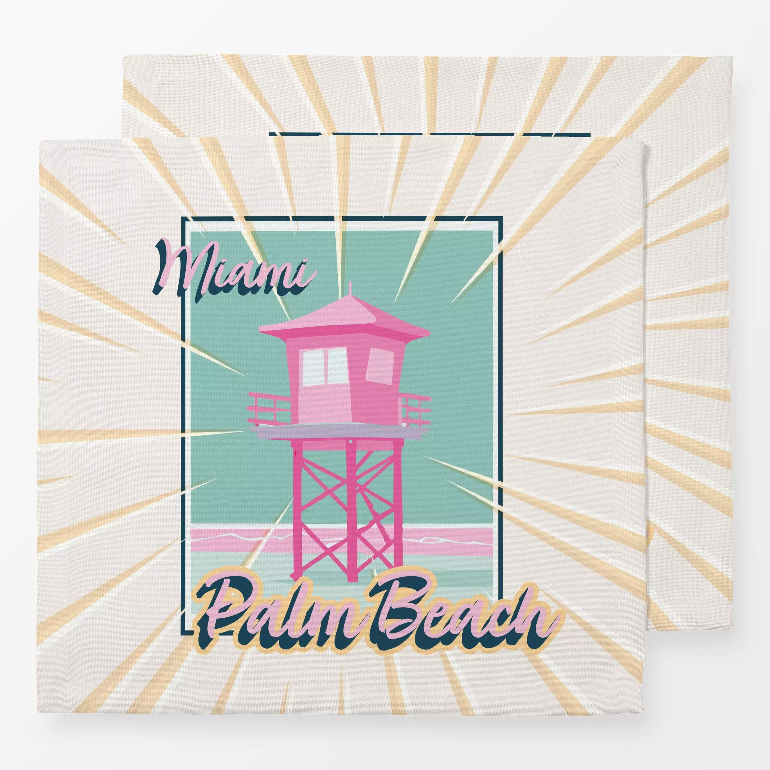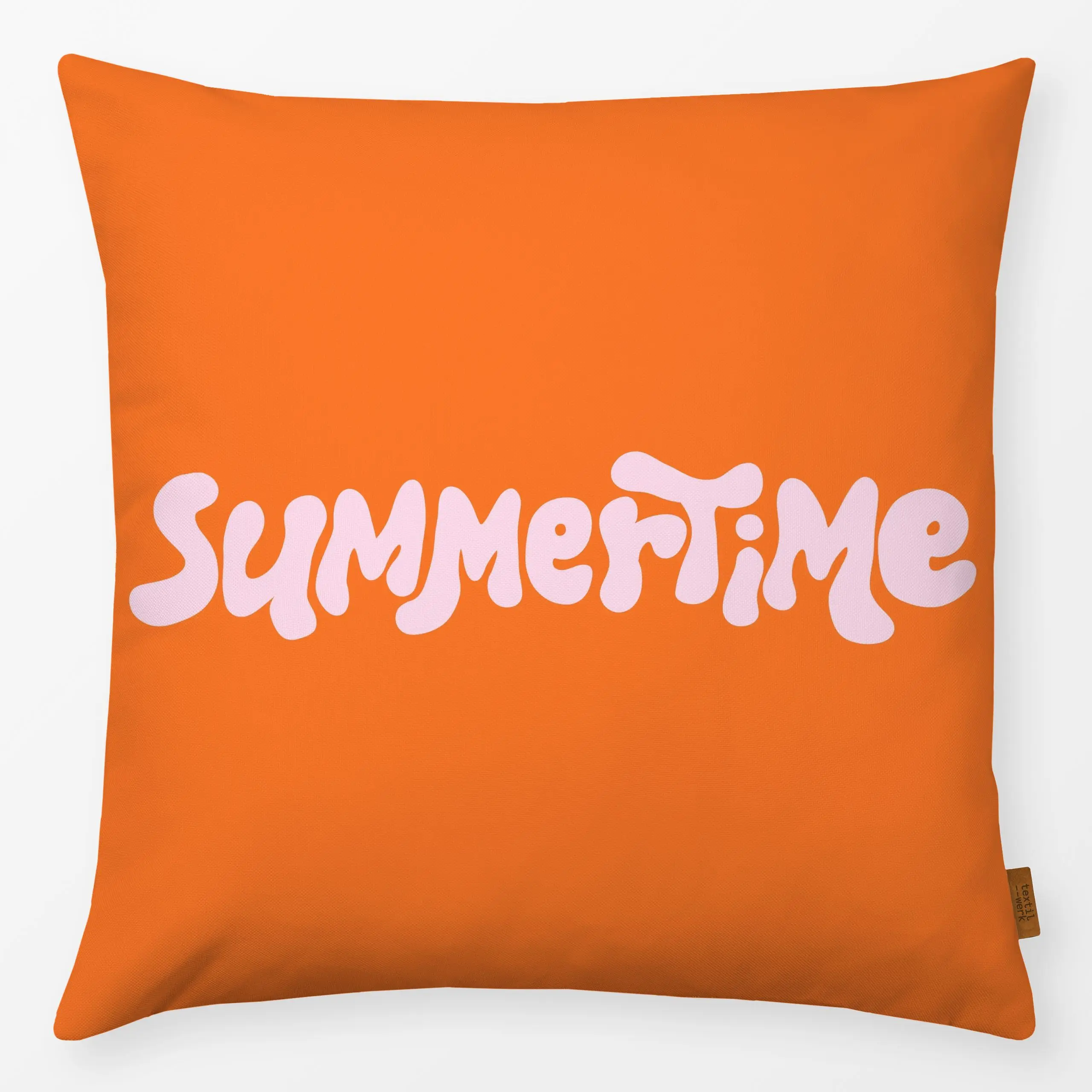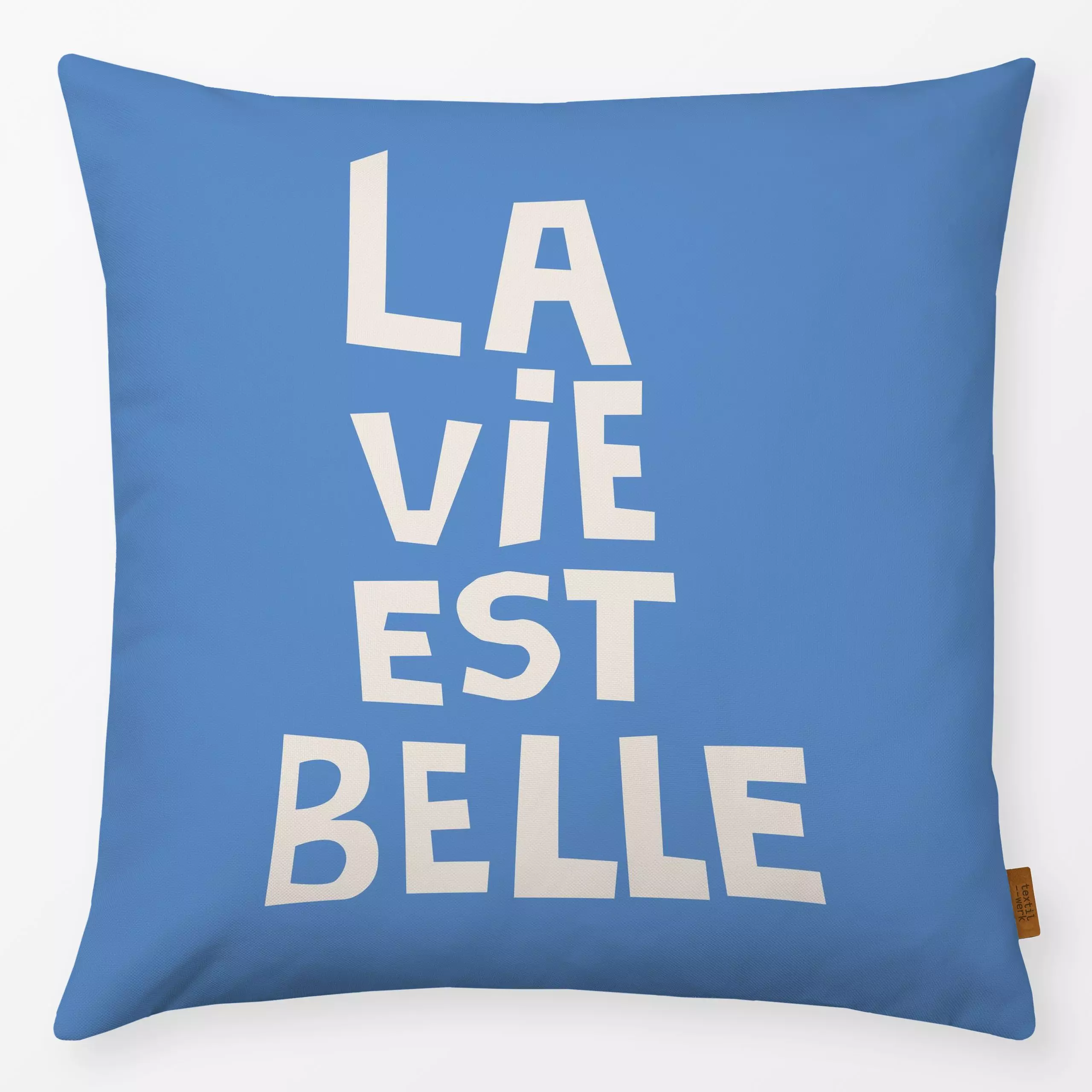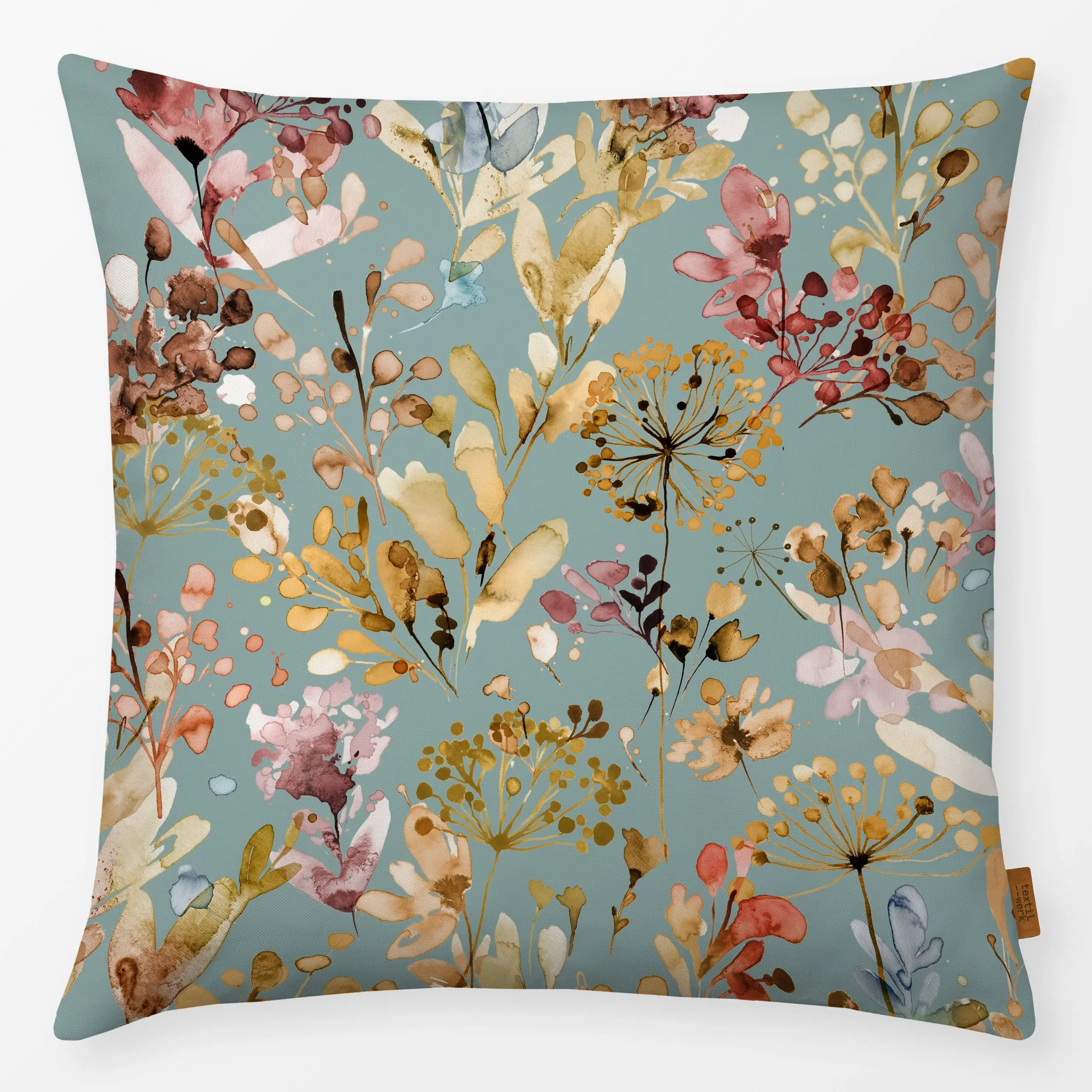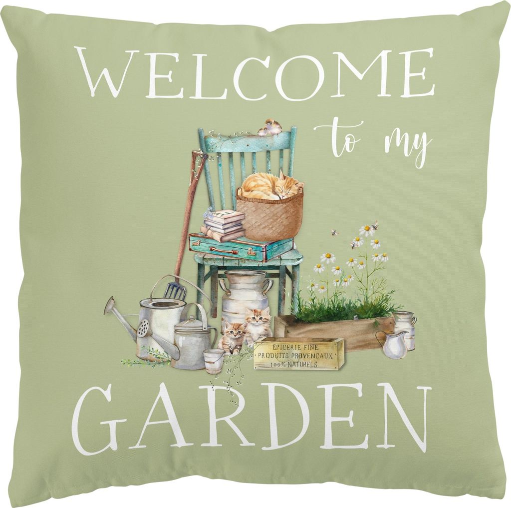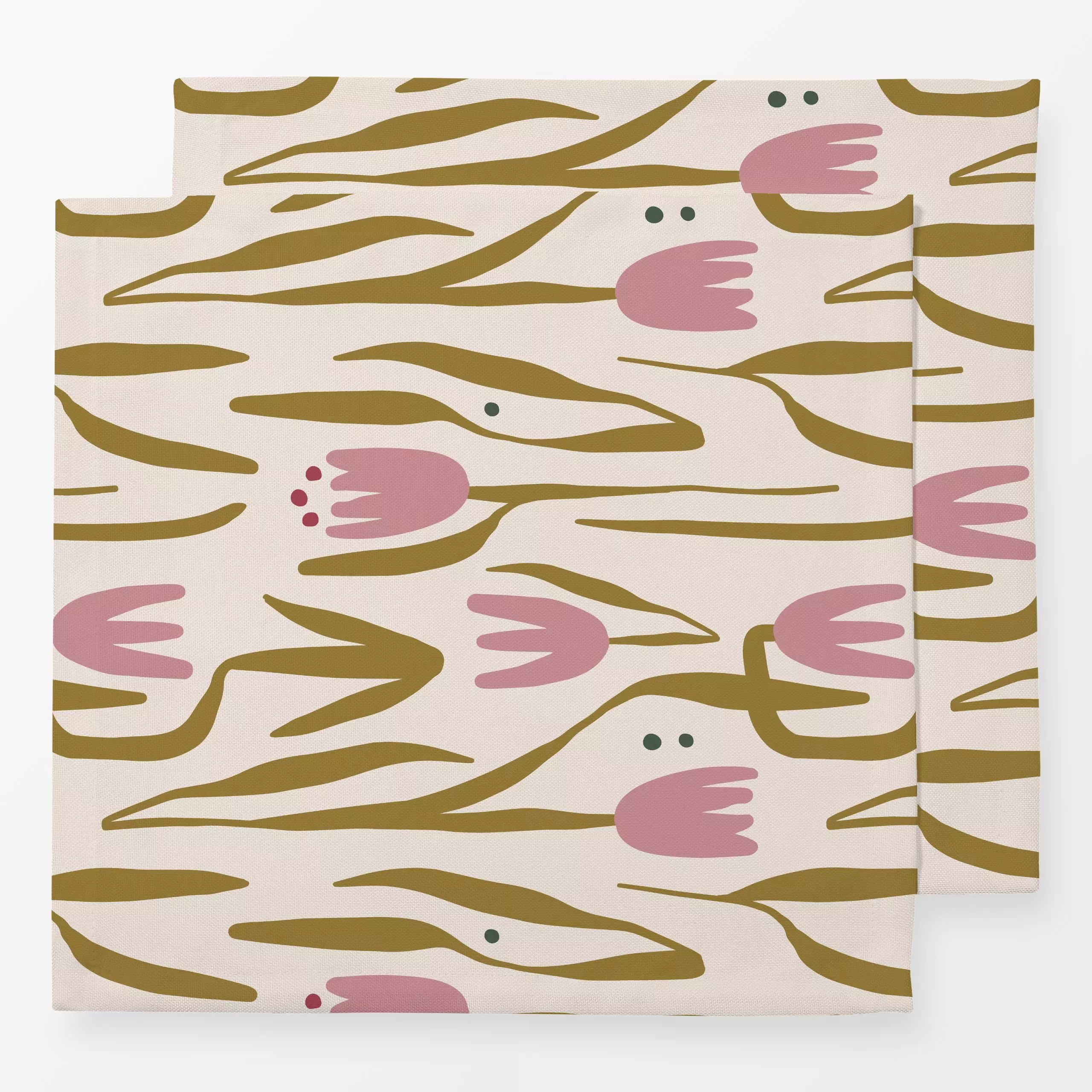 Dekokissen Sprüche drinnen / Indoor Zierkissen Canvas waschbar Design rosa Pop Art Sofakissen mit Füllung