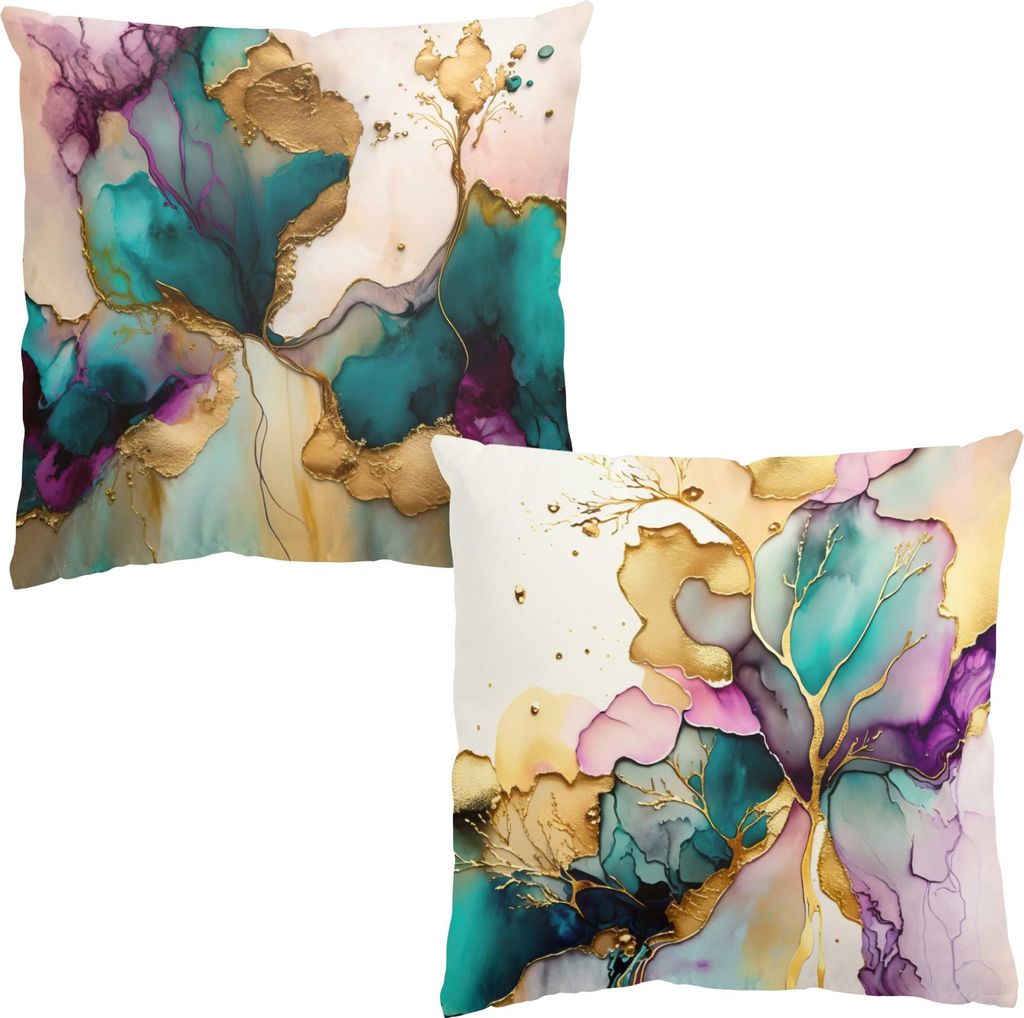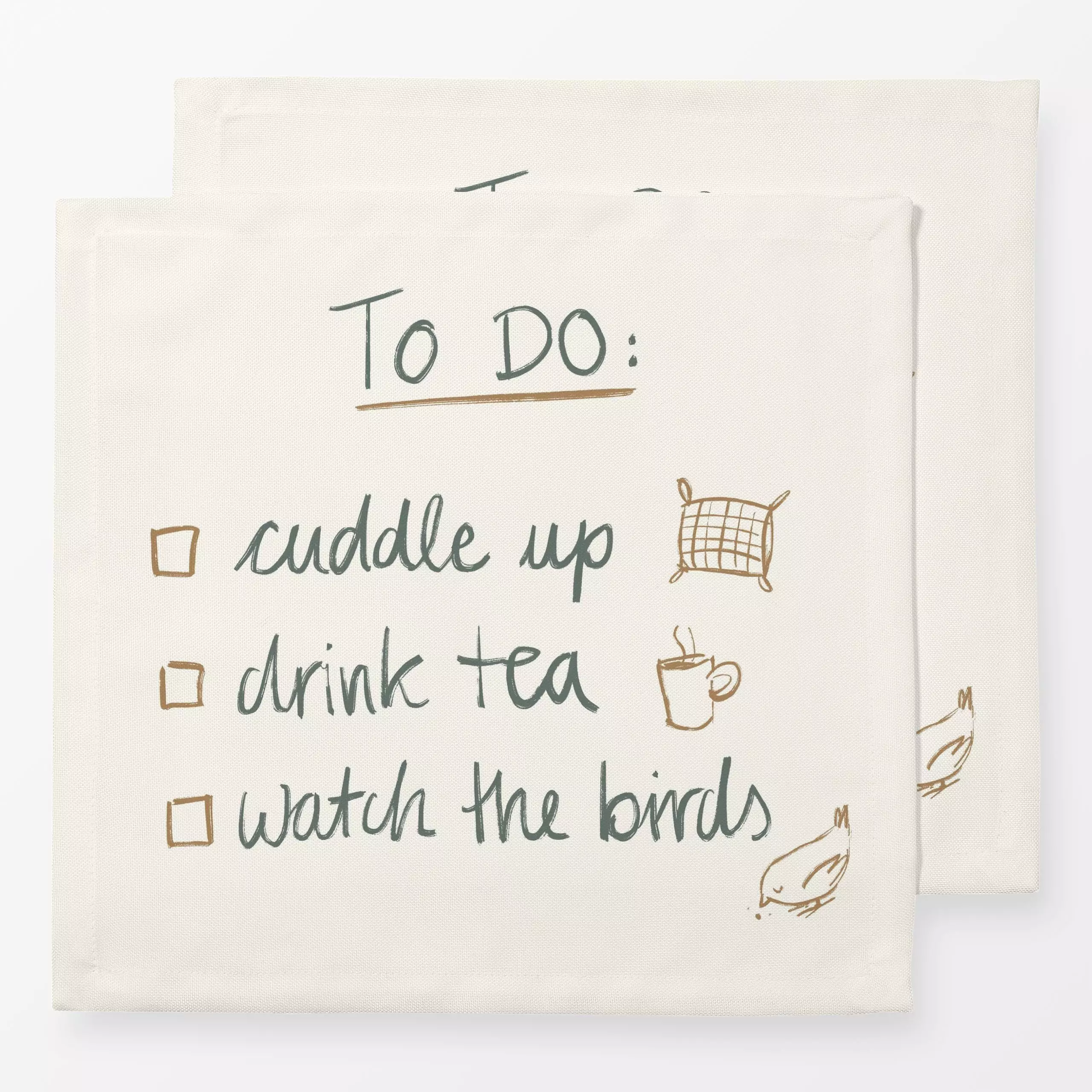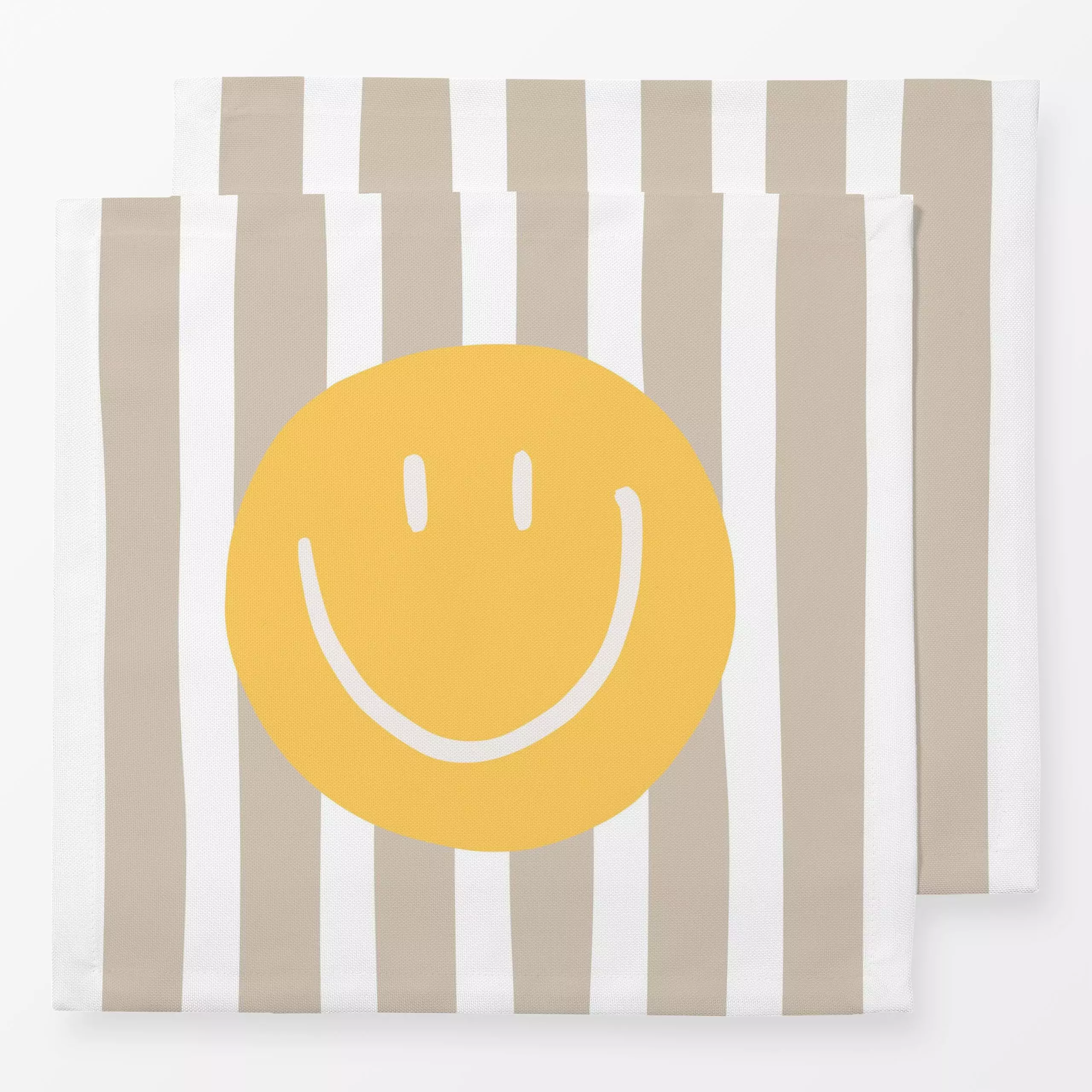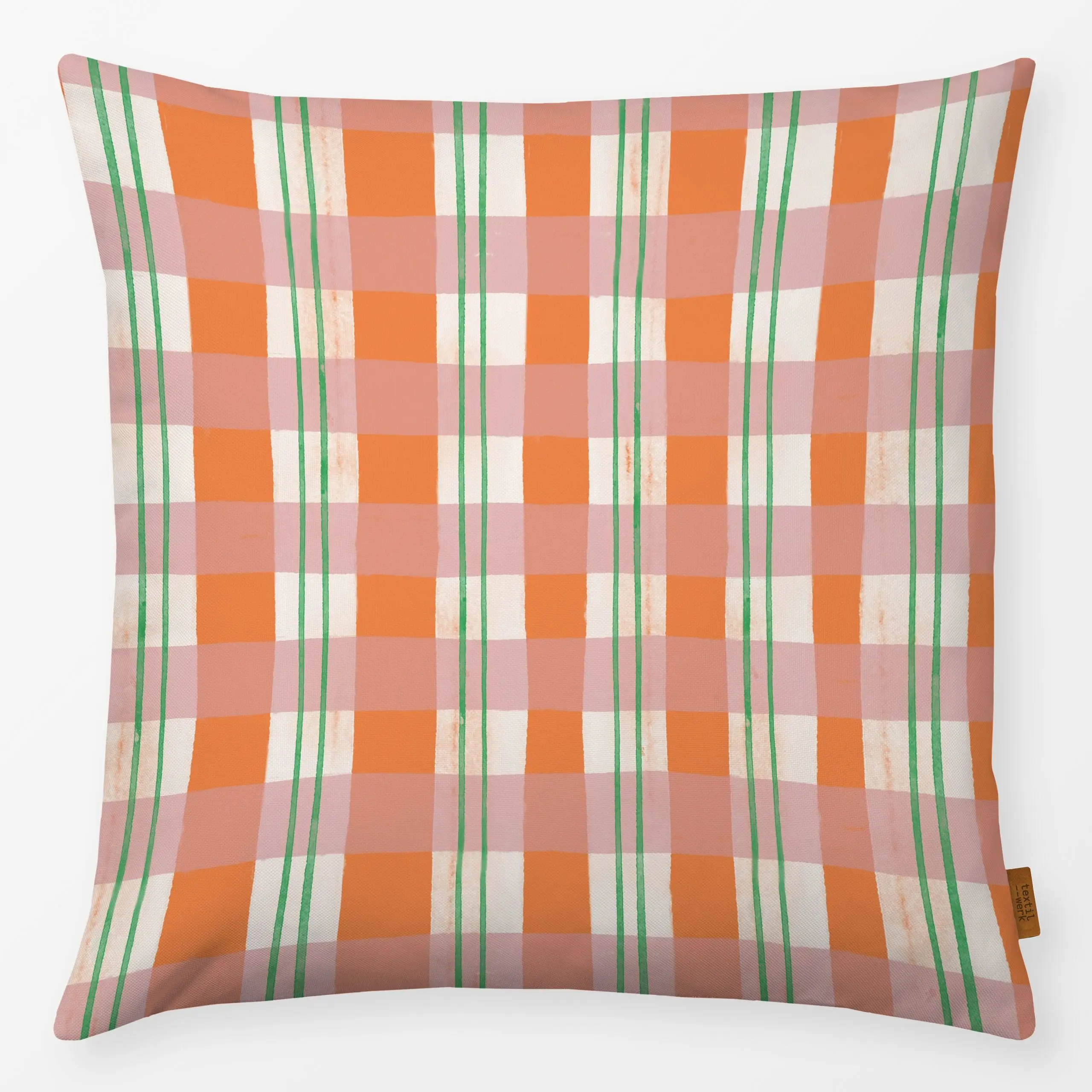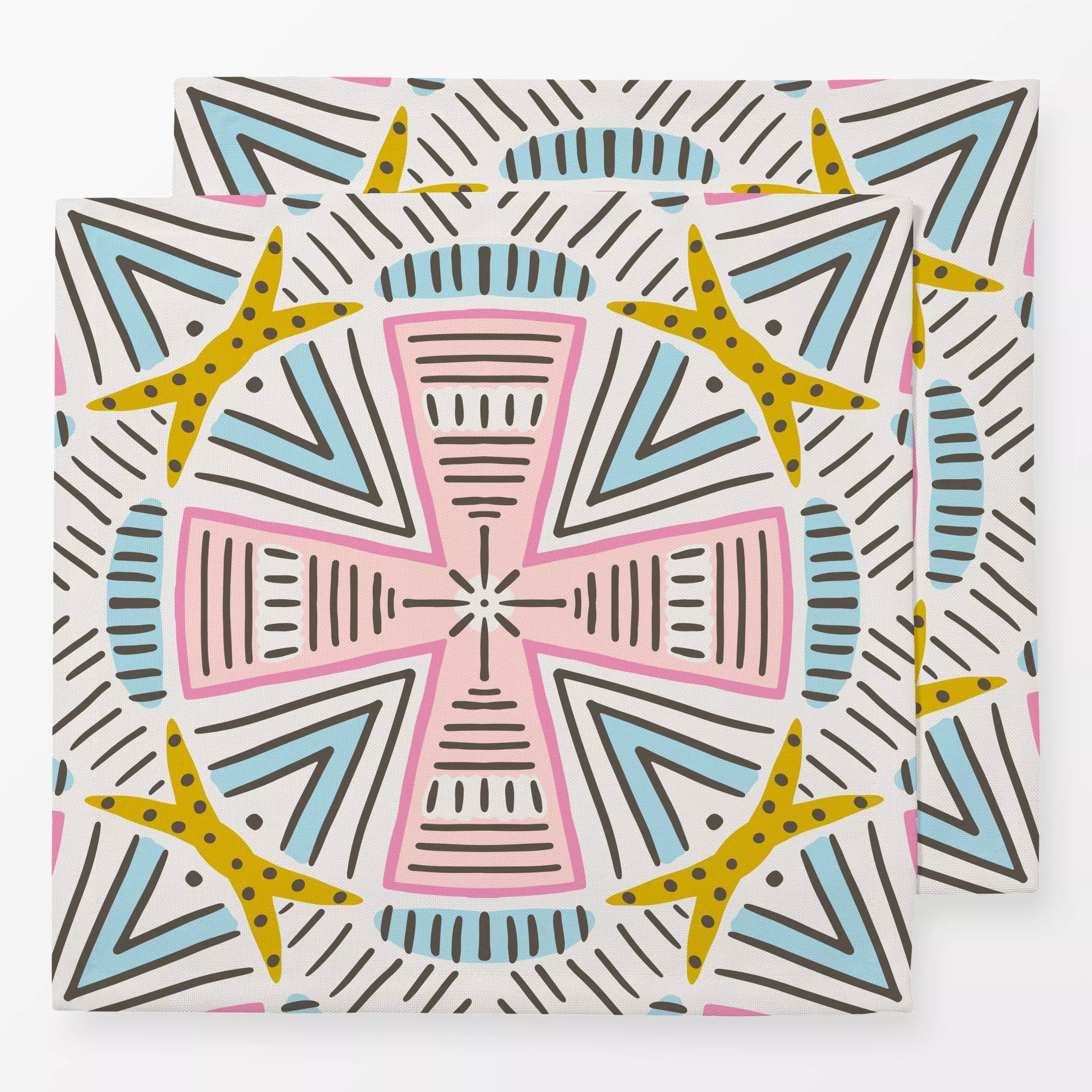 Dekokissen Sprüche drinnen / Indoor Zierkissen Canvas waschbar Design rosa Pop Art Sofakissen mit Füllung