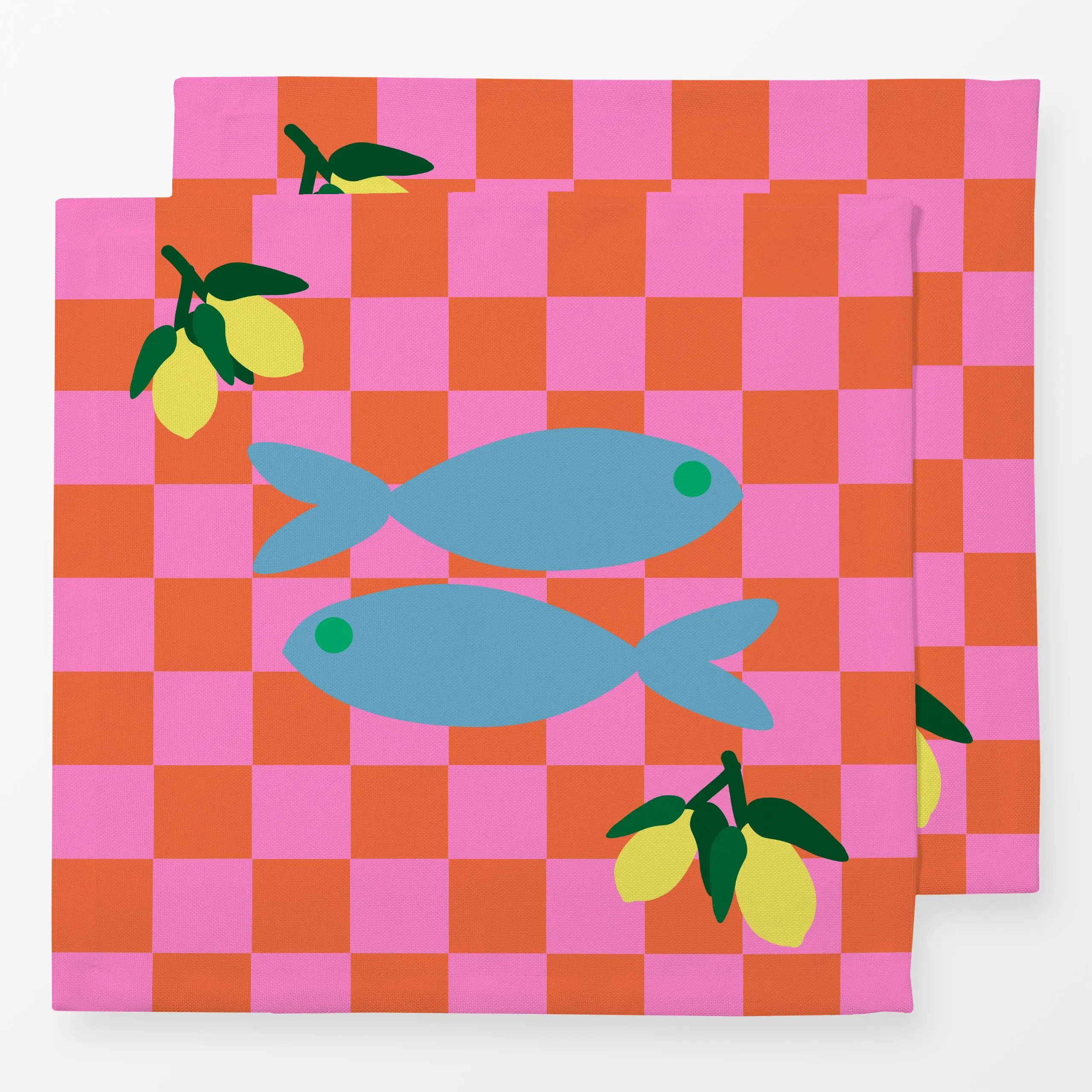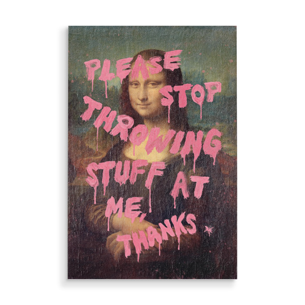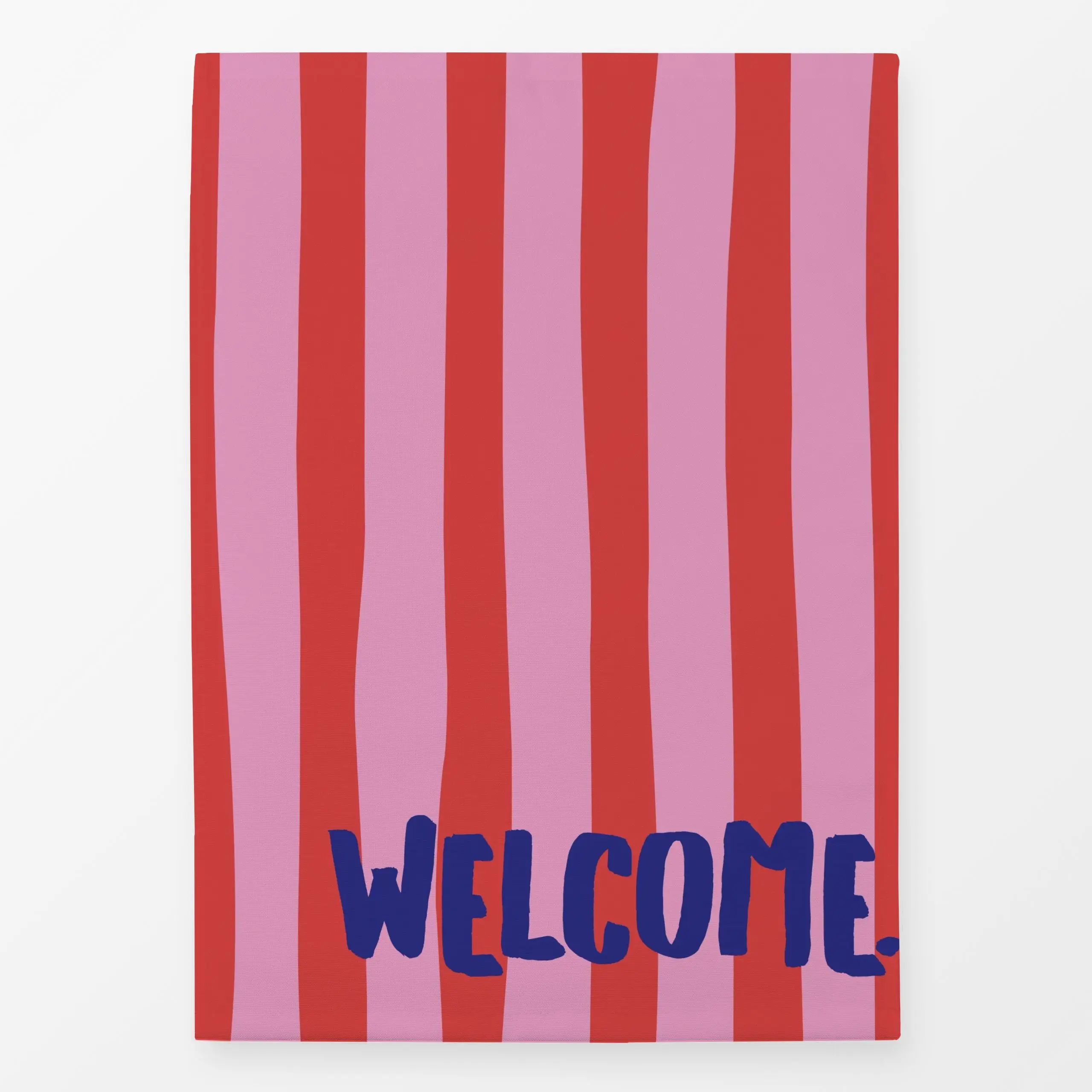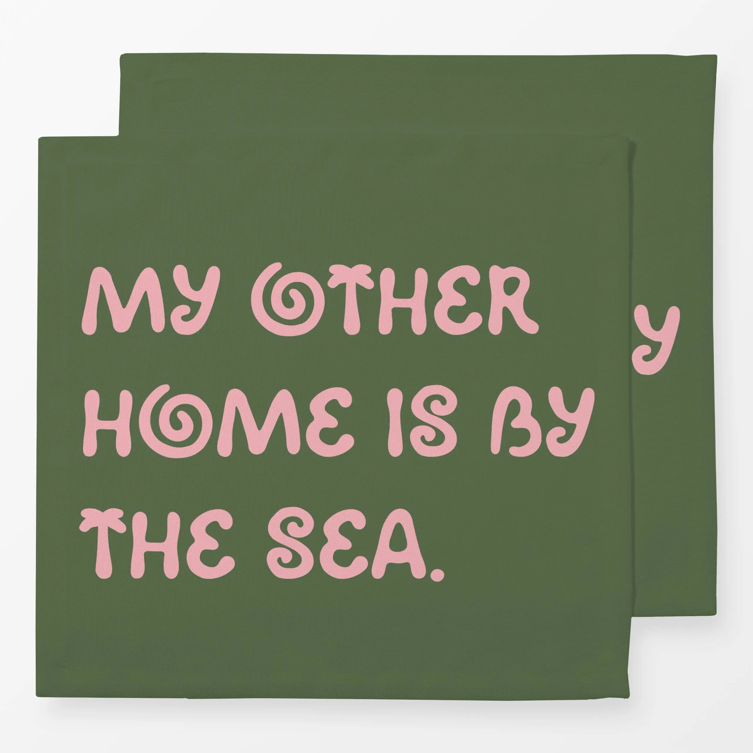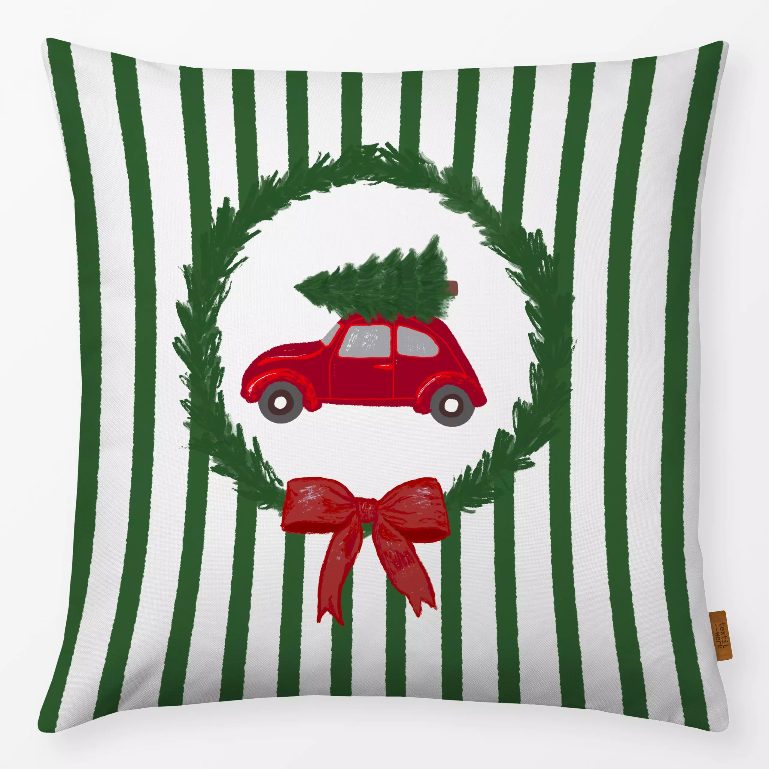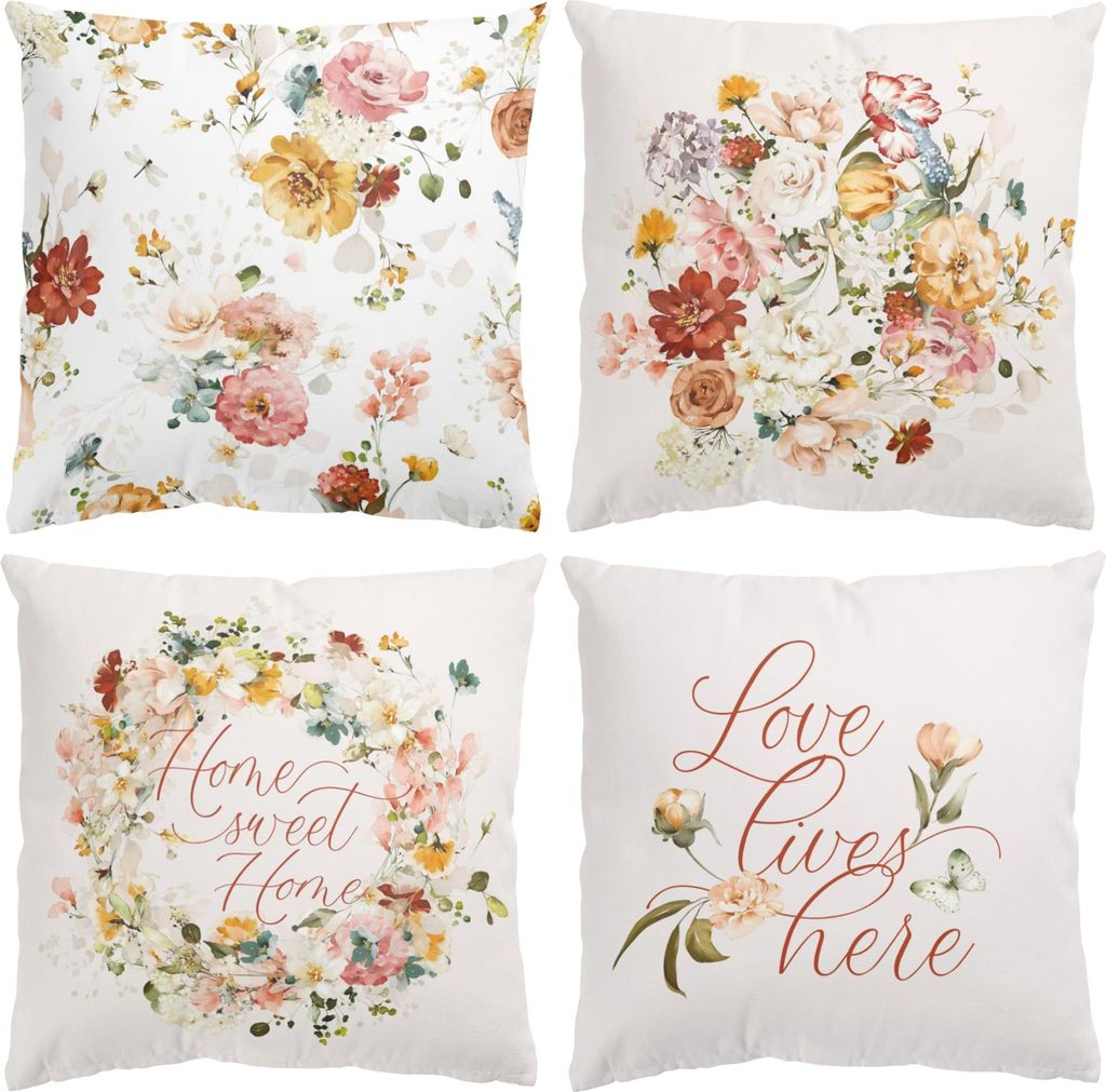 Dekokissen Sprüche drinnen / Indoor Zierkissen Canvas waschbar Design rosa Pop Art Sofakissen mit Füllung