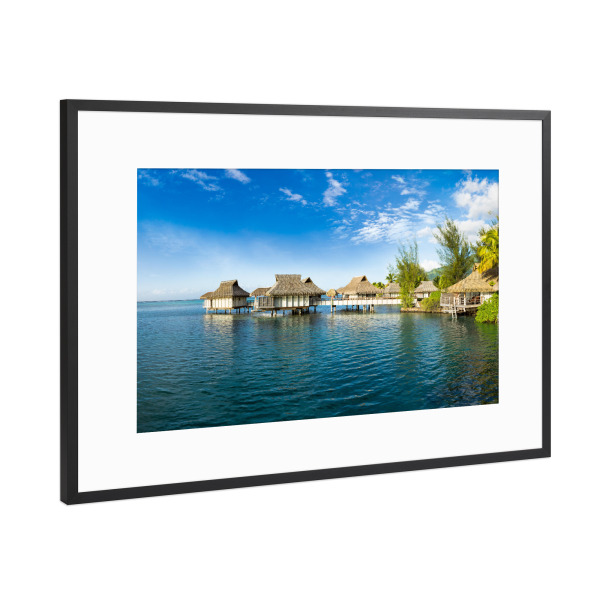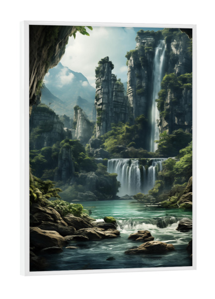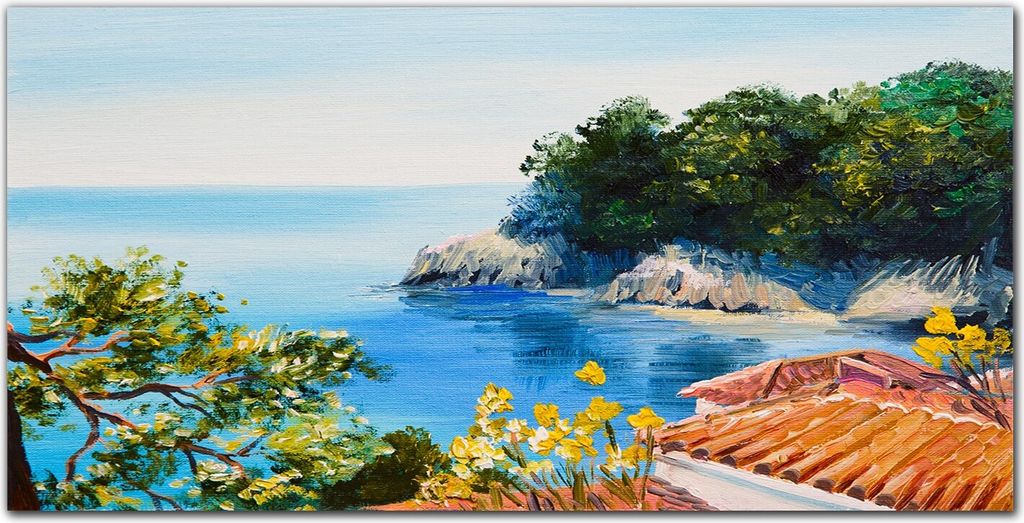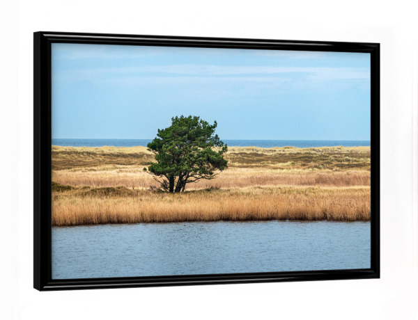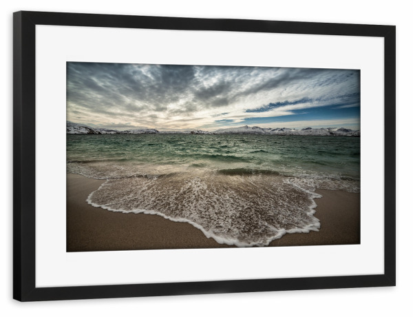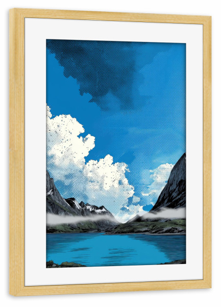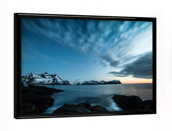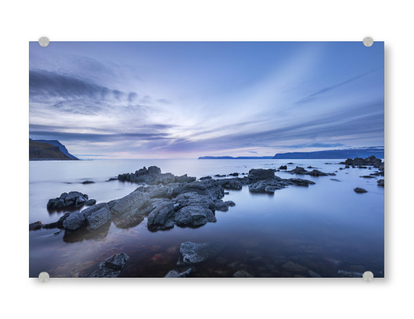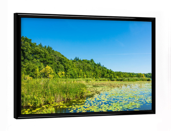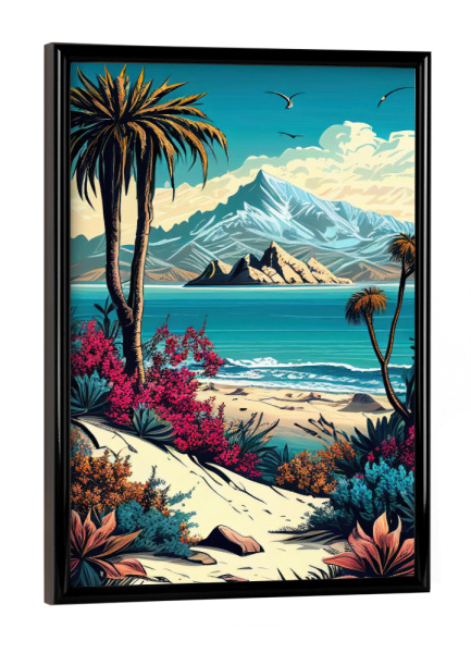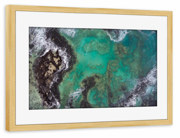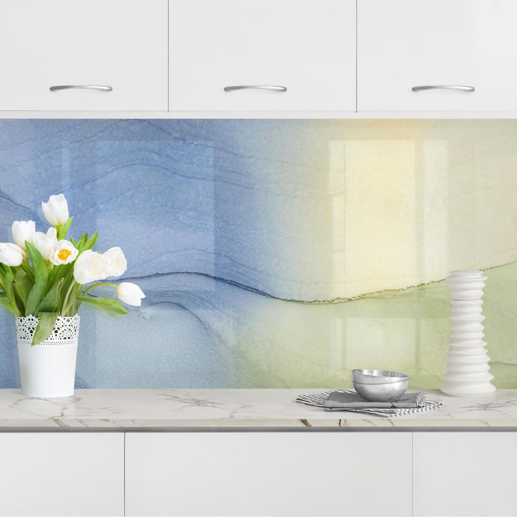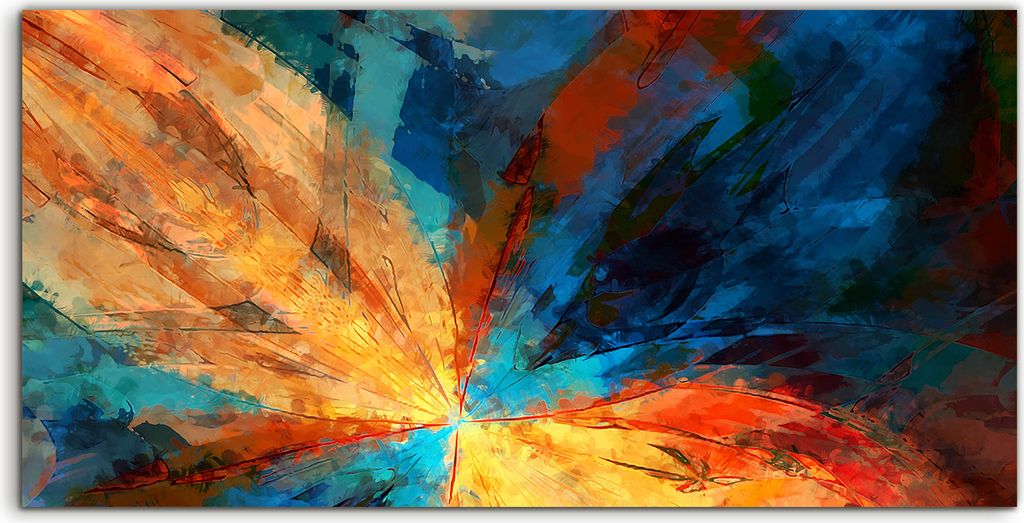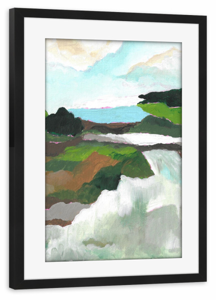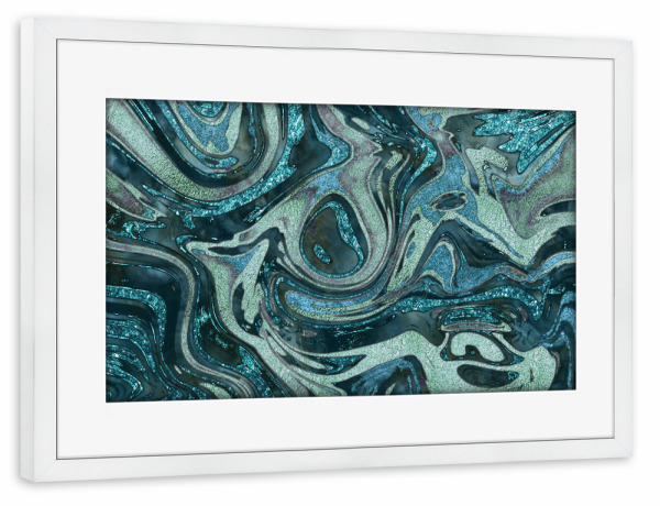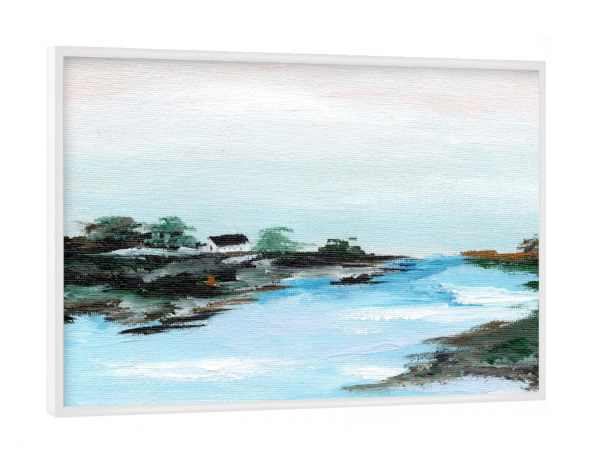 Spannbild ️ Fluid Art Lagune | Panorama | wandbild.com 120 x 40 / Rahmen vormontiert