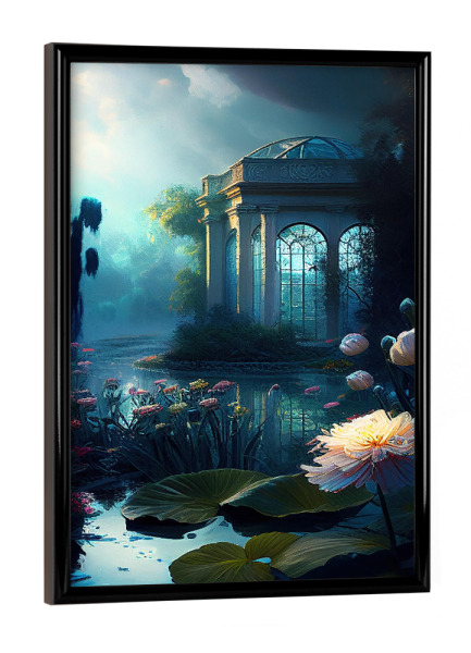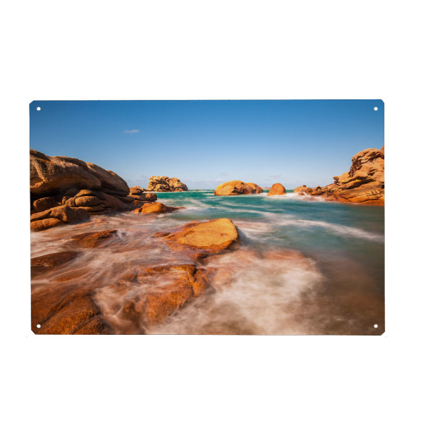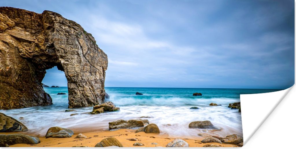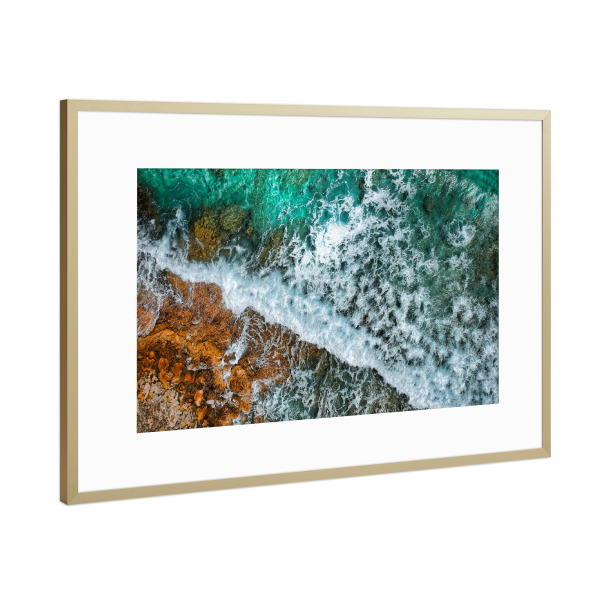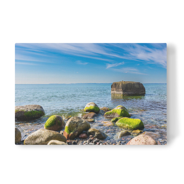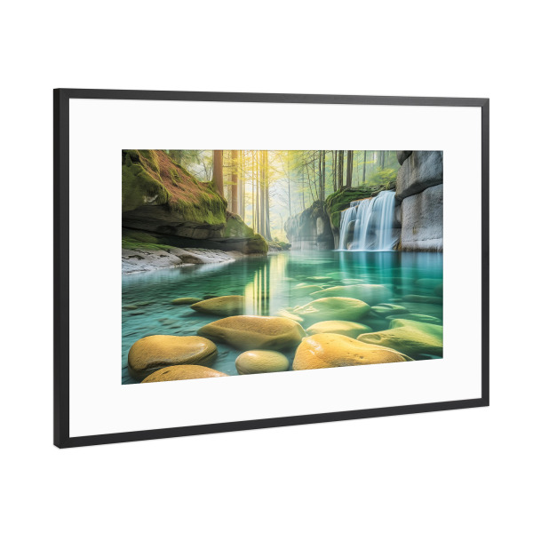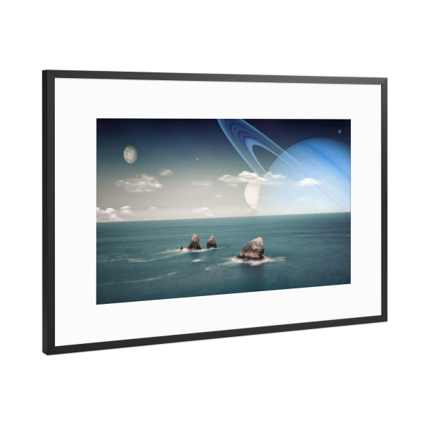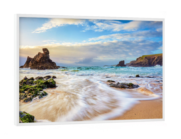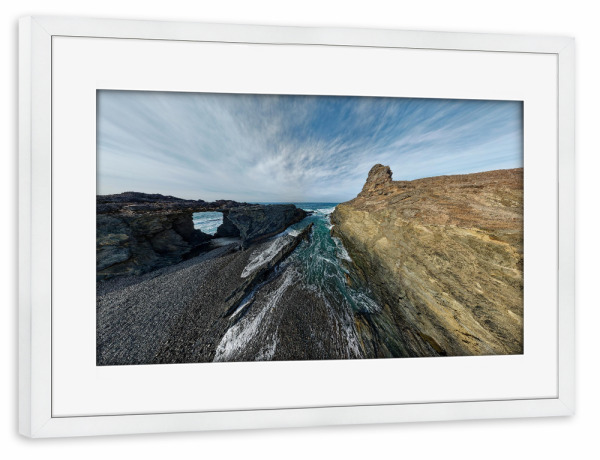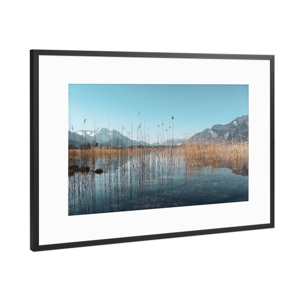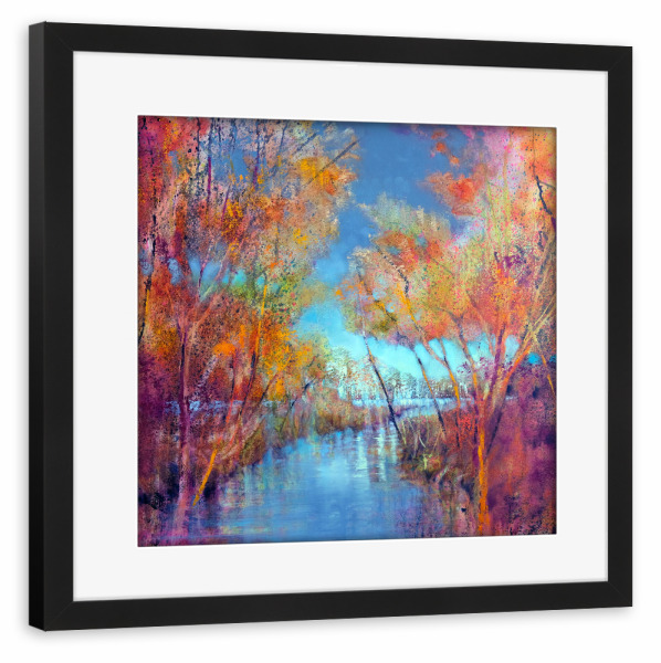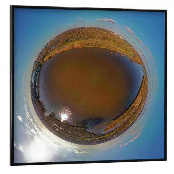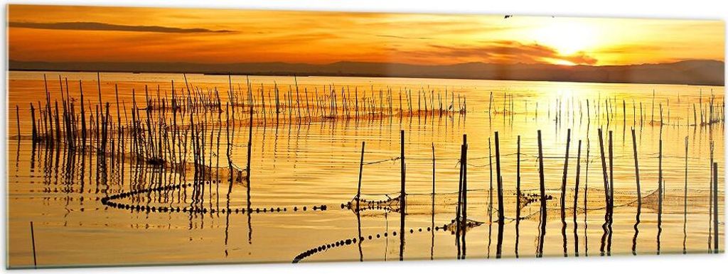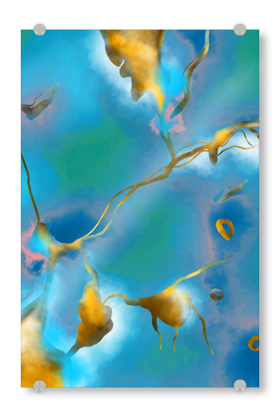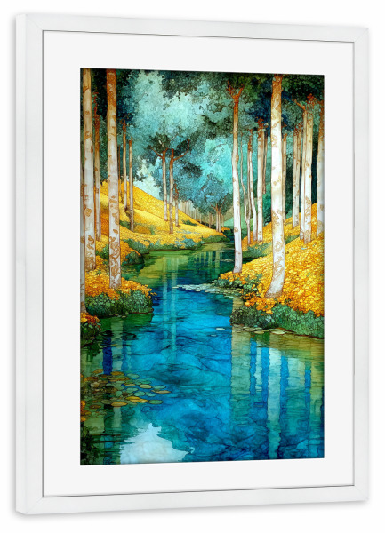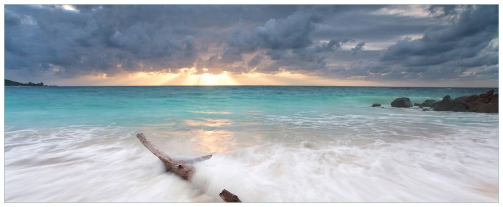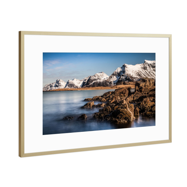 Spannbild ️ Fluid Art Lagune | Panorama | wandbild.com 120 x 40 / Rahmen vormontiert