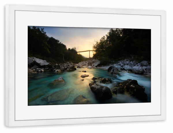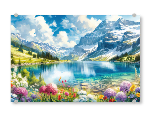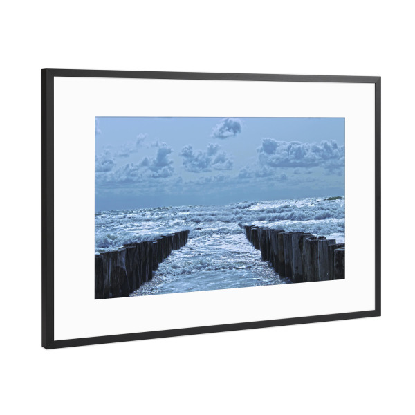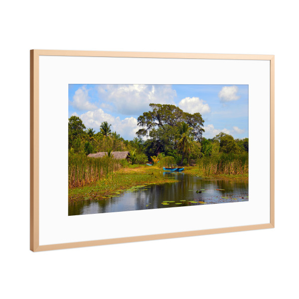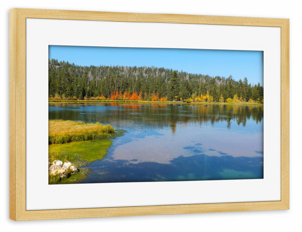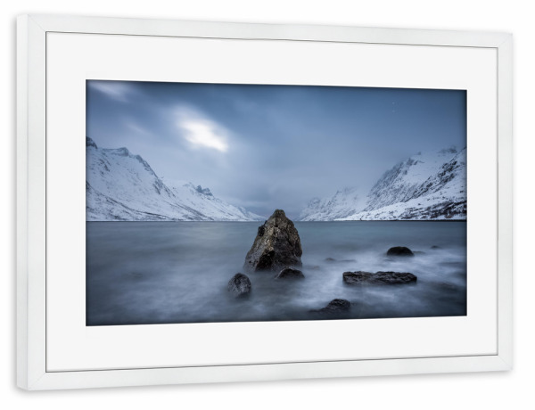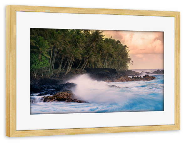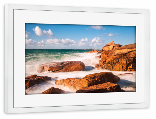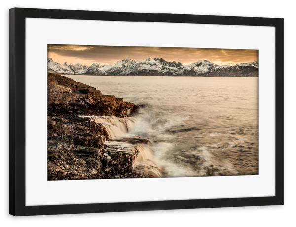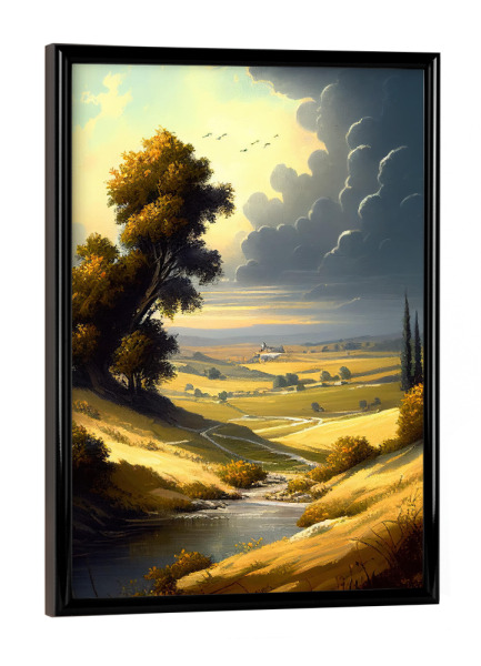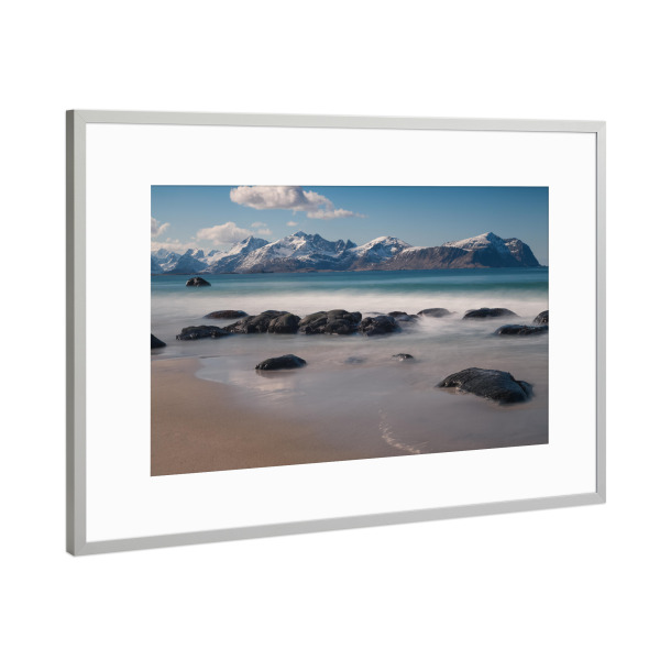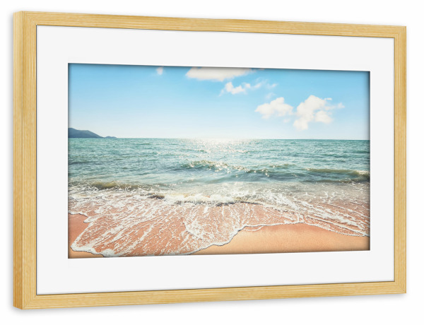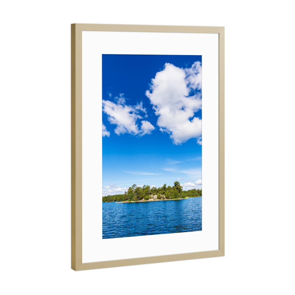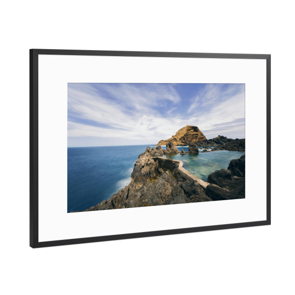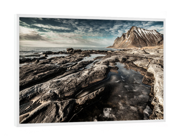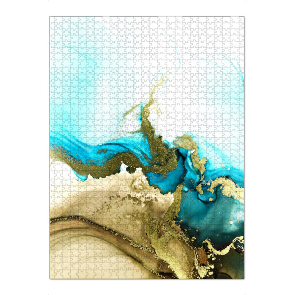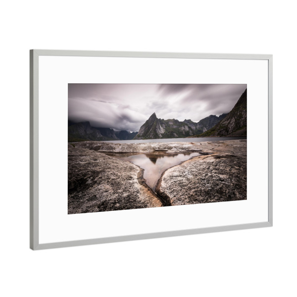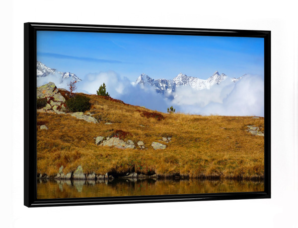 Spannbild ️ Fluid Art Lagune | Panorama | wandbild.com 120 x 40 / Rahmen vormontiert