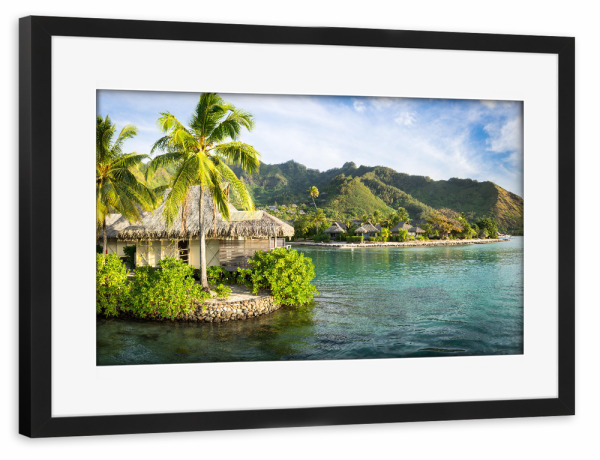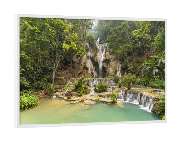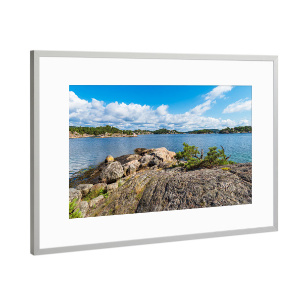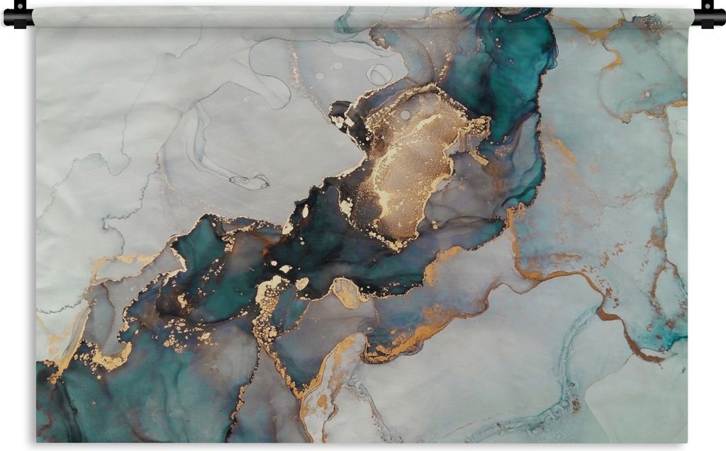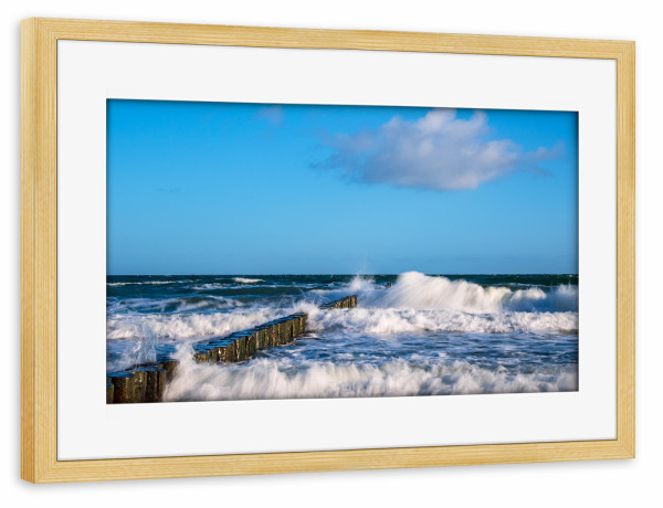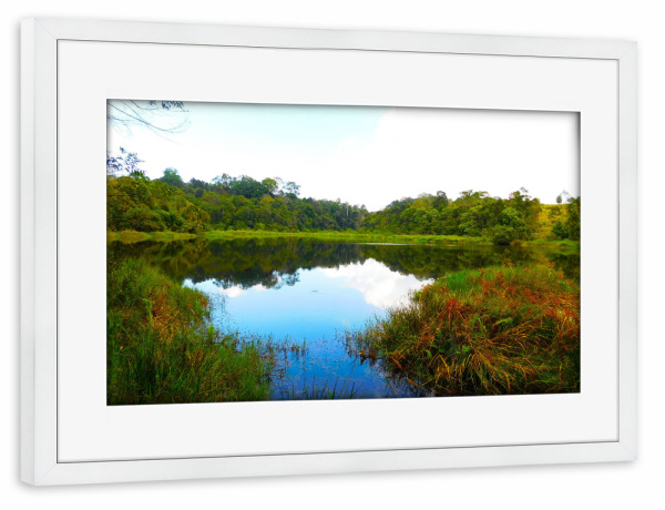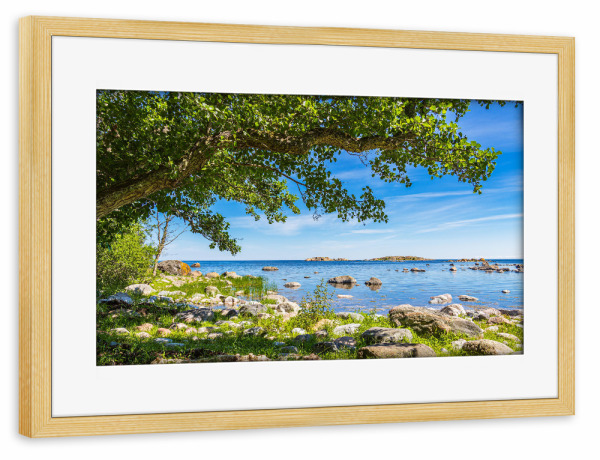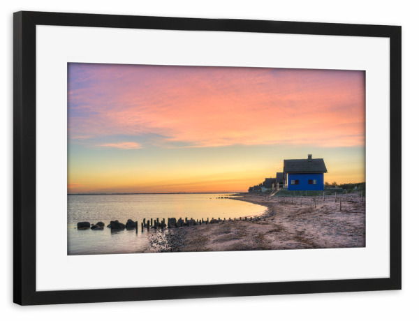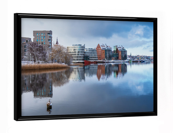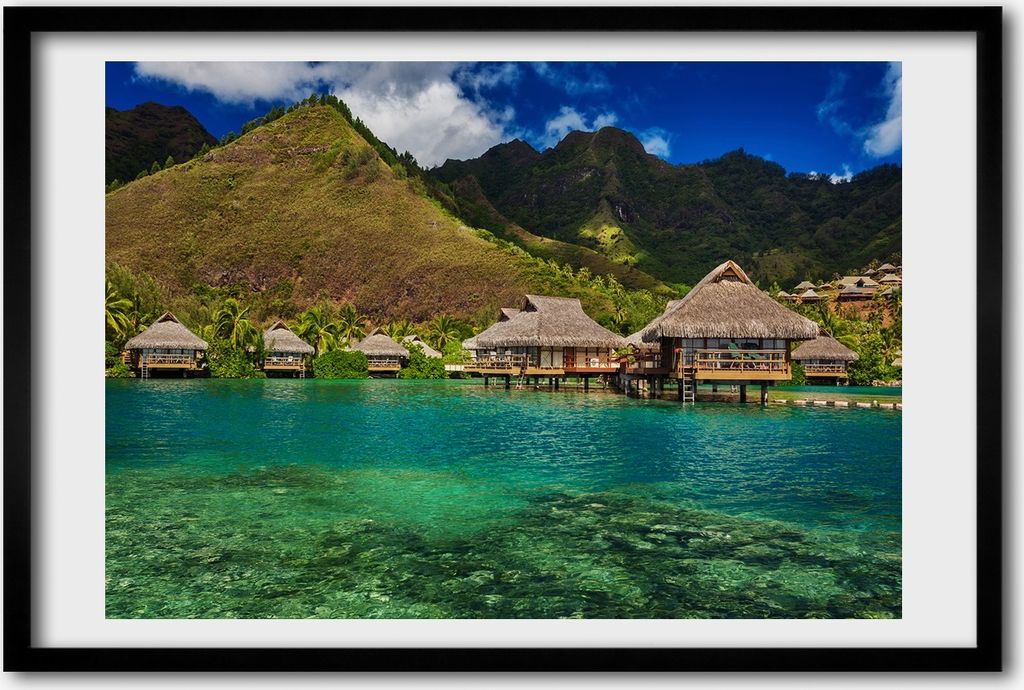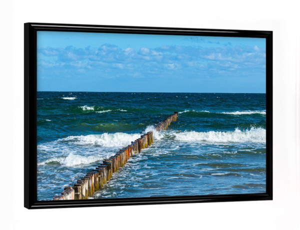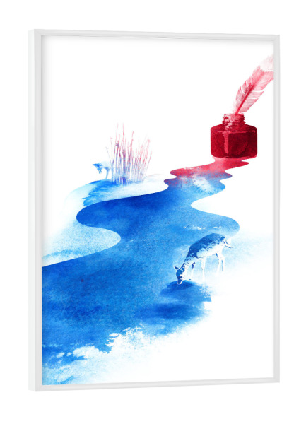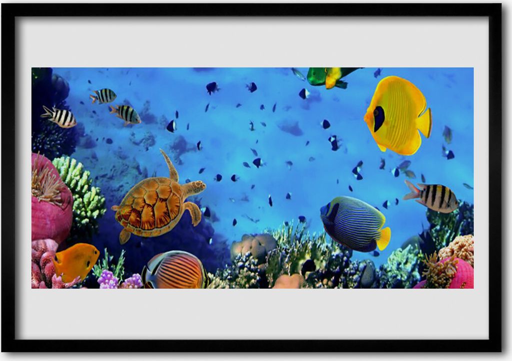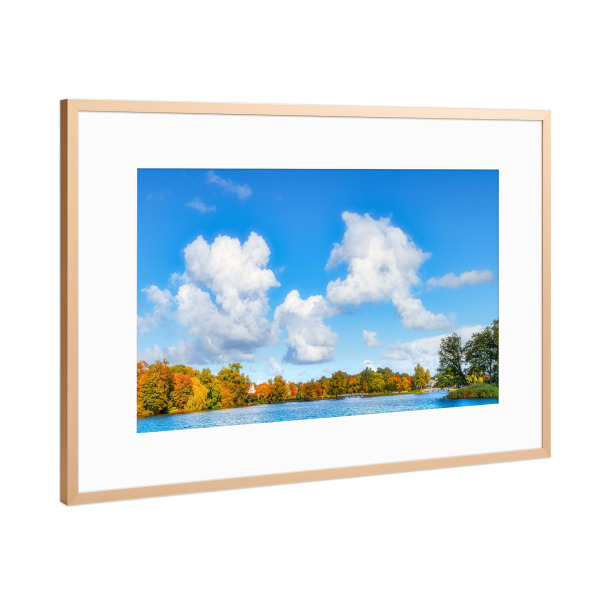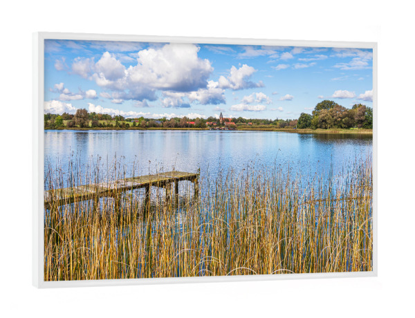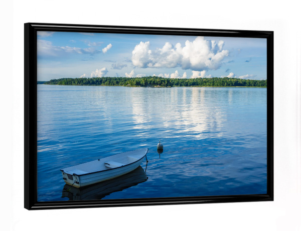 Spannbild ️ Fluid Art Lagune | Panorama | wandbild.com 120 x 40 / Rahmen vormontiert