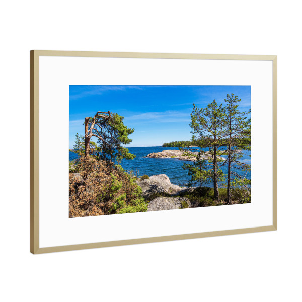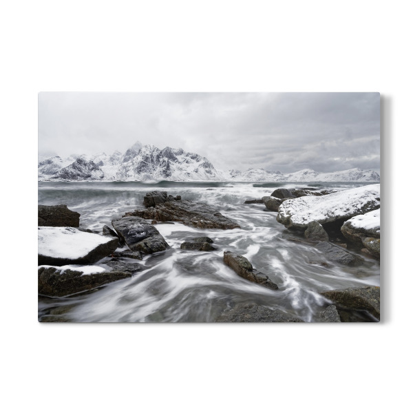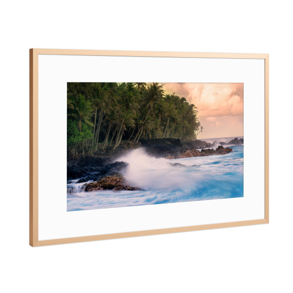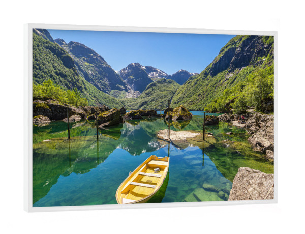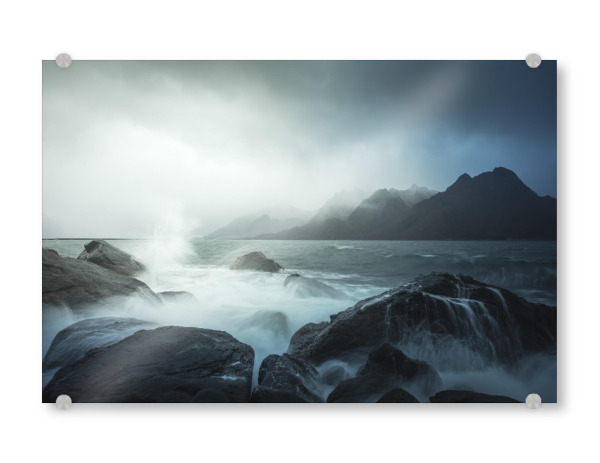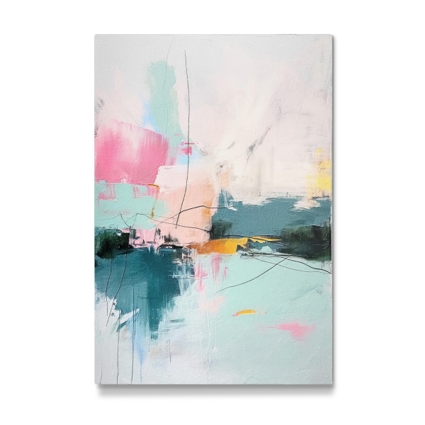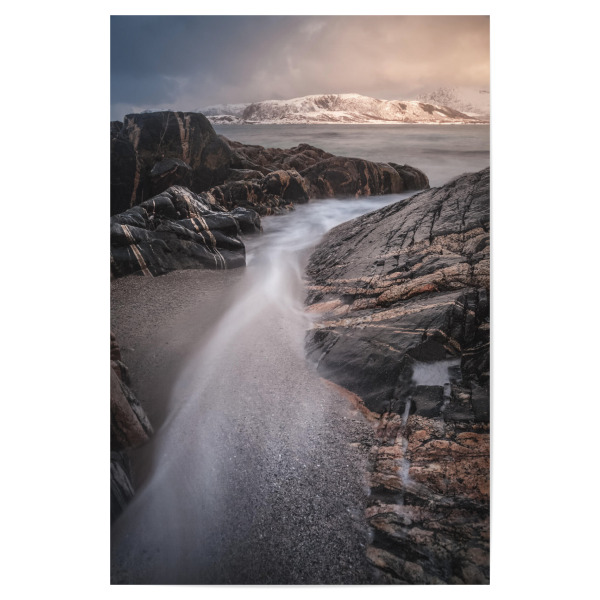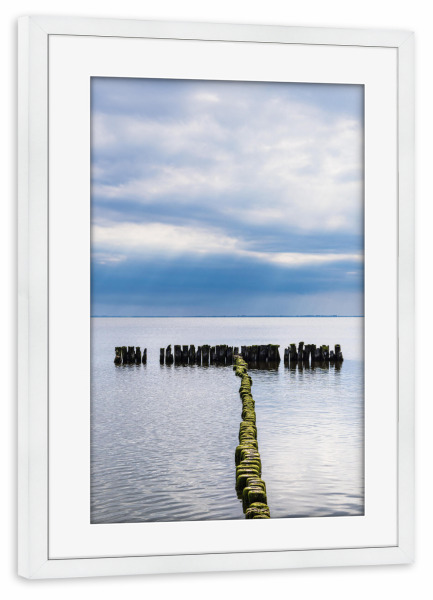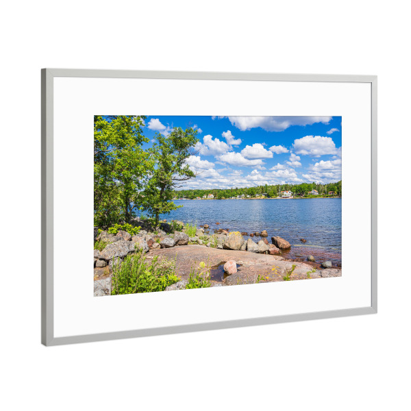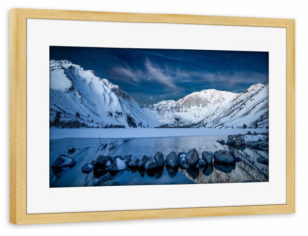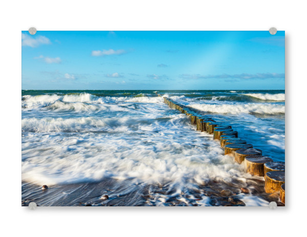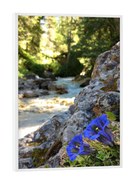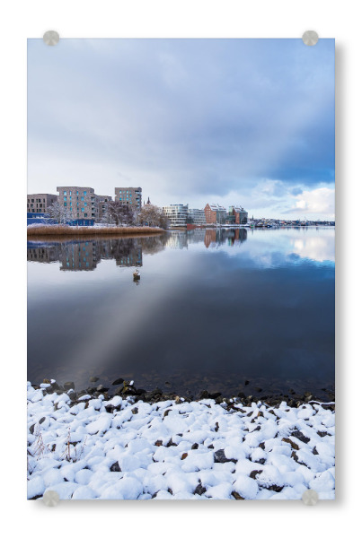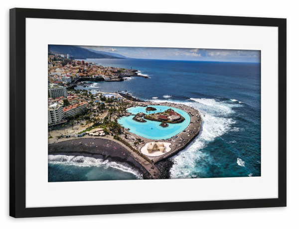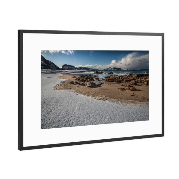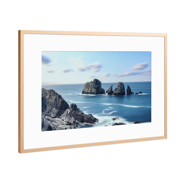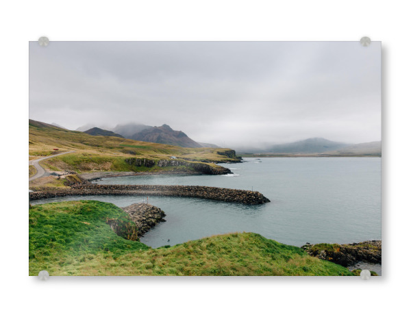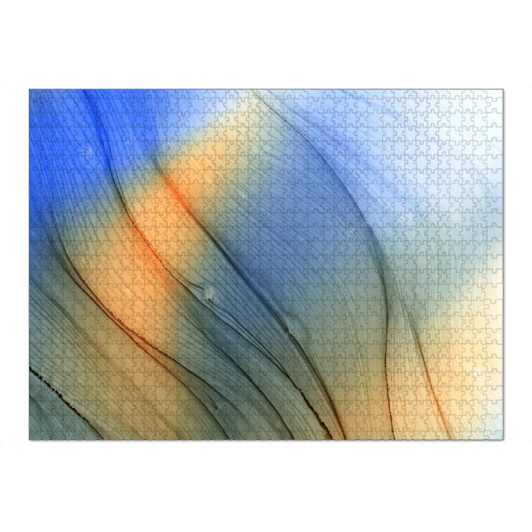 Spannbild ️ Fluid Art Lagune | Panorama | wandbild.com 120 x 40 / Rahmen vormontiert