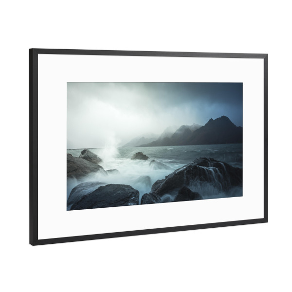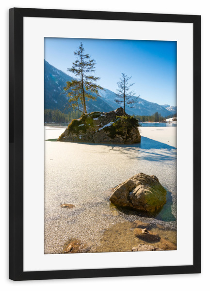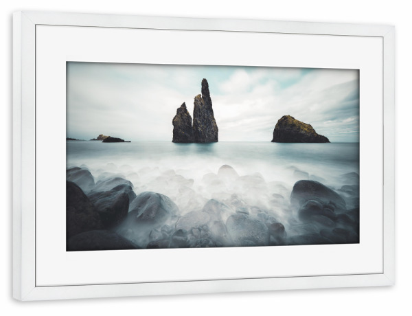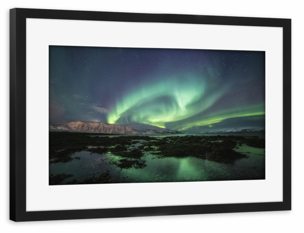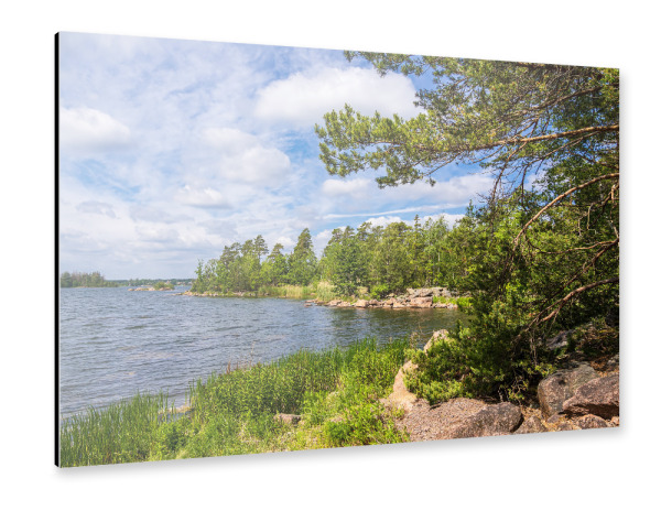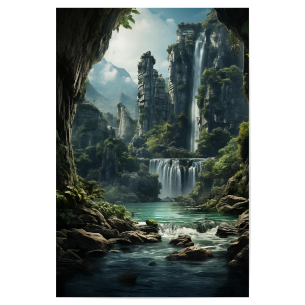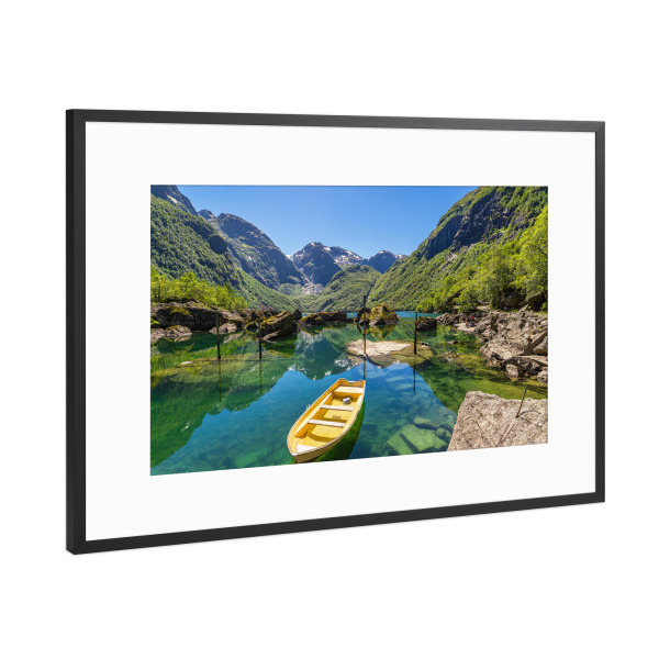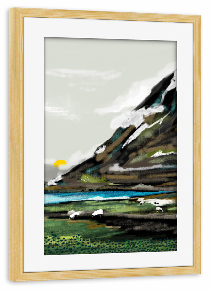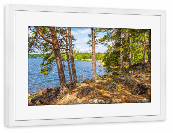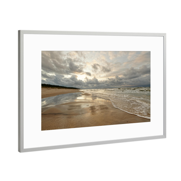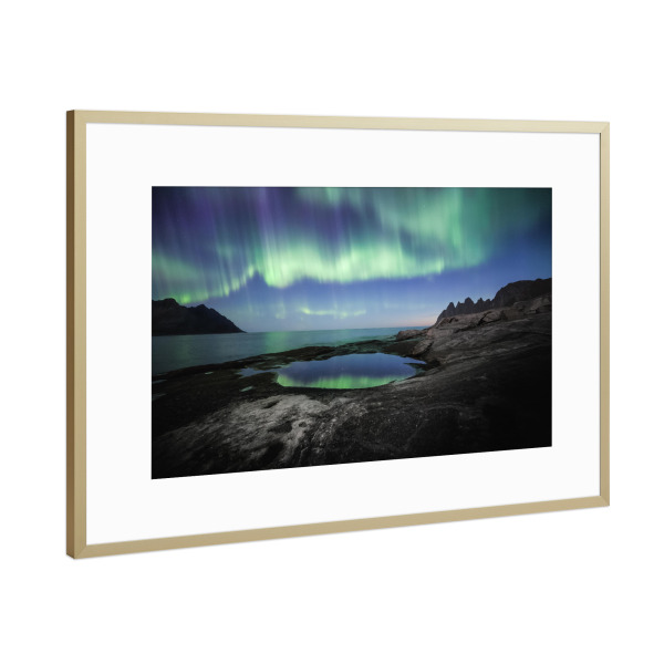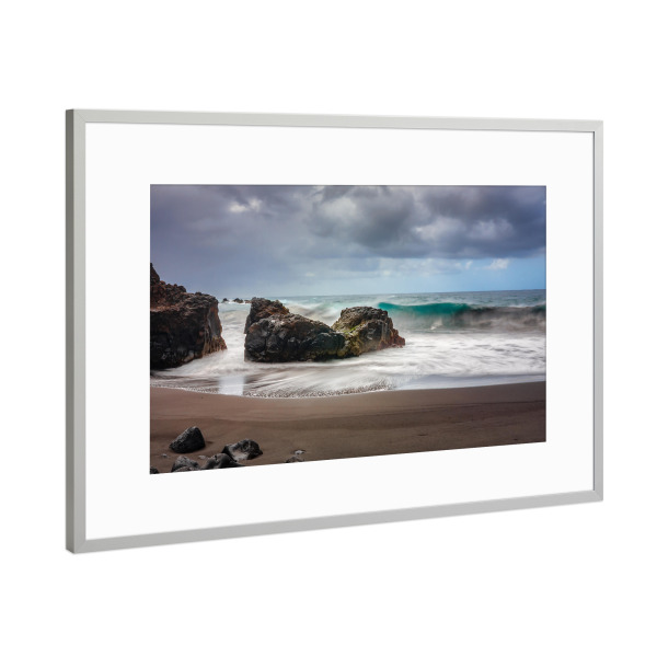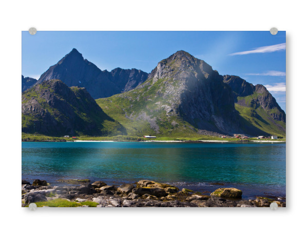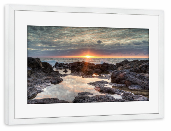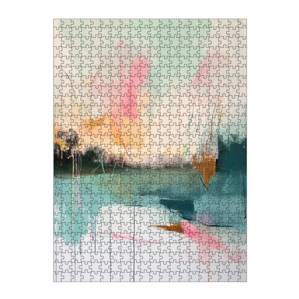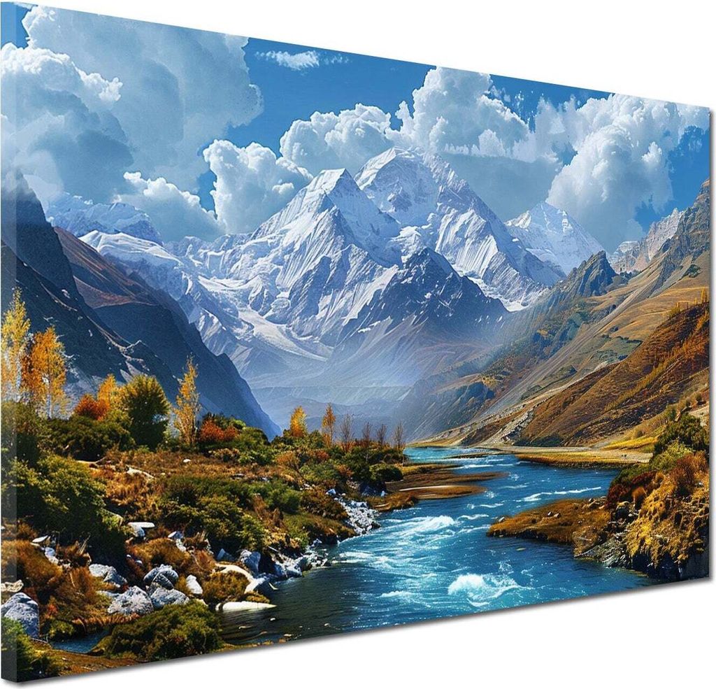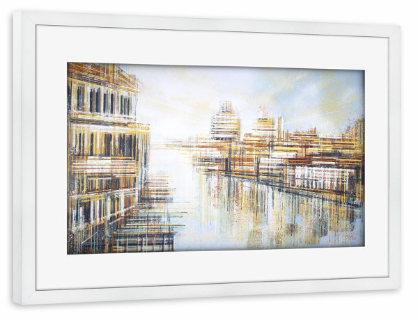 Spannbild ️ Fluid Art Lagune | Panorama | wandbild.com 120 x 40 / Rahmen vormontiert