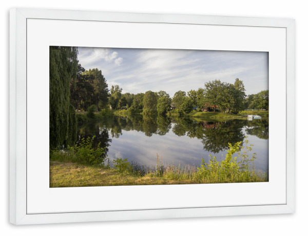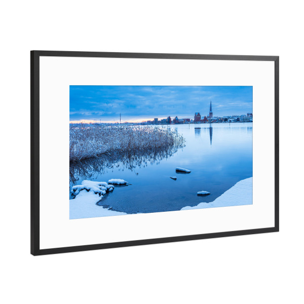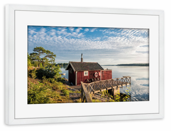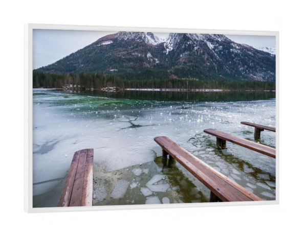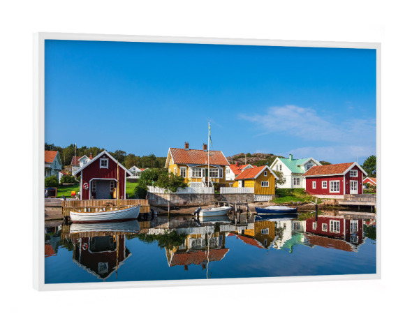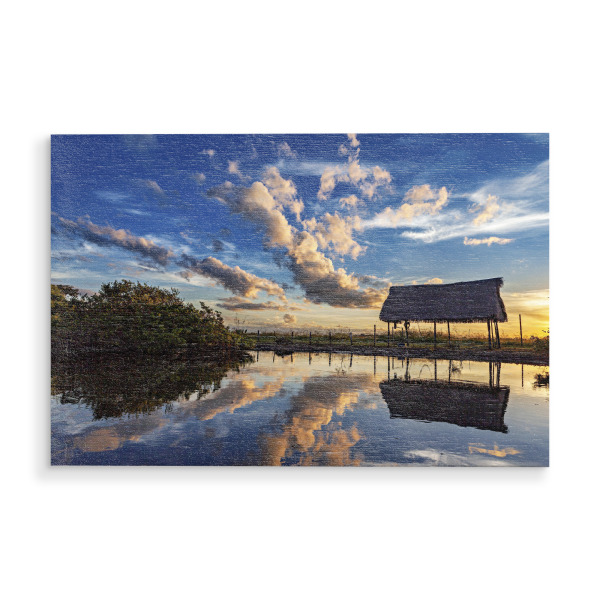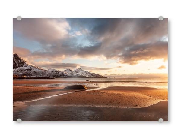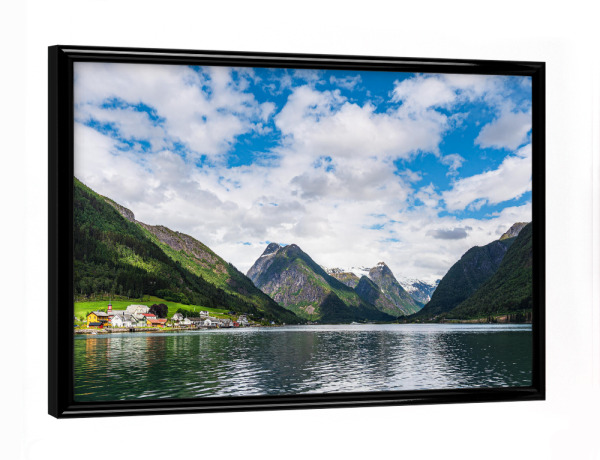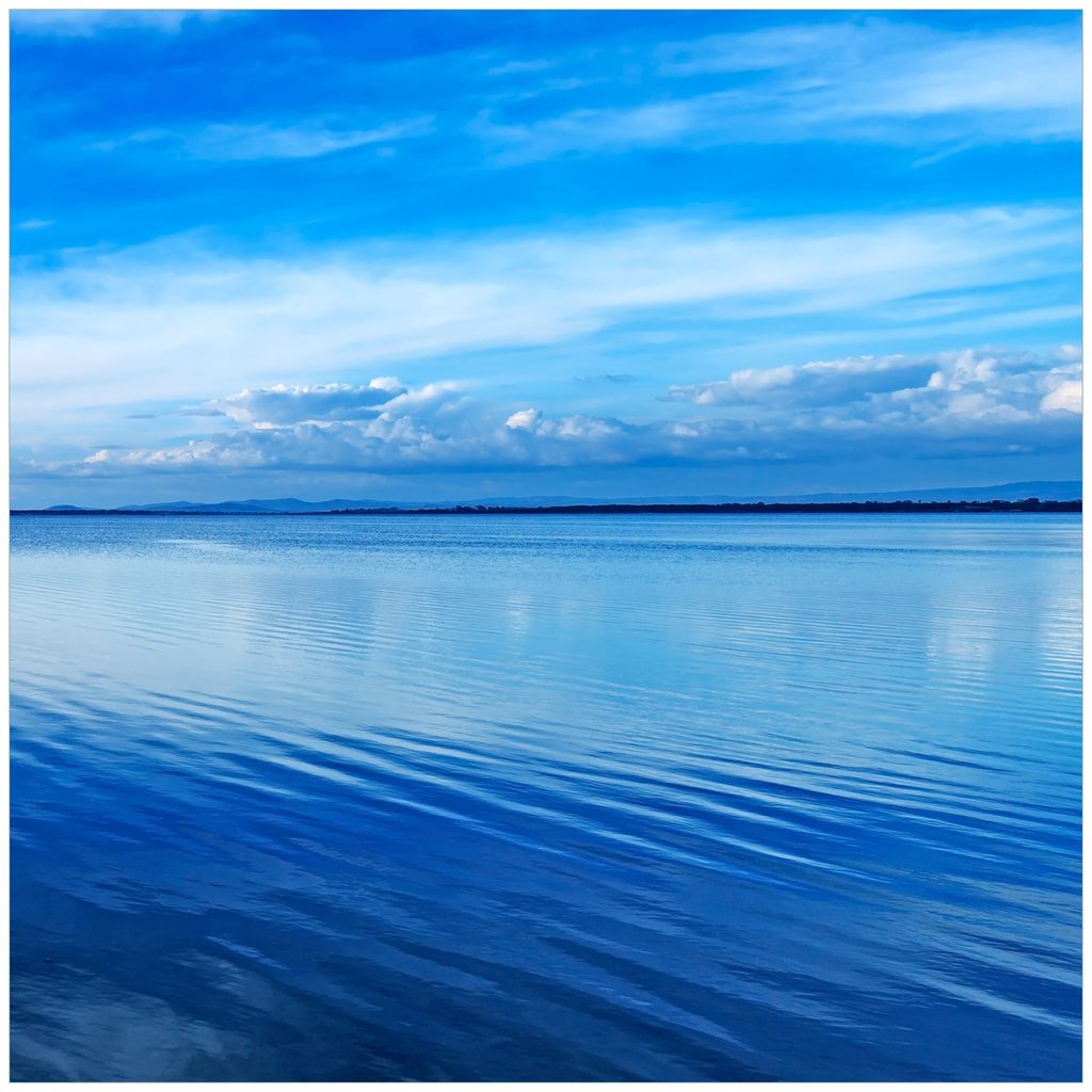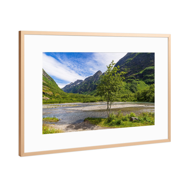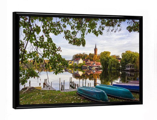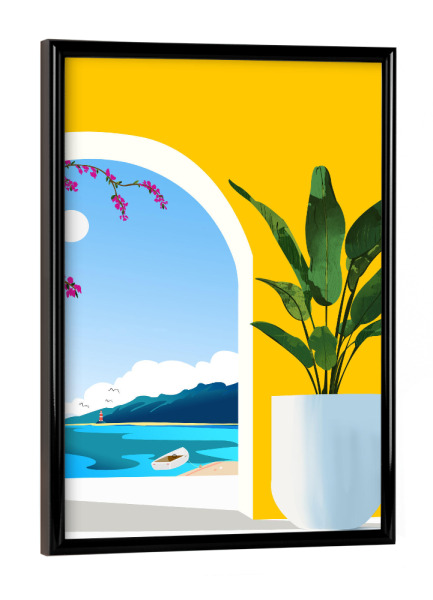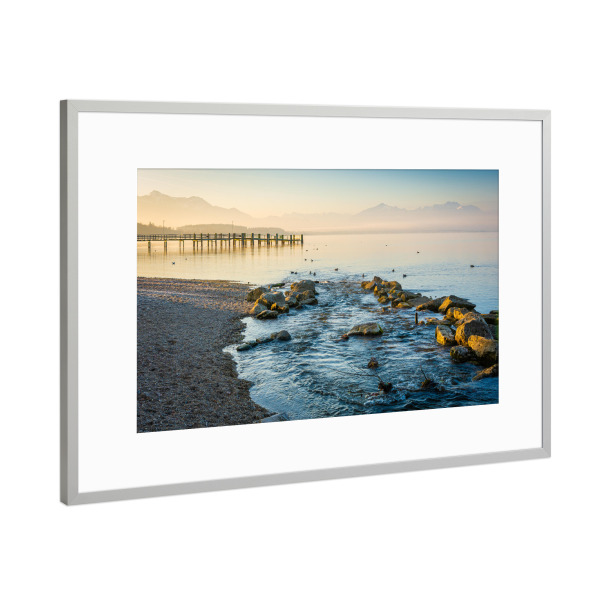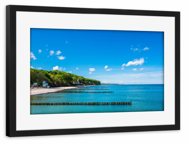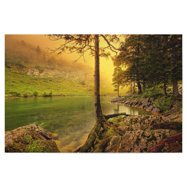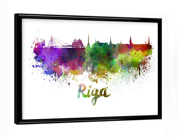 Spannbild ️ Fluid Art Lagune | Panorama | wandbild.com 120 x 40 / Rahmen vormontiert
