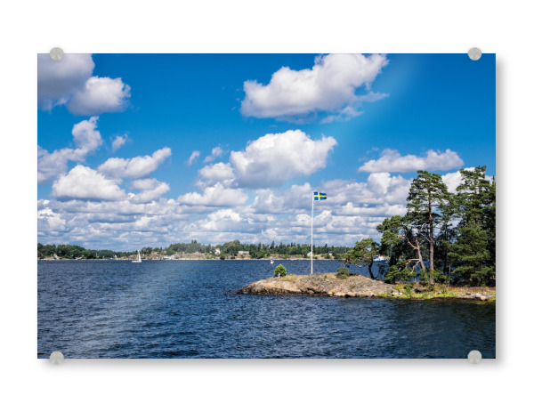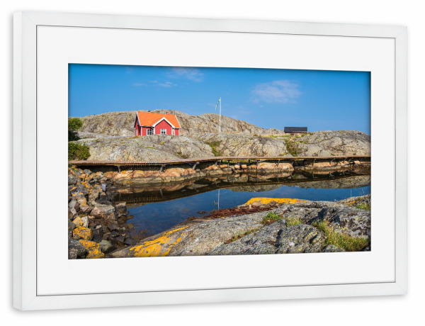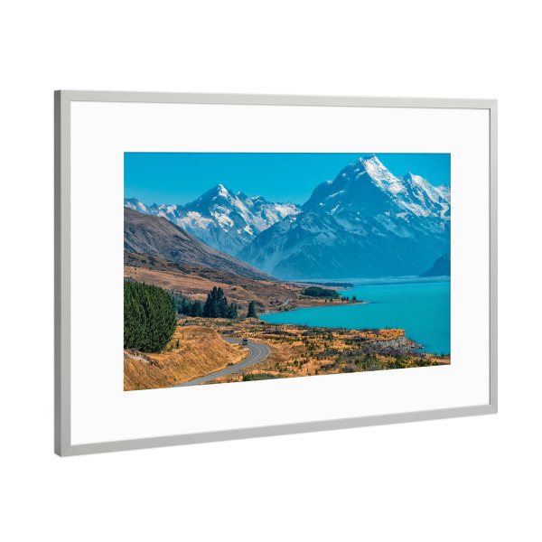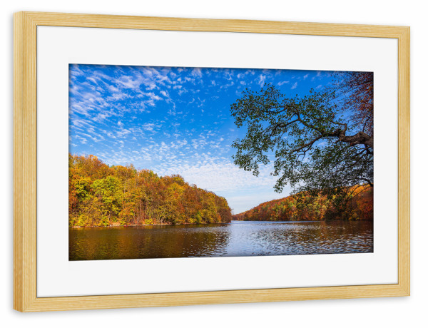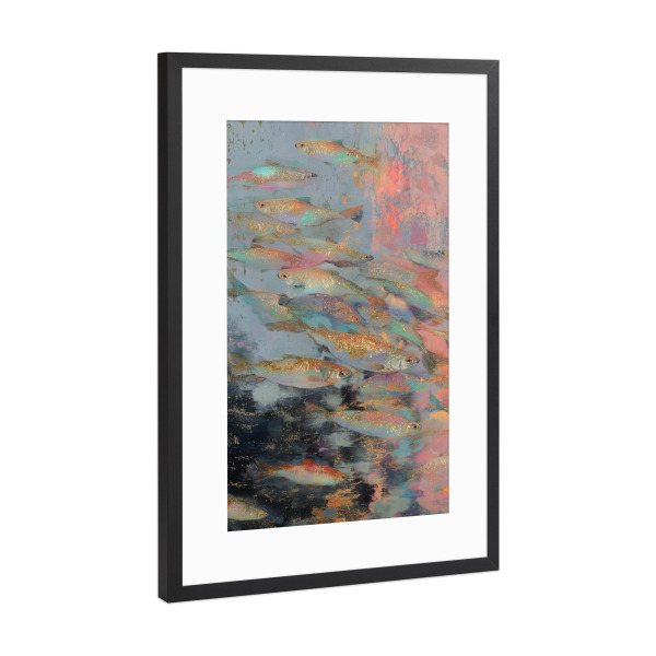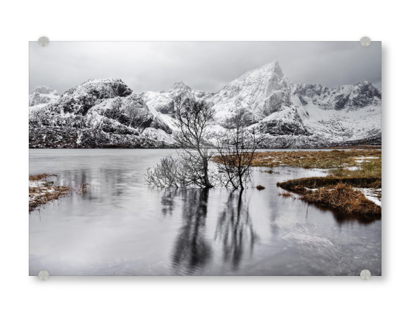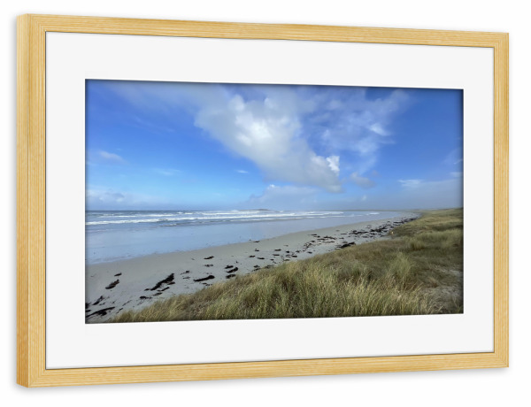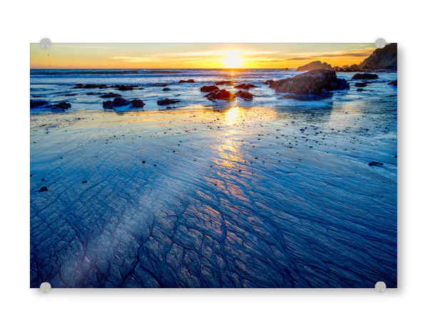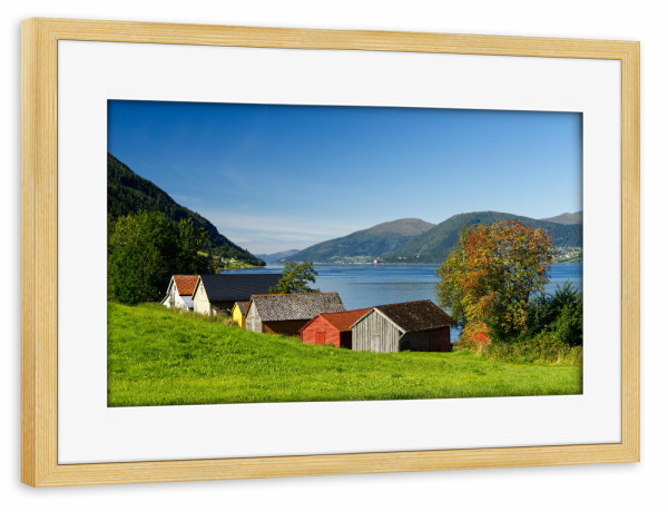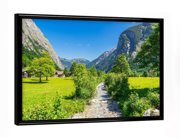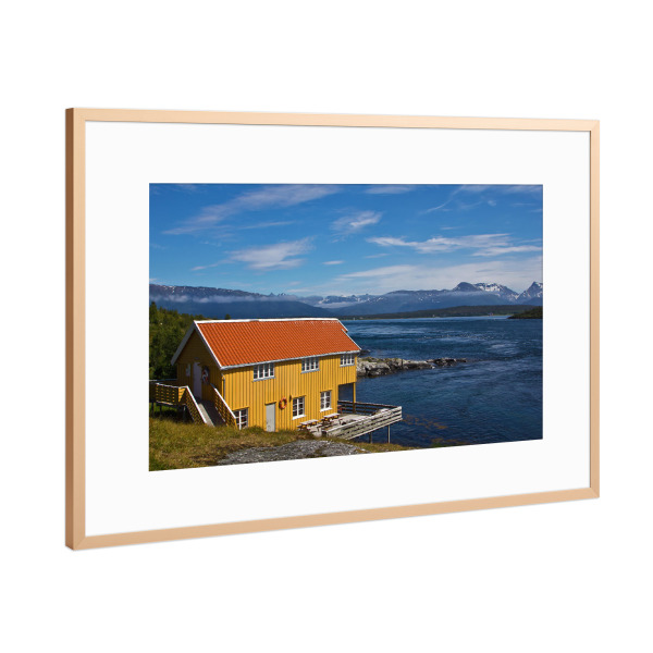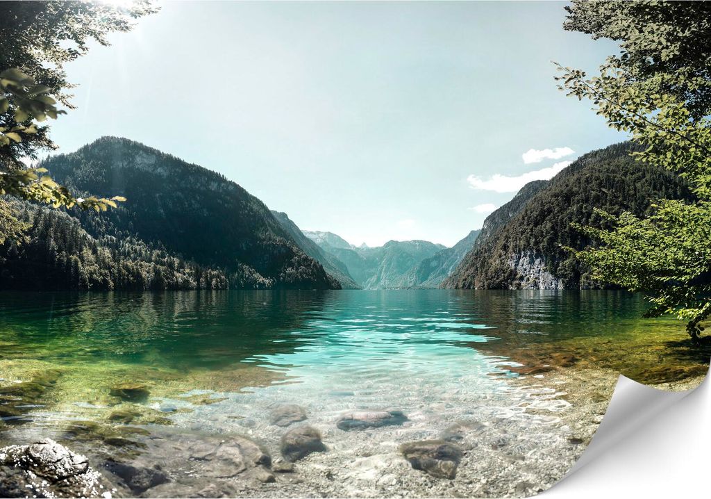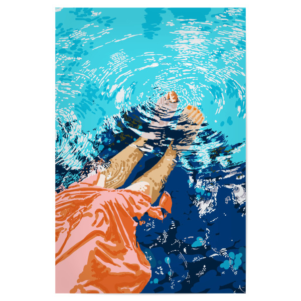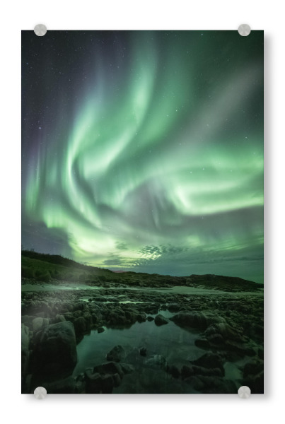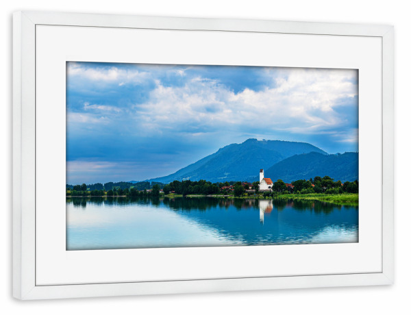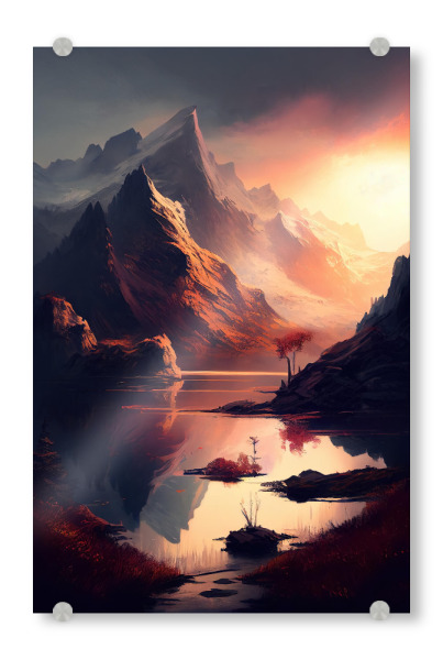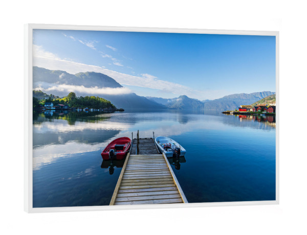 Spannbild ️ Fluid Art Lagune | Panorama | wandbild.com 120 x 40 / Rahmen vormontiert