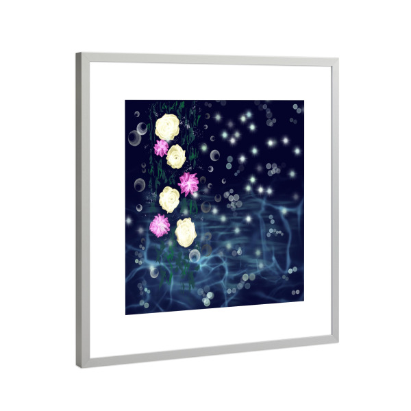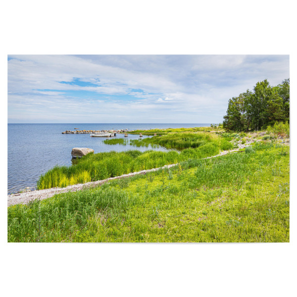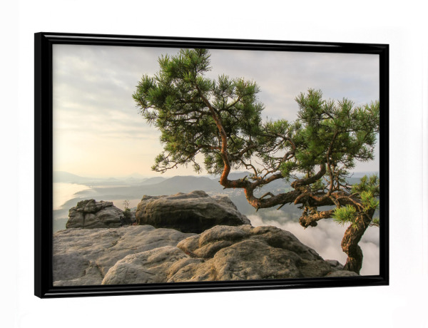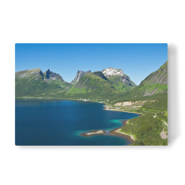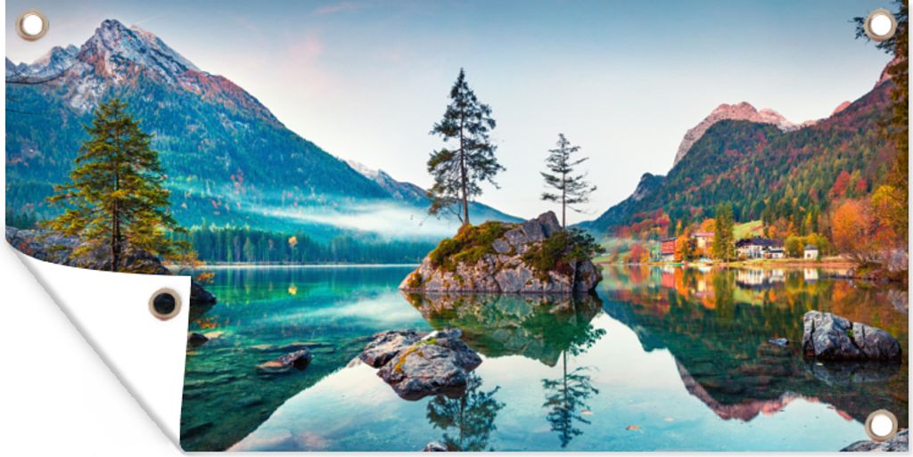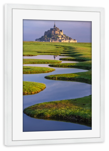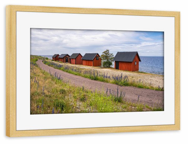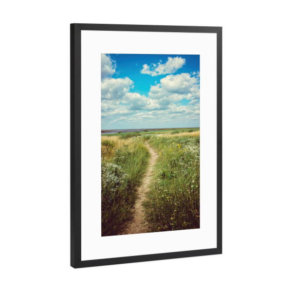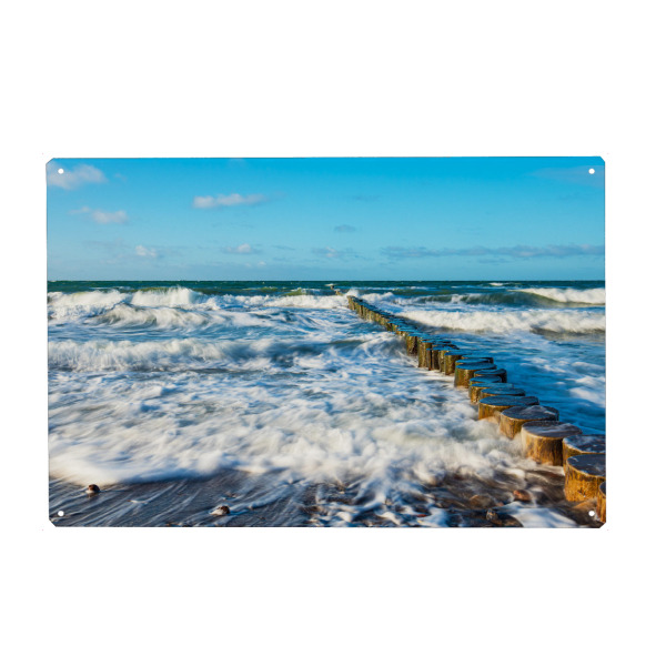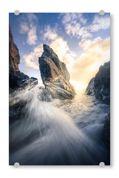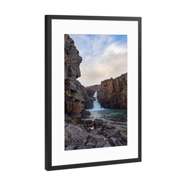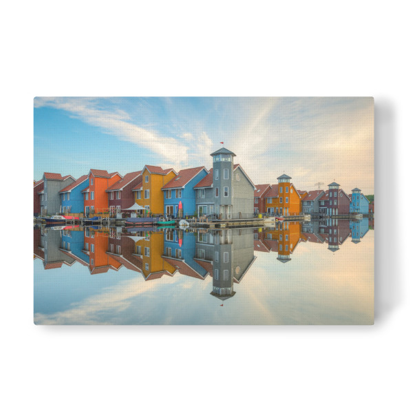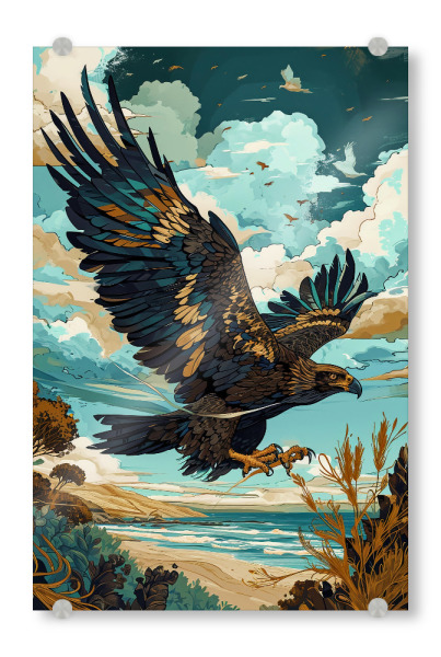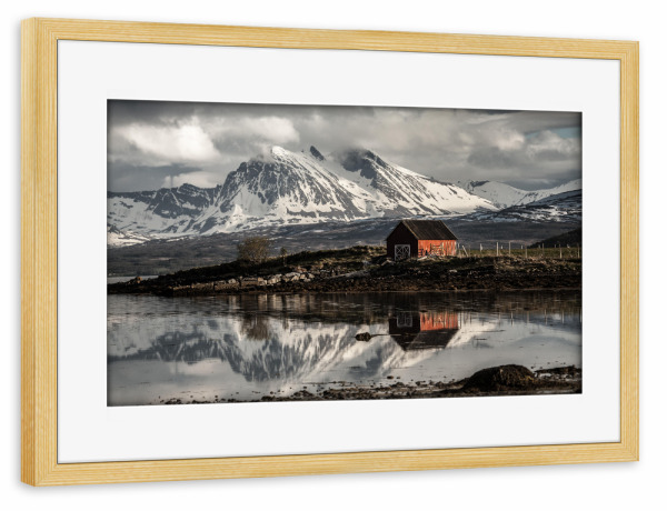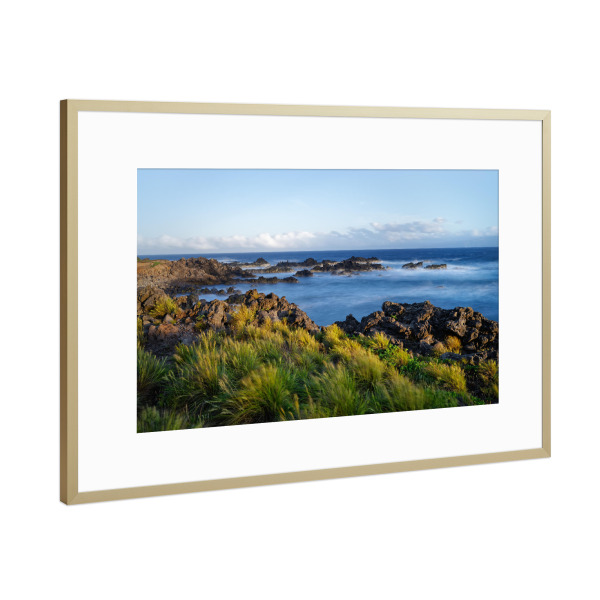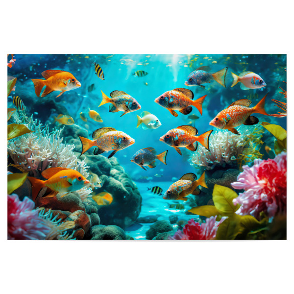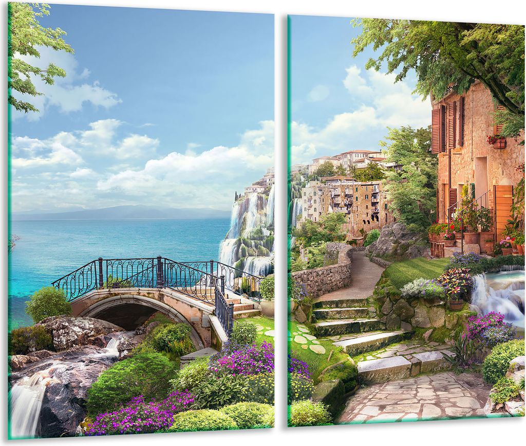 Spannbild ️ Fluid Art Lagune | Panorama | wandbild.com 120 x 40 / Rahmen vormontiert