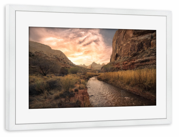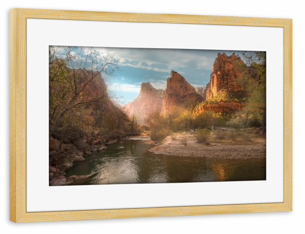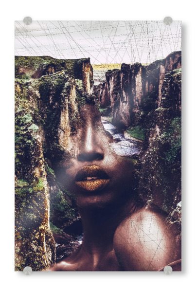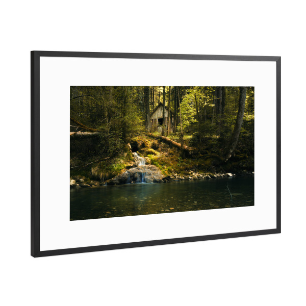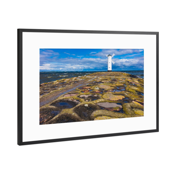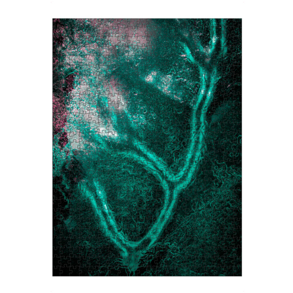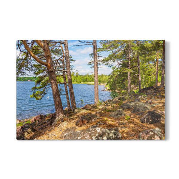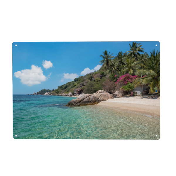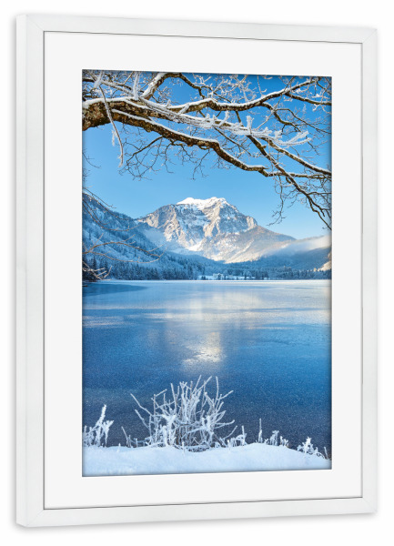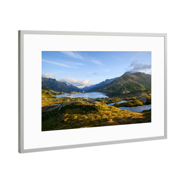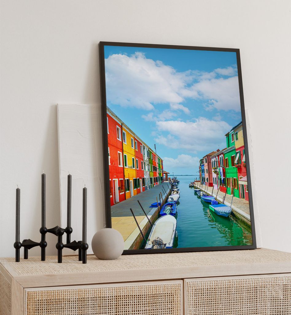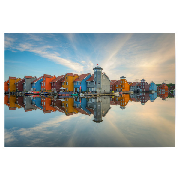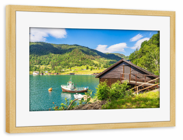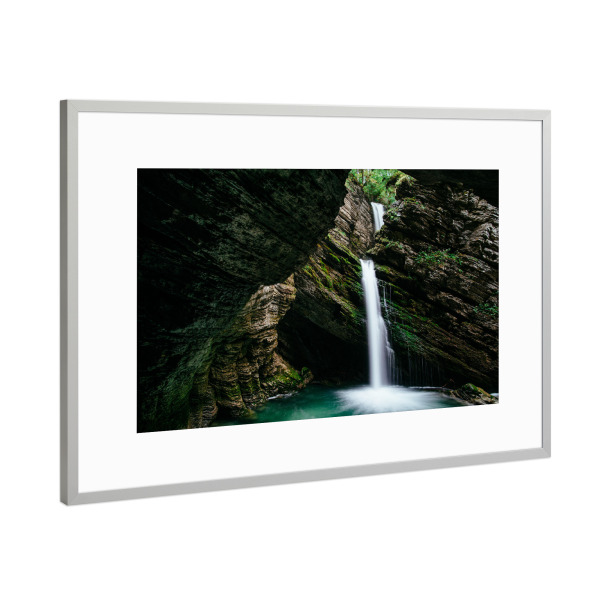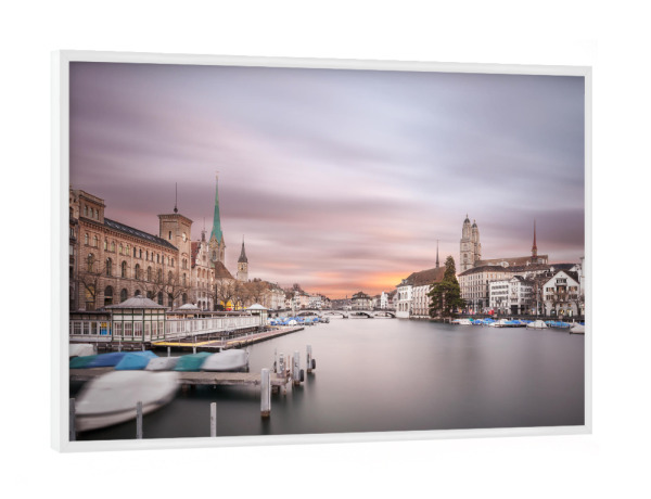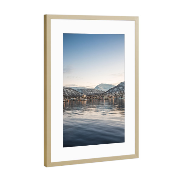 Spannbild ️ Fluid Art Lagune | Panorama | wandbild.com 120 x 40 / Rahmen vormontiert