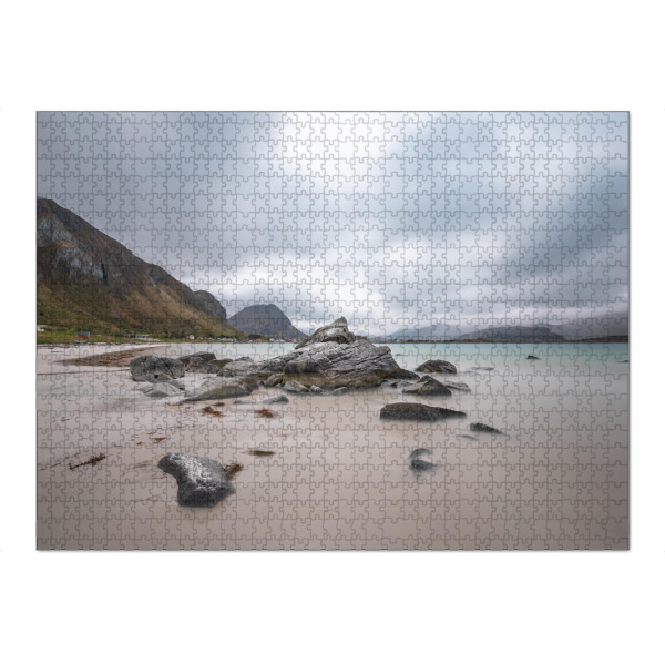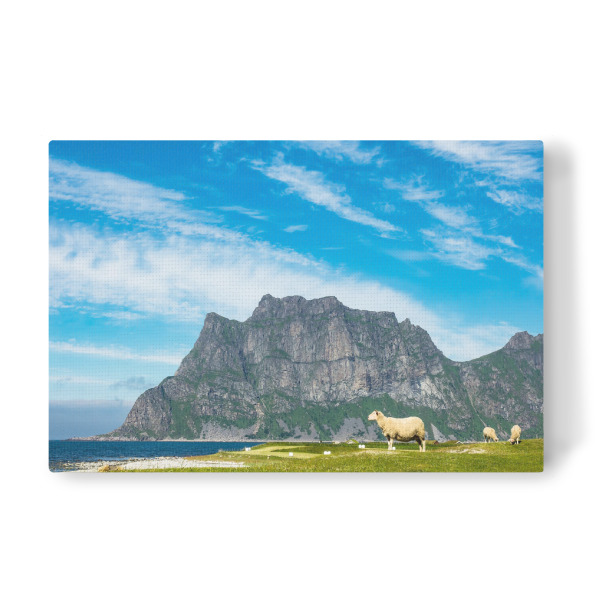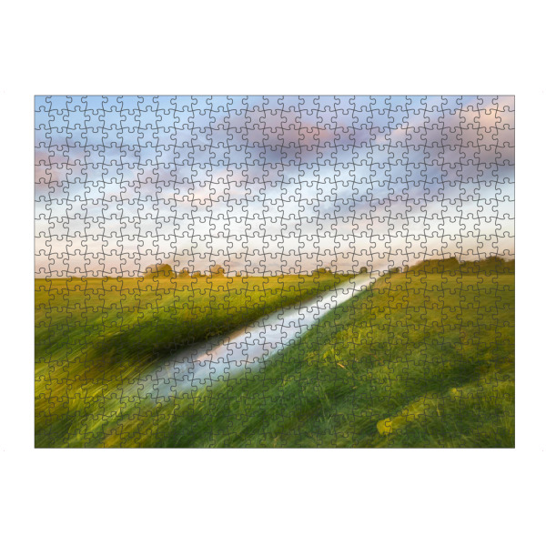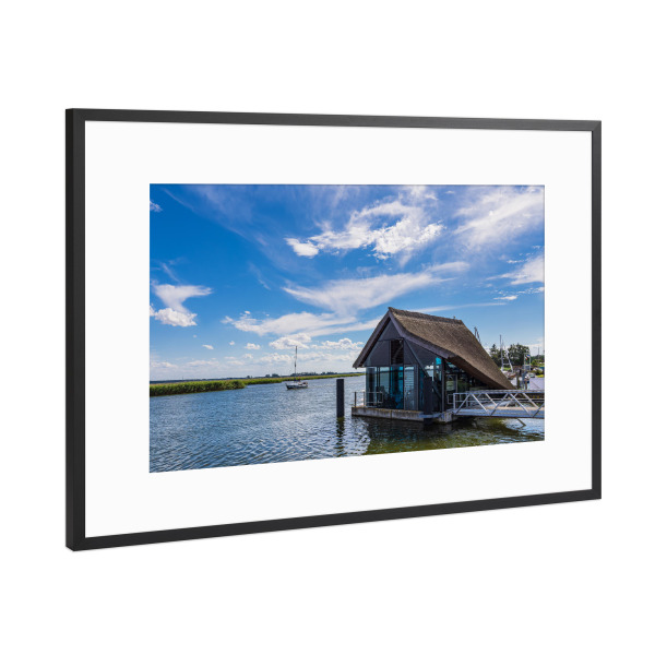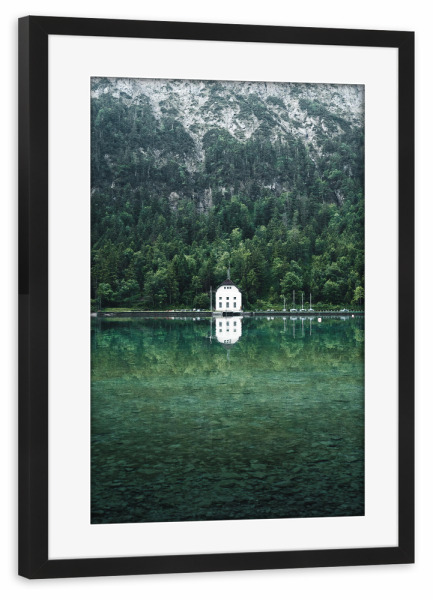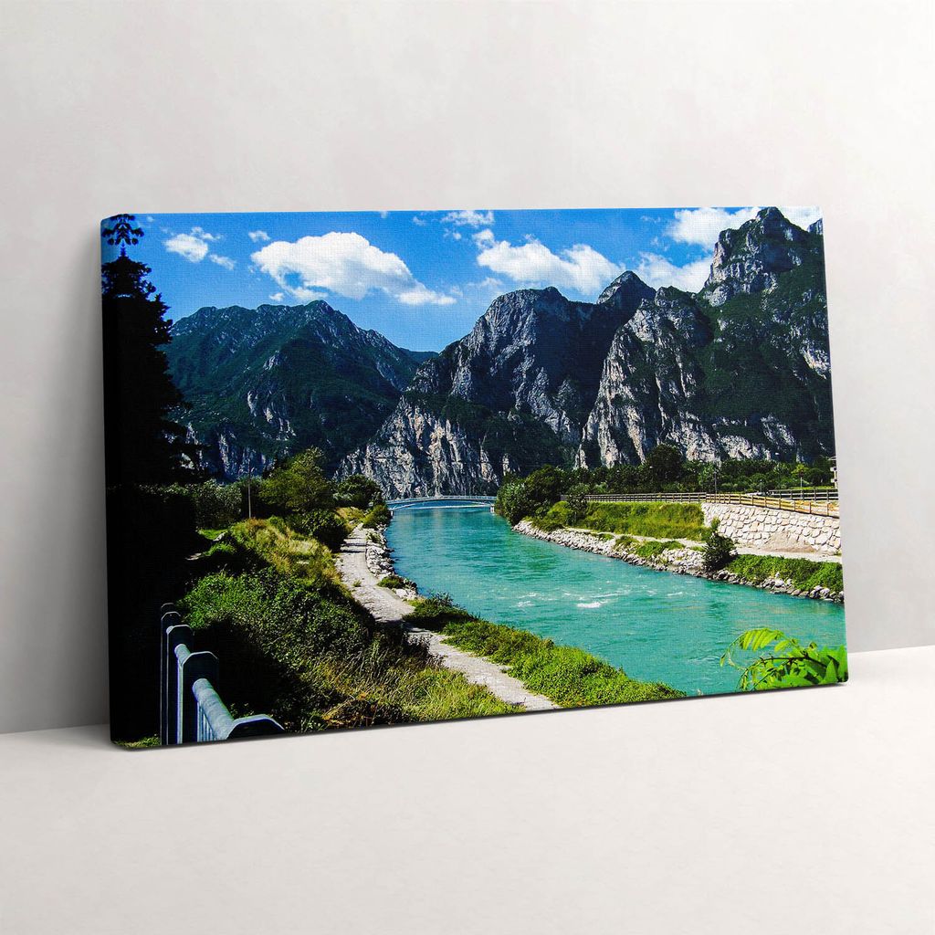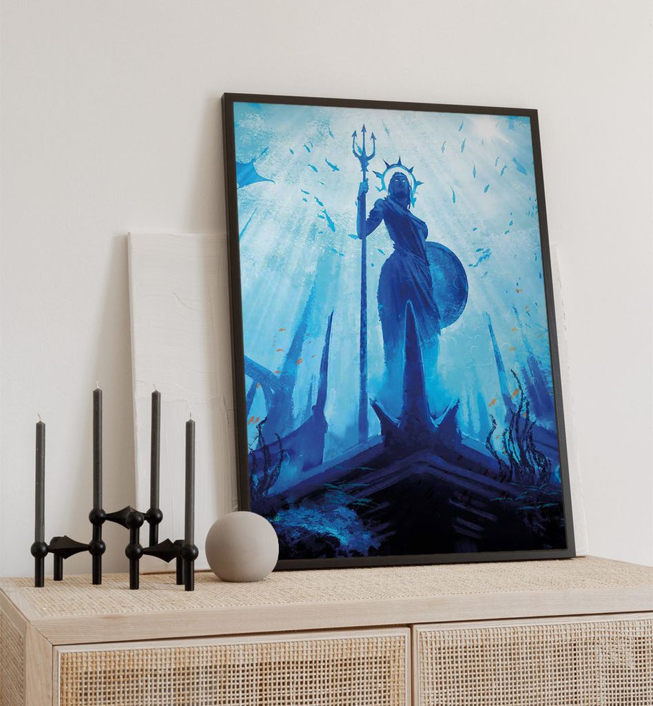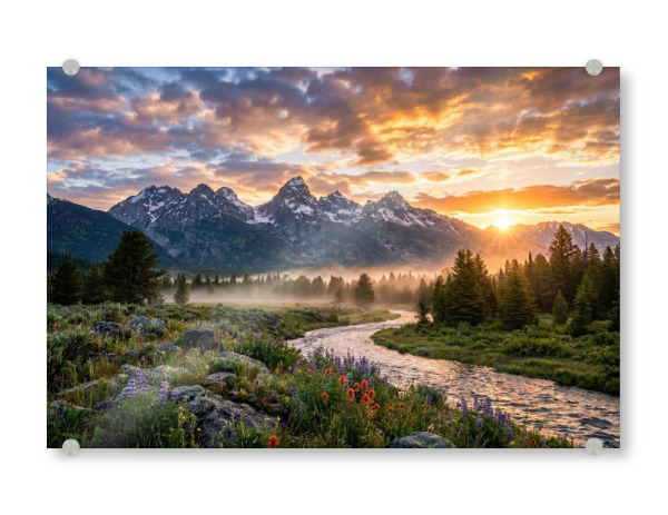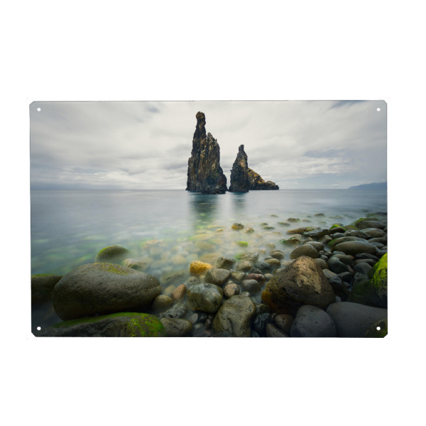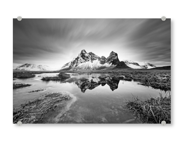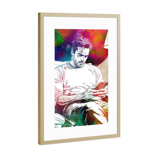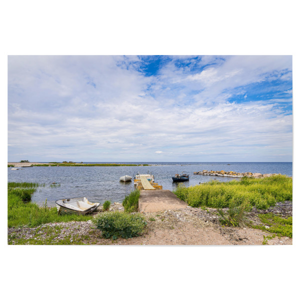 Spannbild ️ Fluid Art Lagune | Panorama | wandbild.com 120 x 40 / Rahmen vormontiert