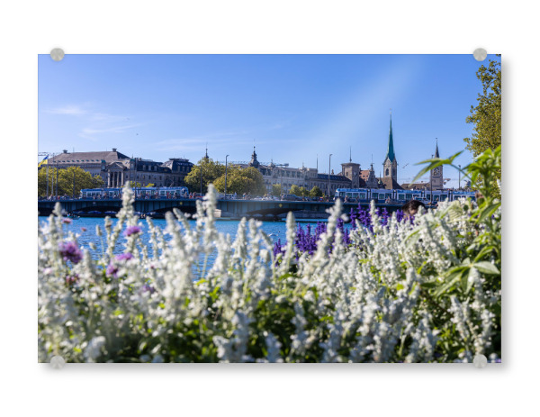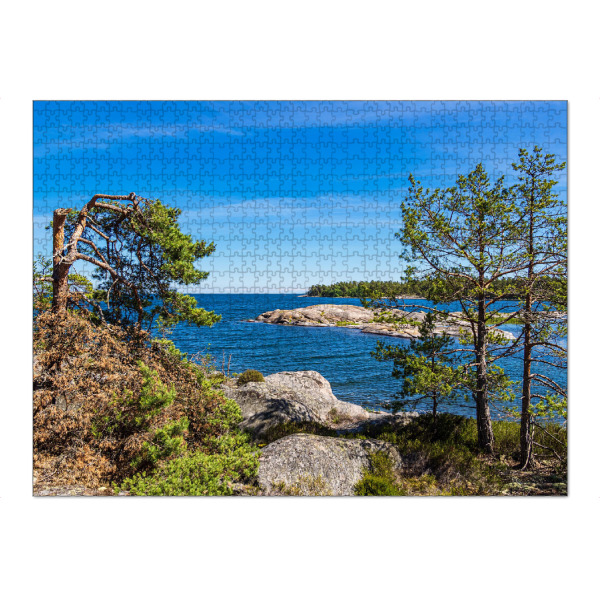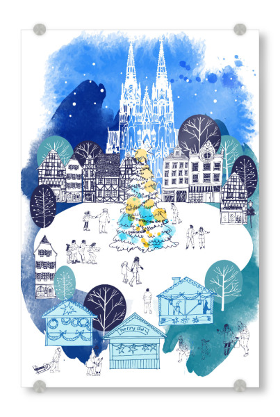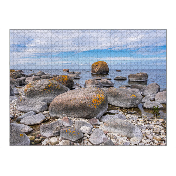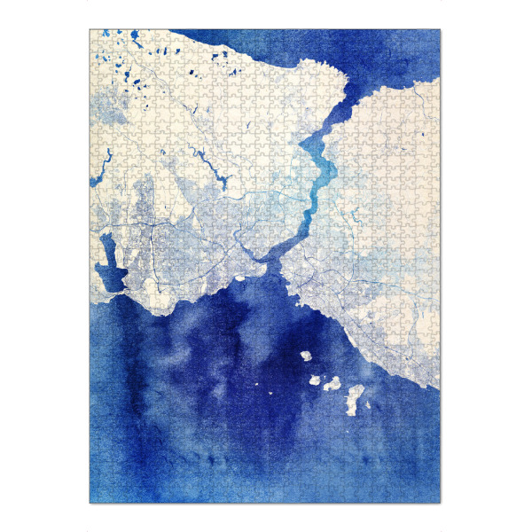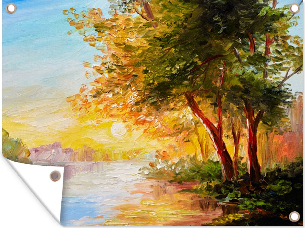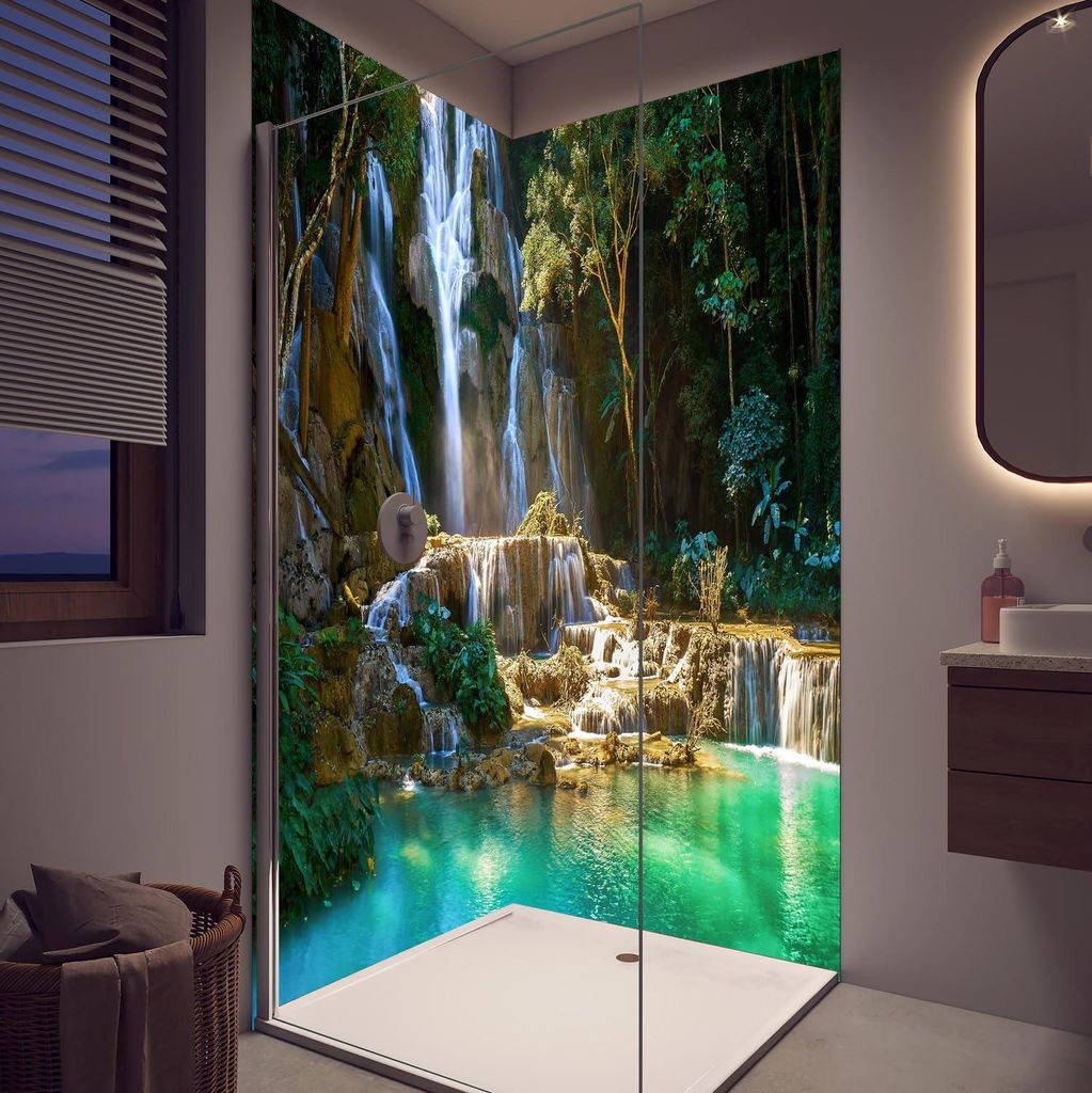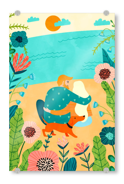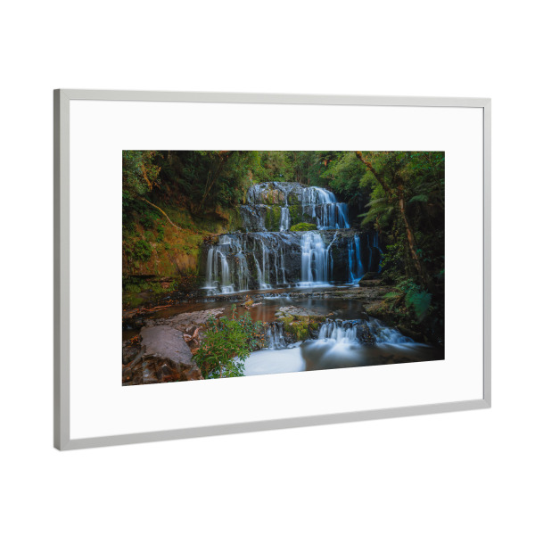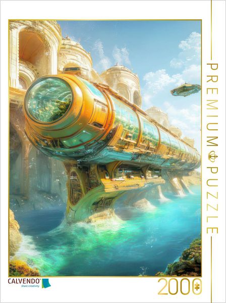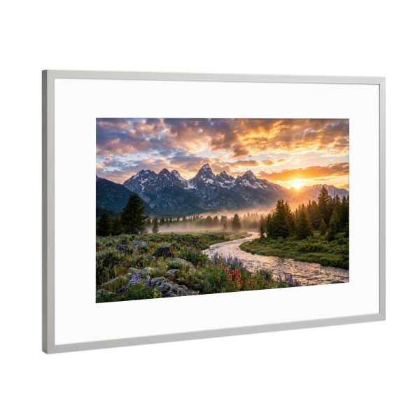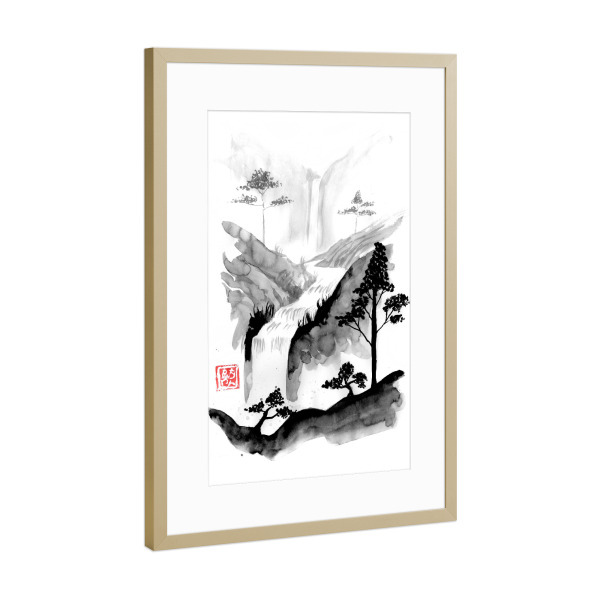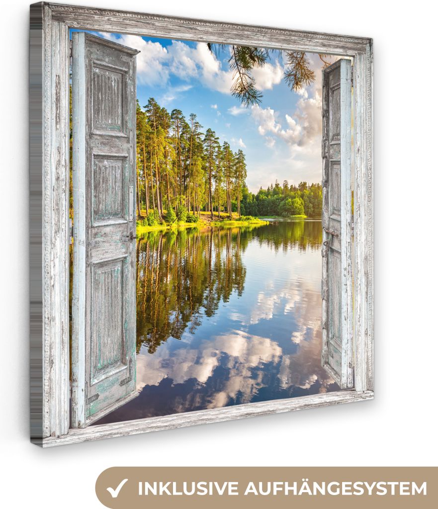 Spannbild ️ Fluid Art Lagune | Panorama | wandbild.com 120 x 40 / Rahmen vormontiert