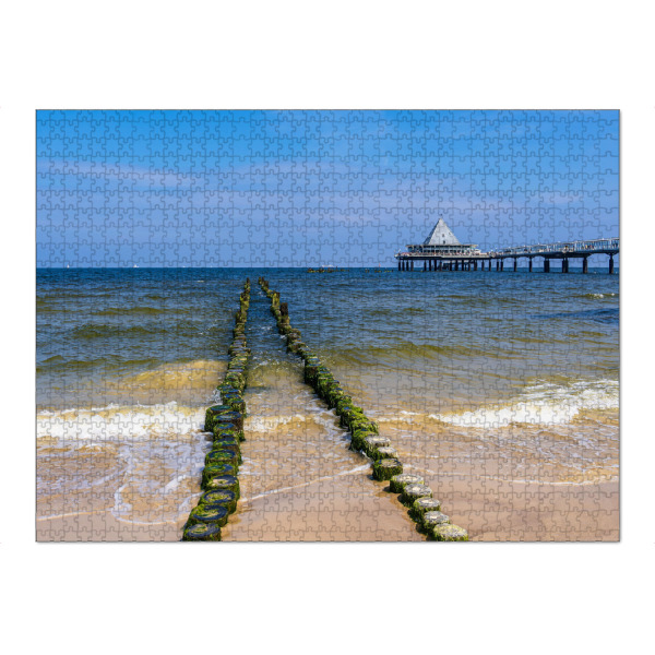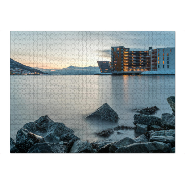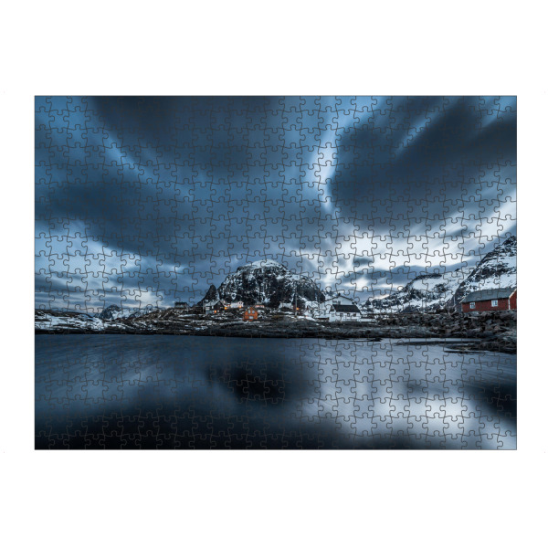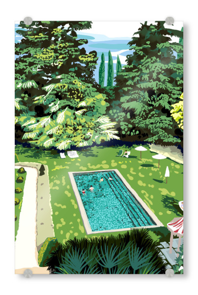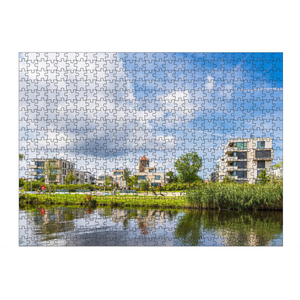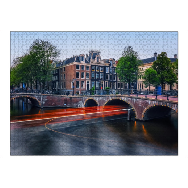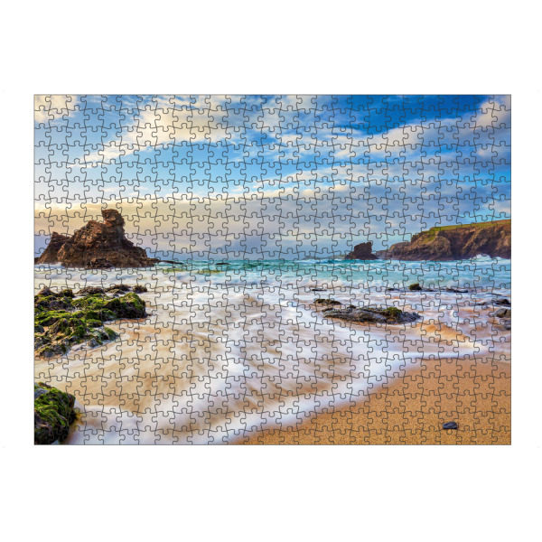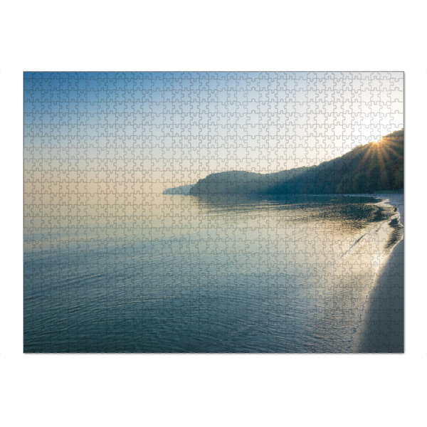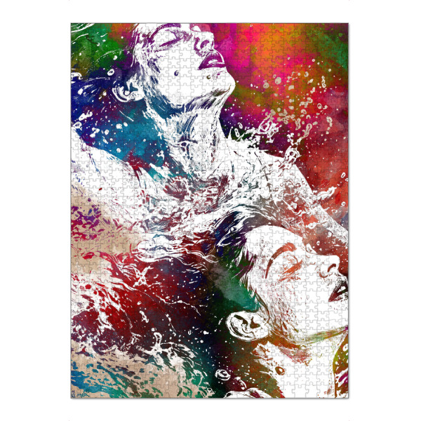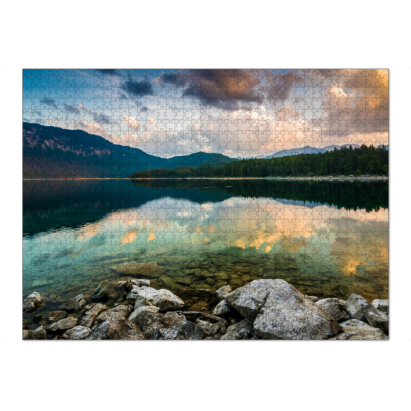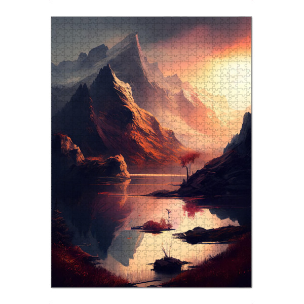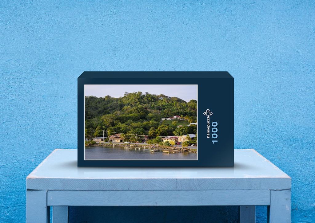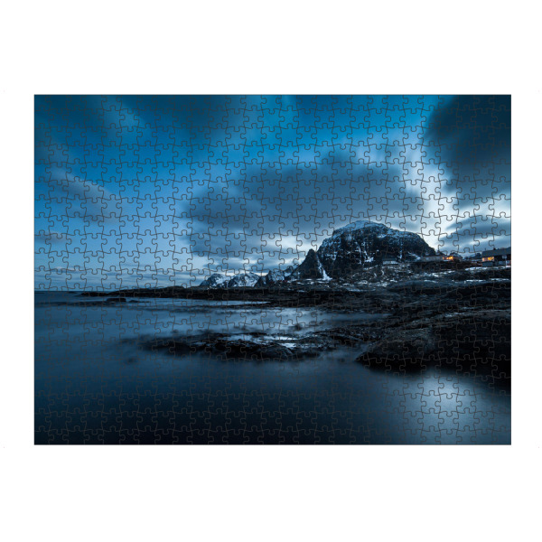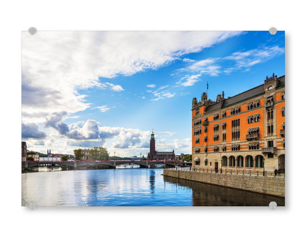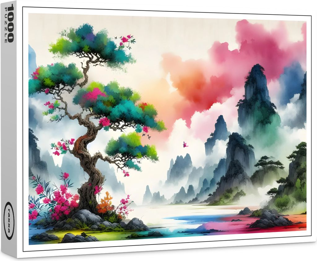 Spannbild ️ Fluid Art Lagune | Panorama | wandbild.com 120 x 40 / Rahmen vormontiert