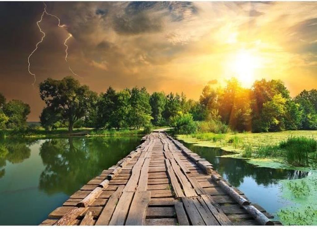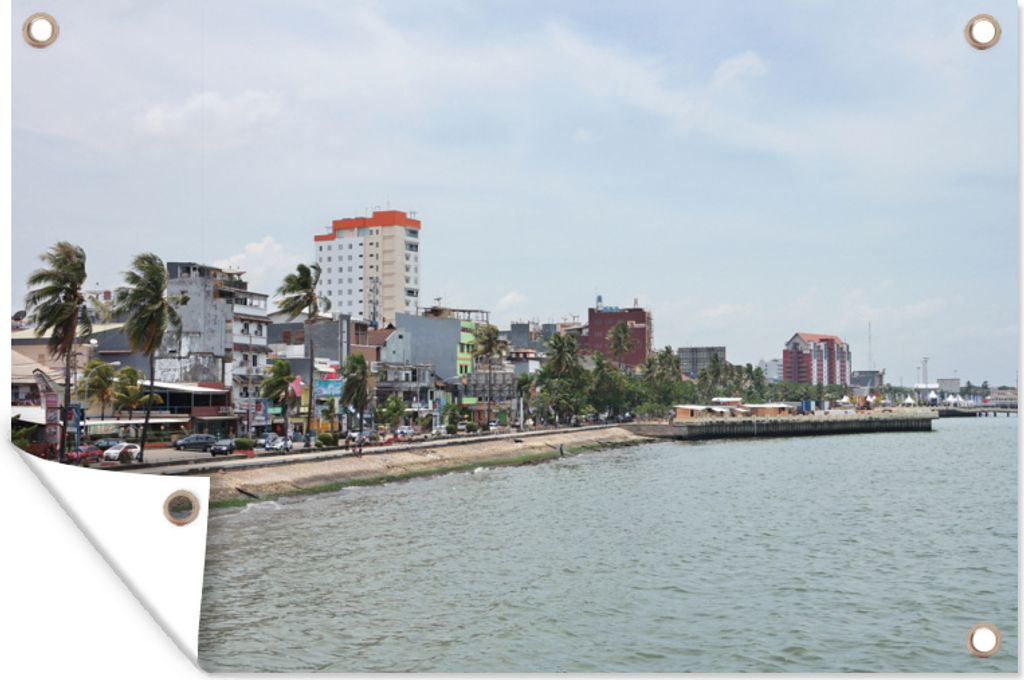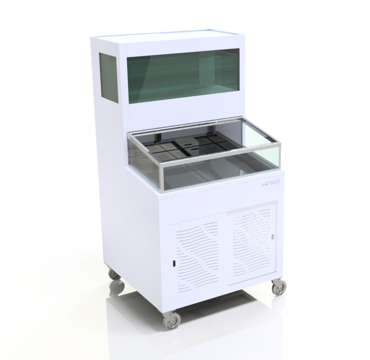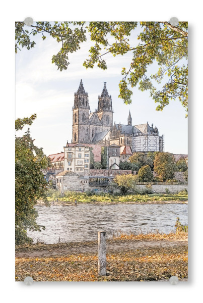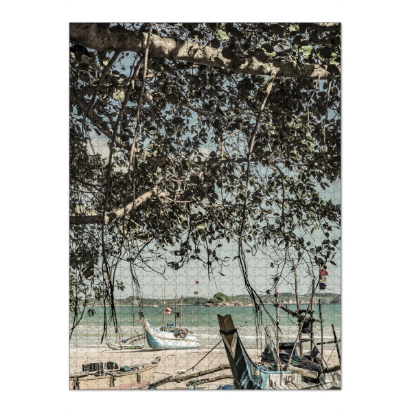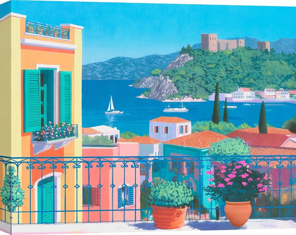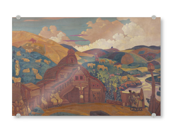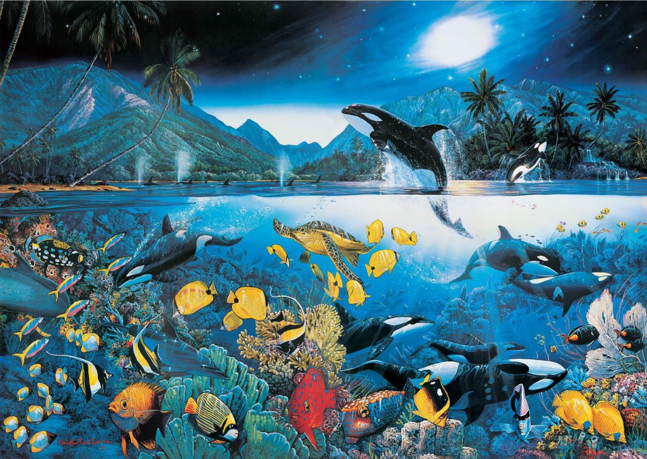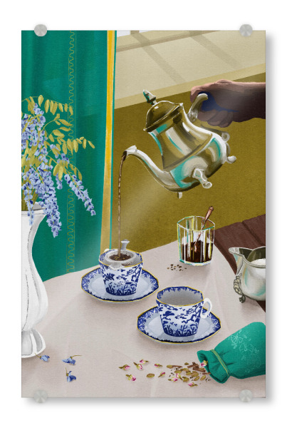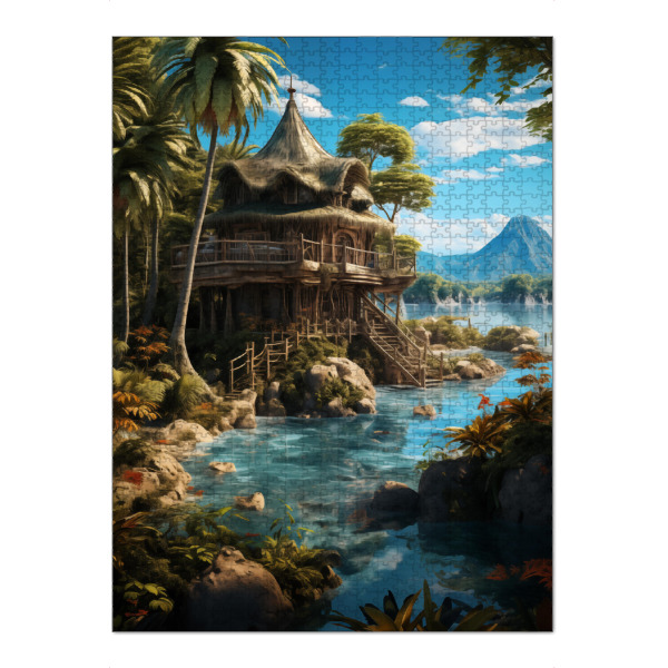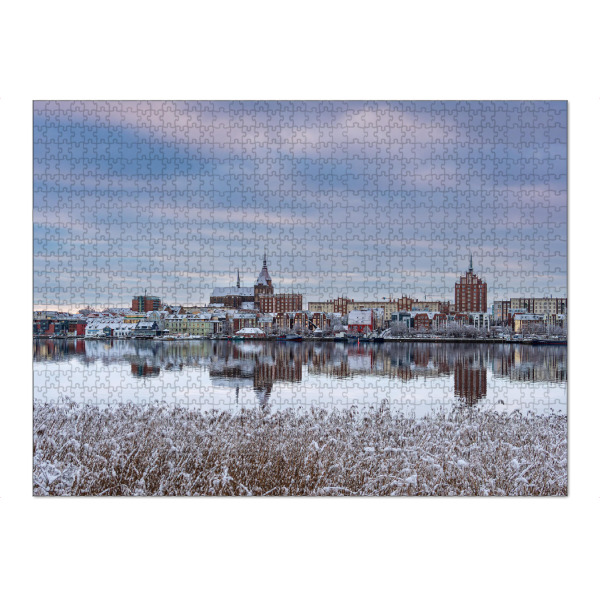 Spannbild ️ Fluid Art Lagune | Panorama | wandbild.com 120 x 40 / Rahmen vormontiert