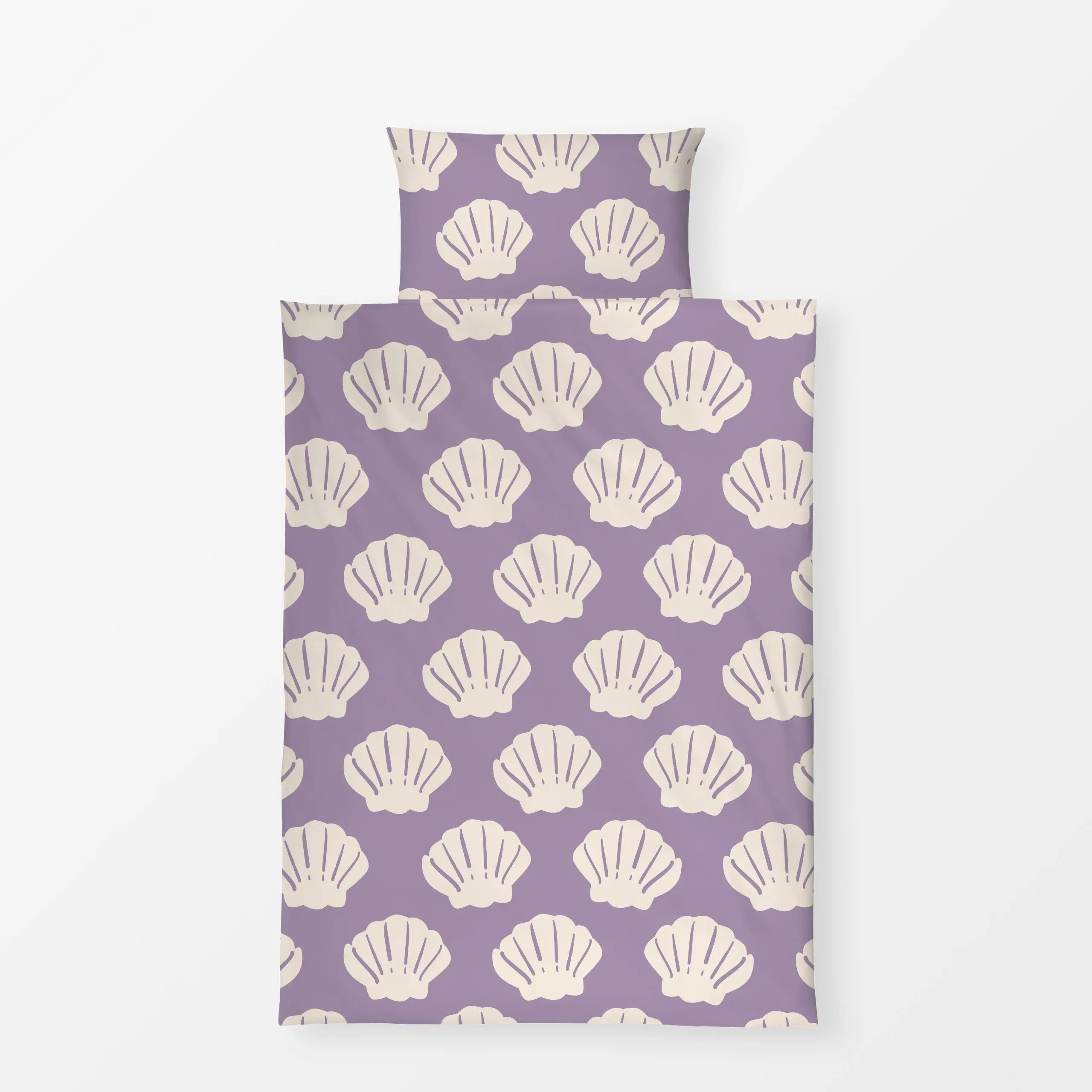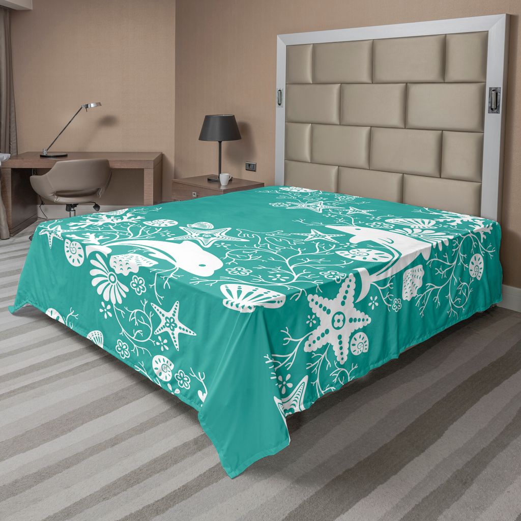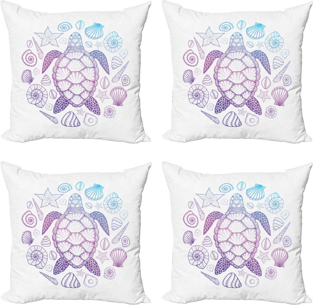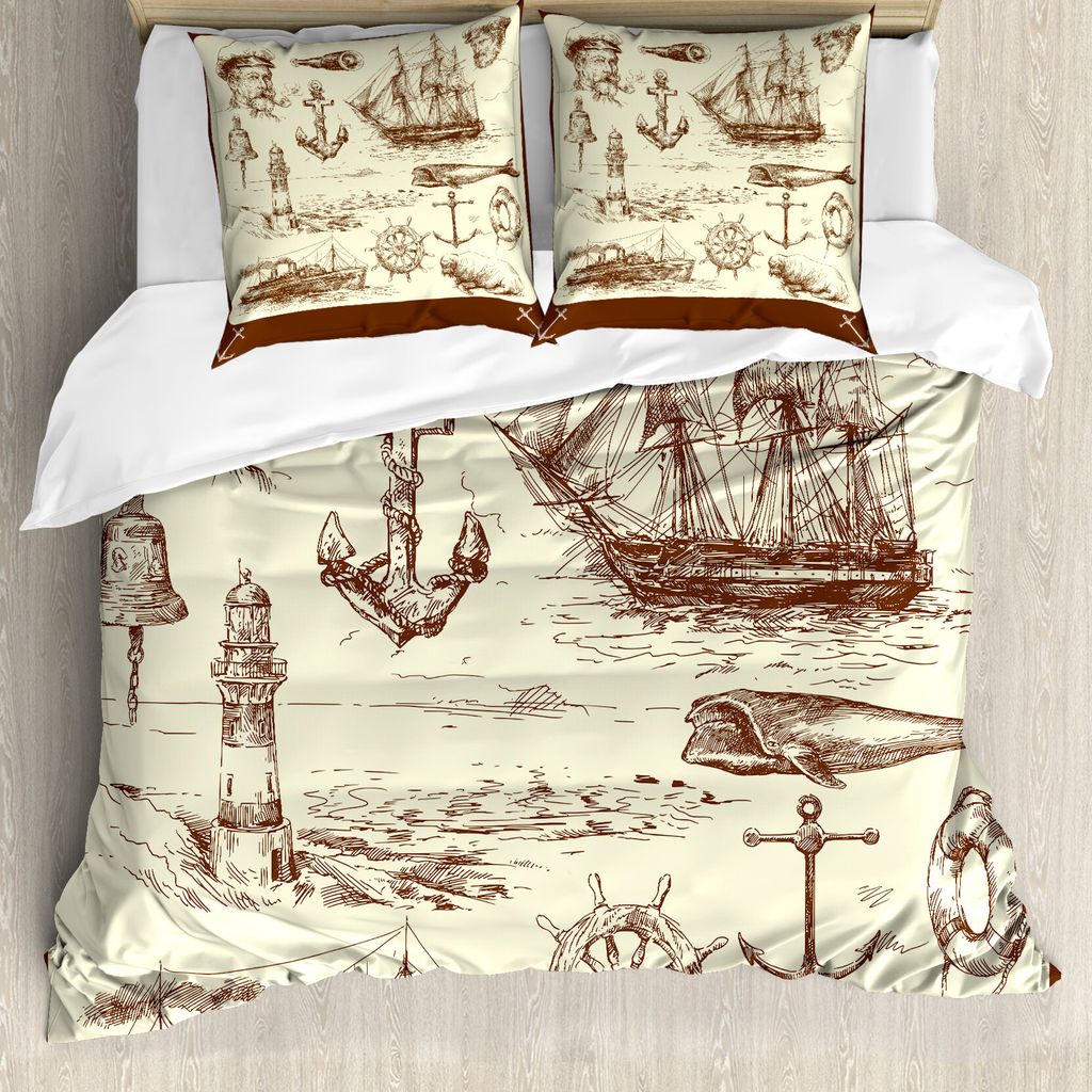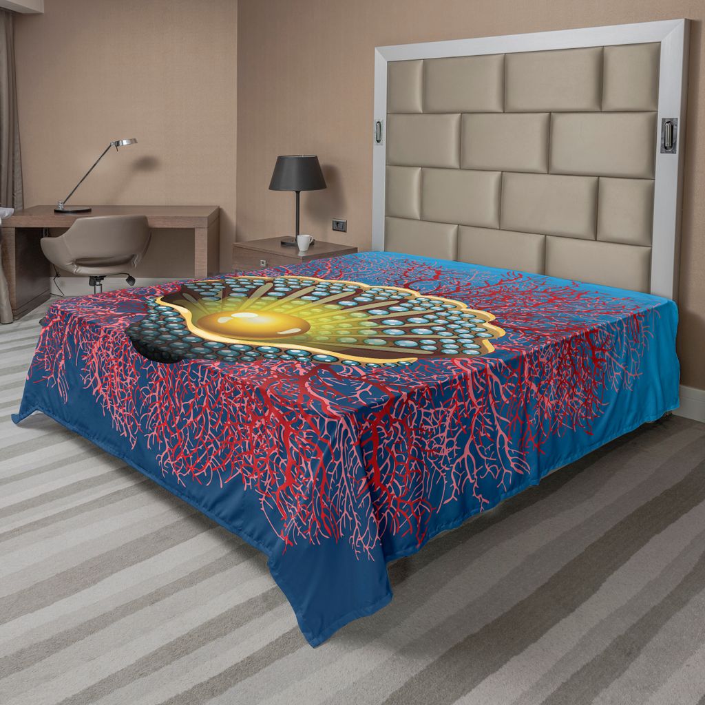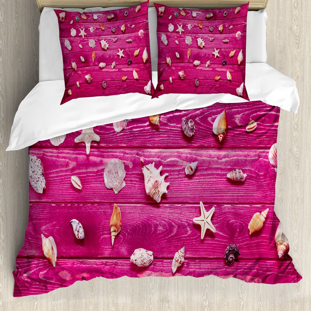 ABAKUHAUS Nautisch Bettbezugs Set Für Doppelbetten, Muscheln Vintage, Milbensicher Allergiker geeignet mit Kissenbezügen, Fuchsienfarben und Creme