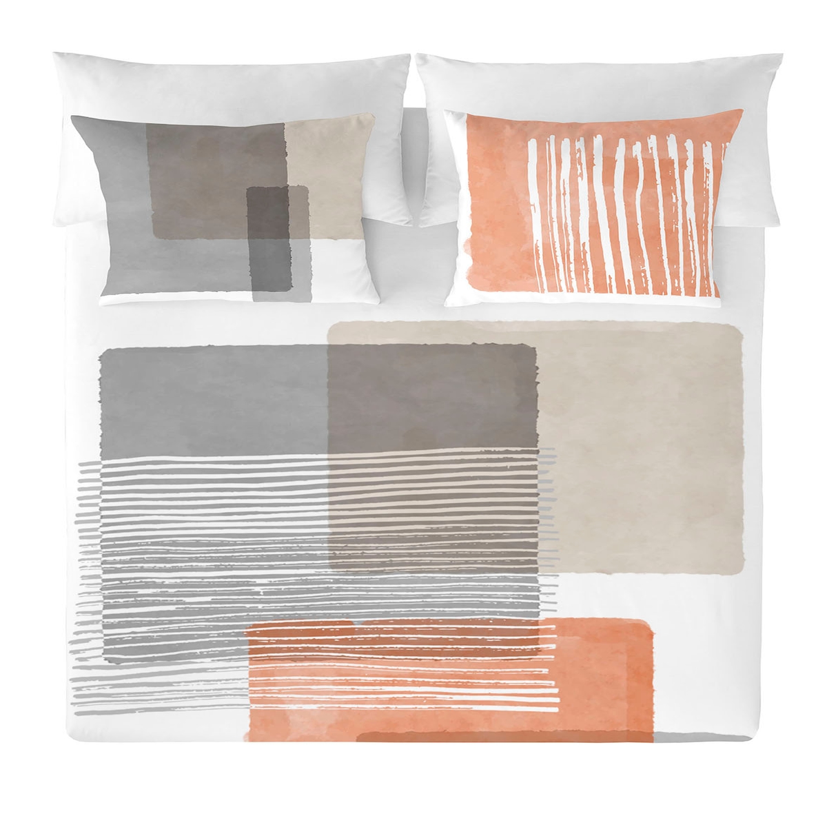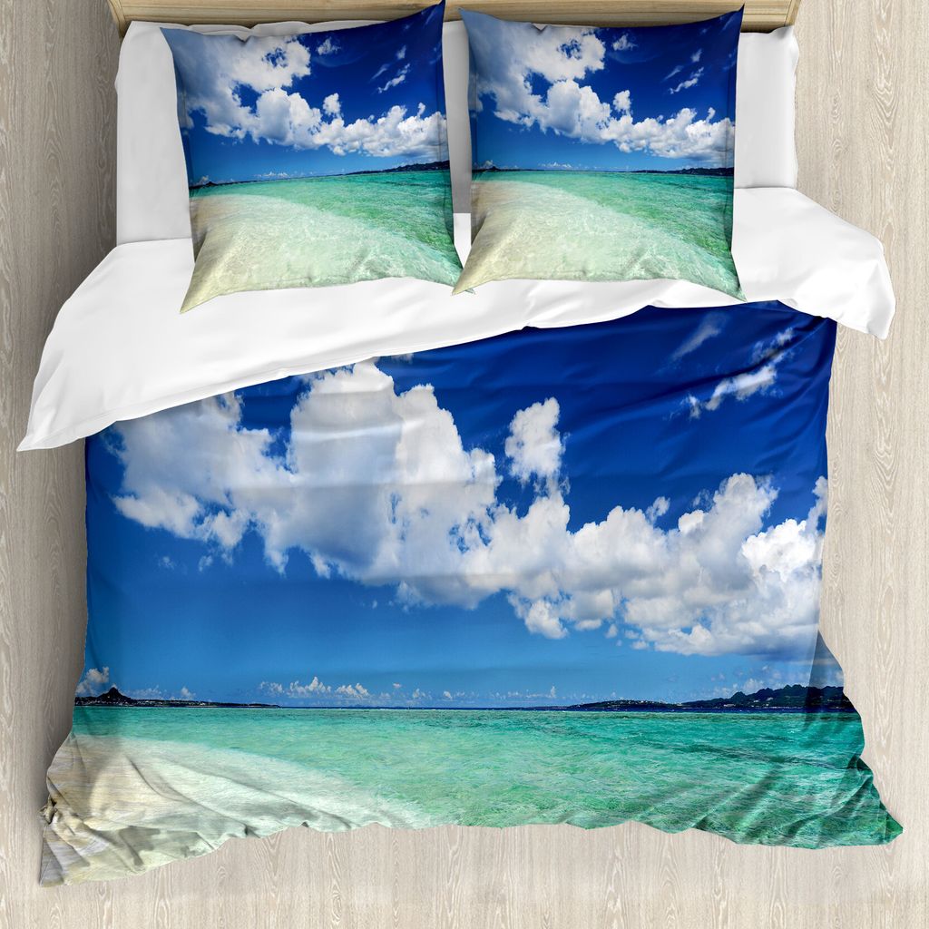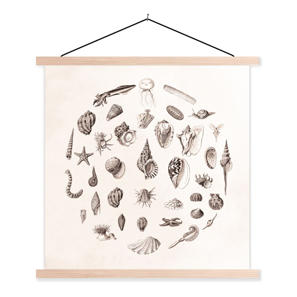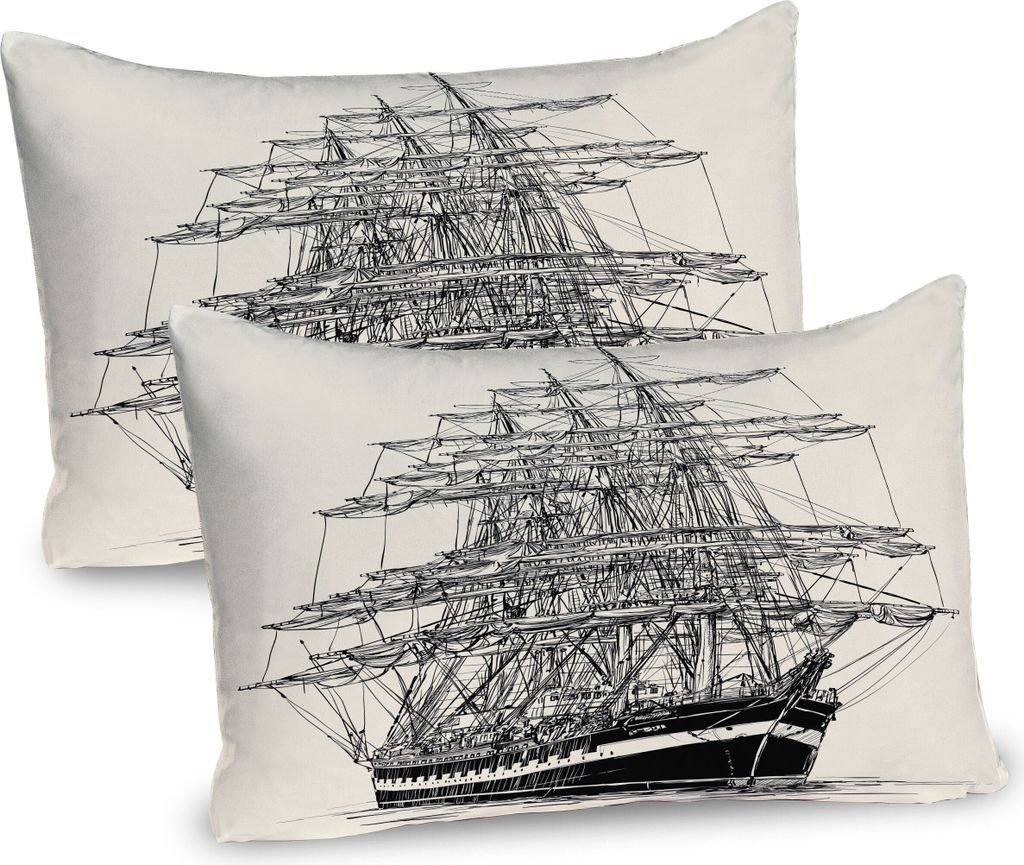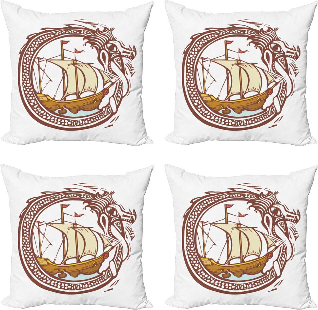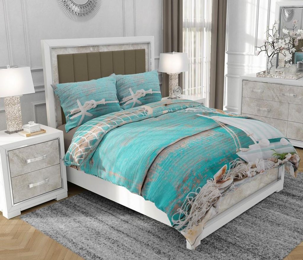 ABAKUHAUS Nautisch Bettbezugs Set Für Doppelbetten, Muscheln Vintage, Milbensicher Allergiker geeignet mit Kissenbezügen, Fuchsienfarben und Creme