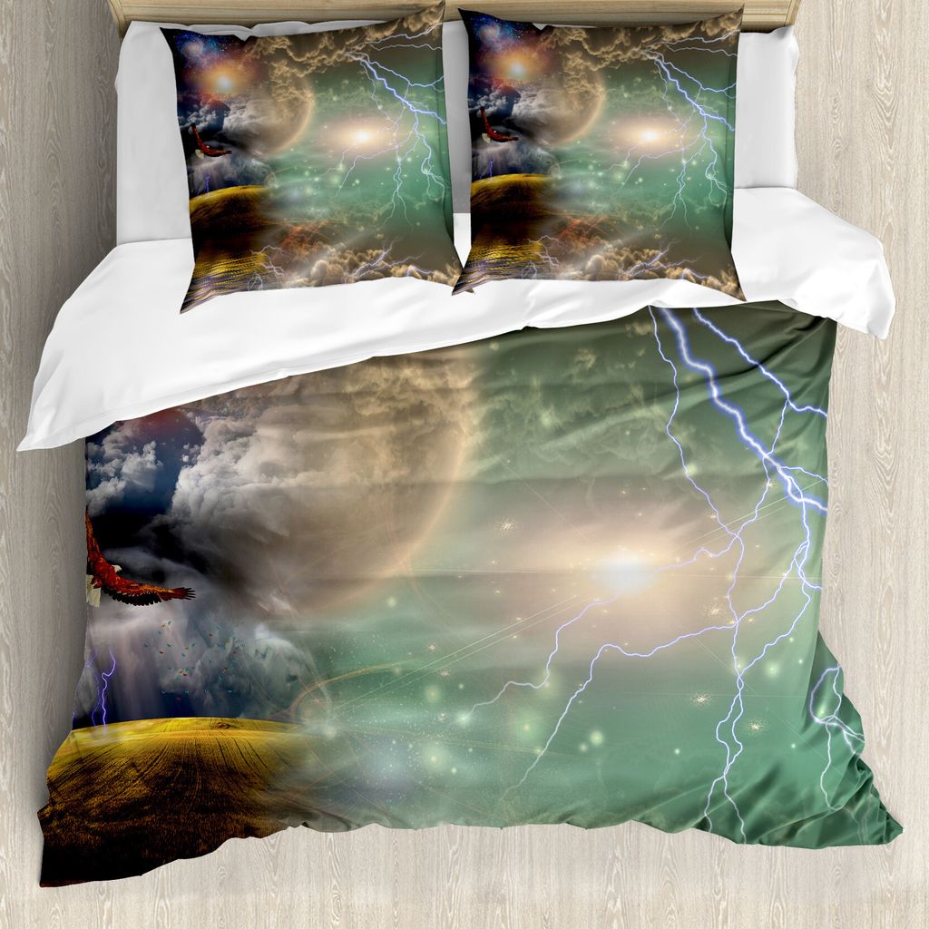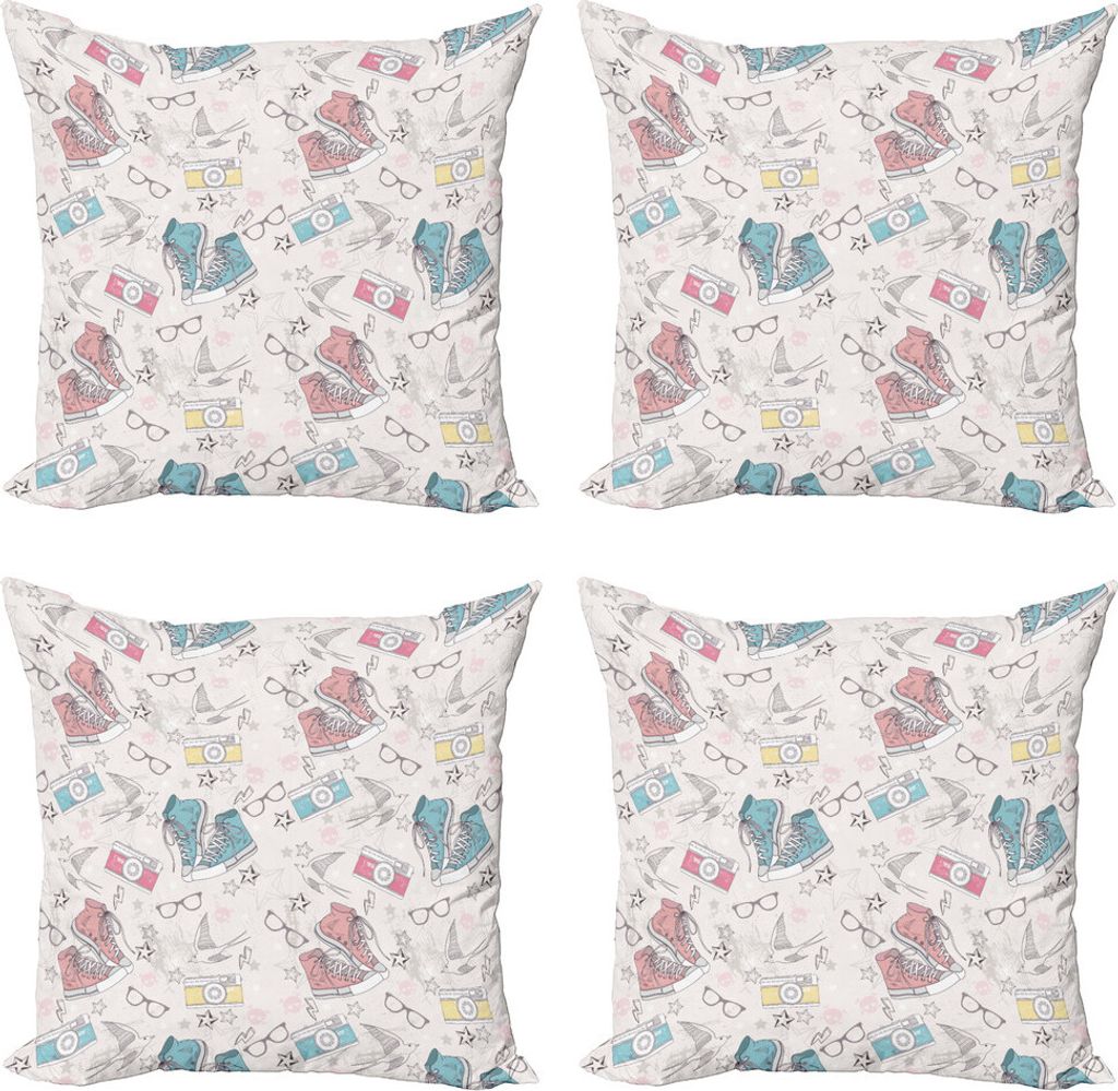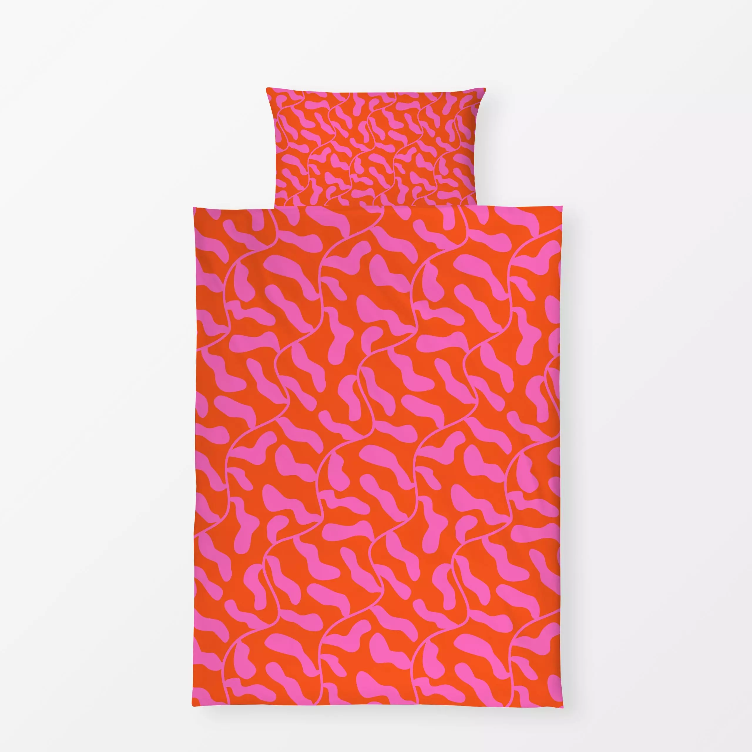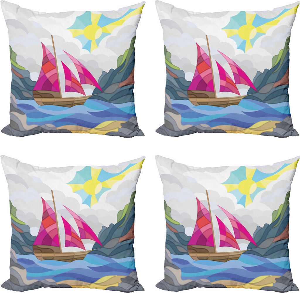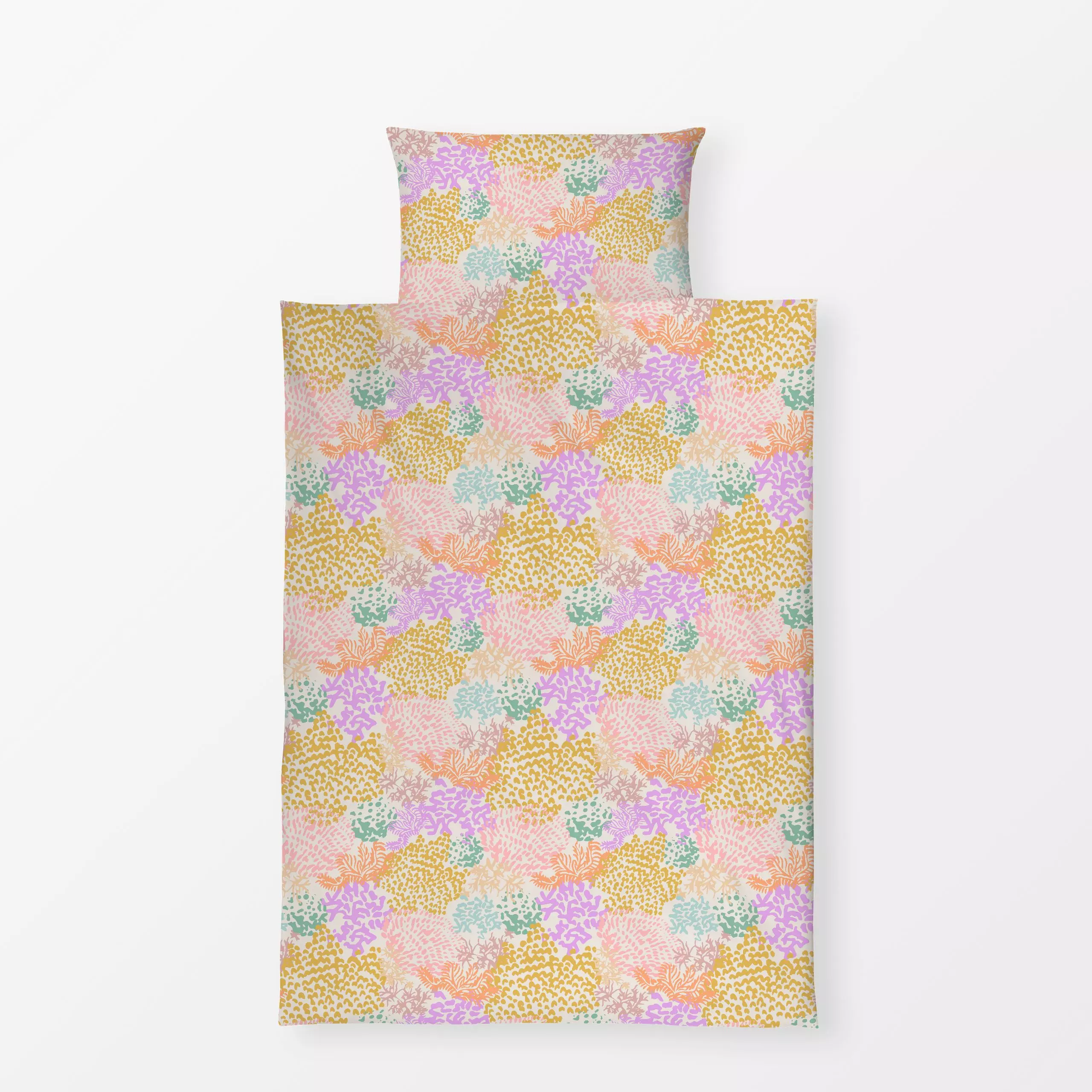 ABAKUHAUS Nautisch Bettbezugs Set Für Doppelbetten, Muscheln Vintage, Milbensicher Allergiker geeignet mit Kissenbezügen, Fuchsienfarben und Creme