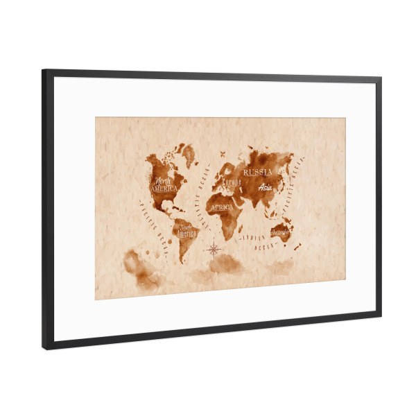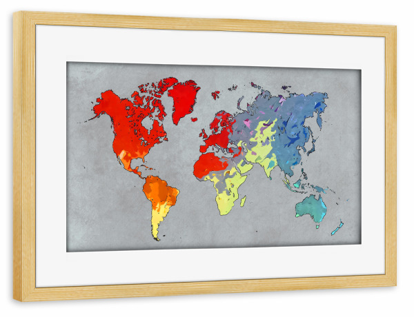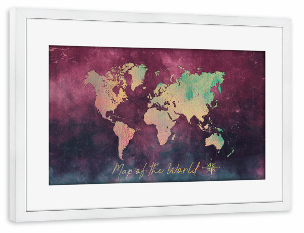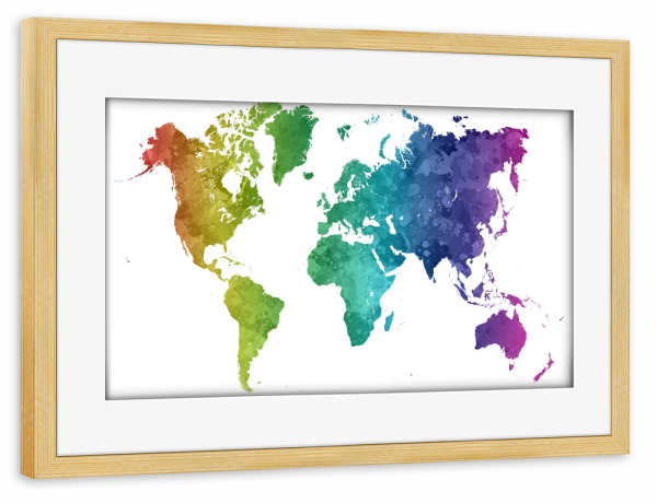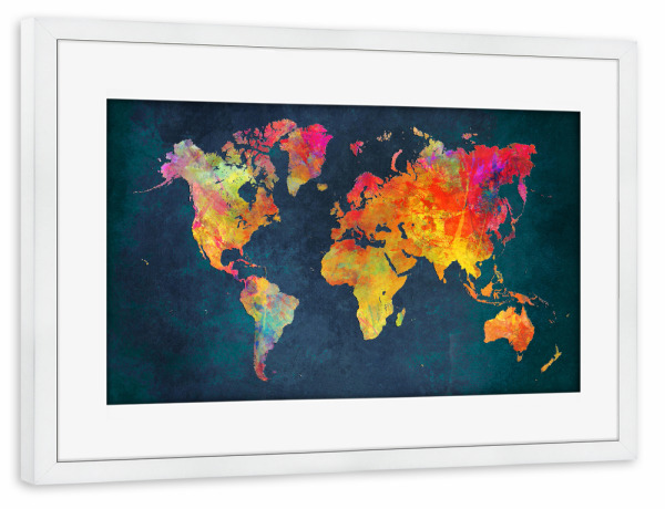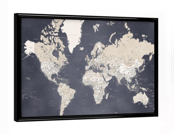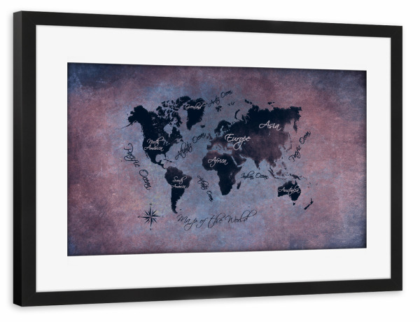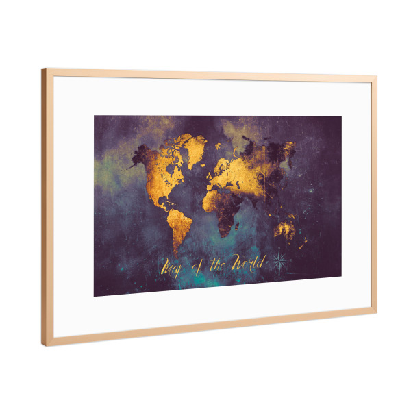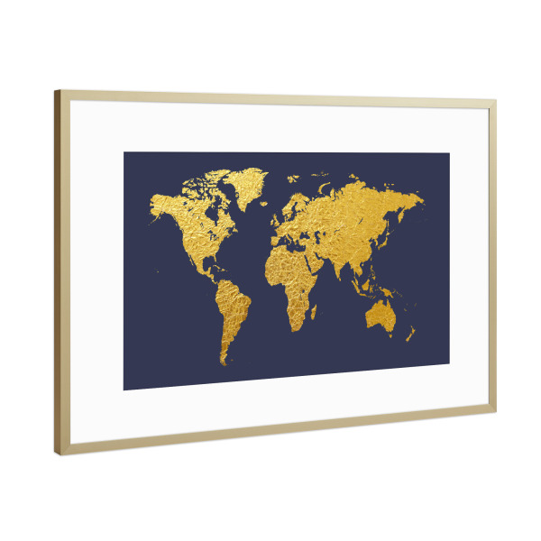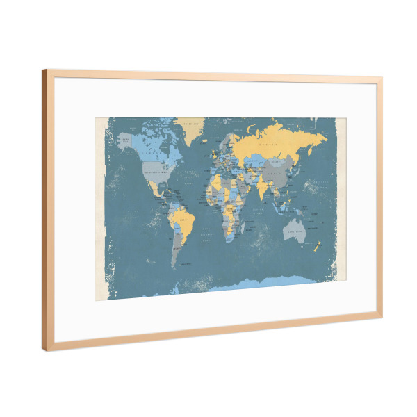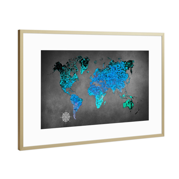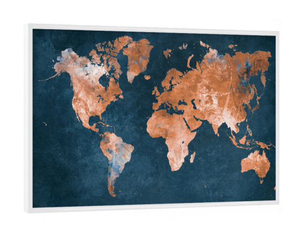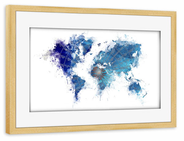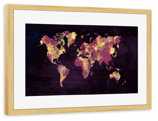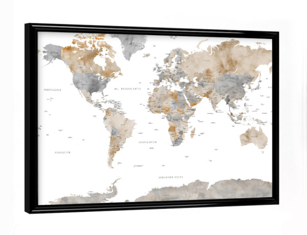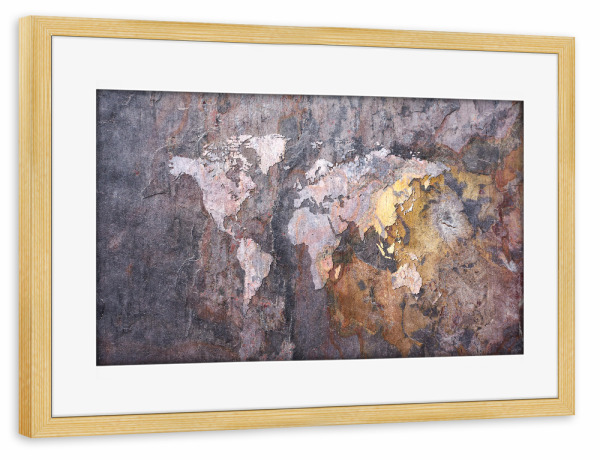 Bild 60x40 MDF-Rahmen, Wandkunst Weltkarte