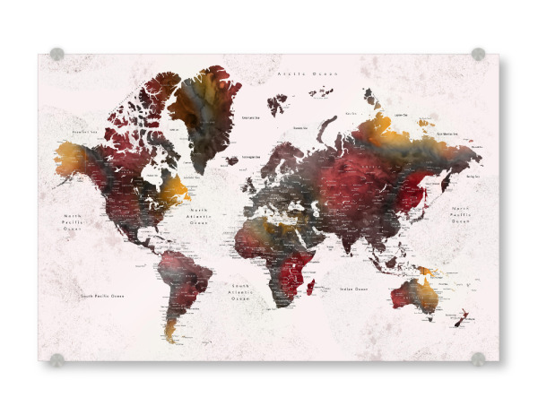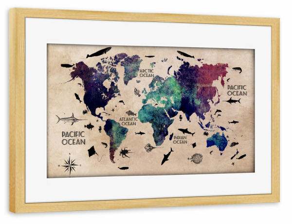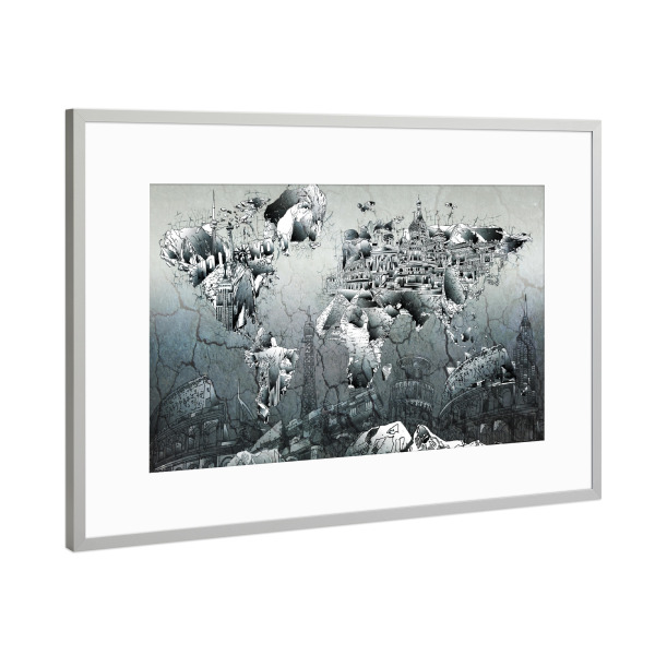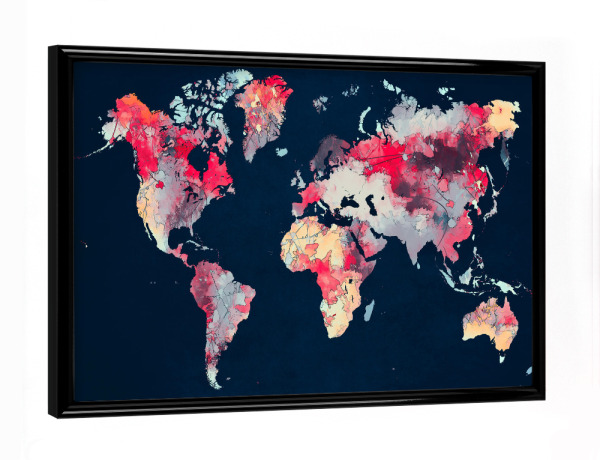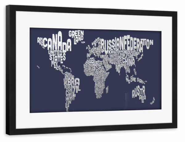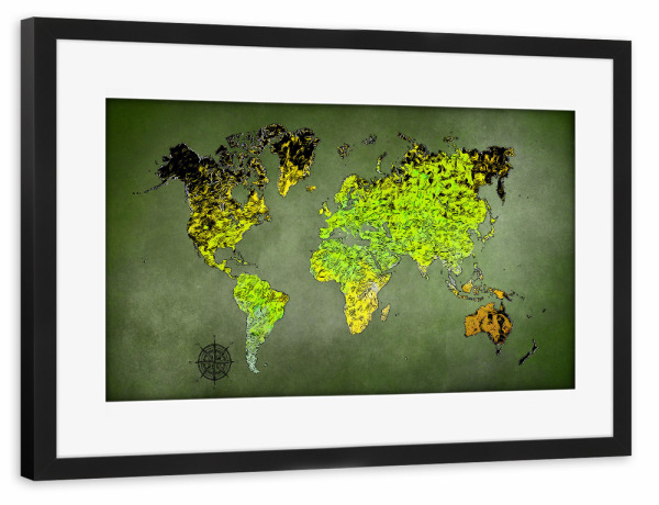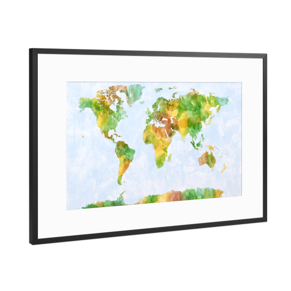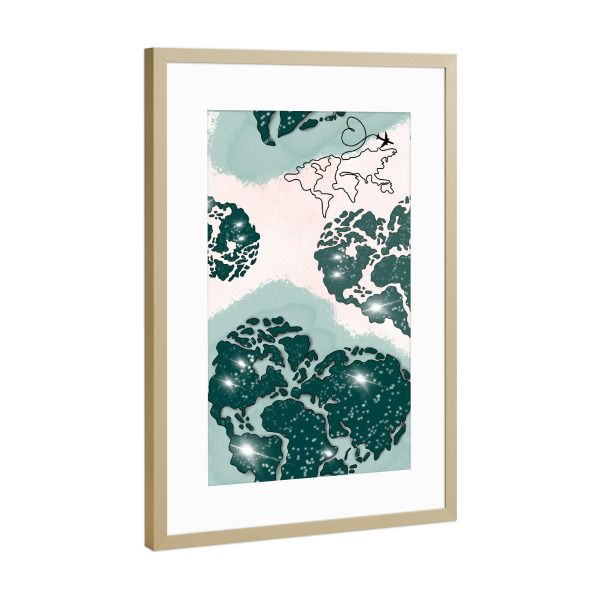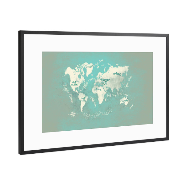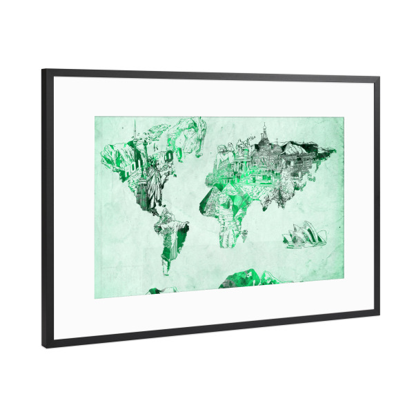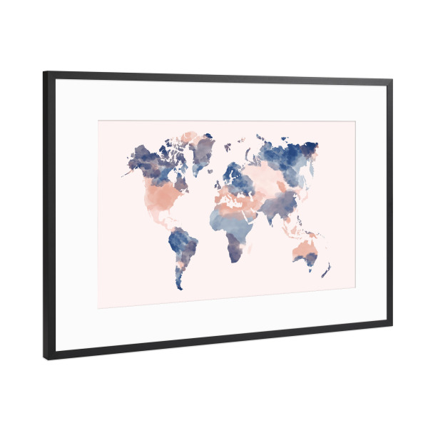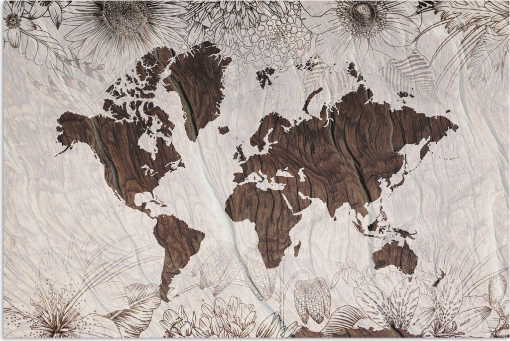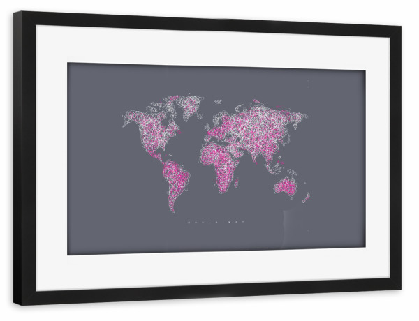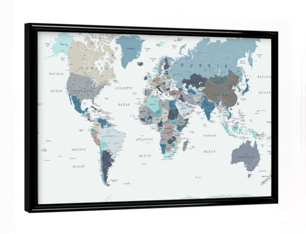 Bild 60x40 MDF-Rahmen, Wandkunst Weltkarte