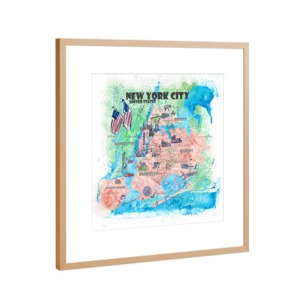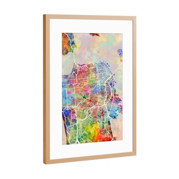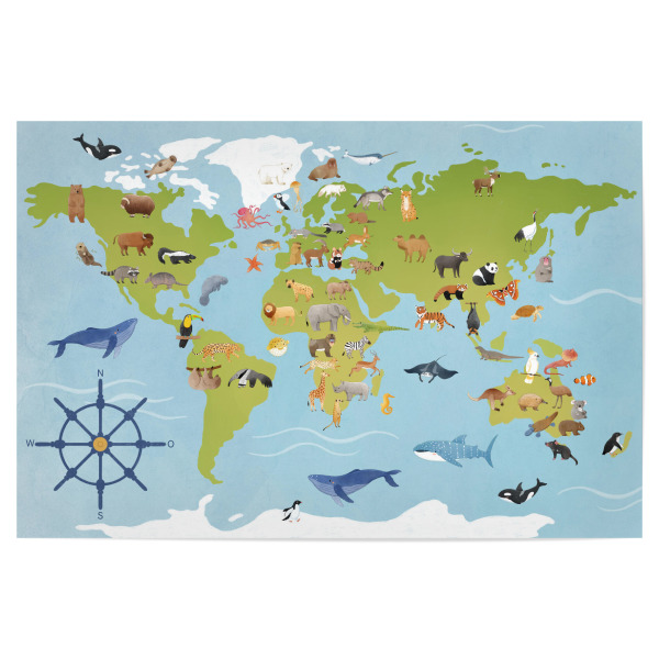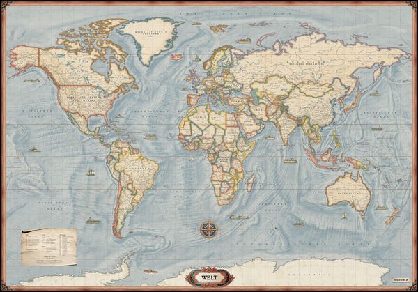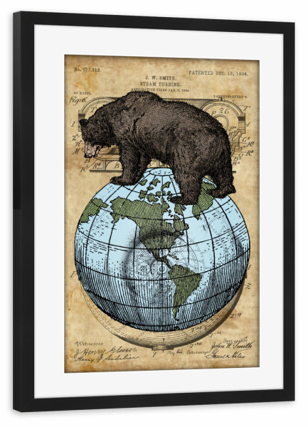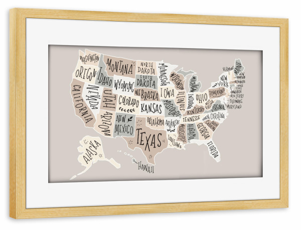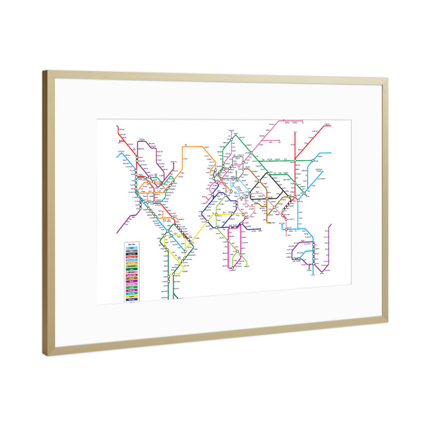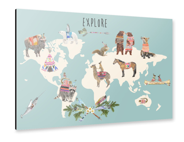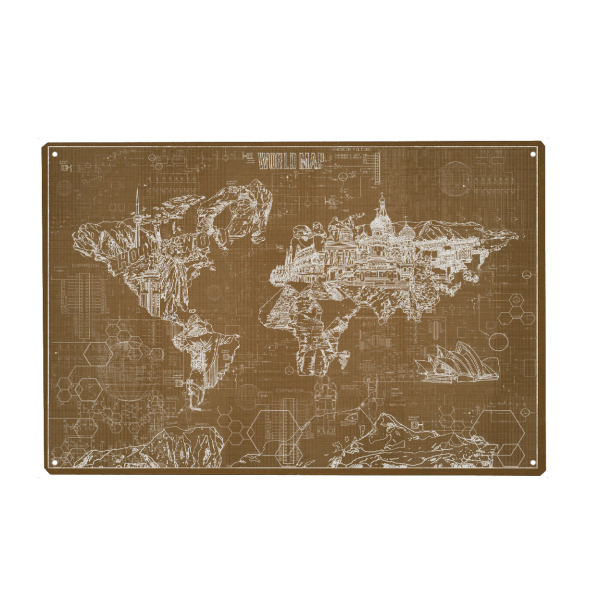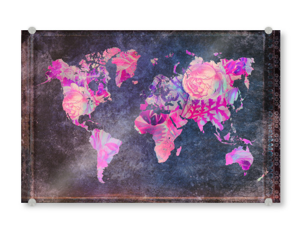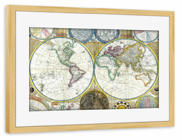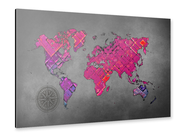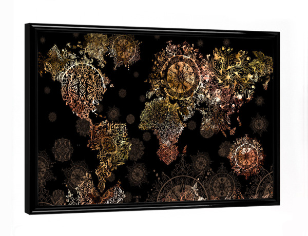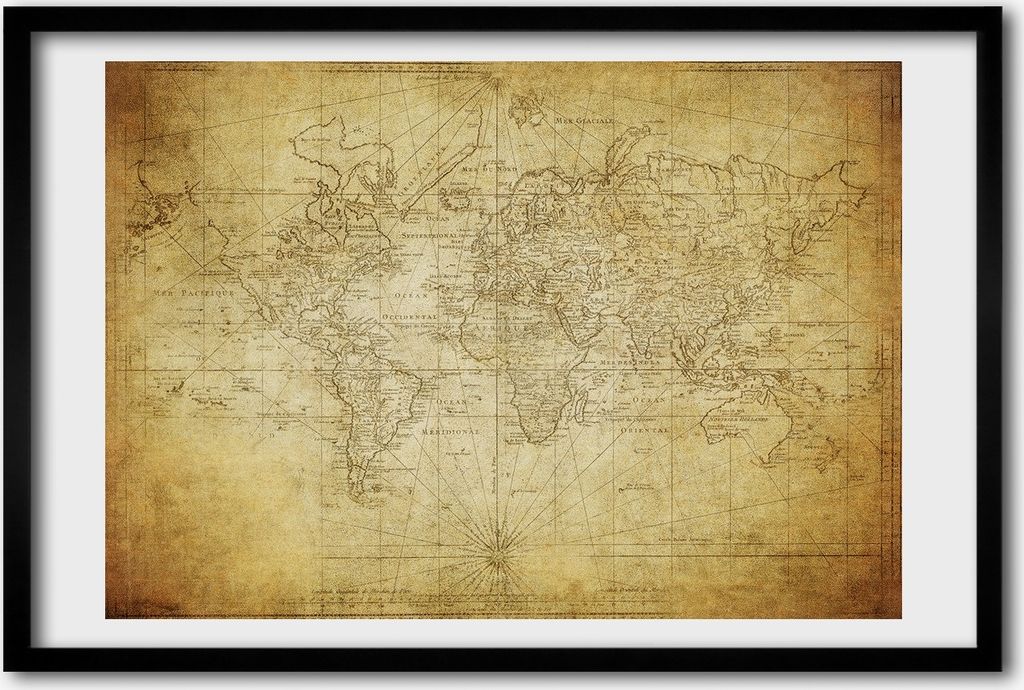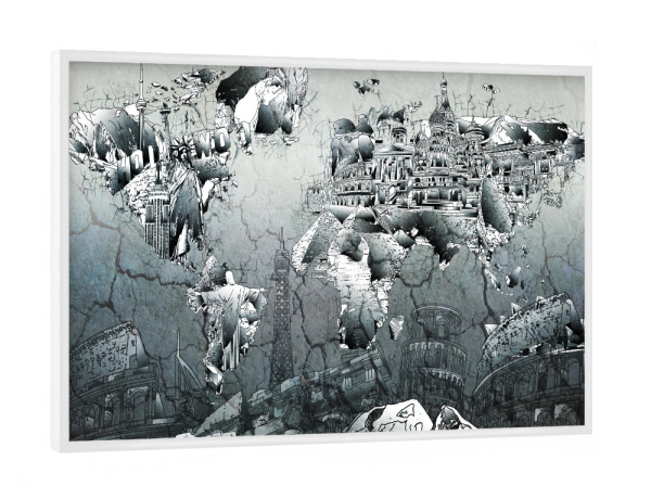 Bild 60x40 MDF-Rahmen, Wandkunst Weltkarte