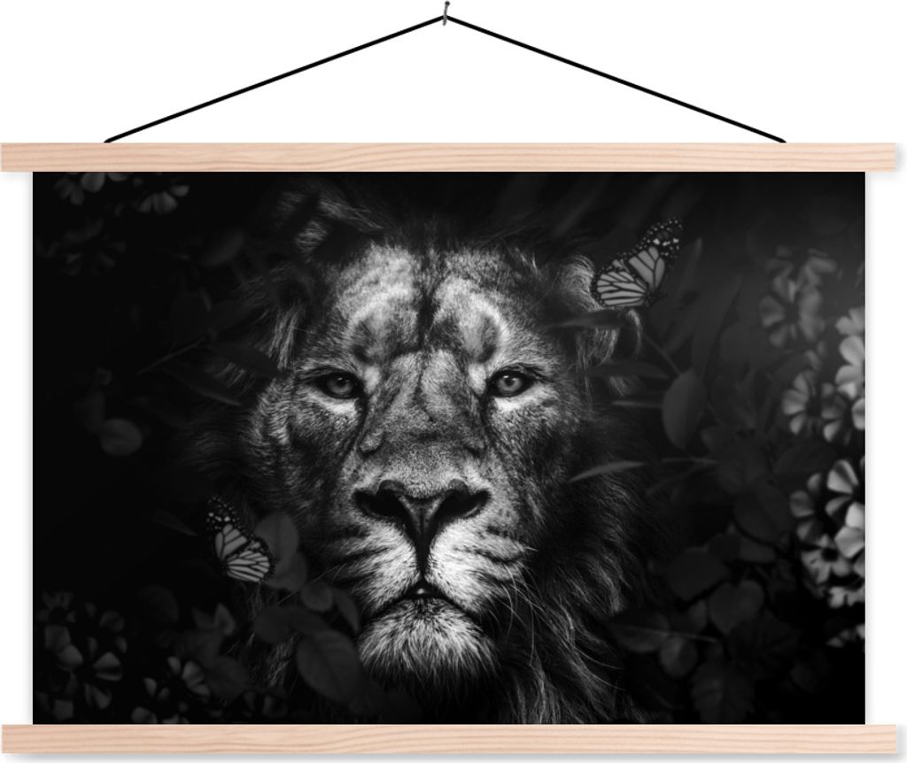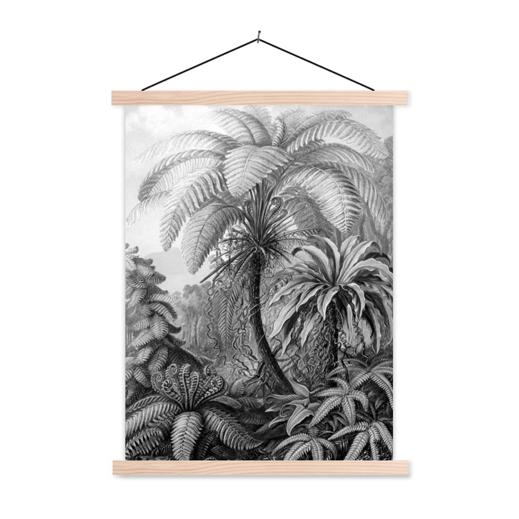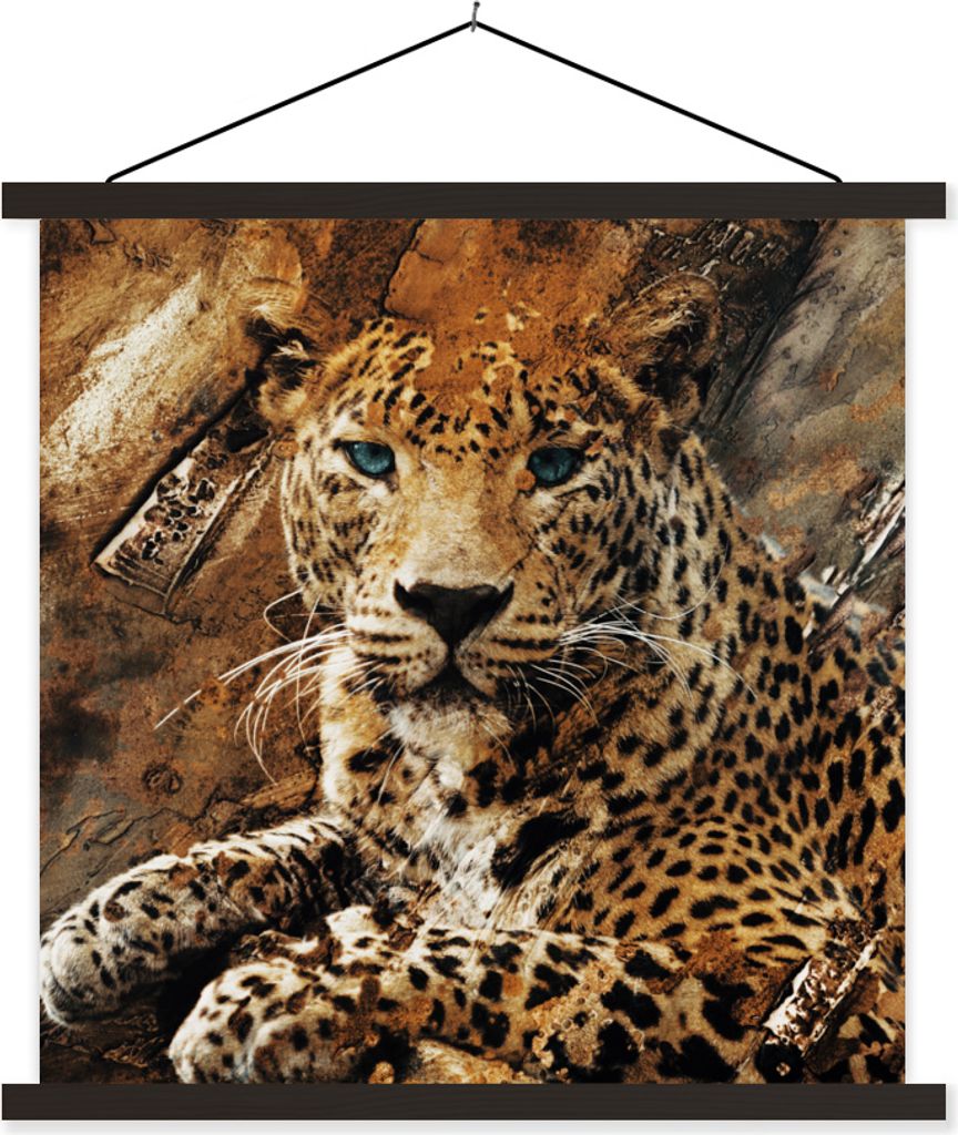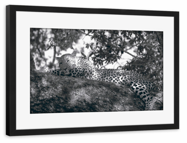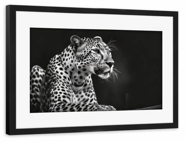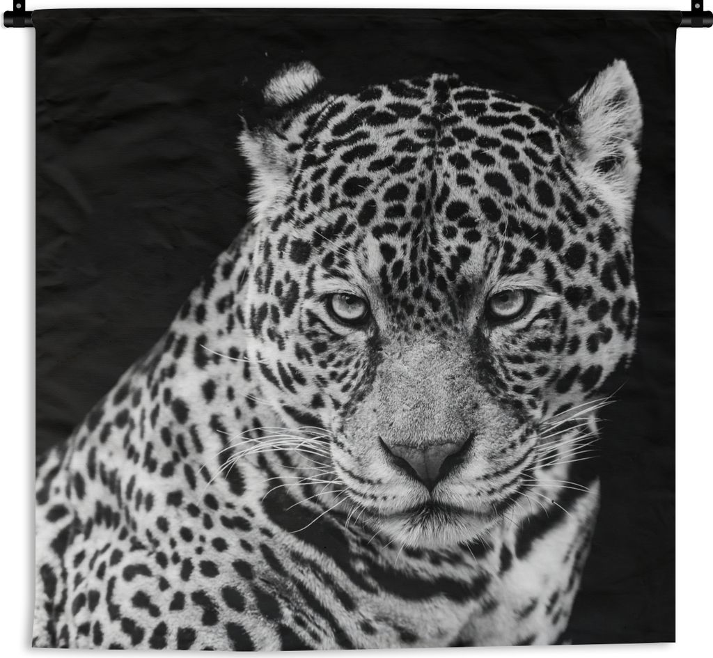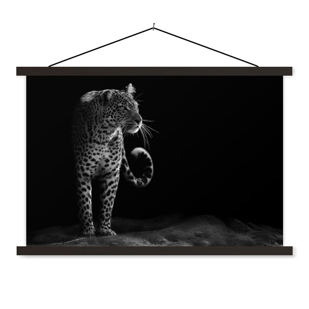 MuchoWow Textilposter Wildtiere - Leopard - Natur - Schwarz - Weiß 90x60 cm mit schwarzem Rahmen - Aufhängungssatz