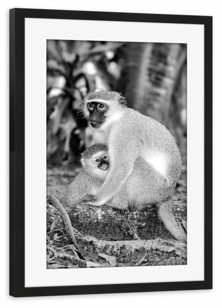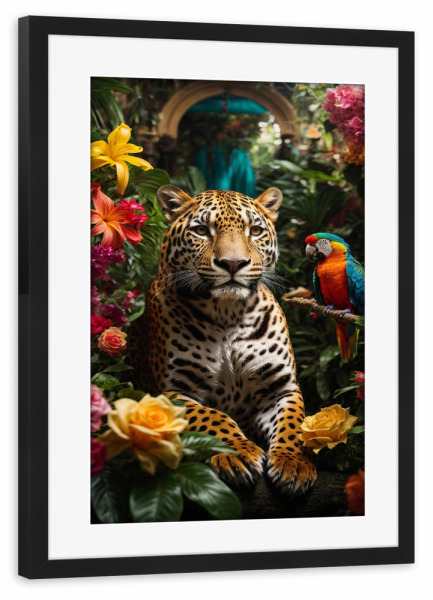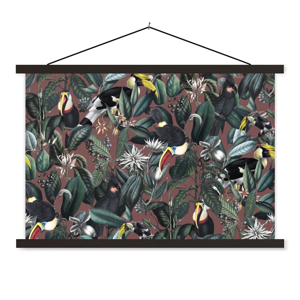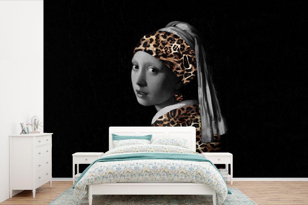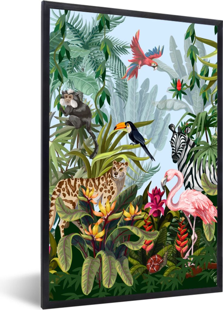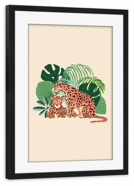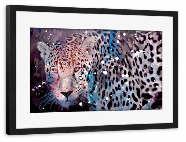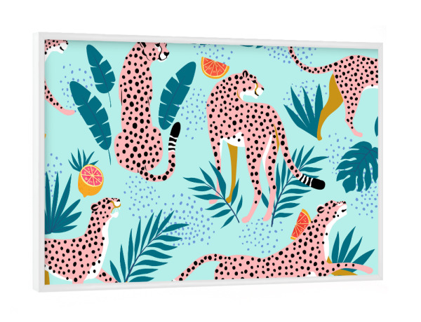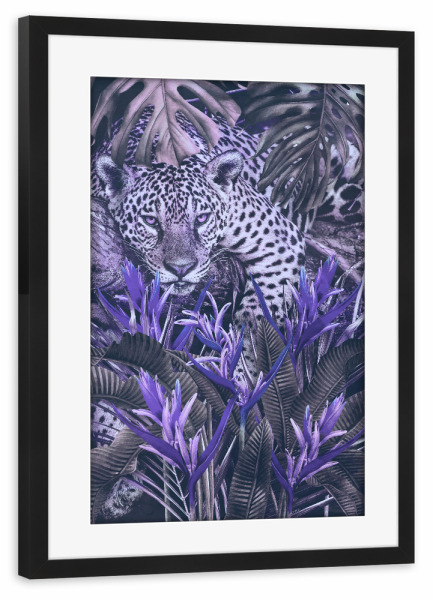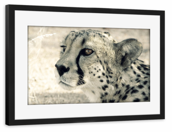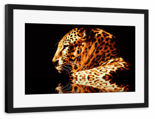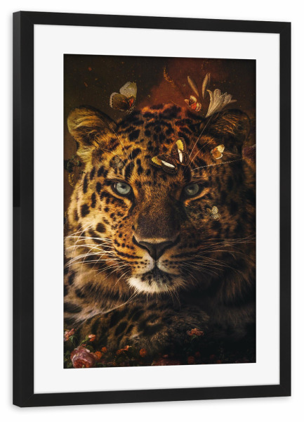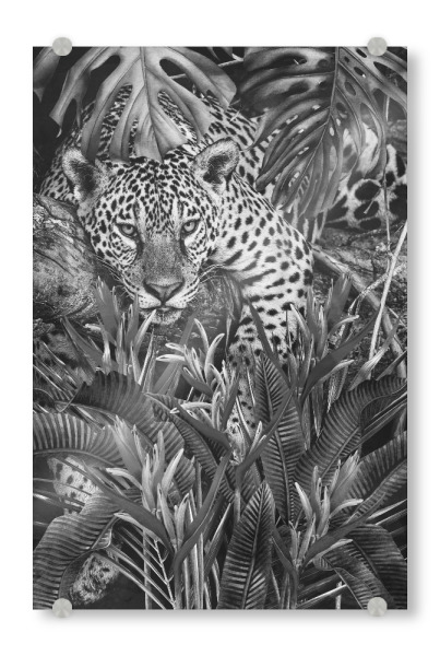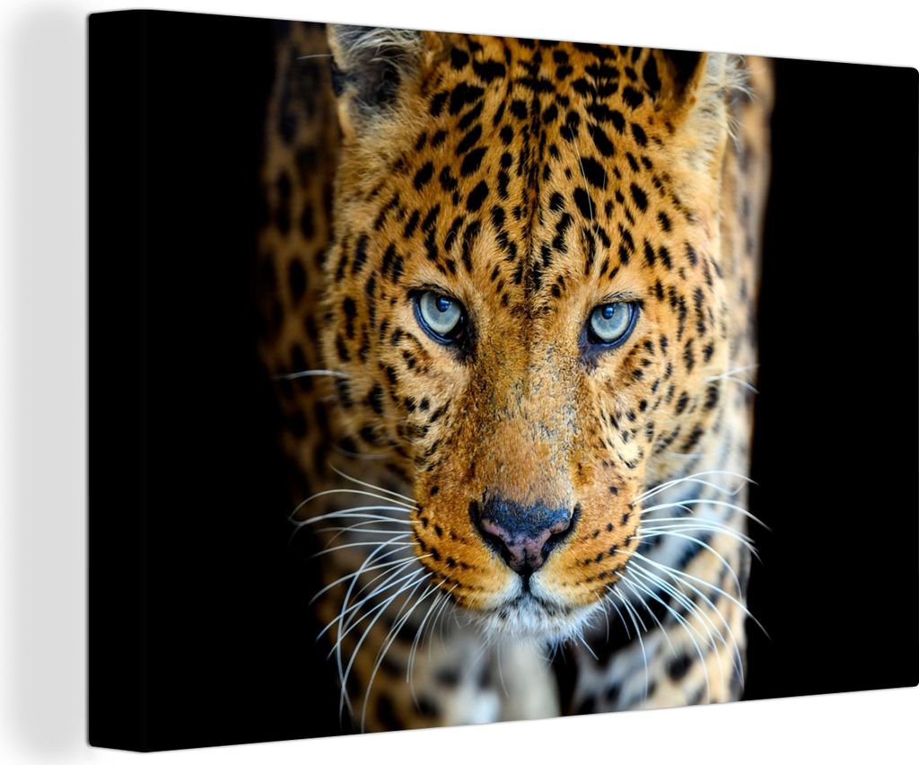 MuchoWow Textilposter Wildtiere - Leopard - Natur - Schwarz - Weiß 90x60 cm mit schwarzem Rahmen - Aufhängungssatz
