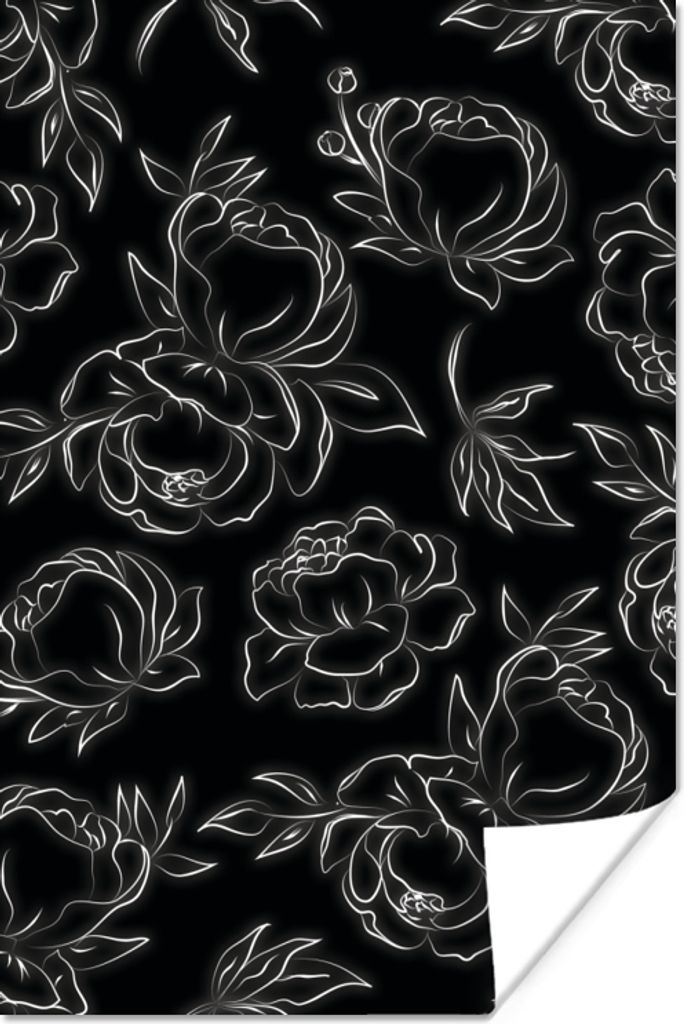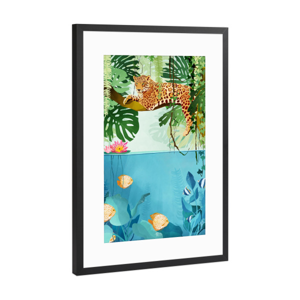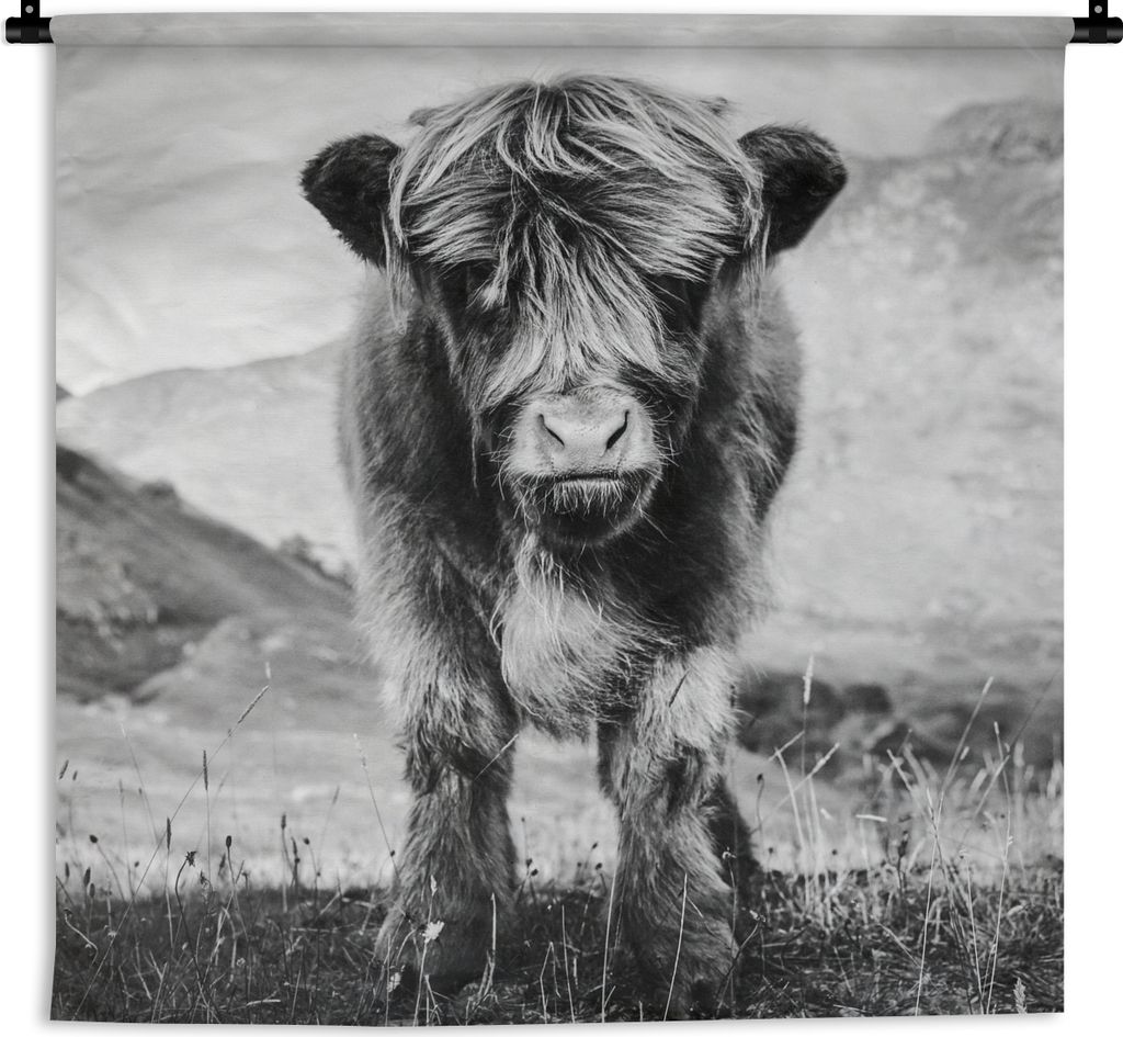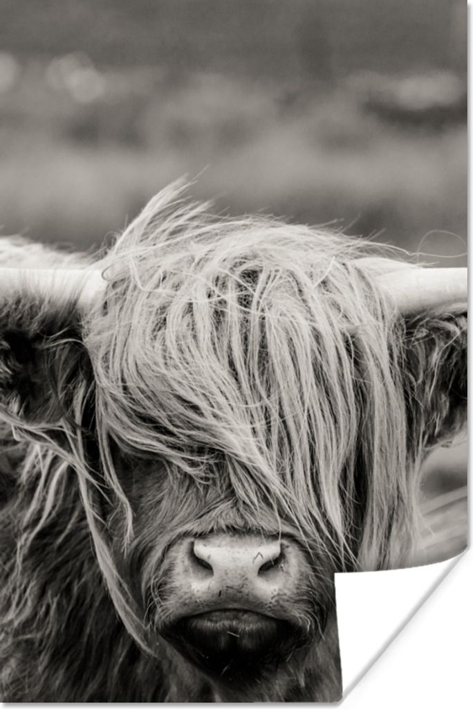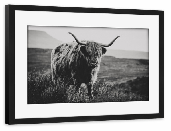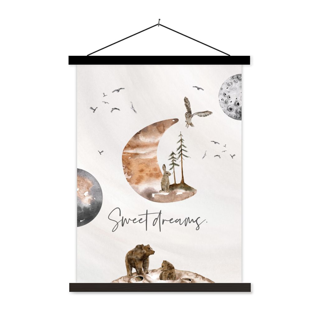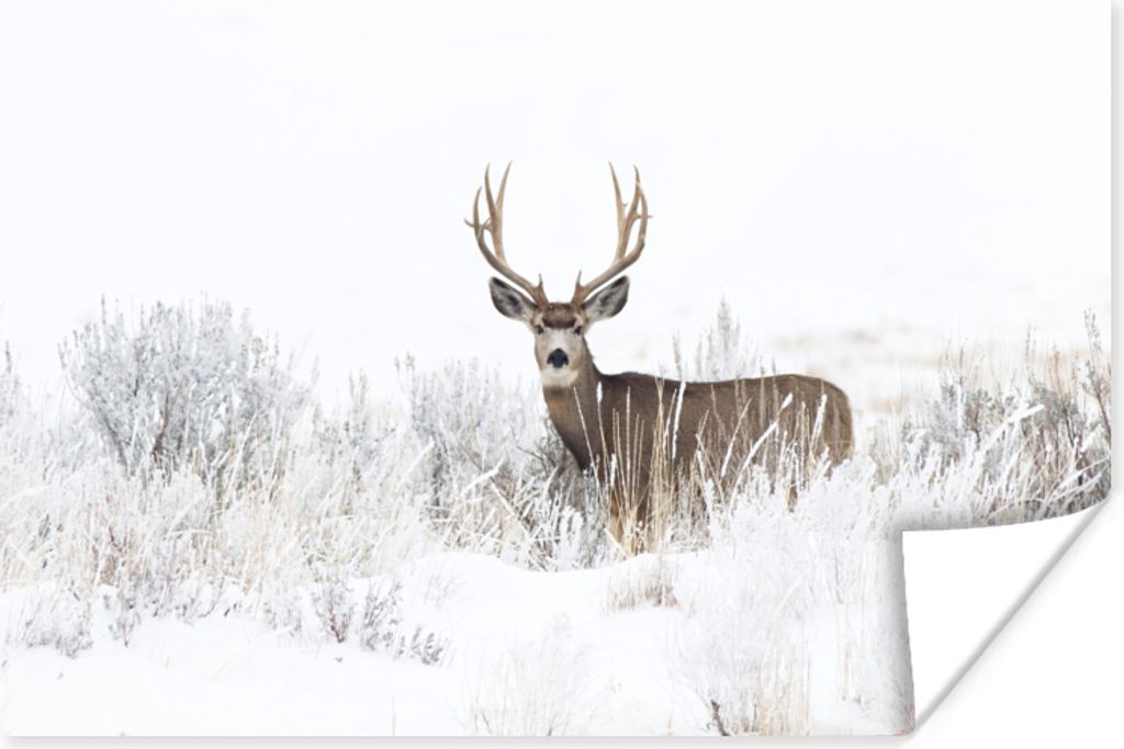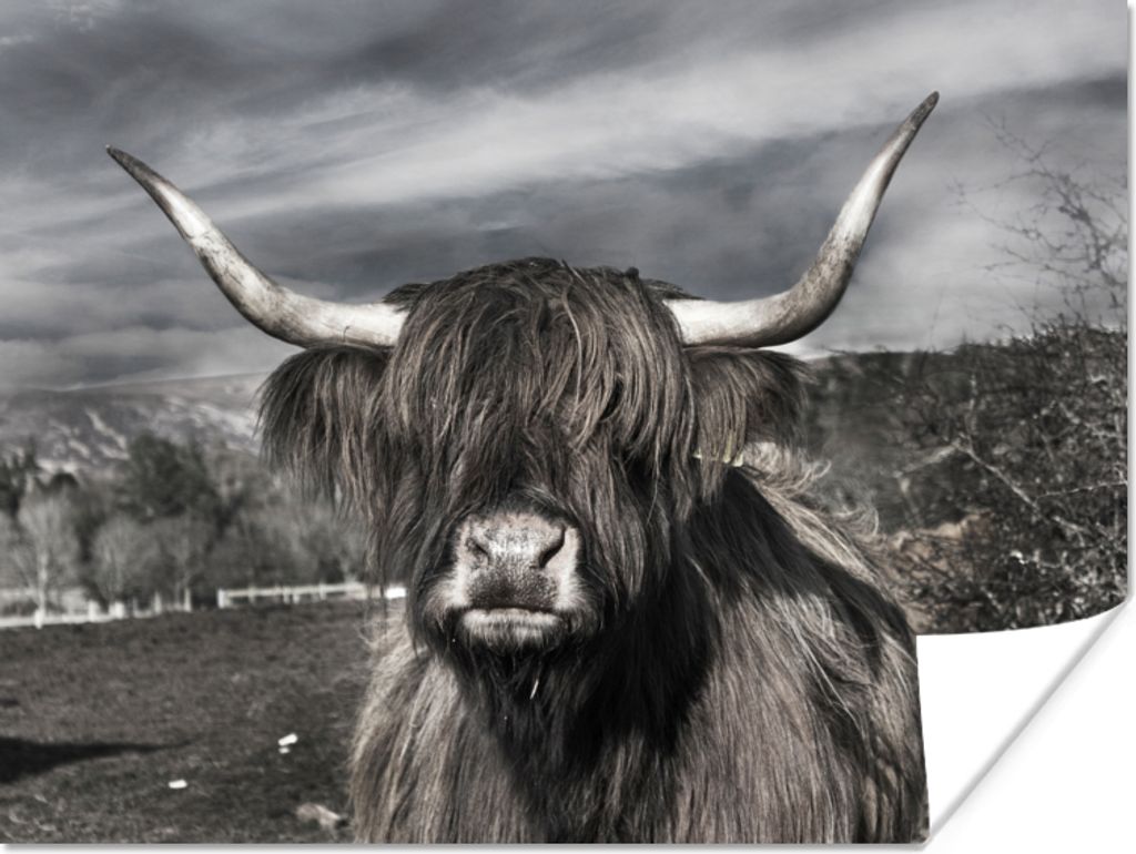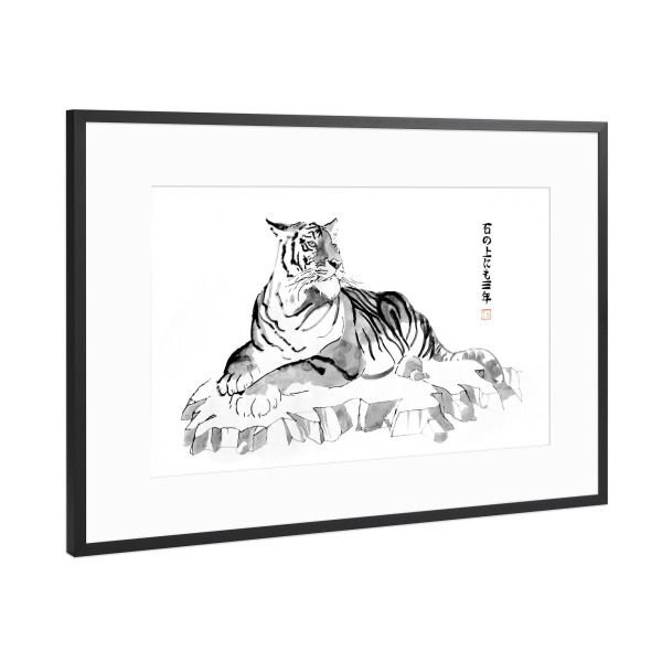 MuchoWow Textilposter Wildtiere - Leopard - Natur - Schwarz - Weiß 90x60 cm mit schwarzem Rahmen - Aufhängungssatz