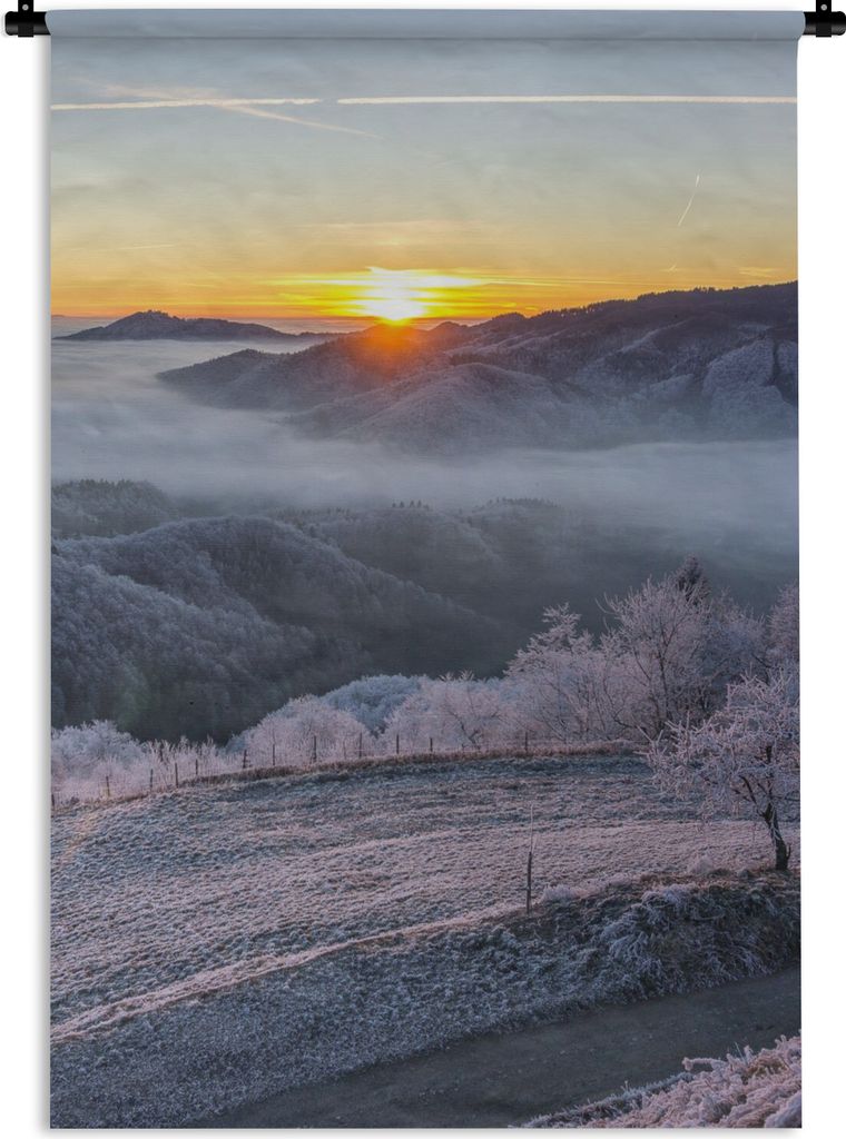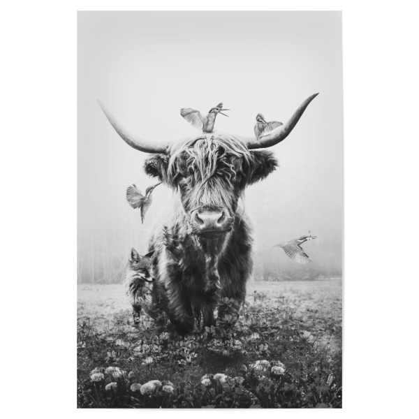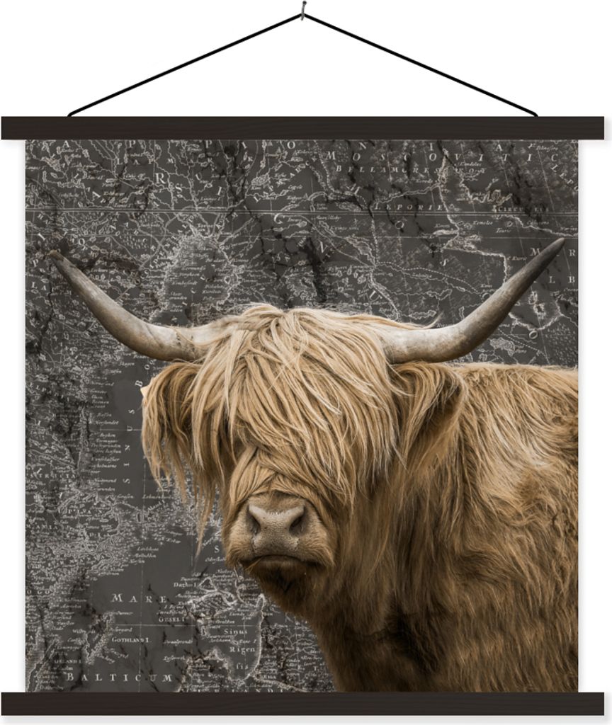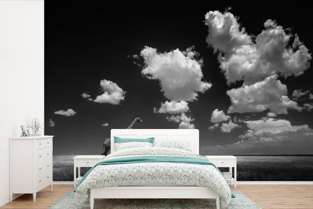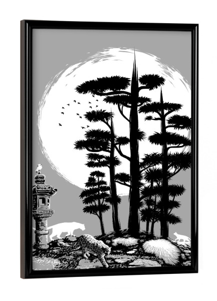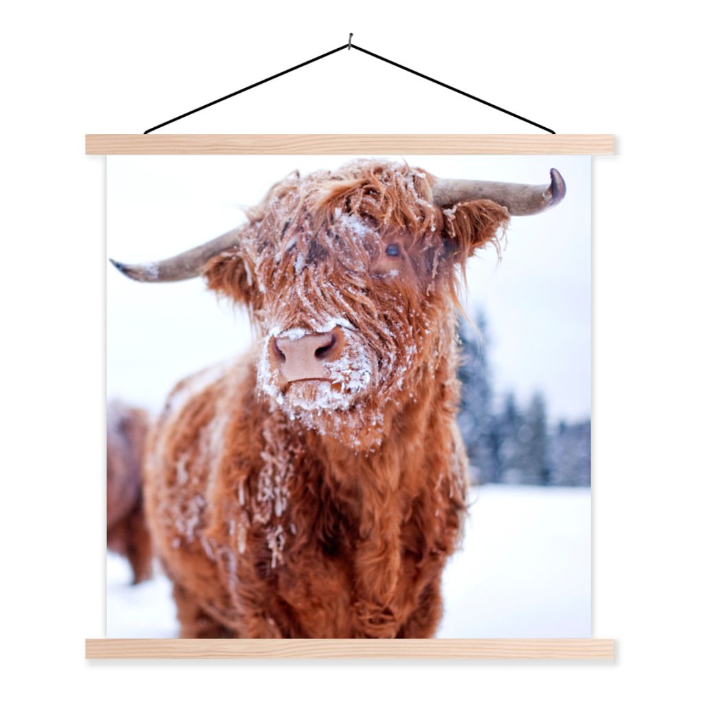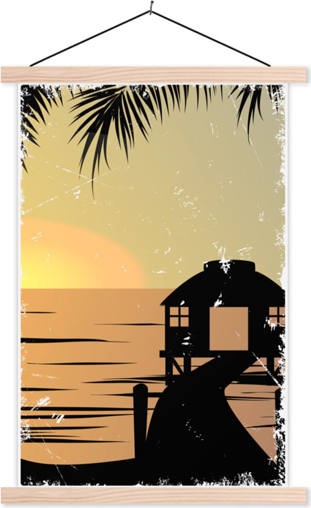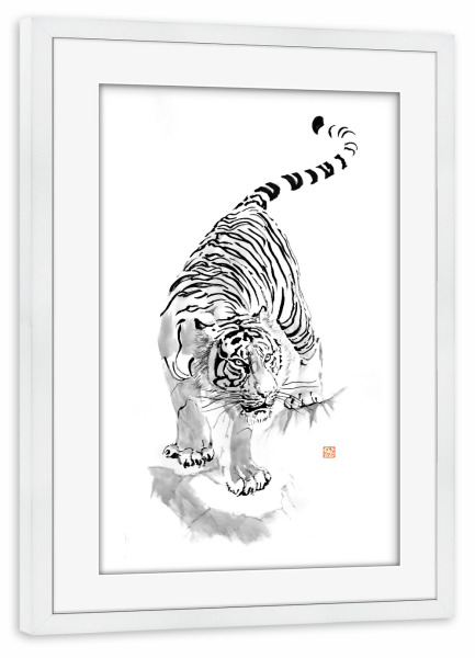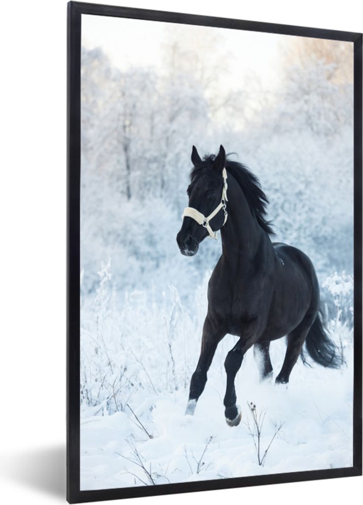 MuchoWow Textilposter Wildtiere - Leopard - Natur - Schwarz - Weiß 90x60 cm mit schwarzem Rahmen - Aufhängungssatz