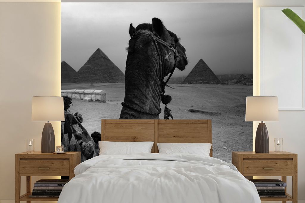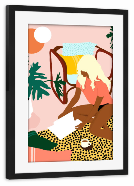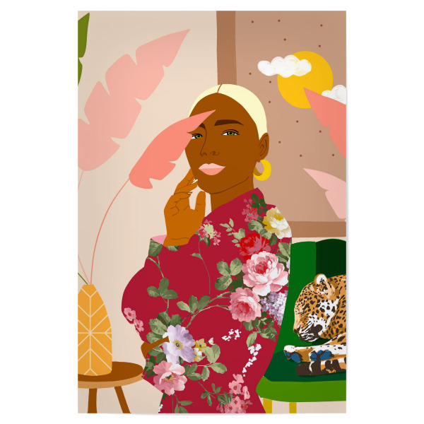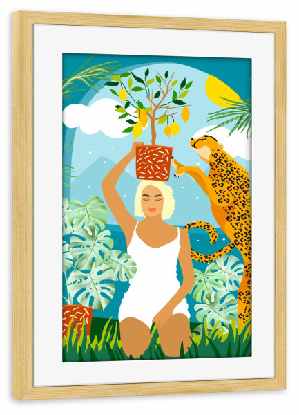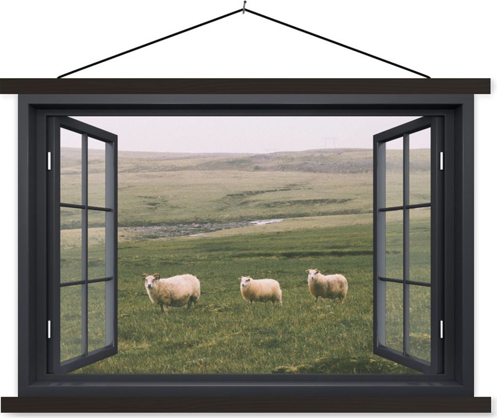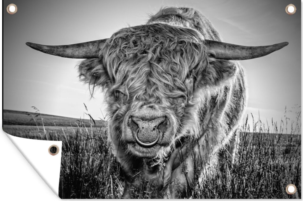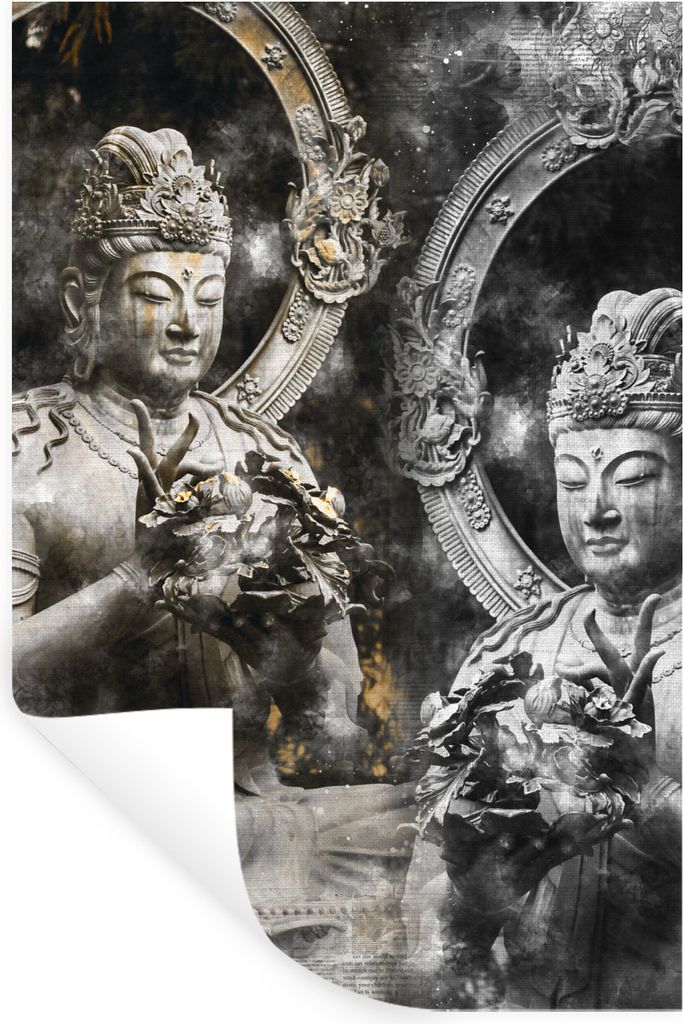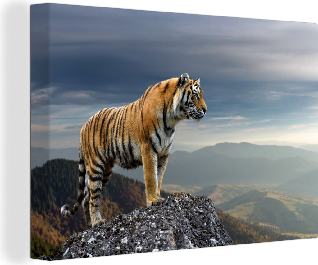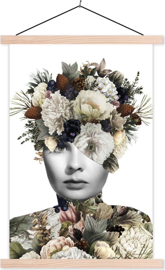 MuchoWow Textilposter Wildtiere - Leopard - Natur - Schwarz - Weiß 90x60 cm mit schwarzem Rahmen - Aufhängungssatz