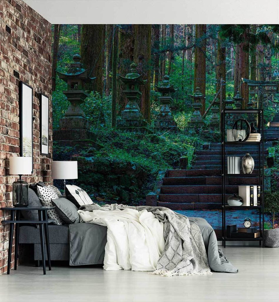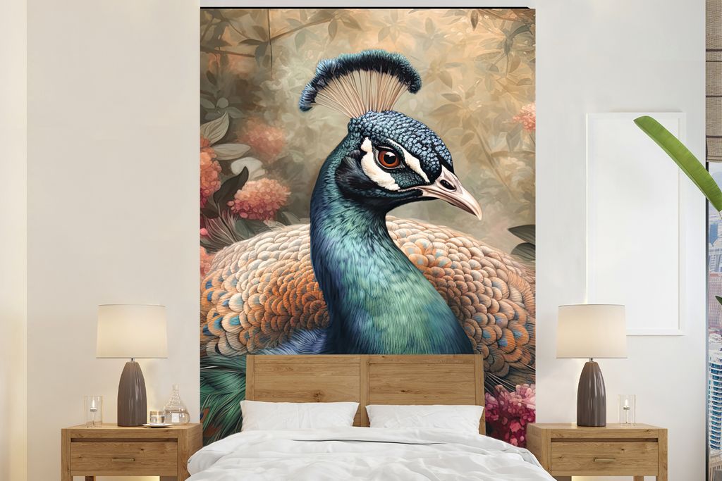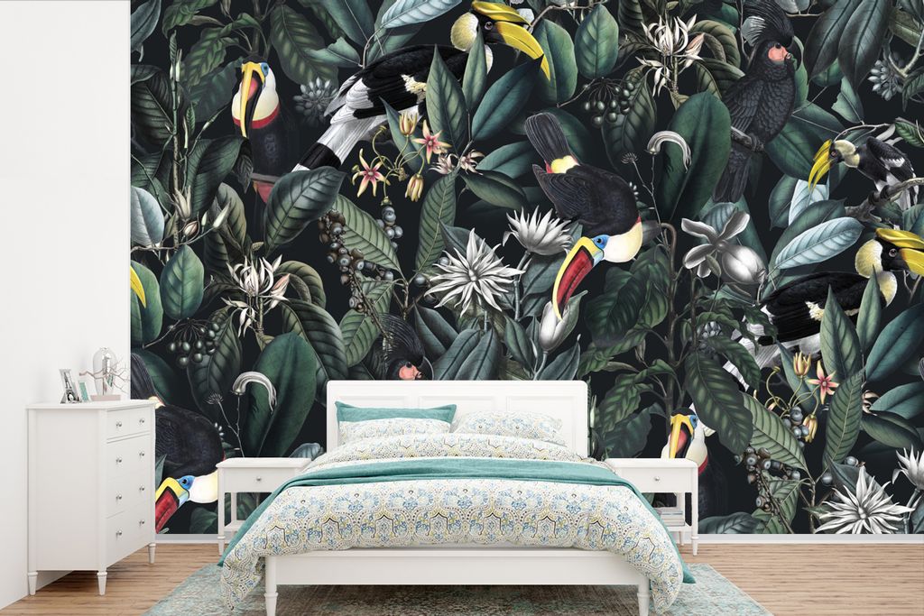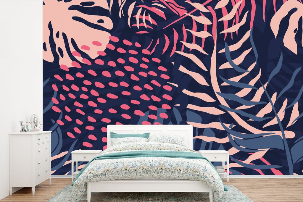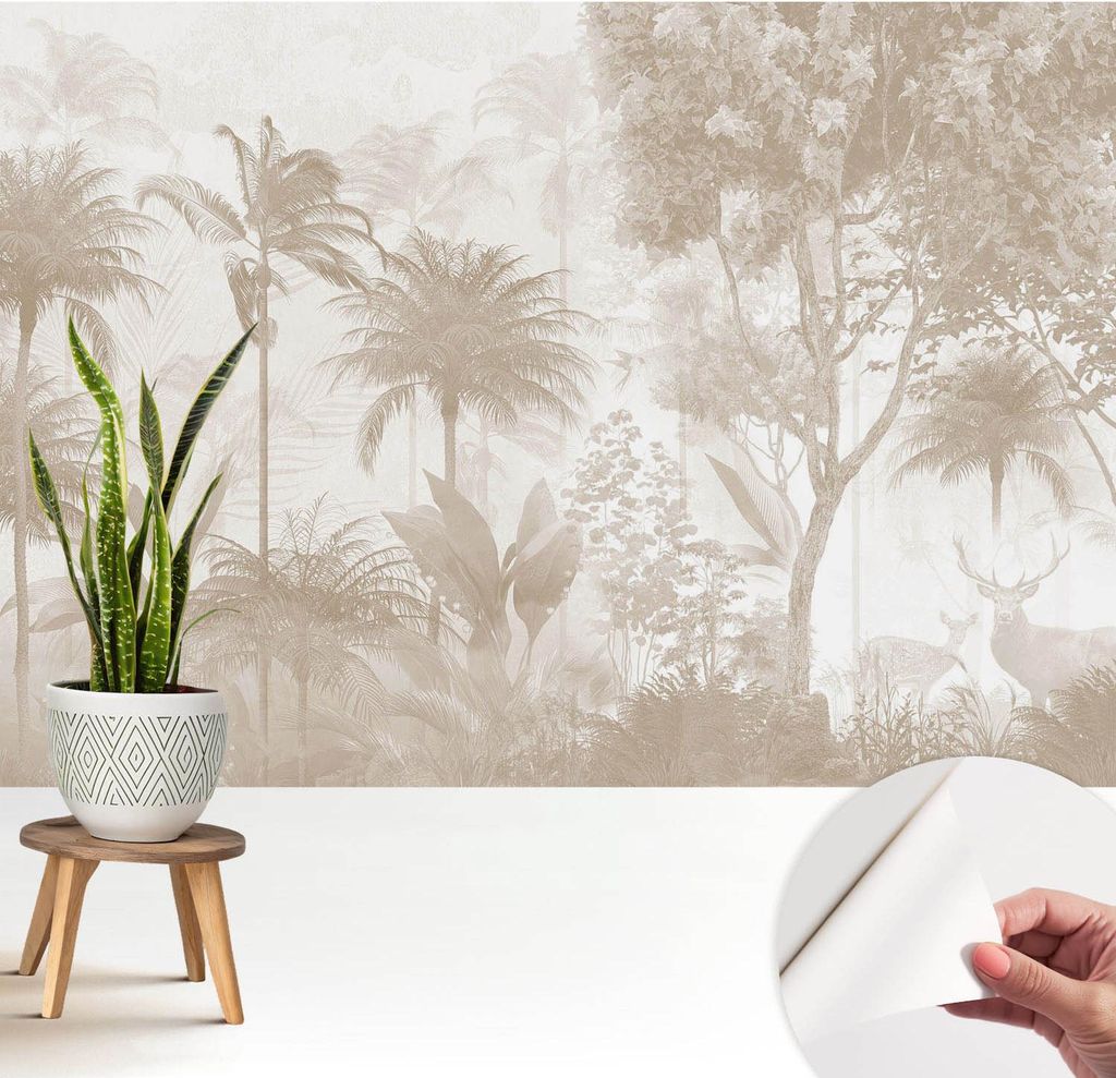 MuchoWow Fototapete für Wohnzimmer oder Schlafzimmer Wandtapete Vinyl Motivtapete Design - Pflanzen - Dschungel - 160x240 cm - Vinyltapete