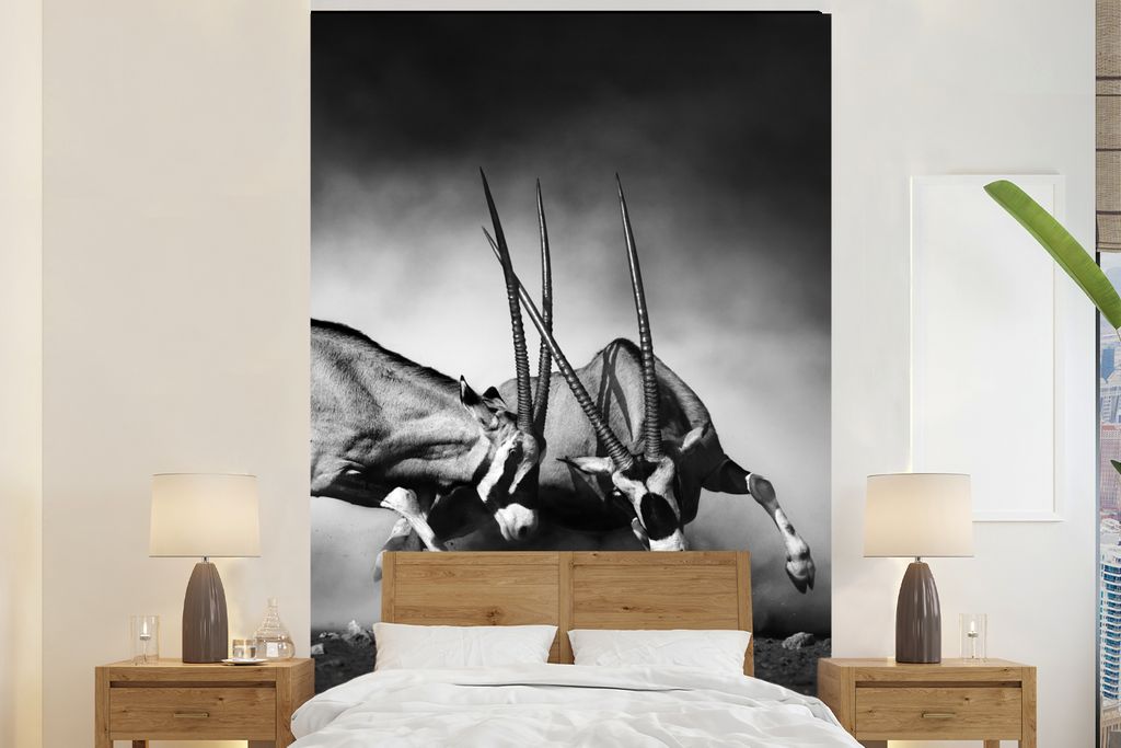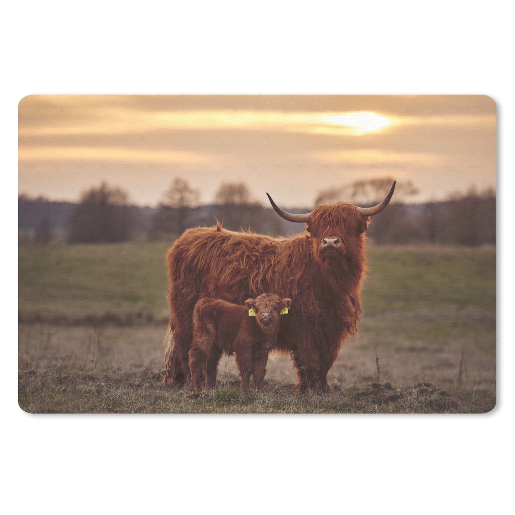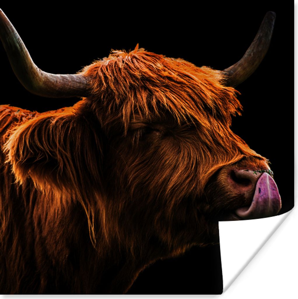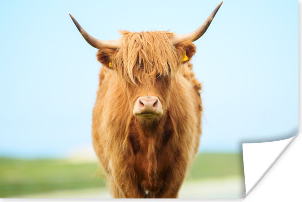 MuchoWow Fototapete für Wohnzimmer oder Schlafzimmer Wandtapete Vinyl Motivtapete Schottischer Highlander - Schnee - Hörner - 400x300 cm - Papi...