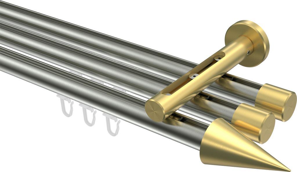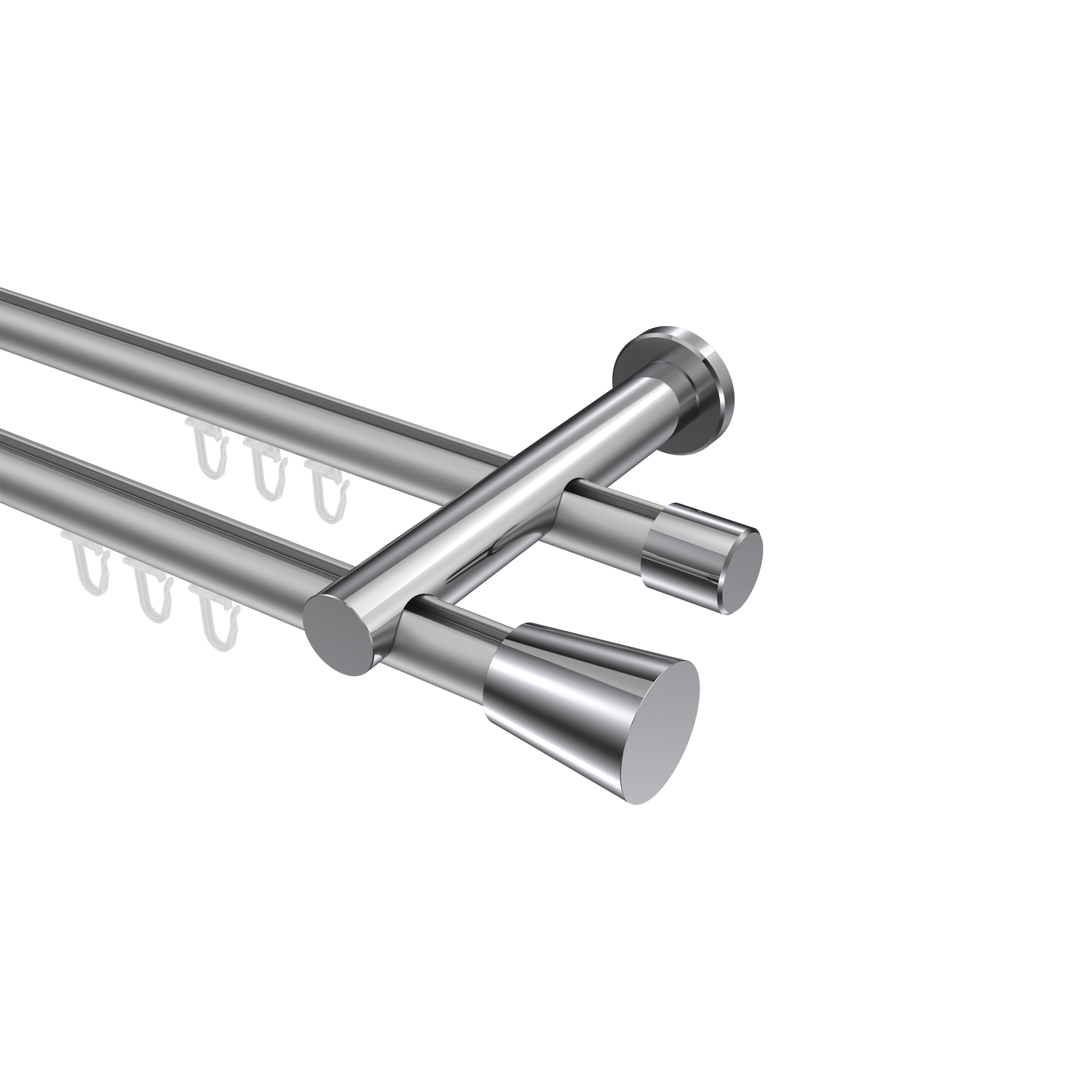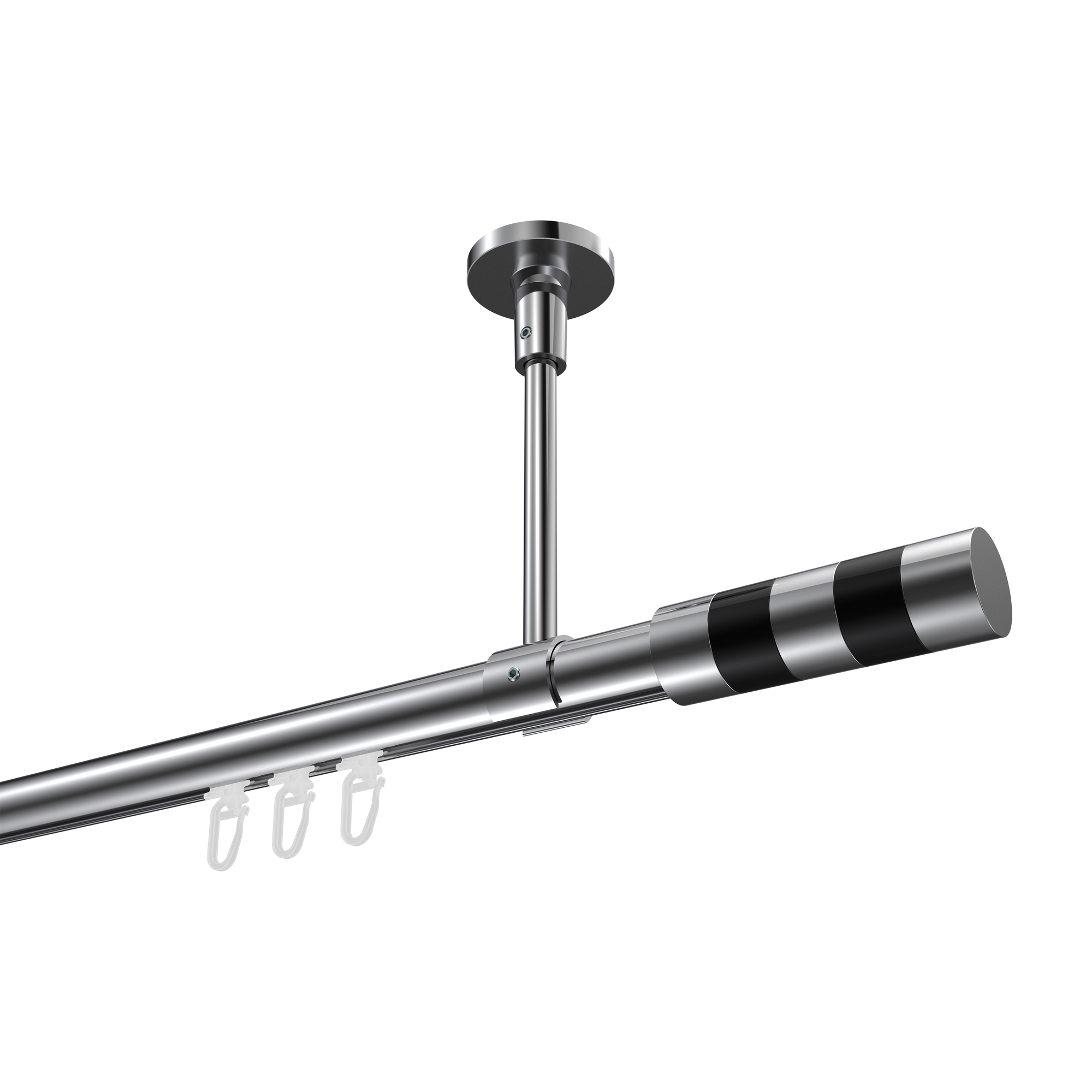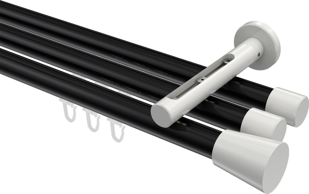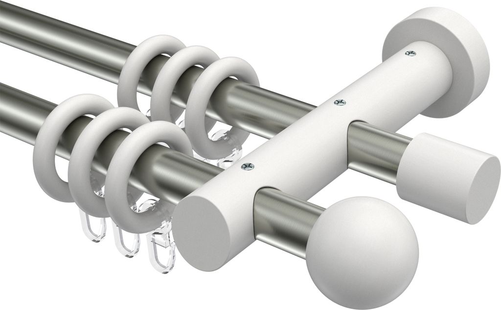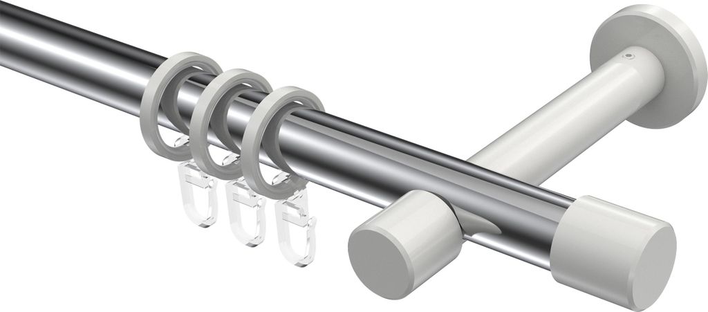Interdeco Innenlaufstange / Gardinenstange mit Innenlauf Weiß / Chrom, Typ Sonius Sitra (Konus) Deckenmontage, 20 mm Ø 1-läufig, 220 cm