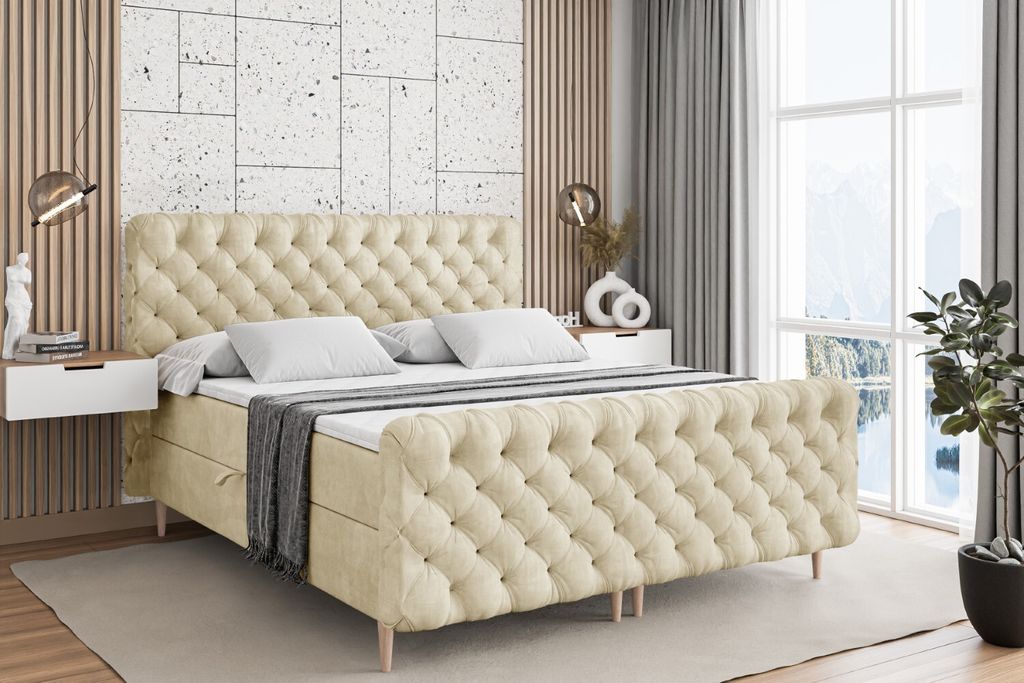 BALTIMORE Wolkenbett mit Truhe 160x200cm grüner Samt
