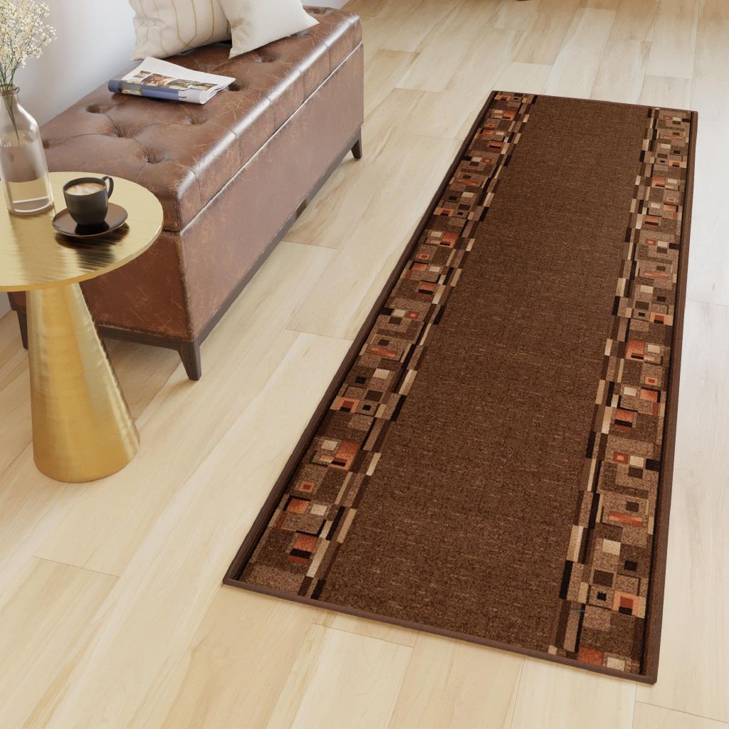 Läufer Teppich Meterware Flur Wohnzimmer Schlafzimmer Kurzflor Modern Design Rutschfest Braun 67 x 510